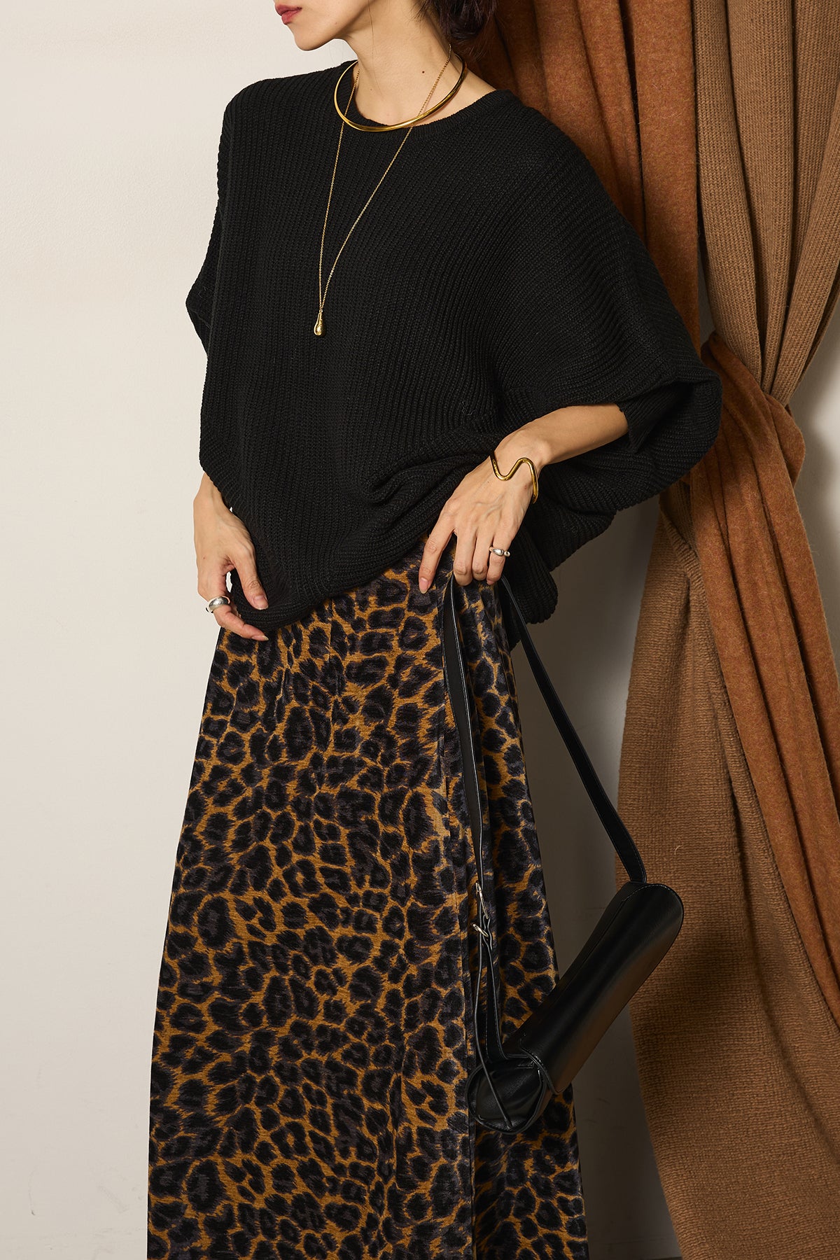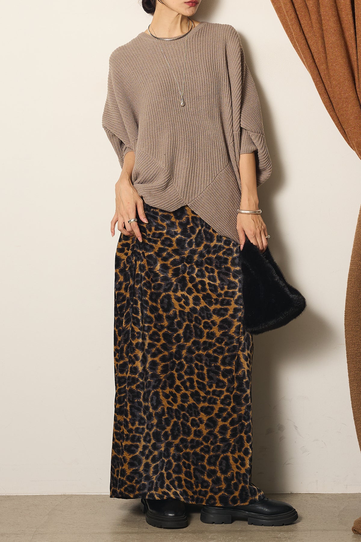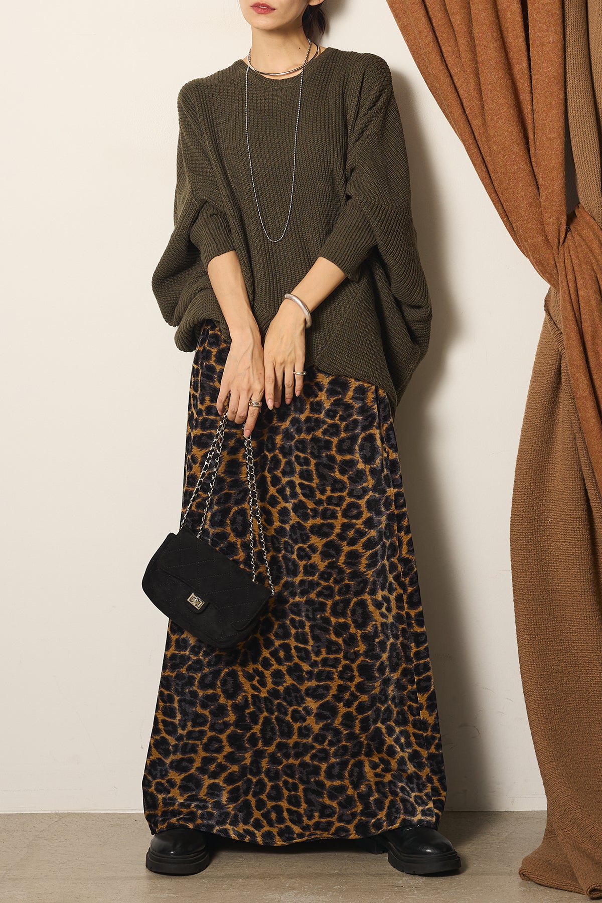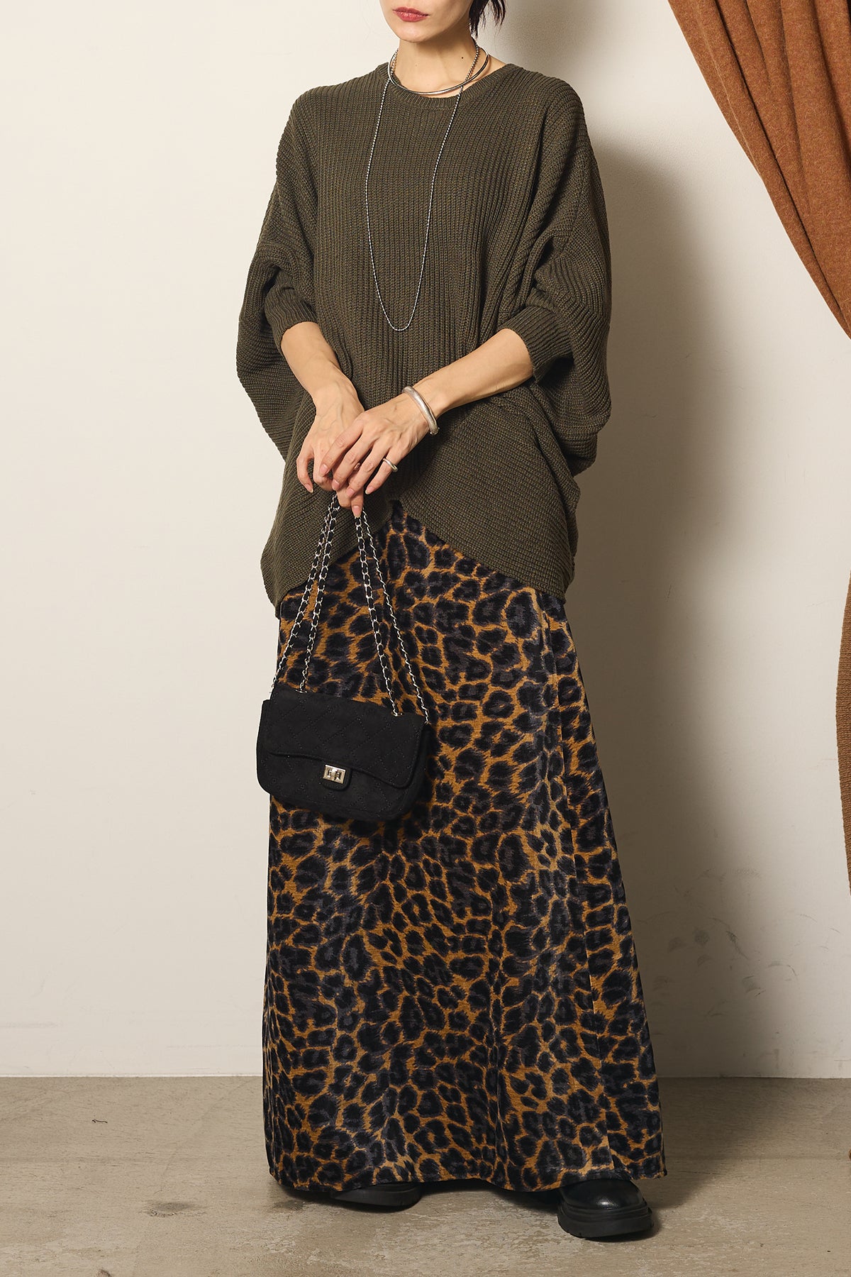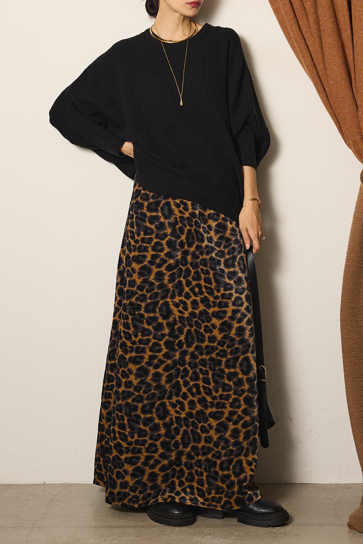 大胆なレオパード柄が目を引くワイドスカート。落ち感のあるシルエットが動くたびに美しいラインを描き、コーディネートにモードな存在感をプラスします。シンプルなトップスと合わせるだけでスタイルが決まり、デイリーから特別なシーンまで幅広く活躍する一枚です。