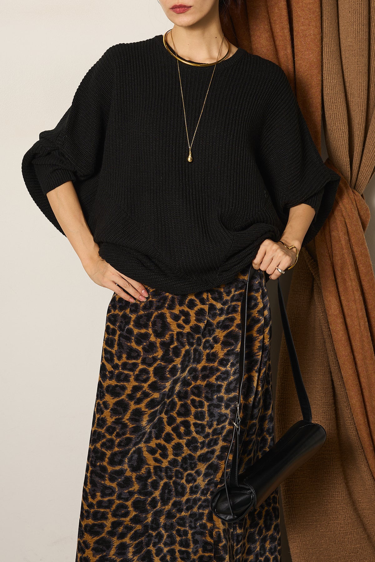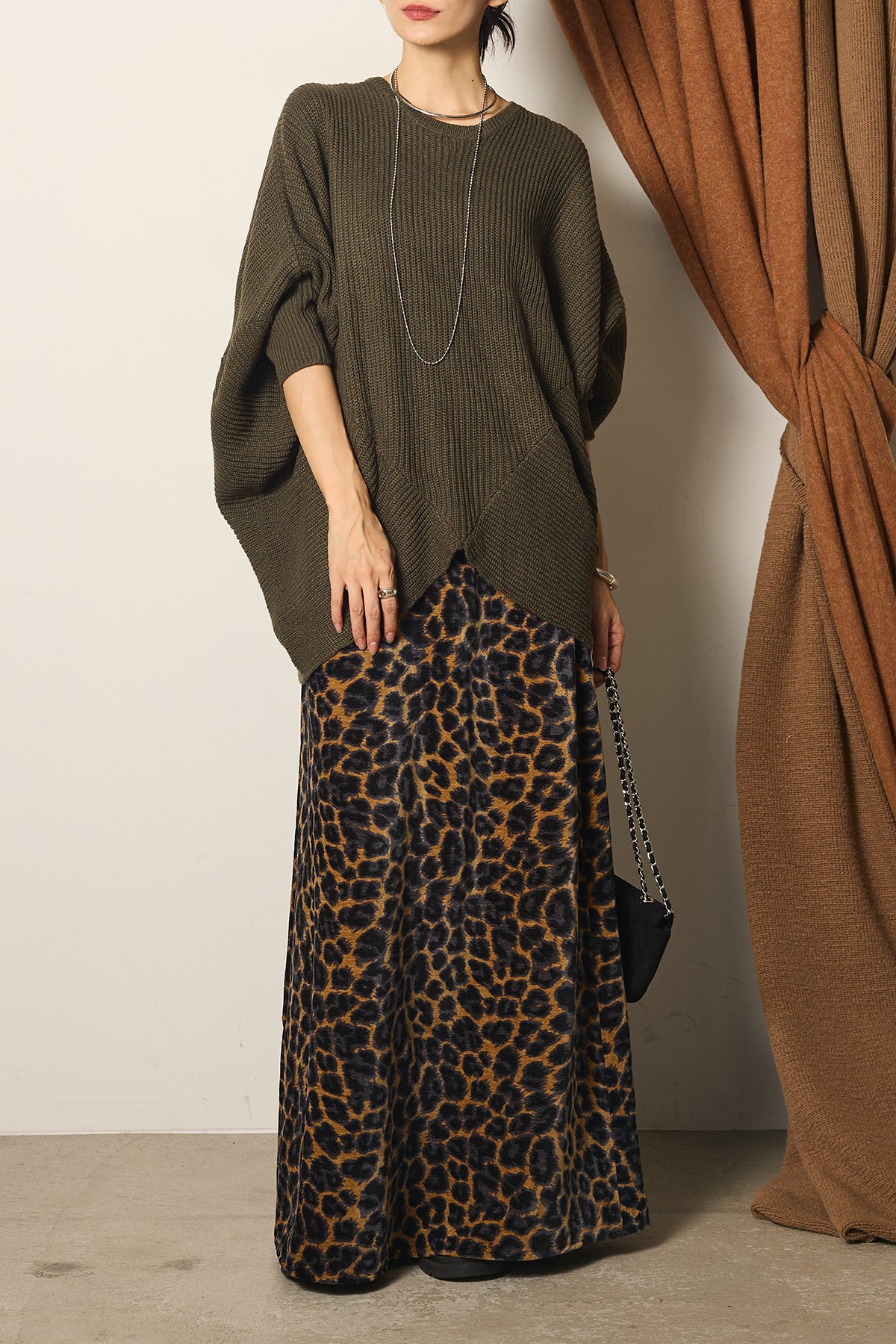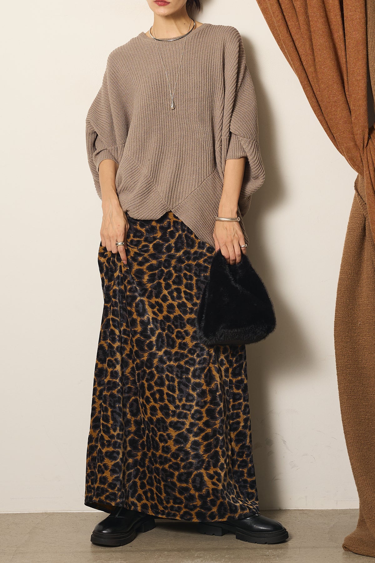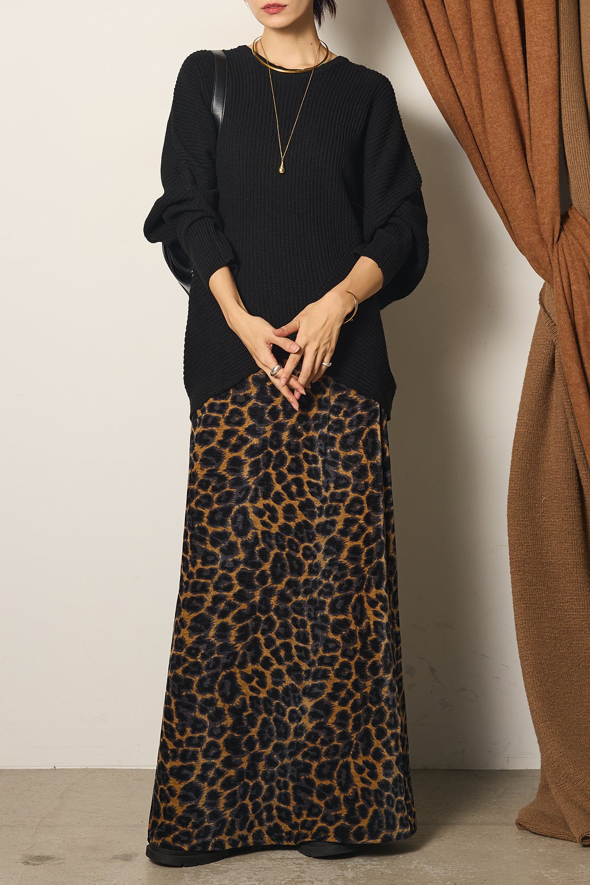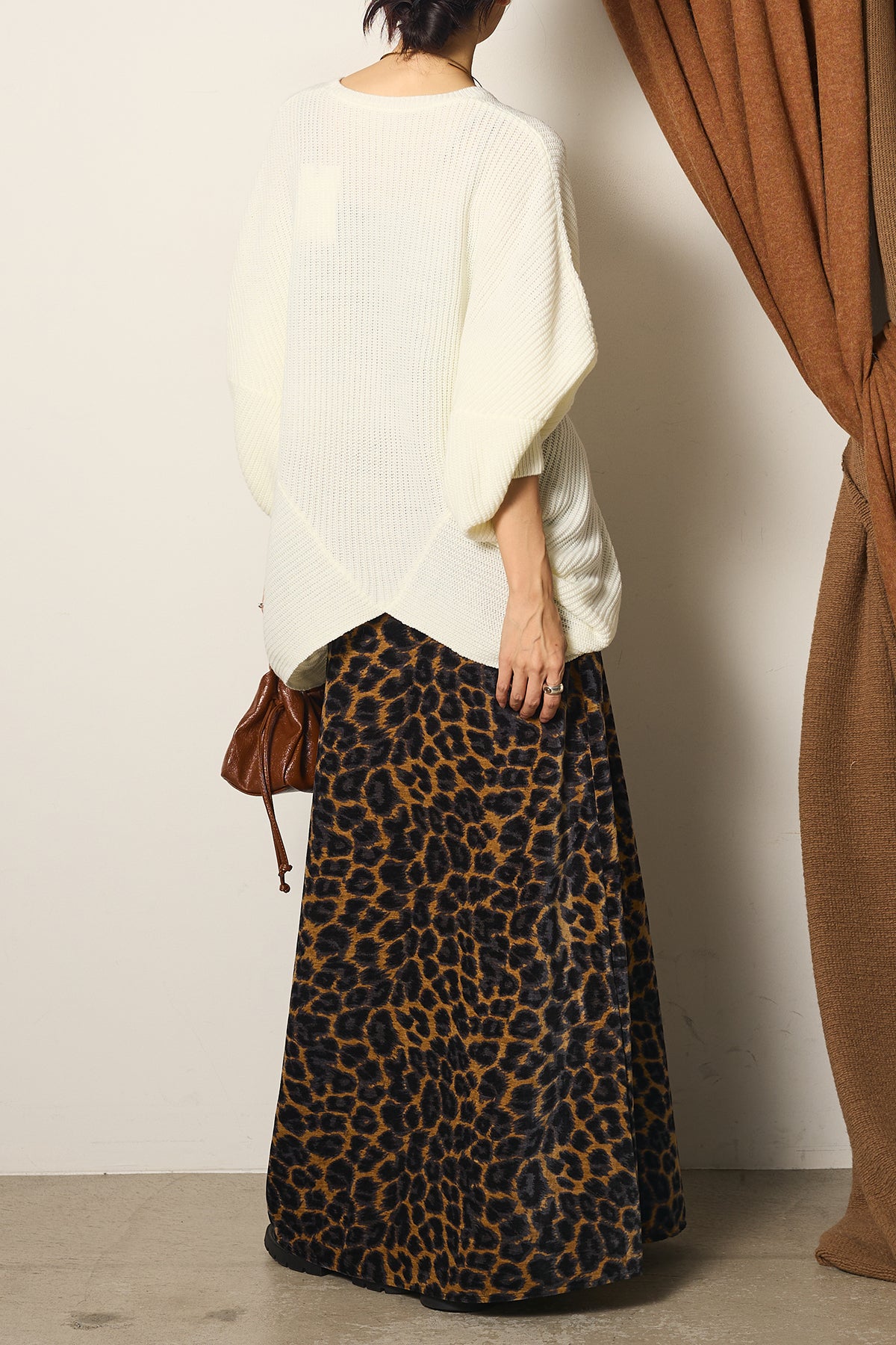 大胆なレオパード柄が目を引くワイドスカート。落ち感のあるシルエットが動くたびに美しいラインを描き、コーディネートにモードな存在感をプラスします。シンプルなトップスと合わせるだけでスタイルが決まり、デイリーから特別なシーンまで幅広く活躍する一枚です。
