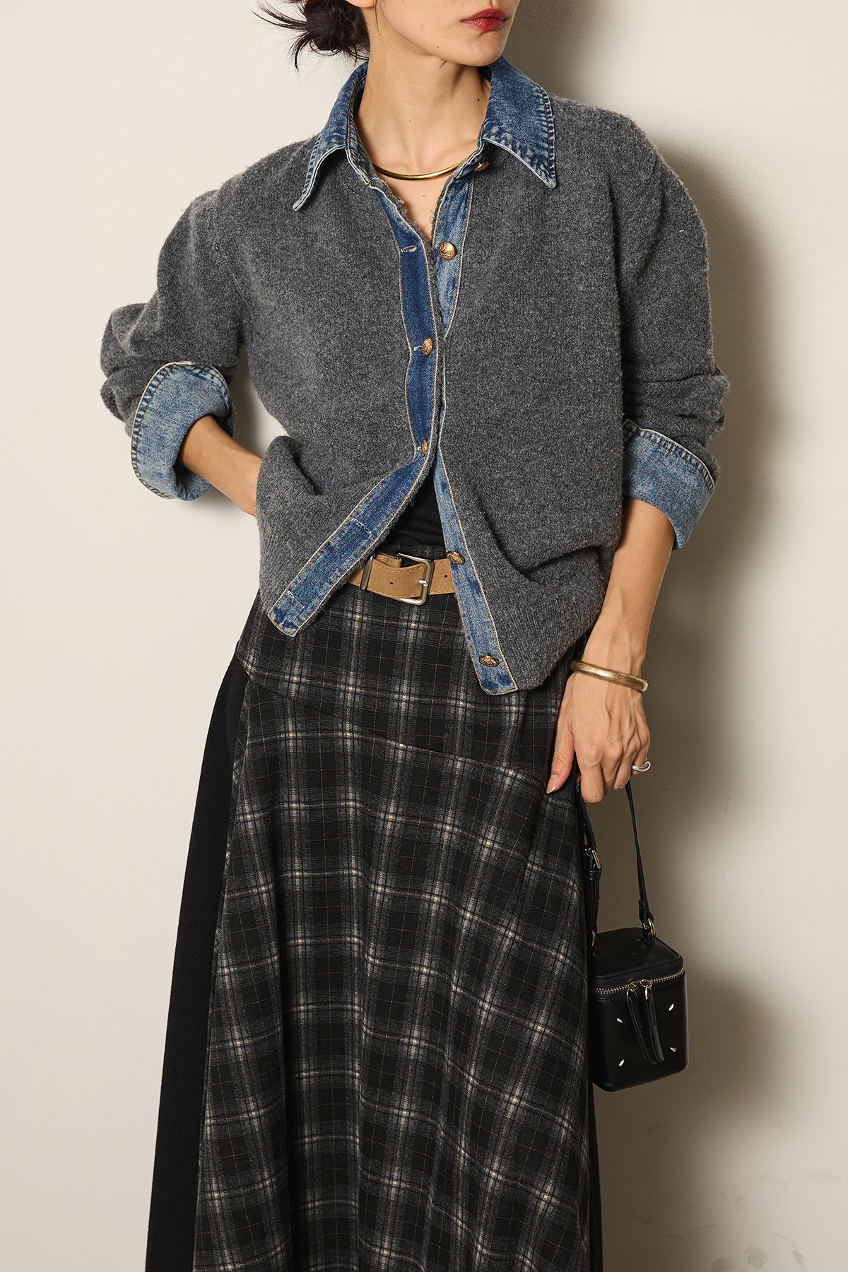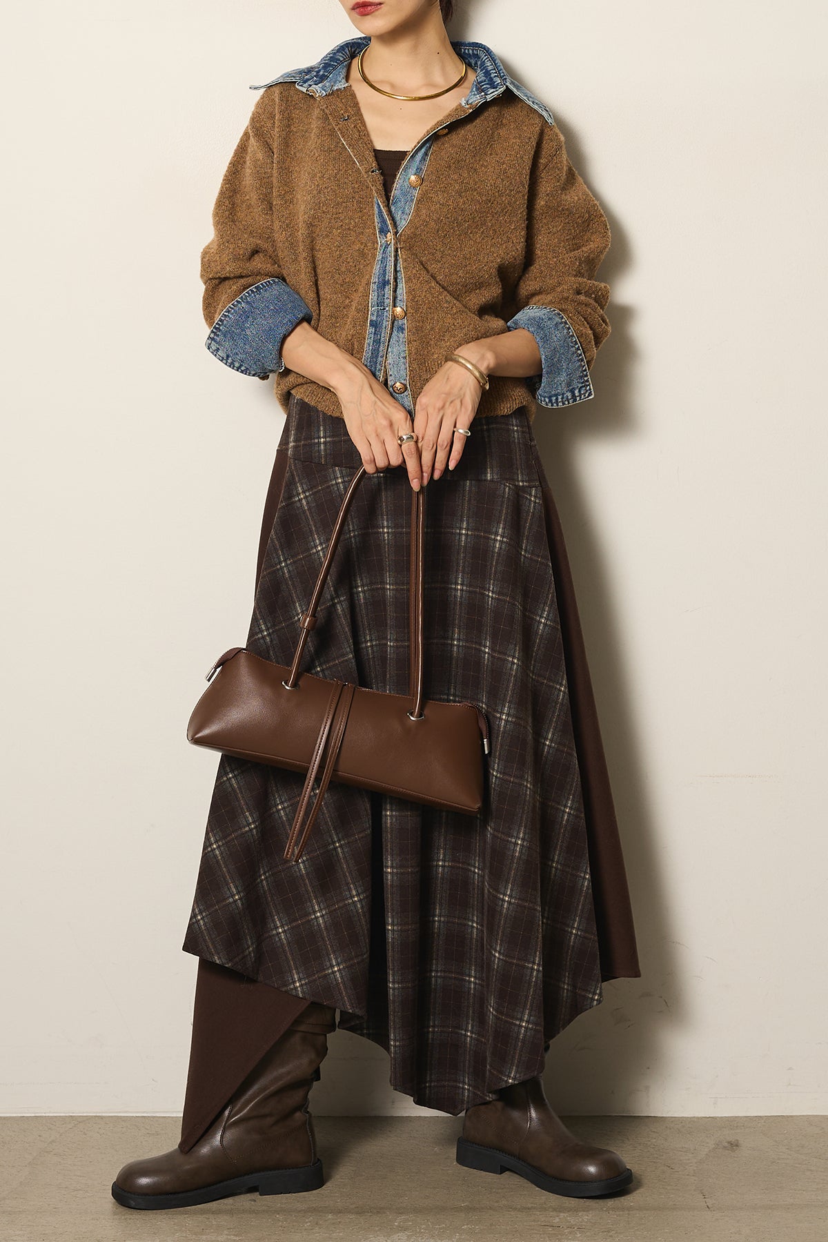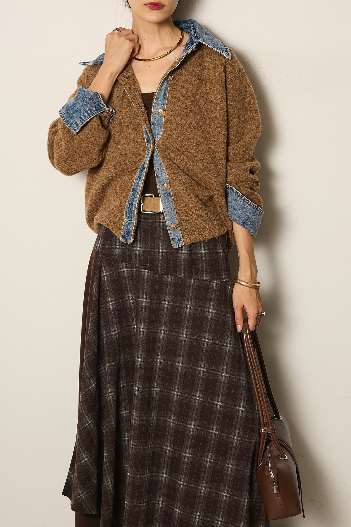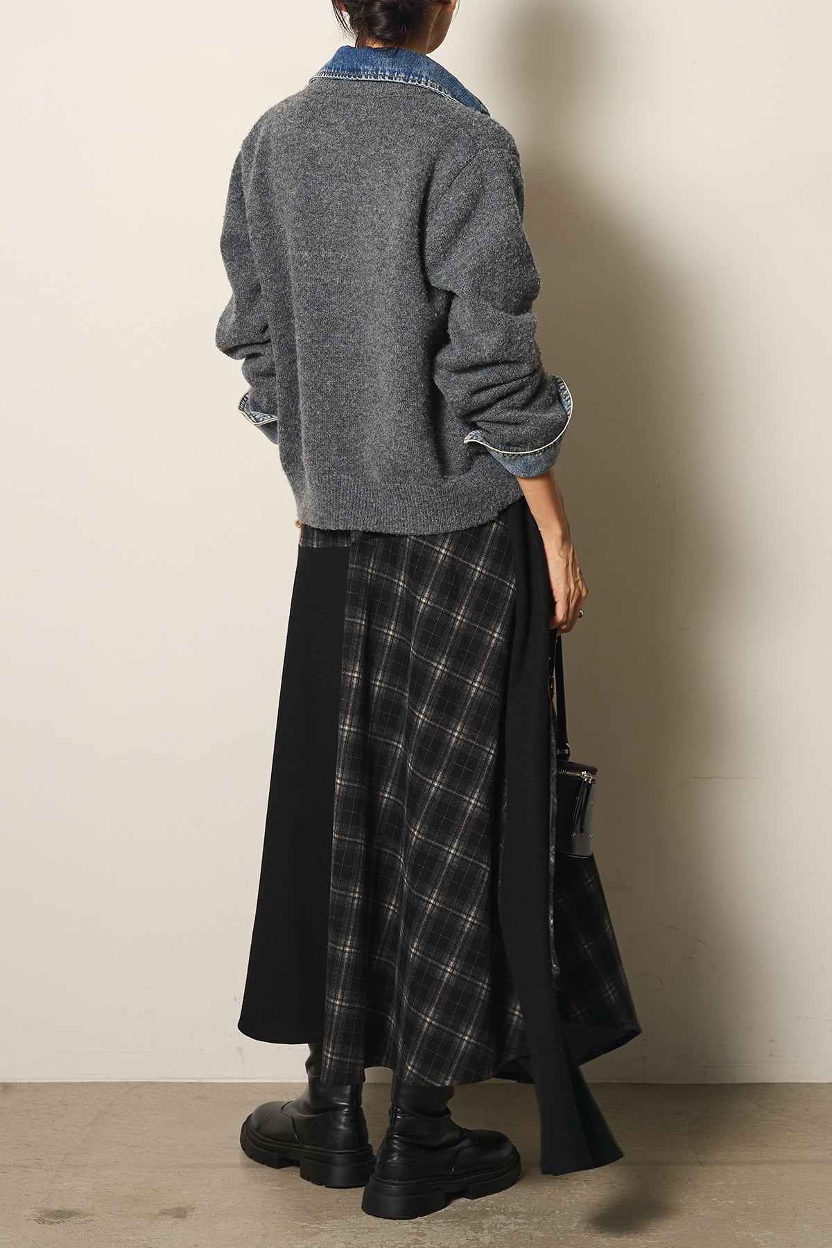 フェイクレザーベルト付き切り替えタータンチェックスカートの他のセットページはこちら