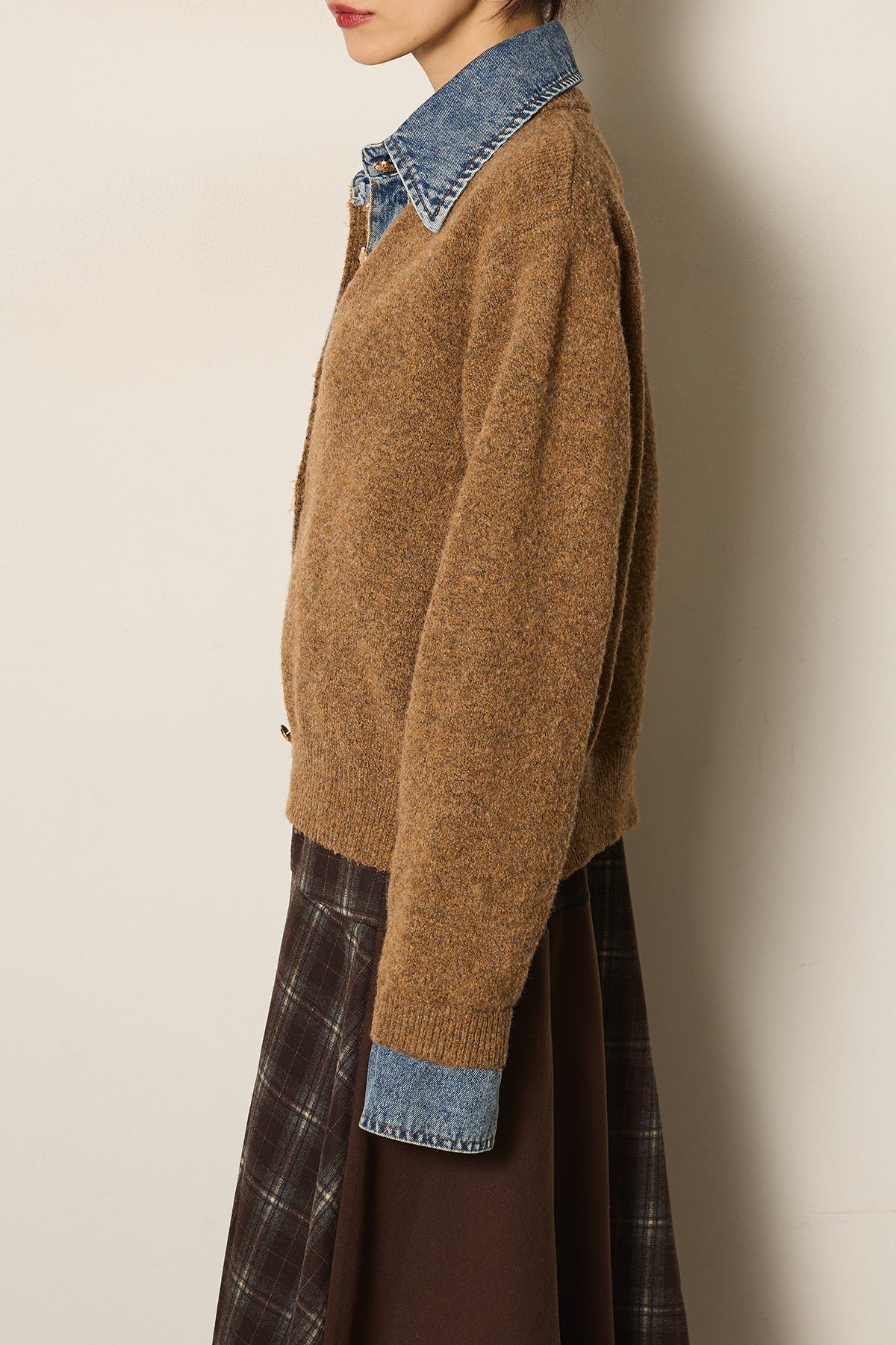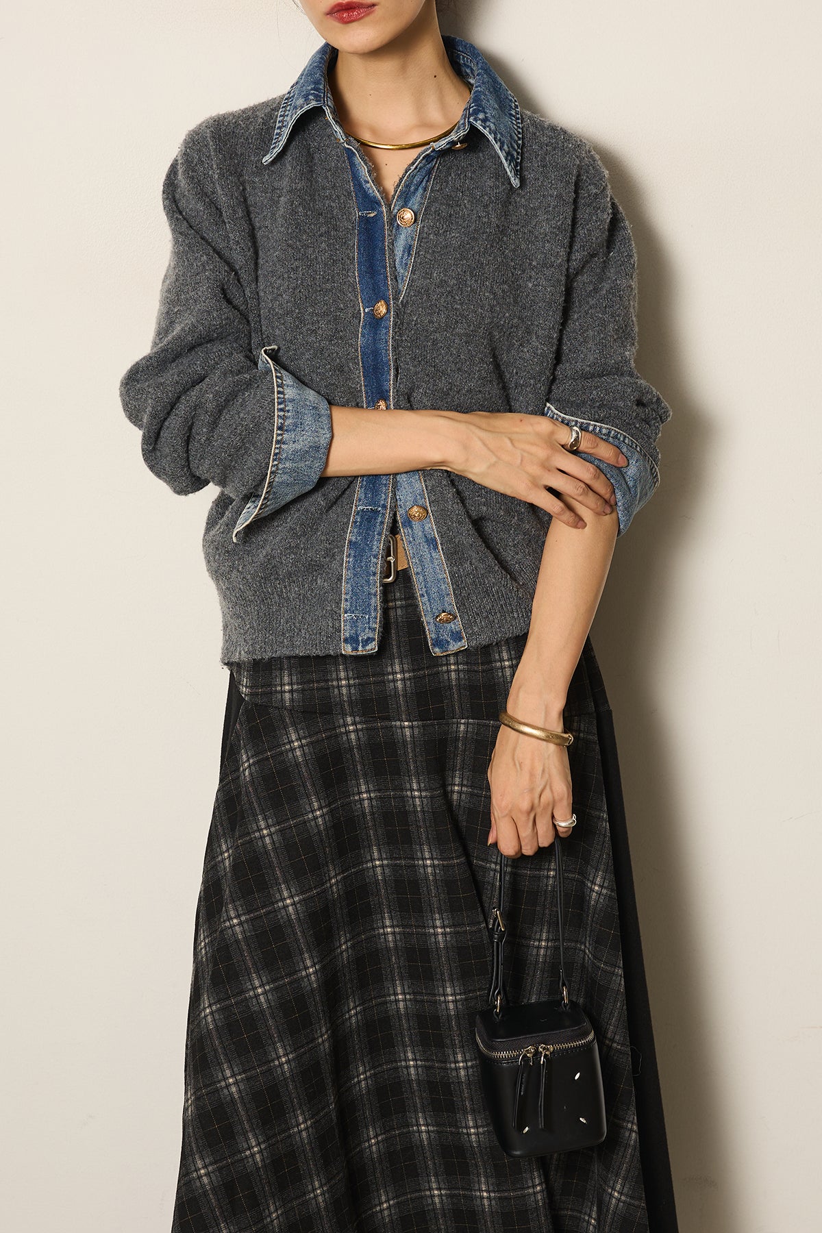 異素材の組み合わせが魅力のニットドッキングデニムシャツ。カジュアルなデニムに柔らかなニットを組み合わせ、程よい抜け感と温かみをプラスしました。襟や前立て、袖口のデニムディテールがアクセントになり、一枚で主役級の存在感を放ちます。シンプルなボトムと合わせるだけでこなれたスタイルが完成するアイテムです。