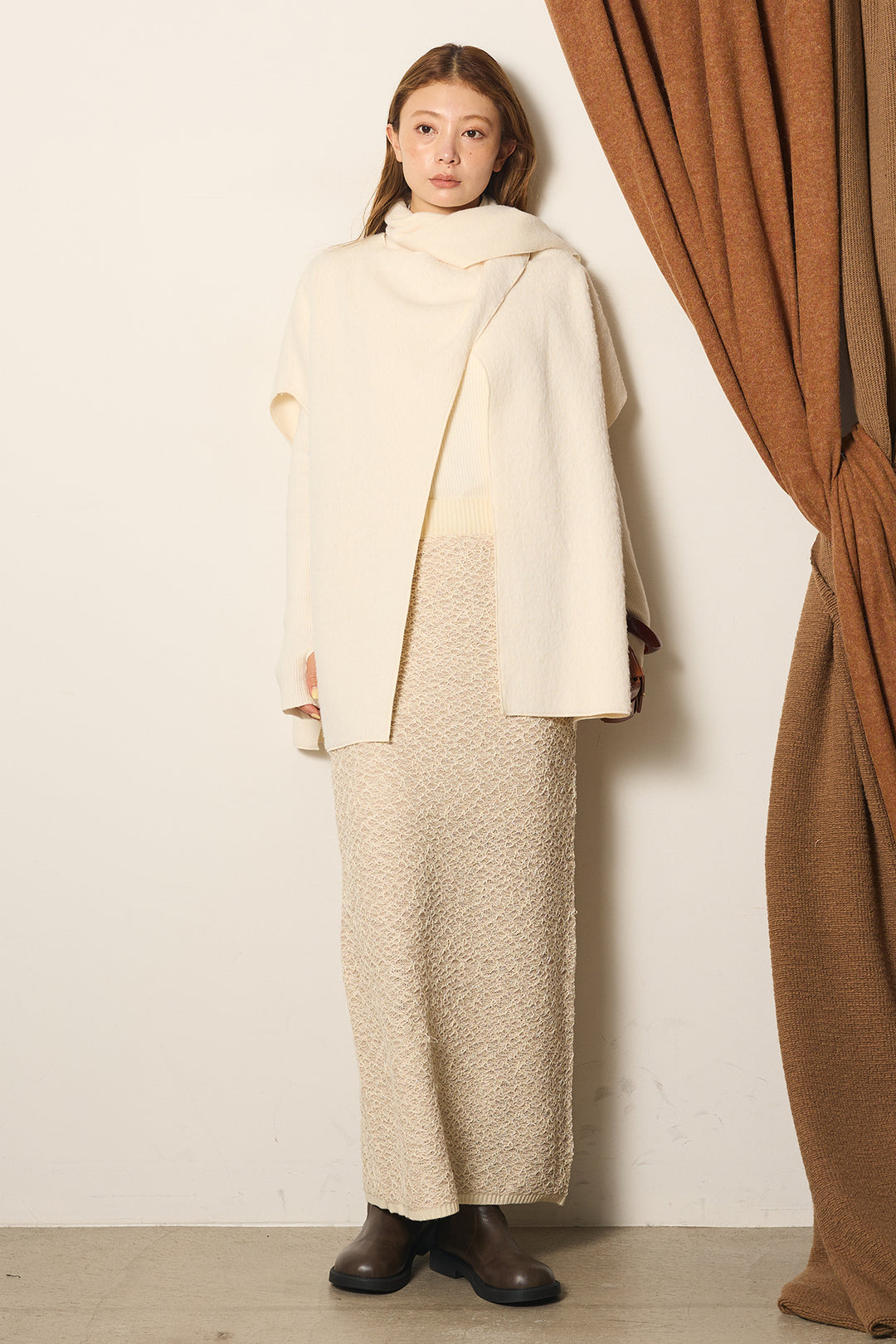 [SET]ネック巻きデザインシャギーベスト+ミックスニットワイドスカート(2set)
