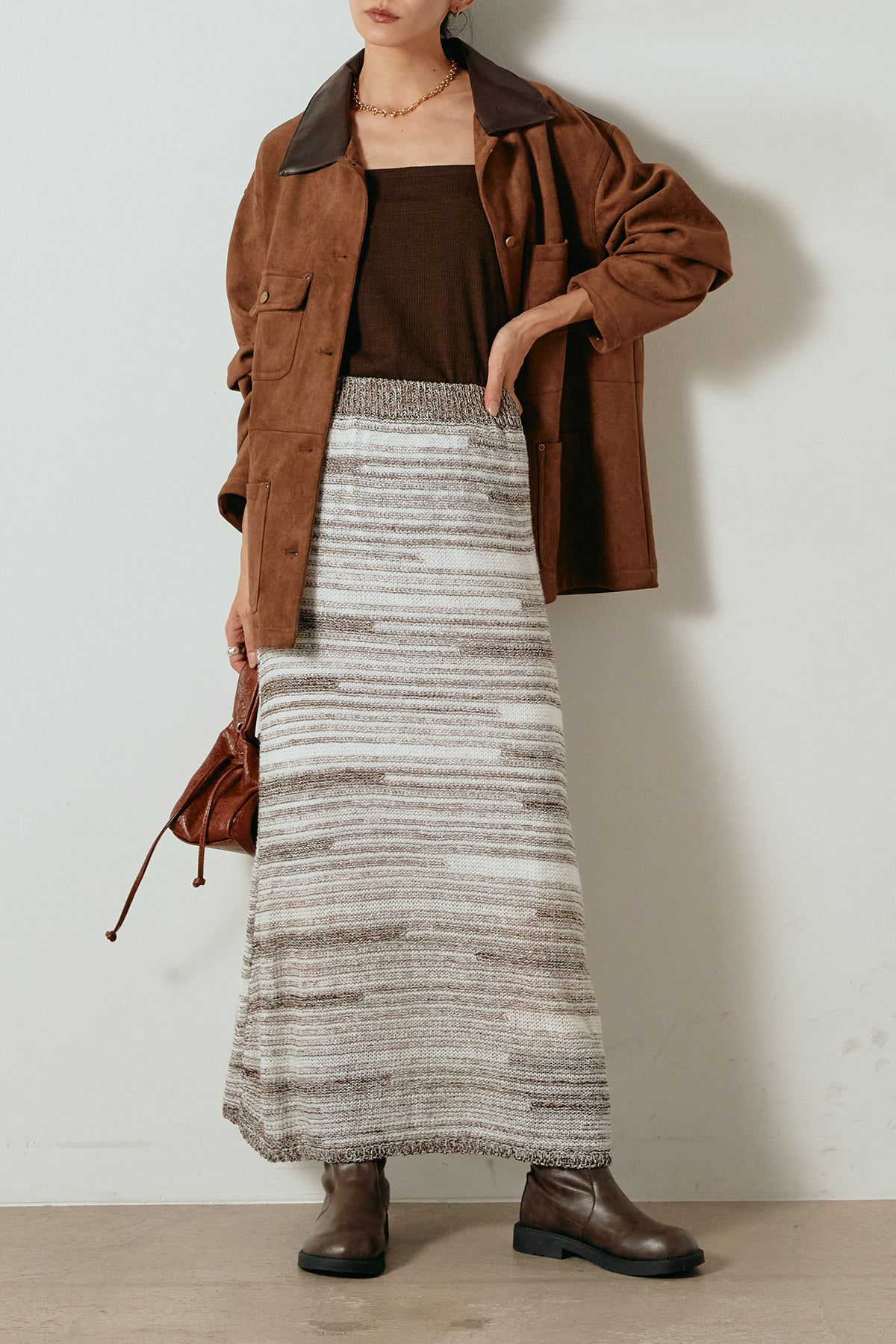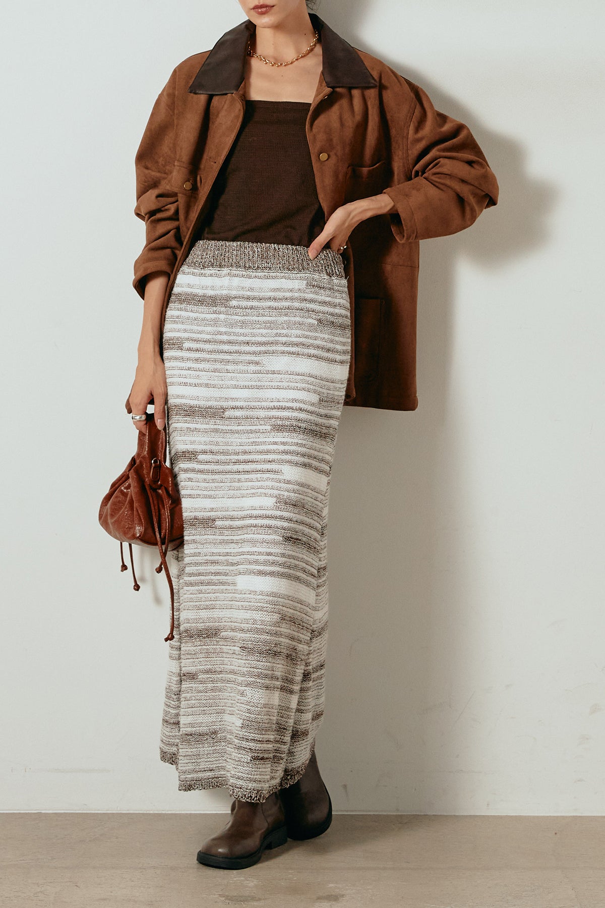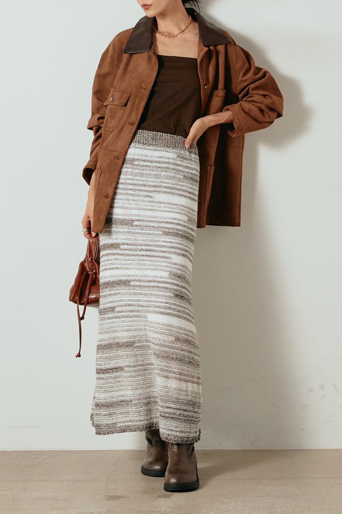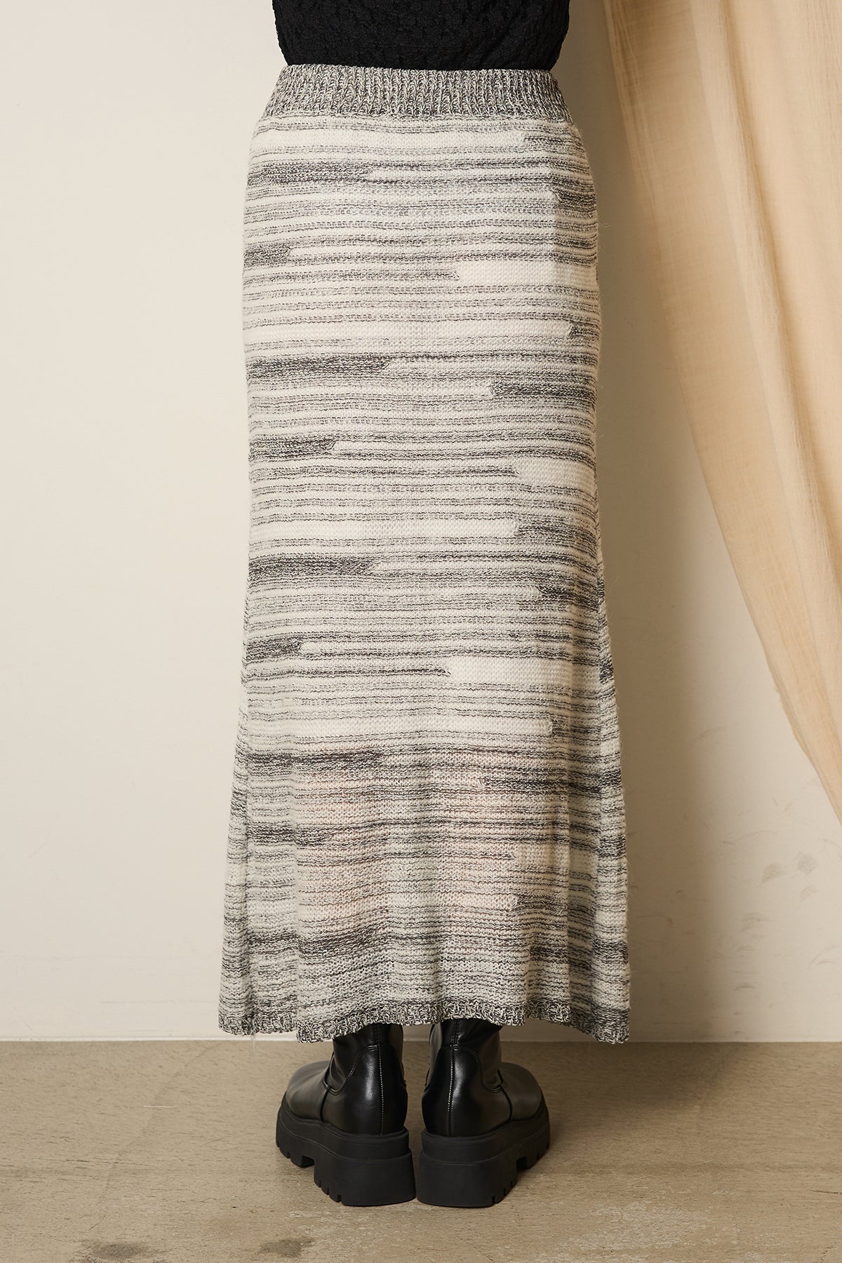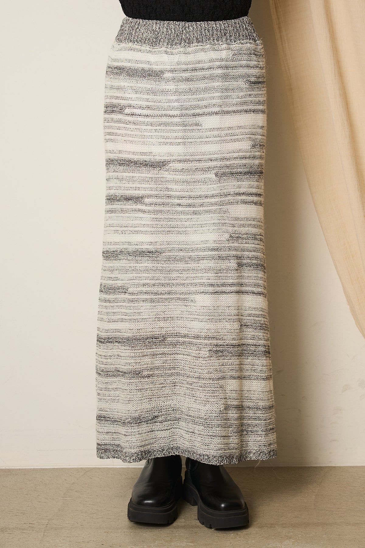 ニュアンス感のある“かすれライン柄”が目を惹く、表情豊かなニットスカート。
