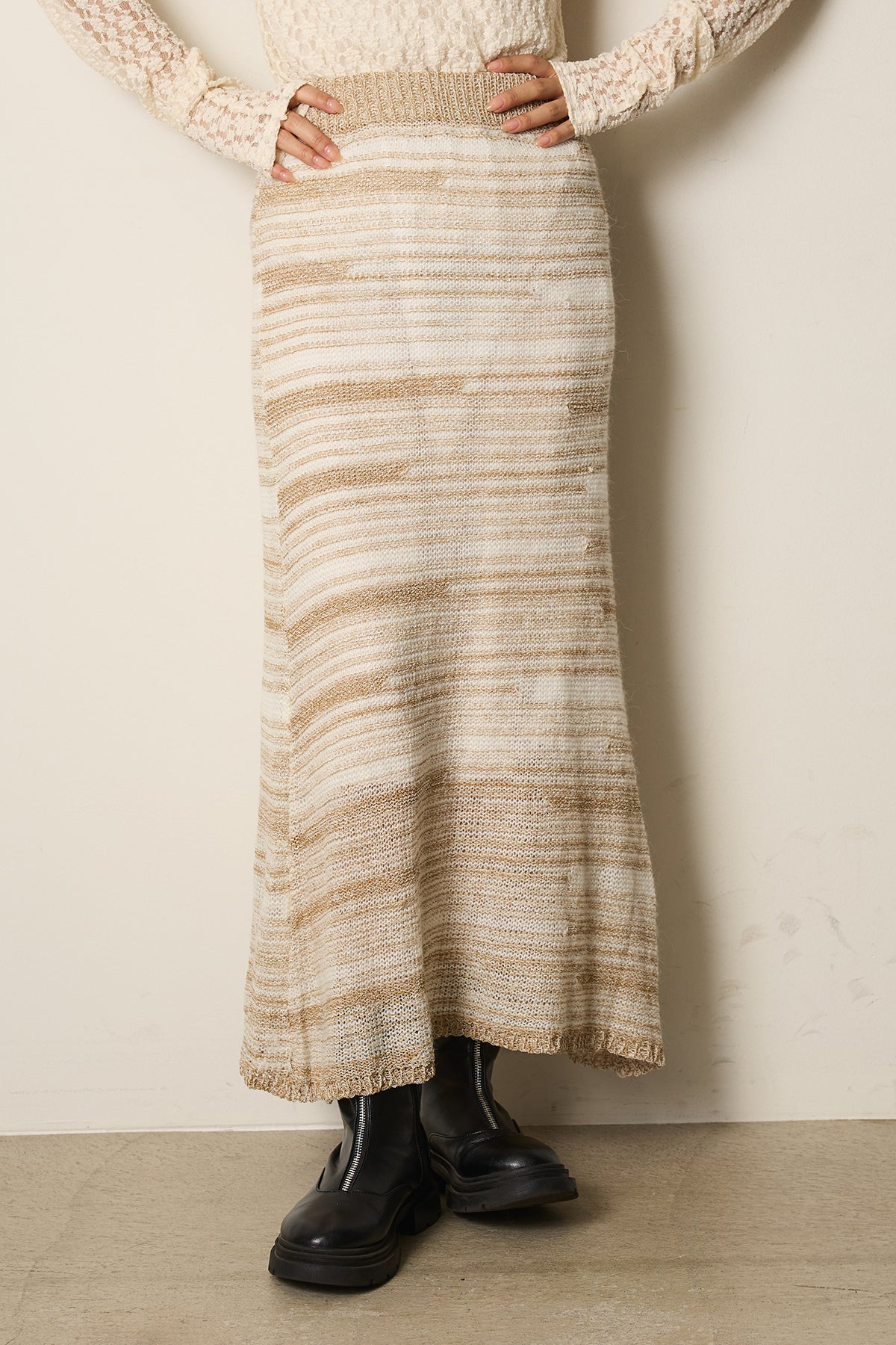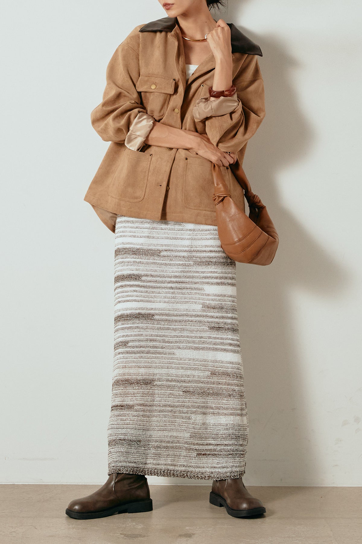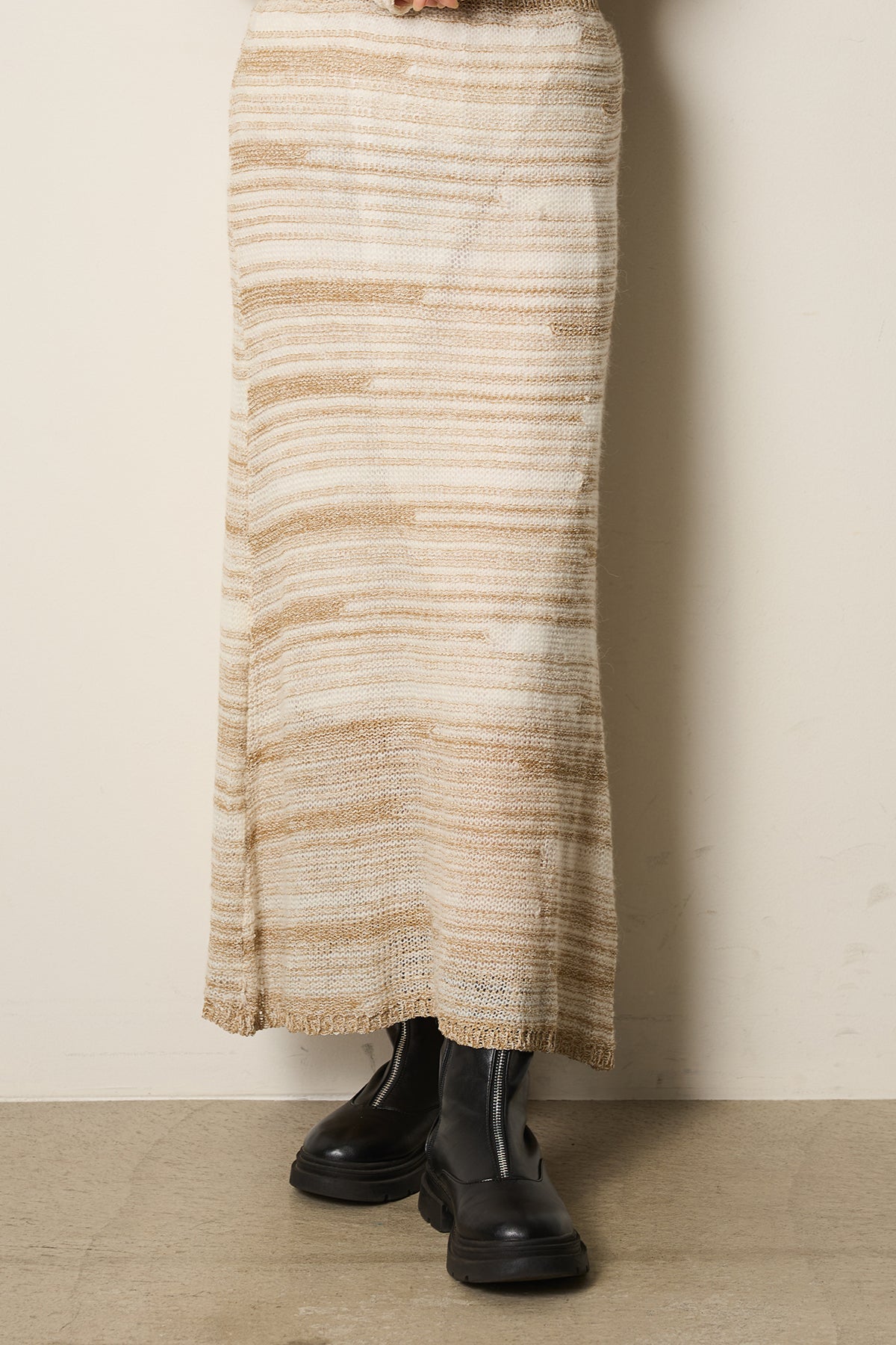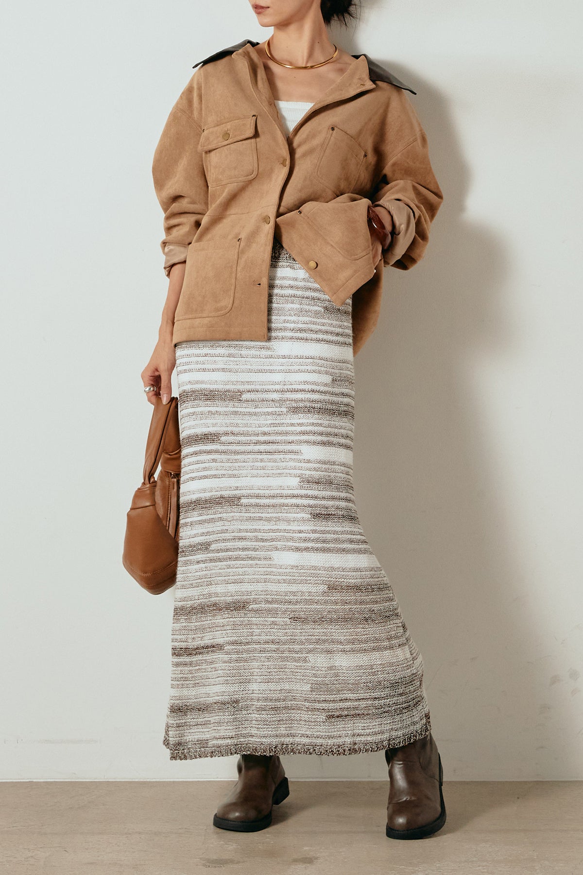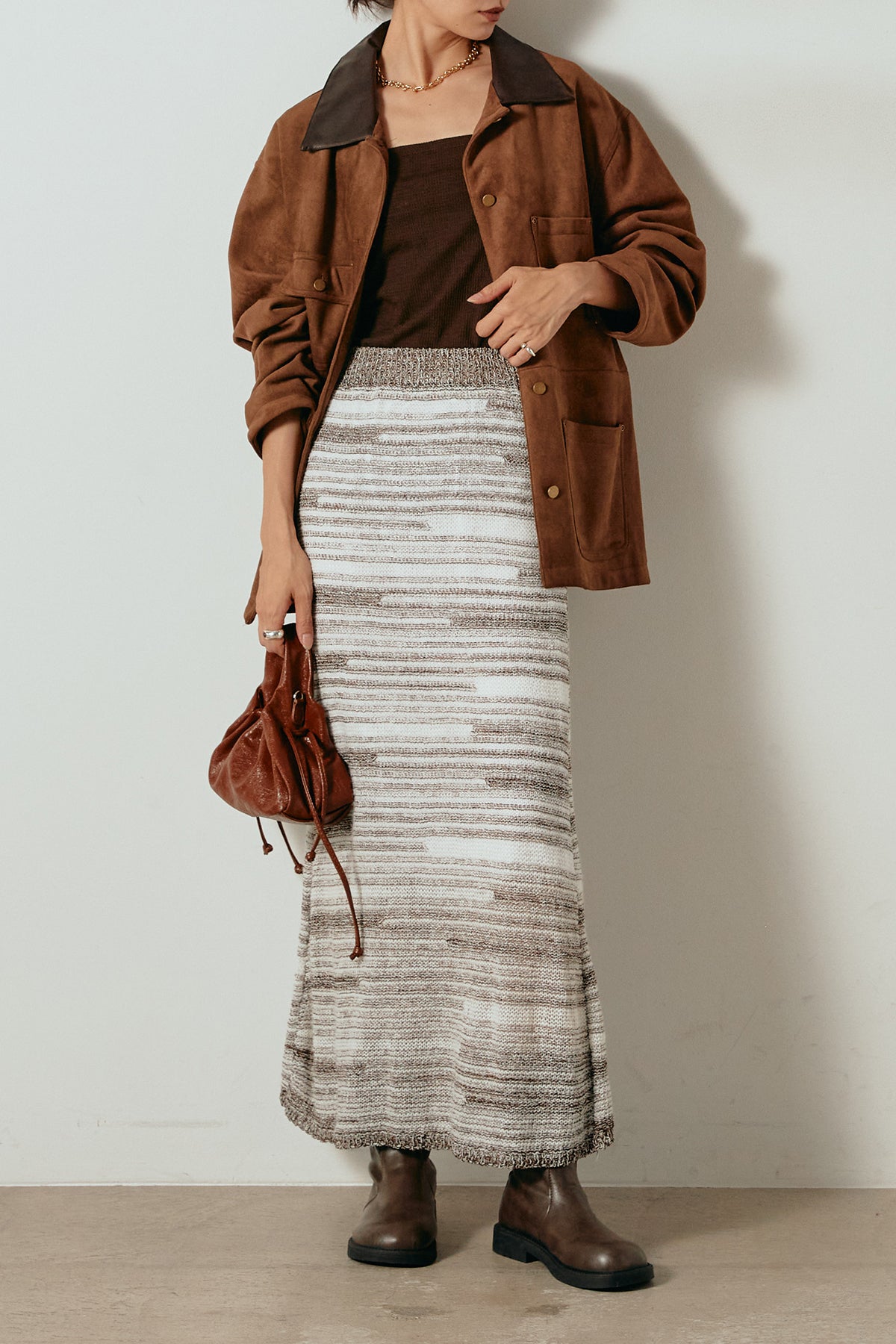 ニュアンス感のある“かすれライン柄”が目を惹く、表情豊かなニットスカート。