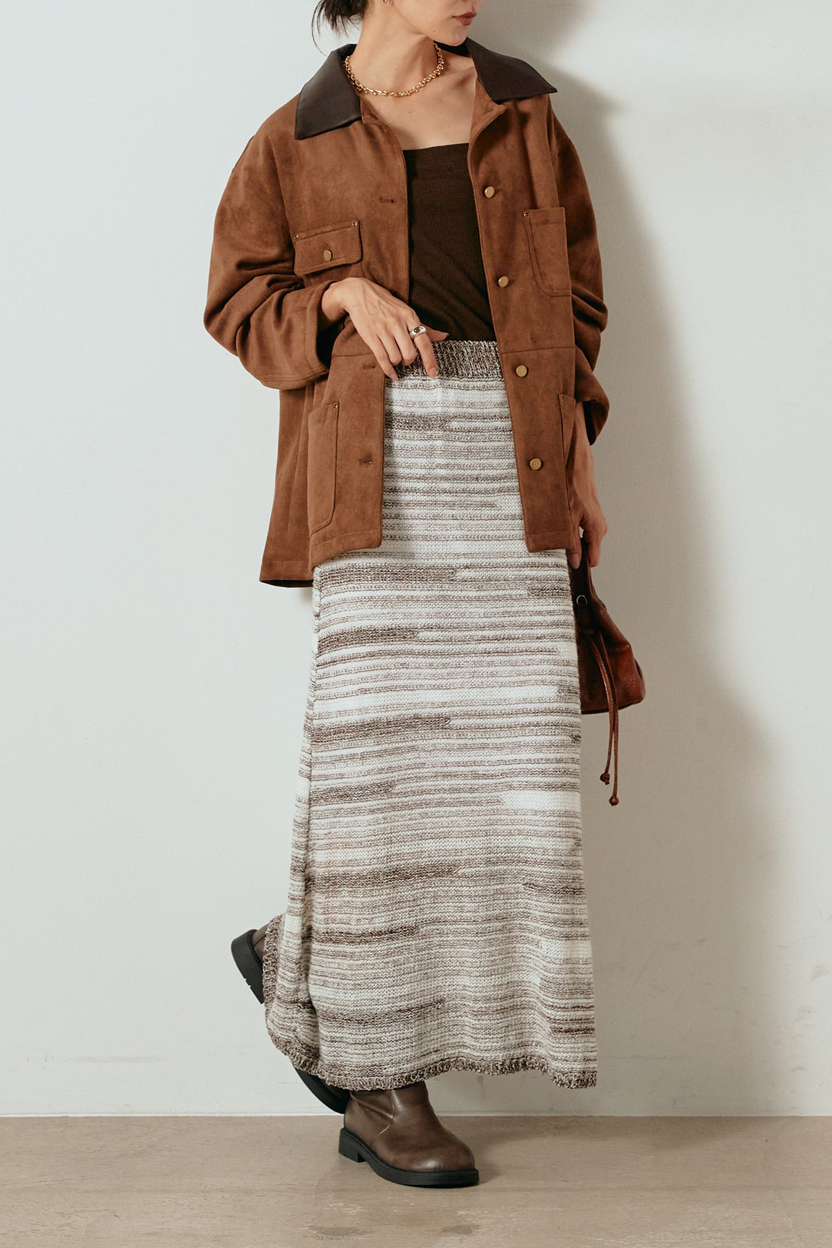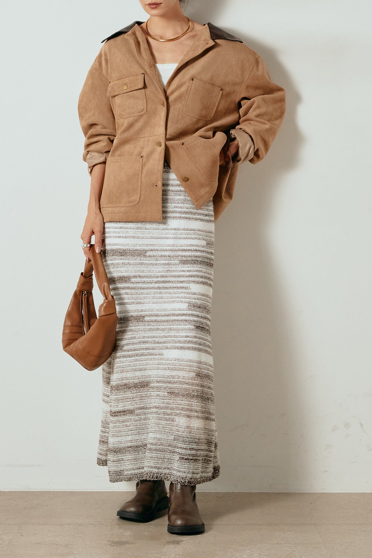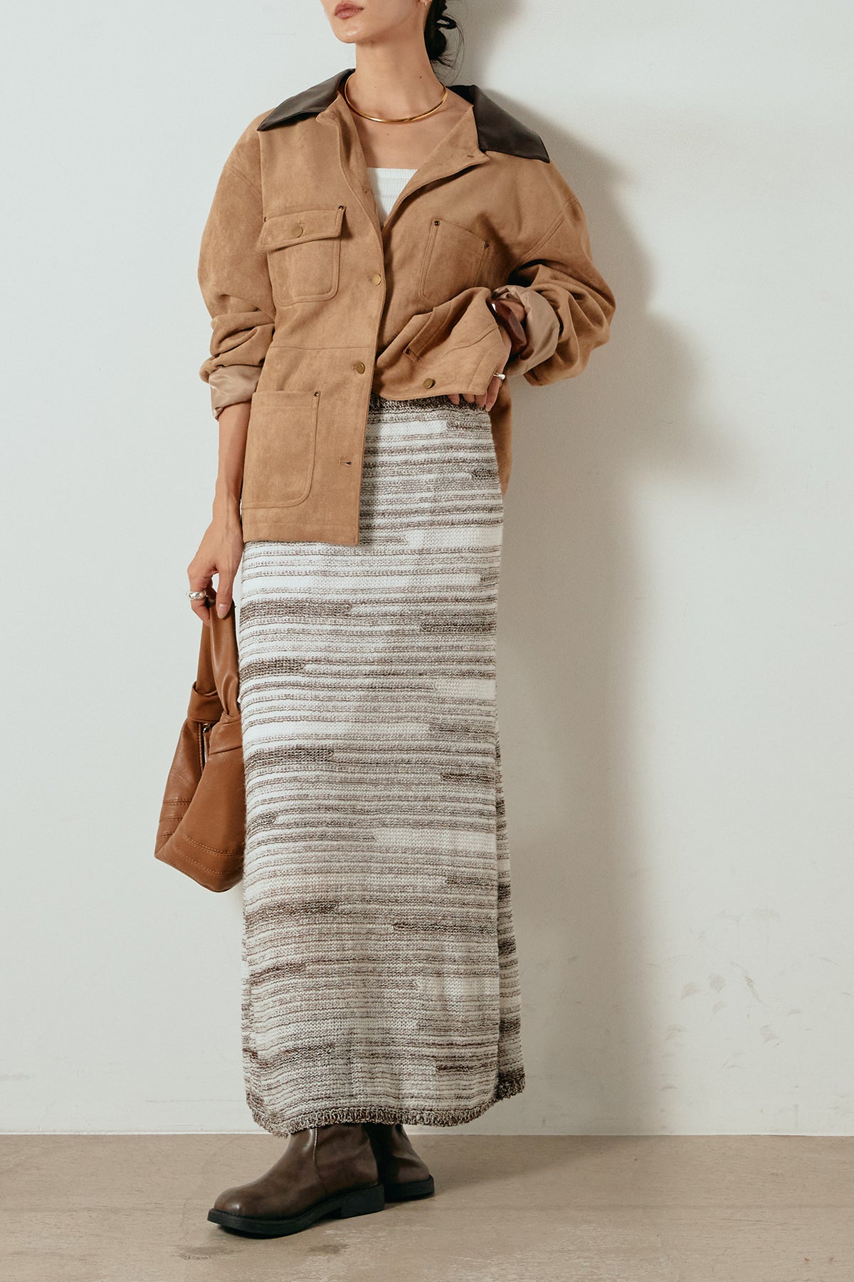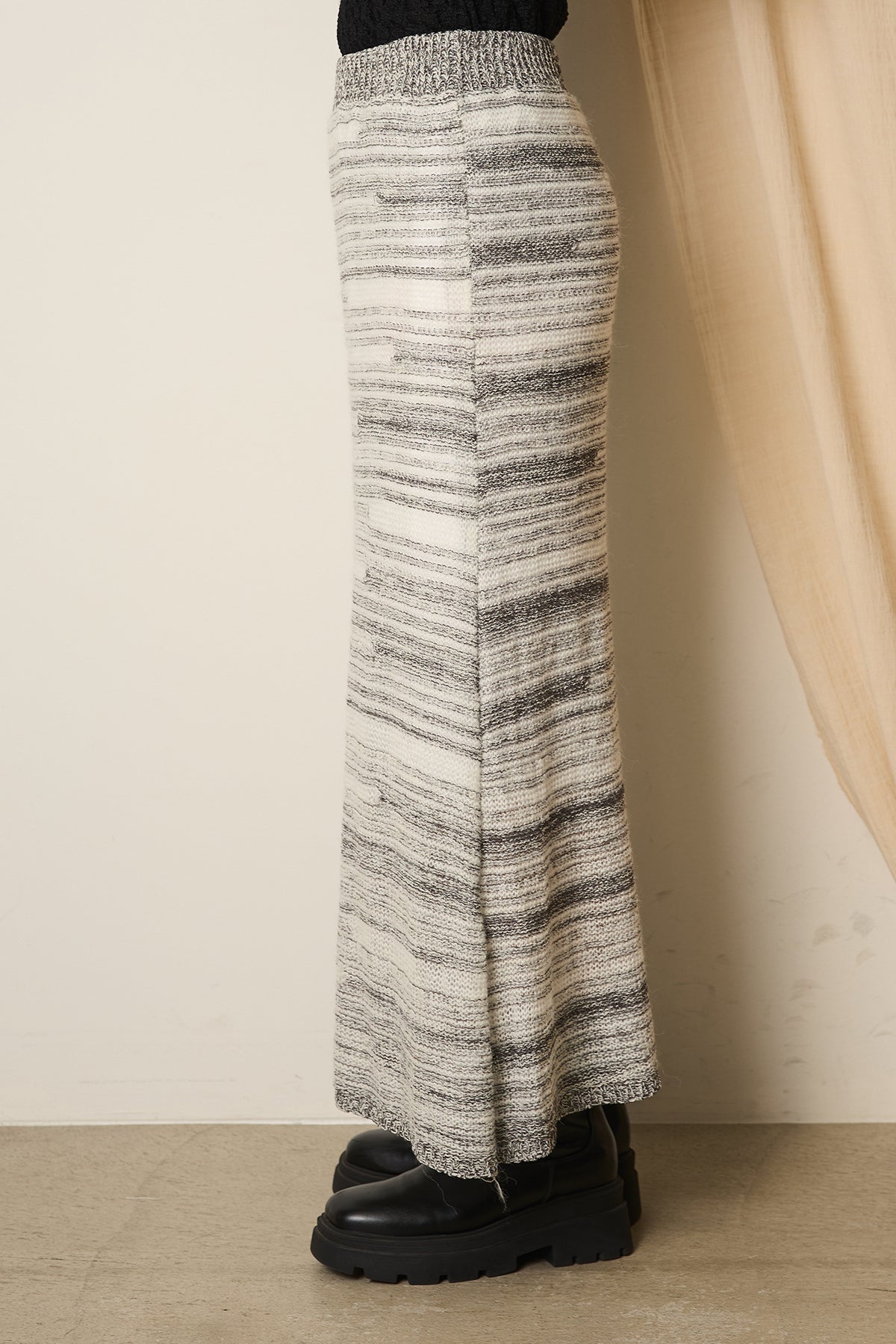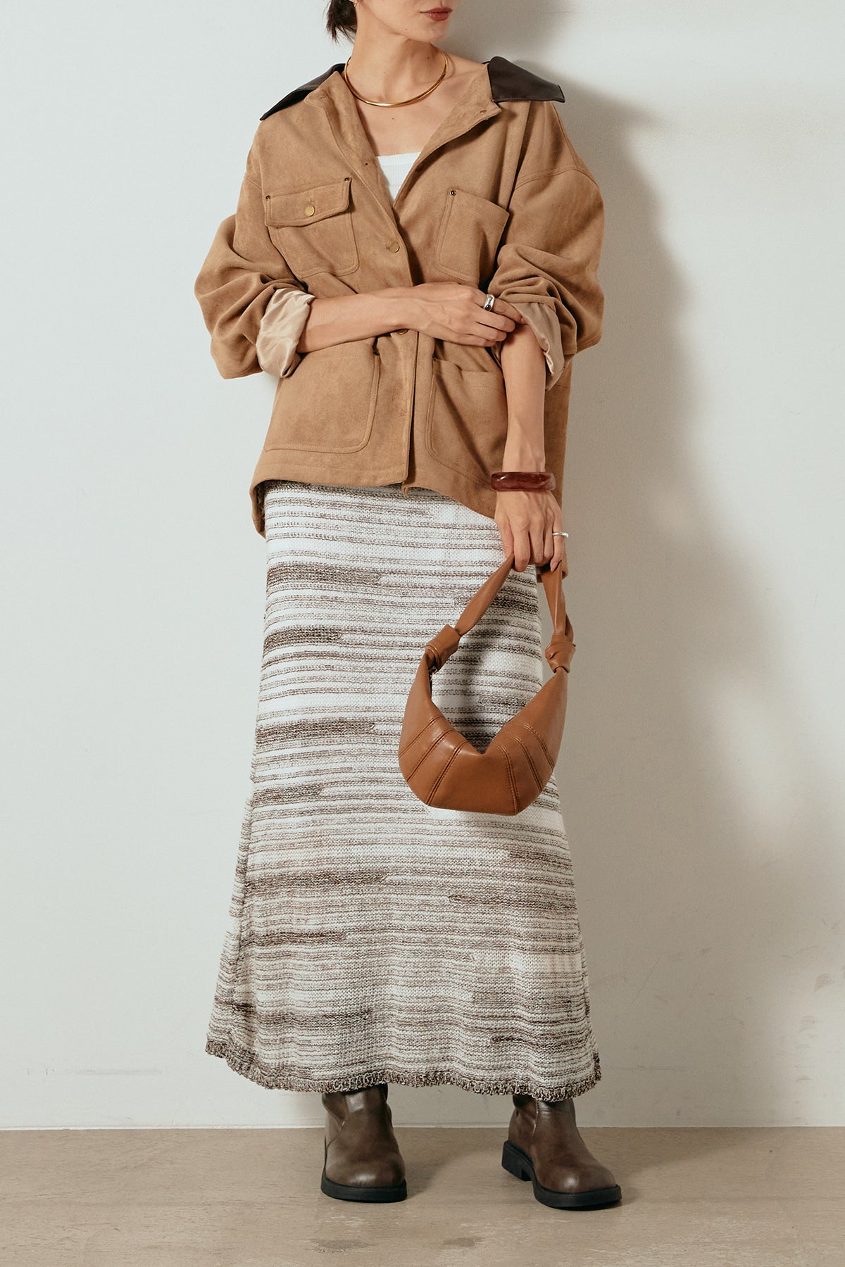 ニュアンス感のある“かすれライン柄”が目を惹く、表情豊かなニットスカート。