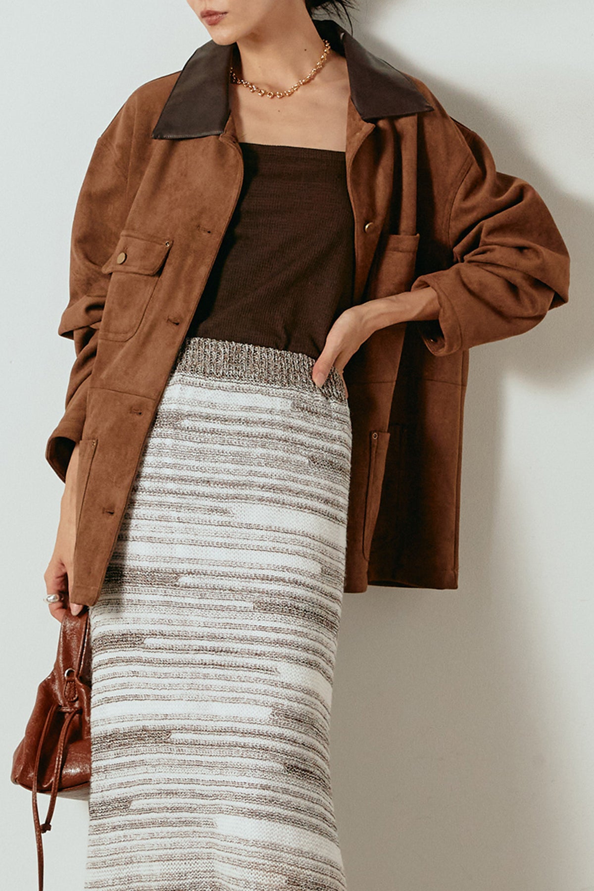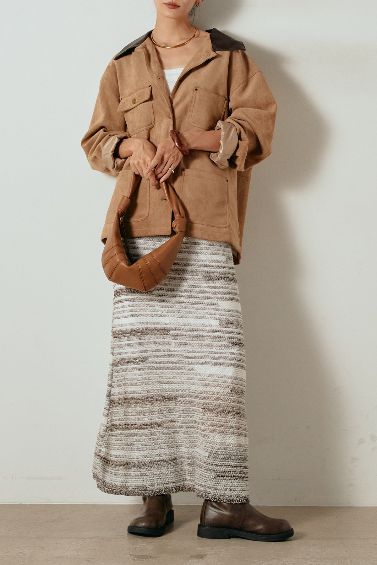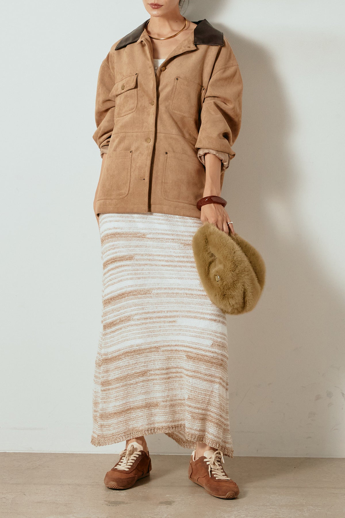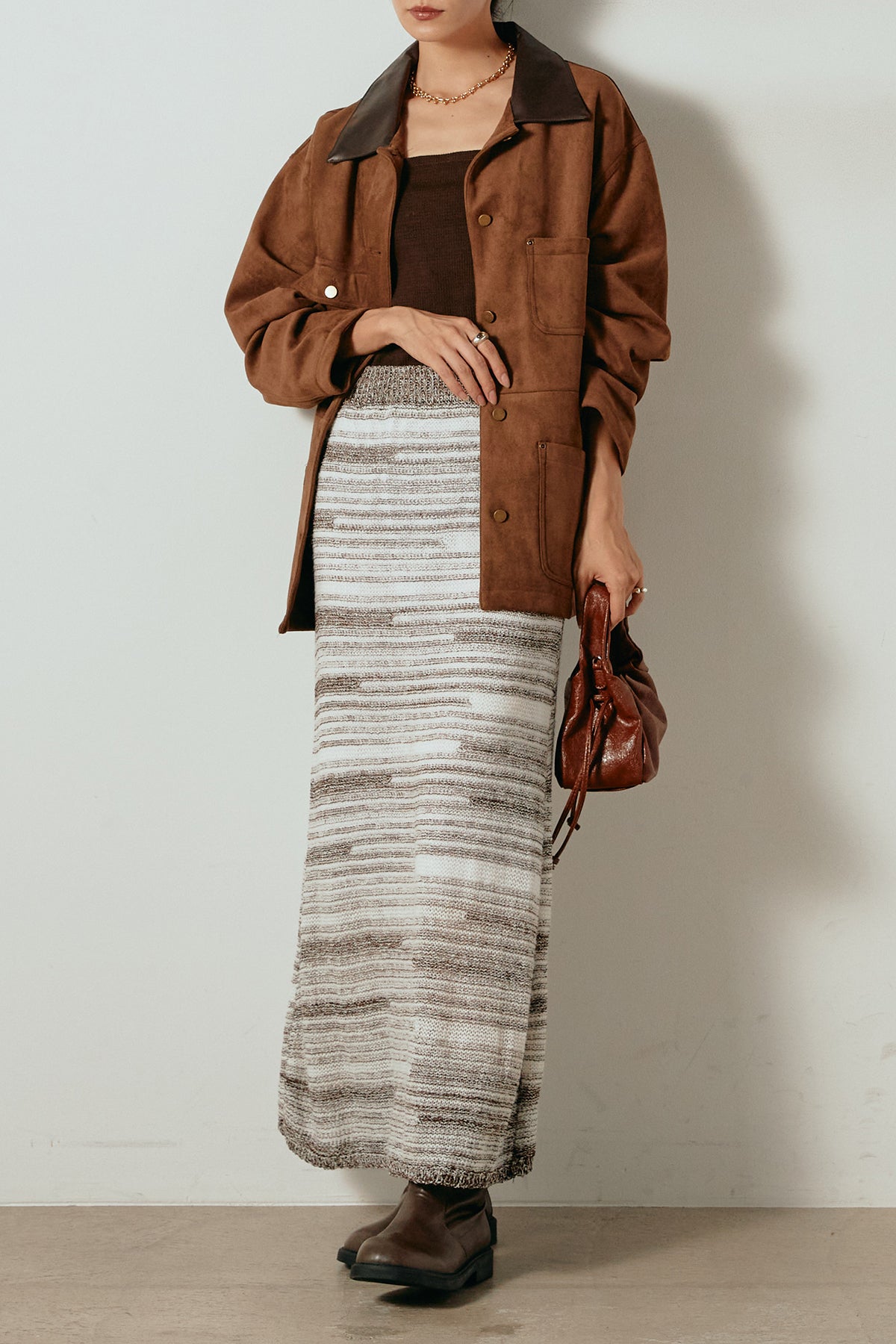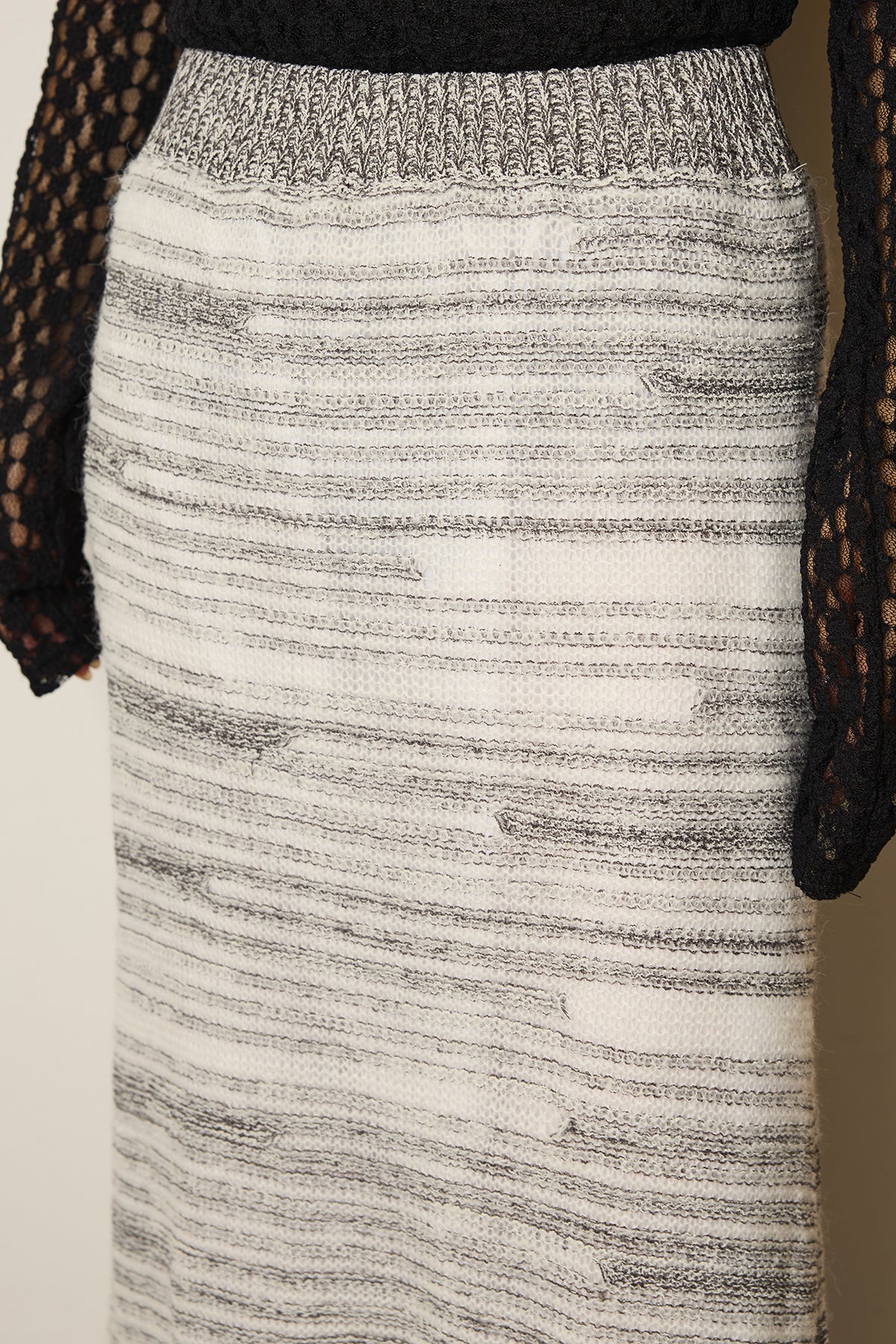 ニュアンス感のある“かすれライン柄”が目を惹く、表情豊かなニットスカート。