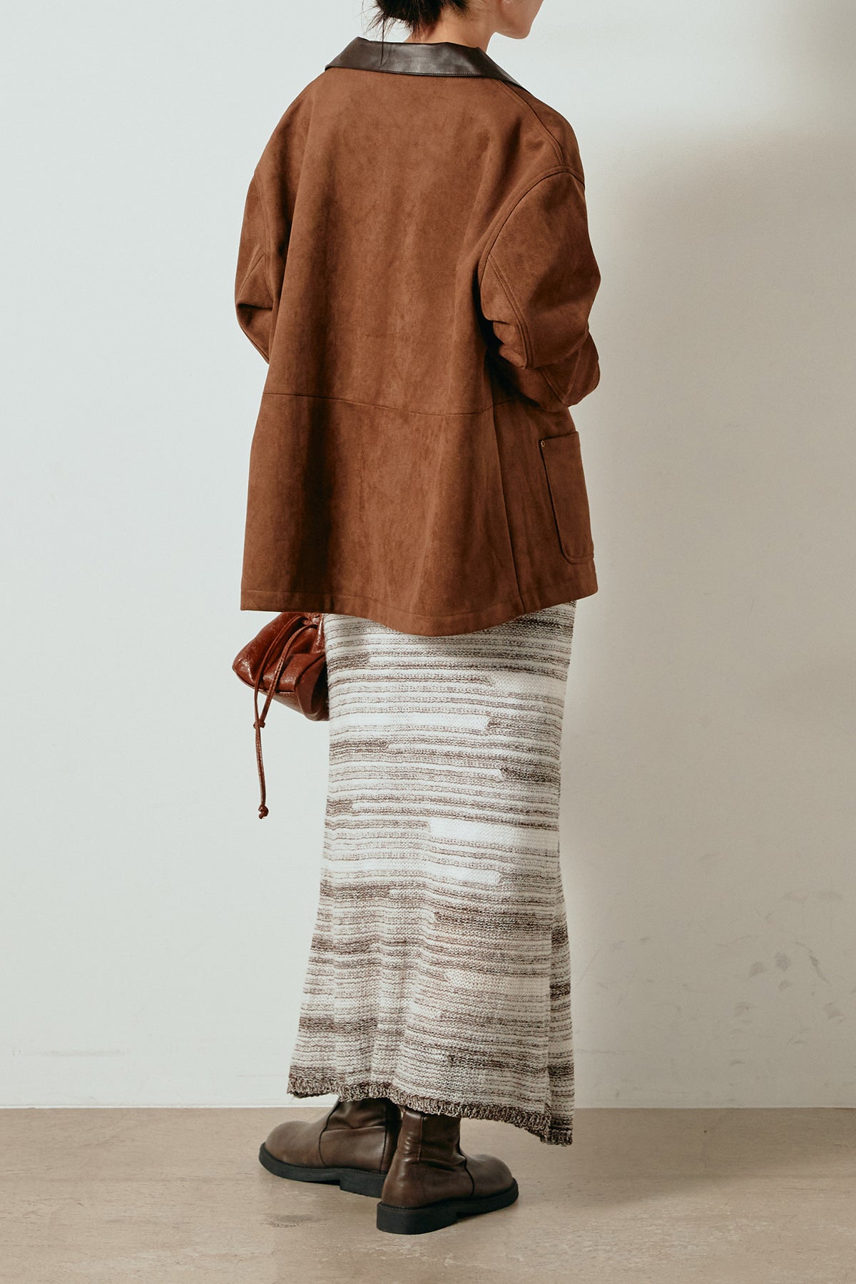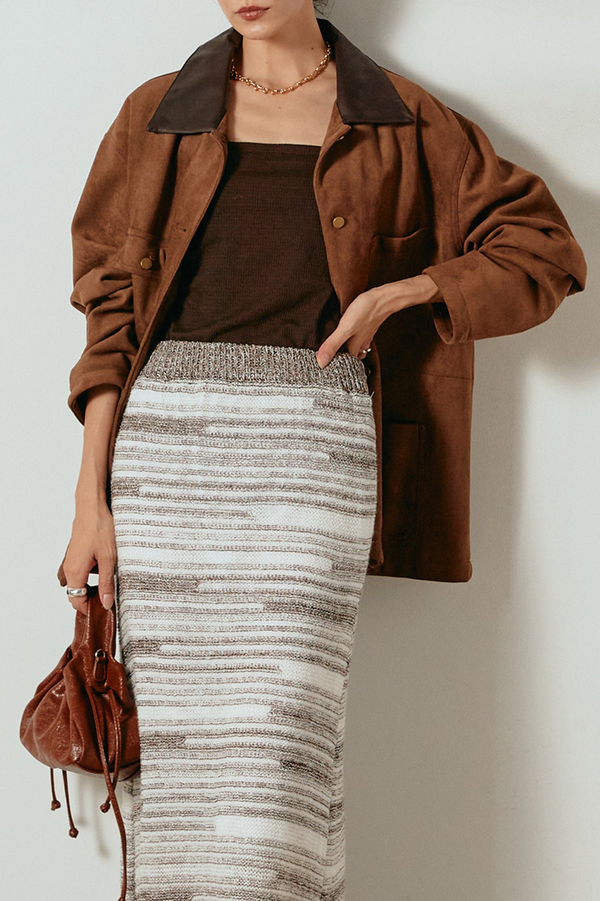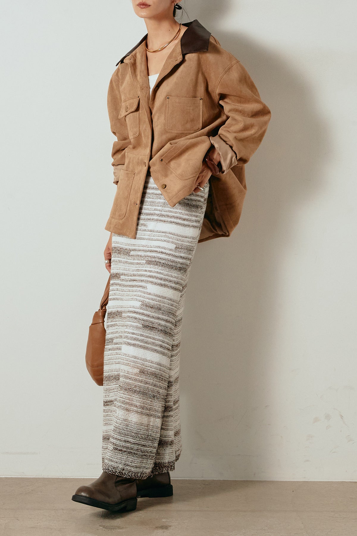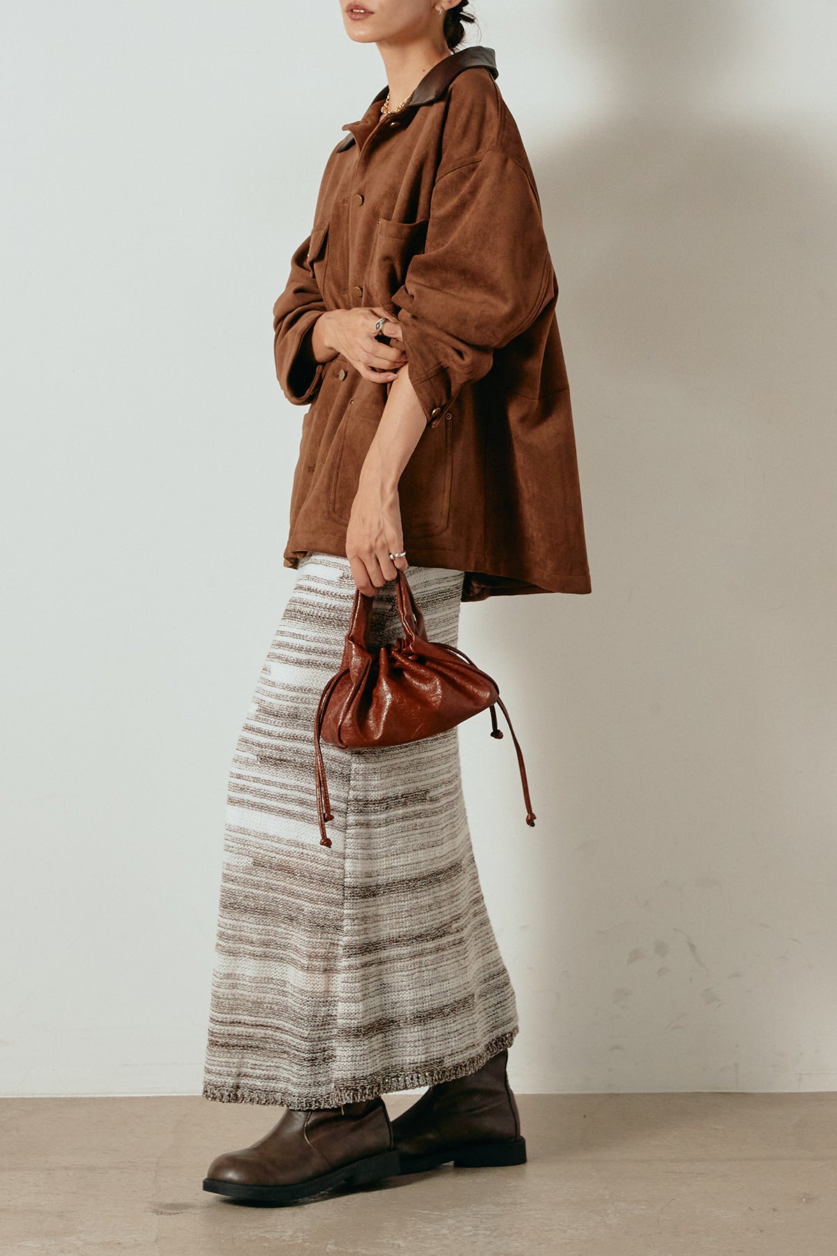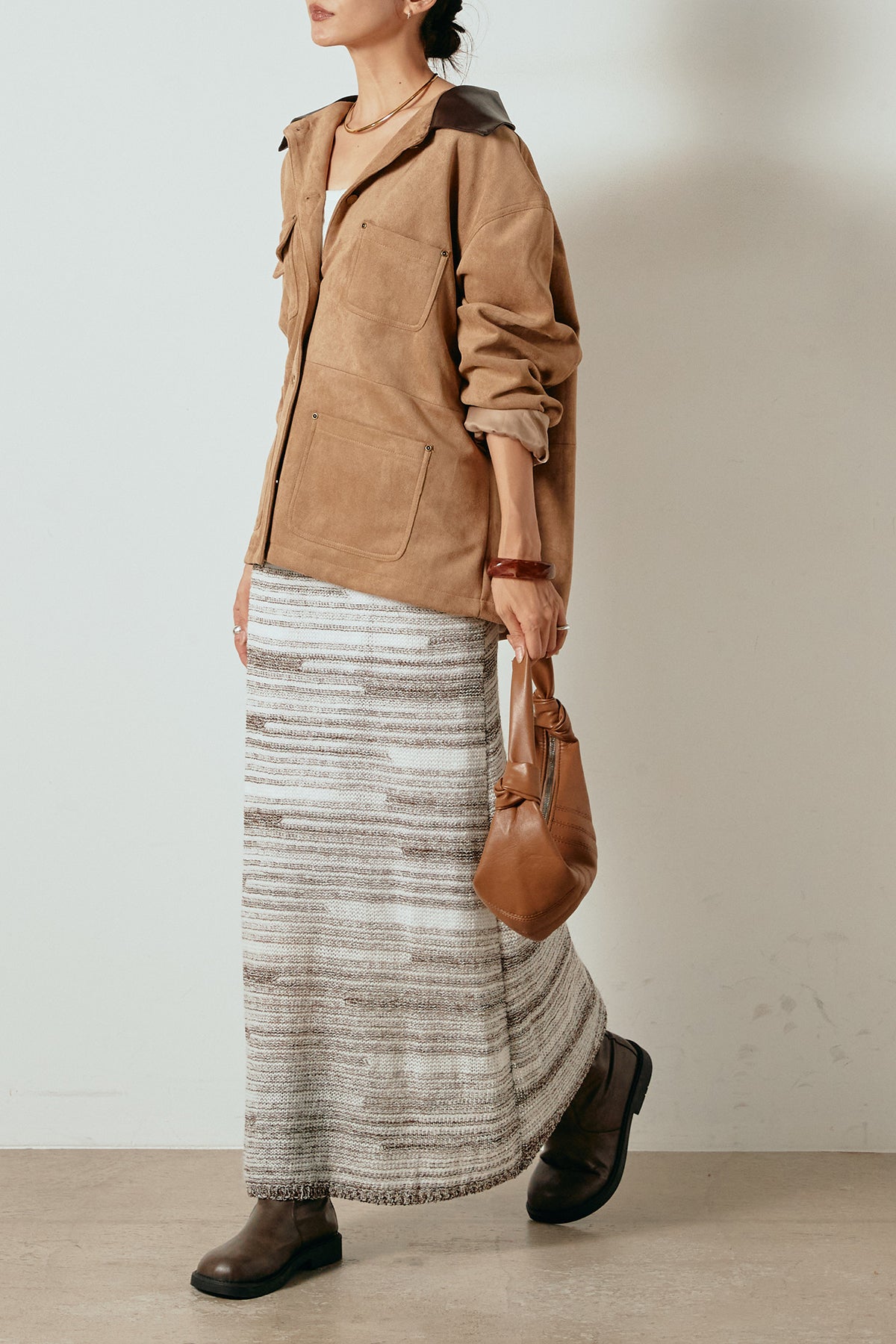 ニュアンス感のある“かすれライン柄”が目を惹く、表情豊かなニットスカート。