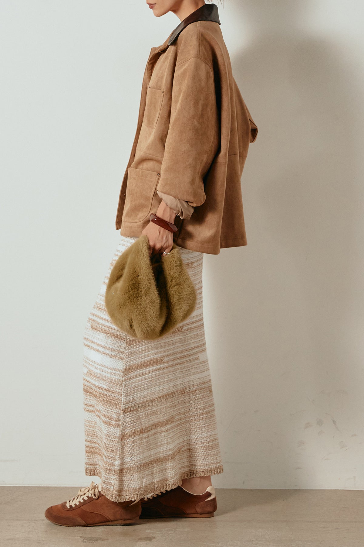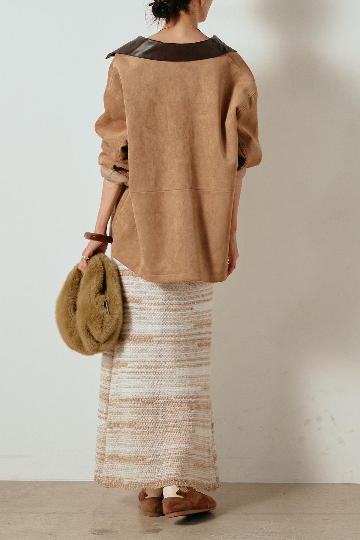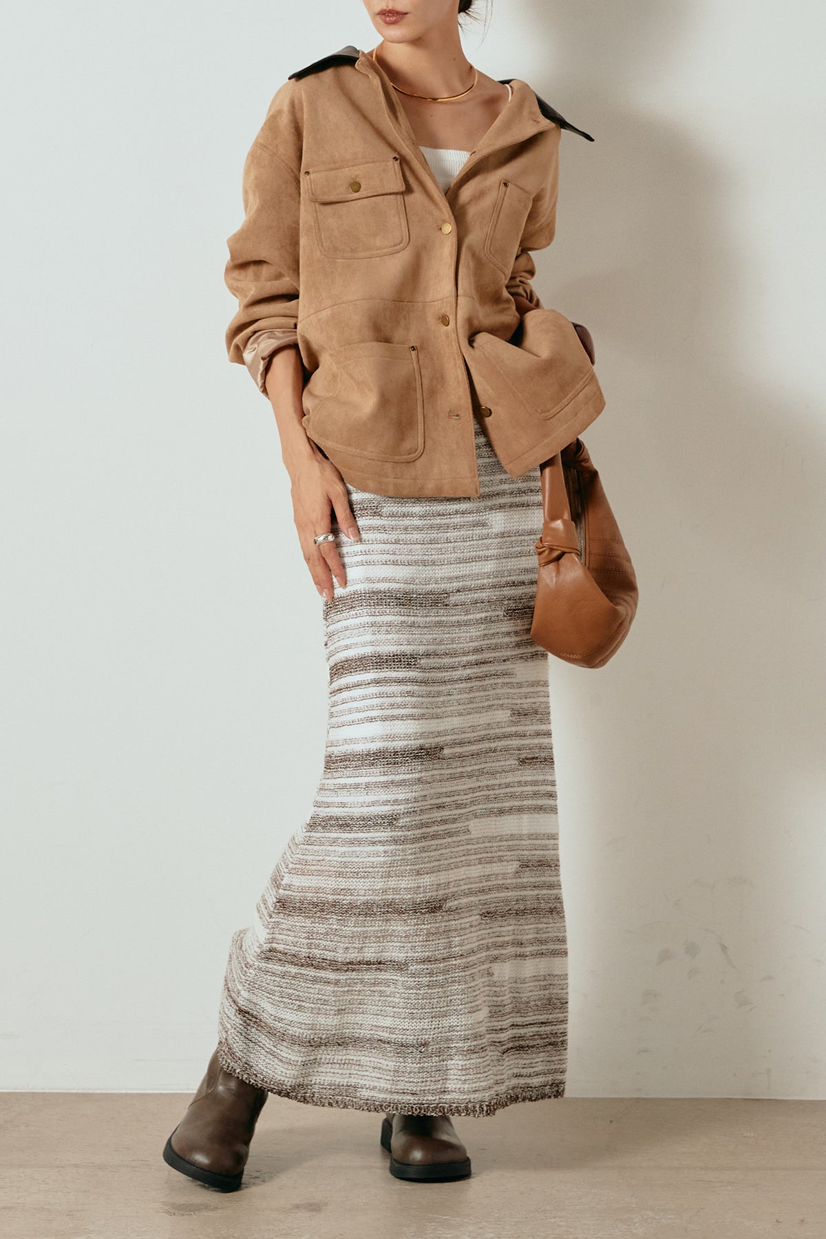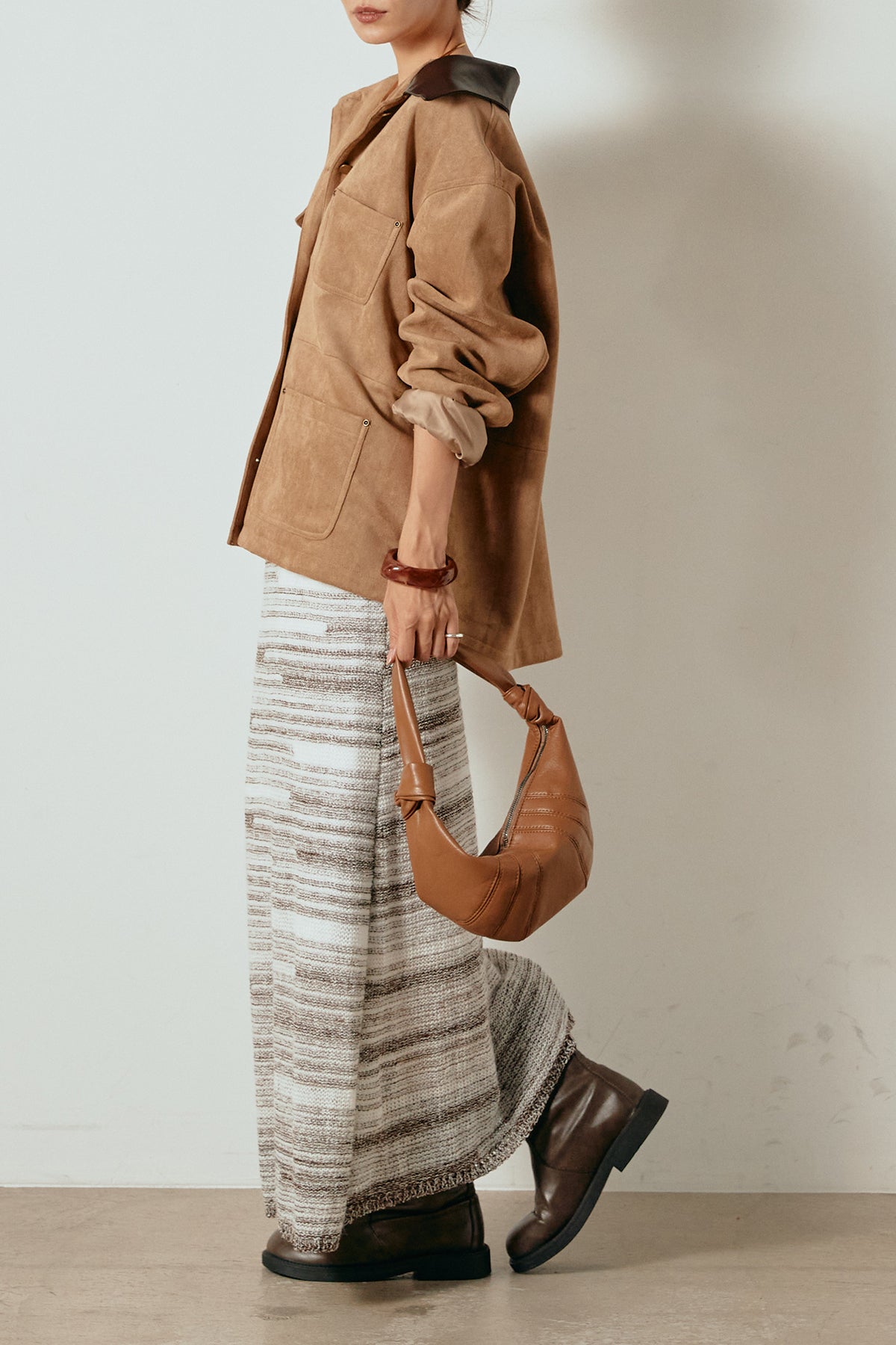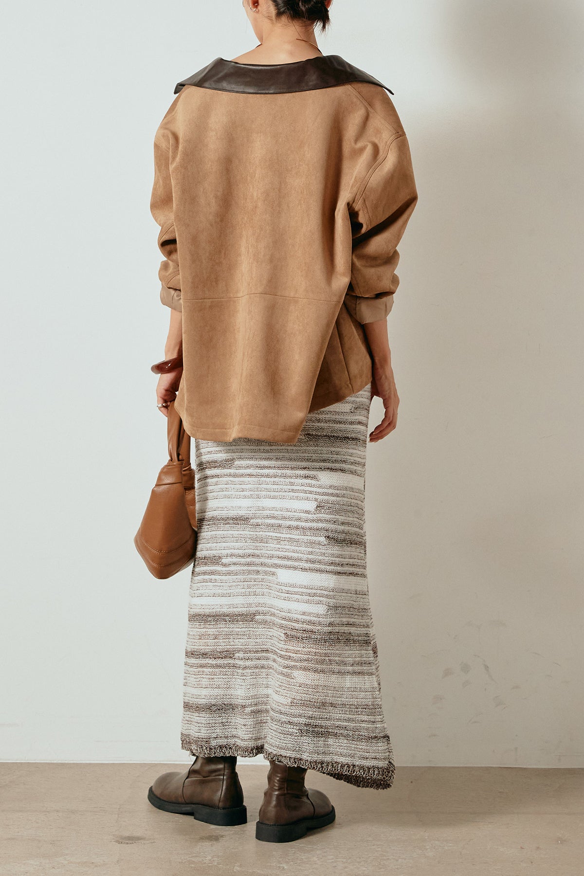 ニュアンス感のある“かすれライン柄”が目を惹く、表情豊かなニットスカート。