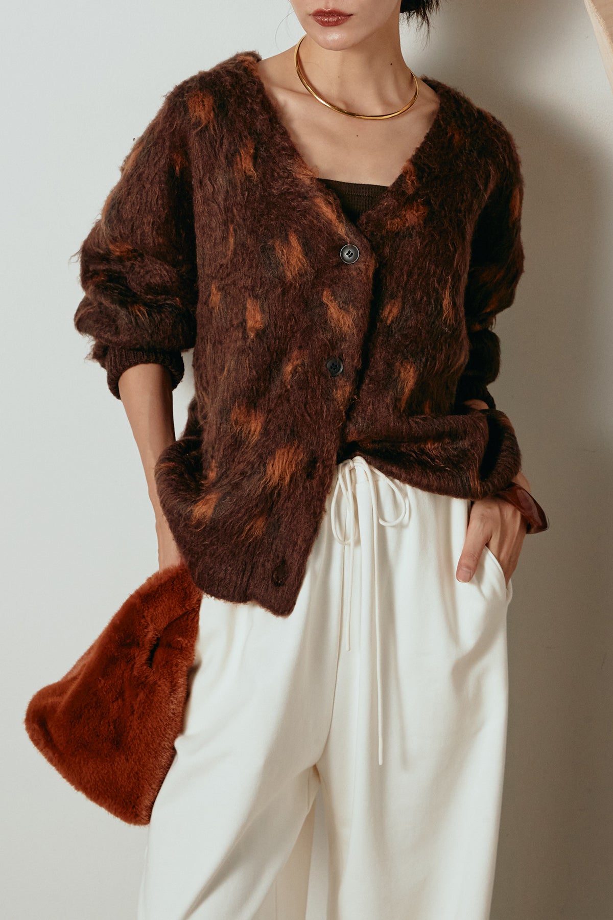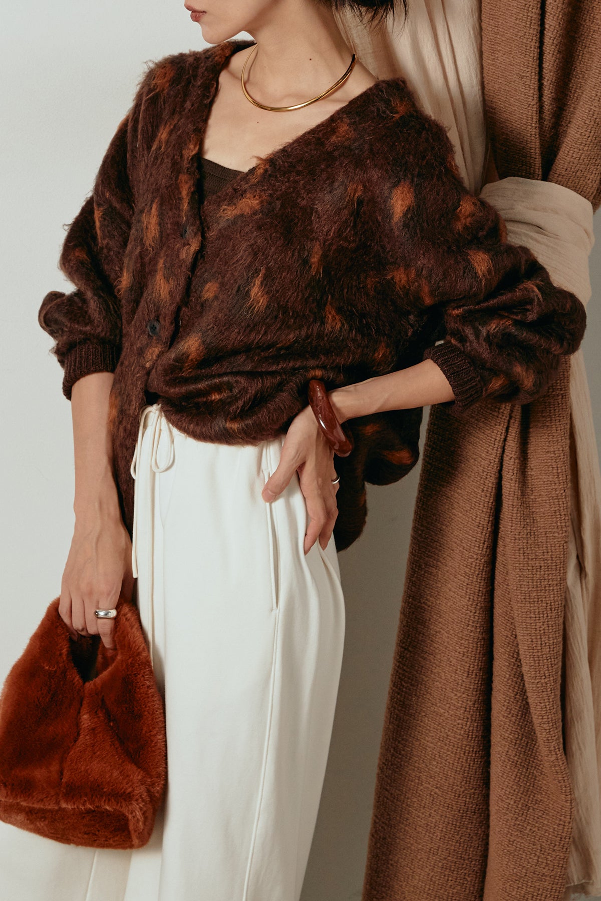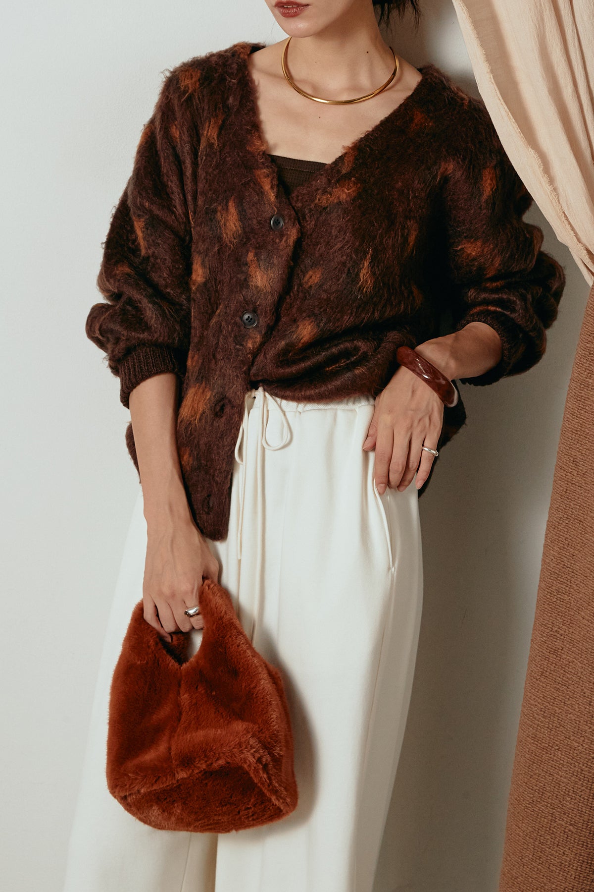 モヘアタッチのふんわりとした素材感が魅力のVネックカーディガン。