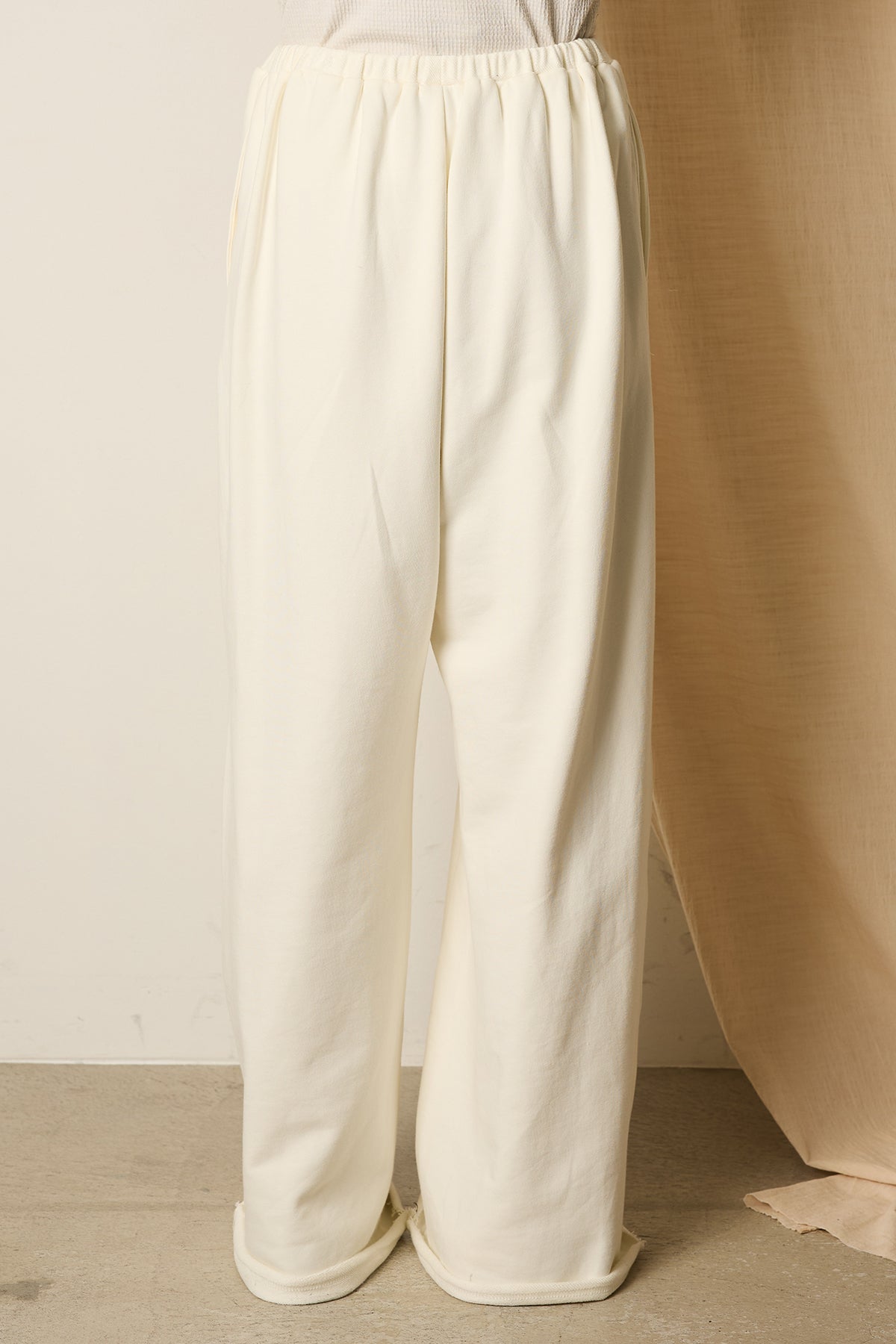 リラックス感たっぷりのワイドシルエットが魅力のスウェットパンツ。
