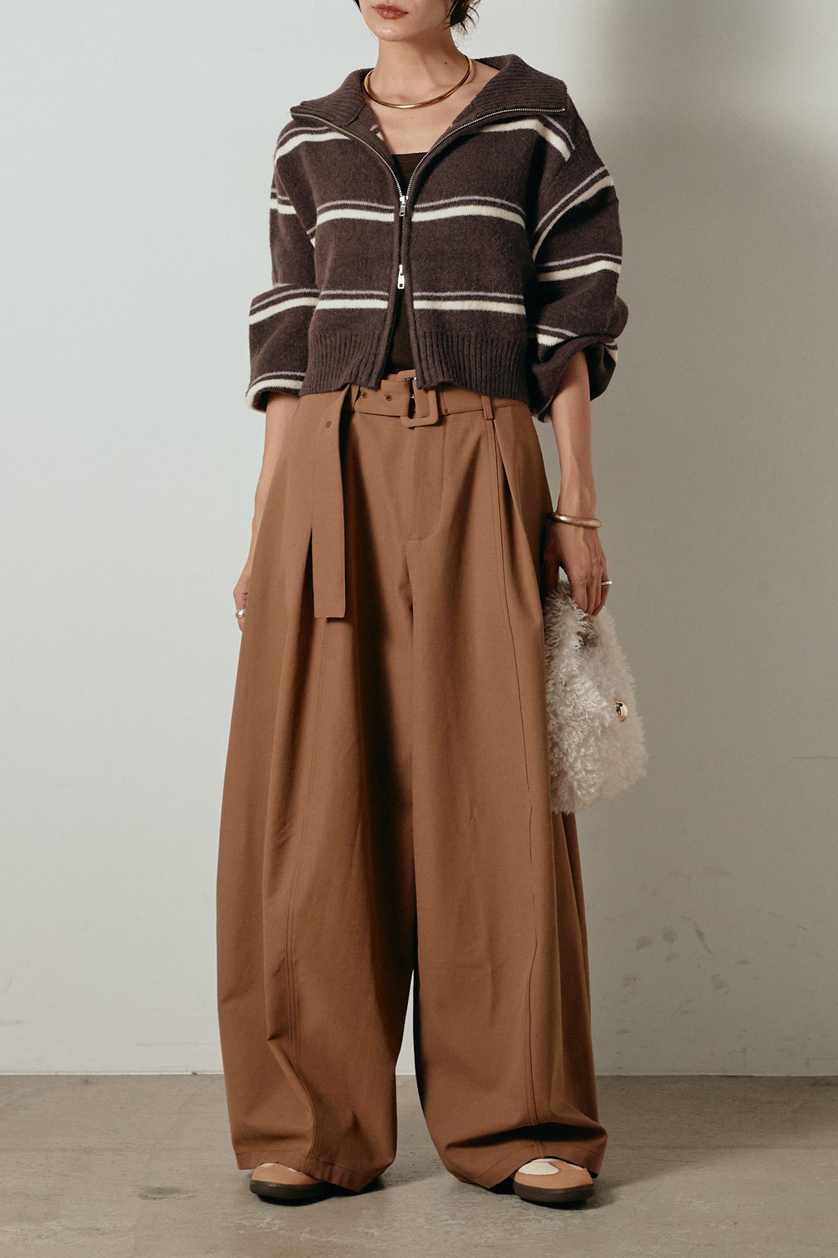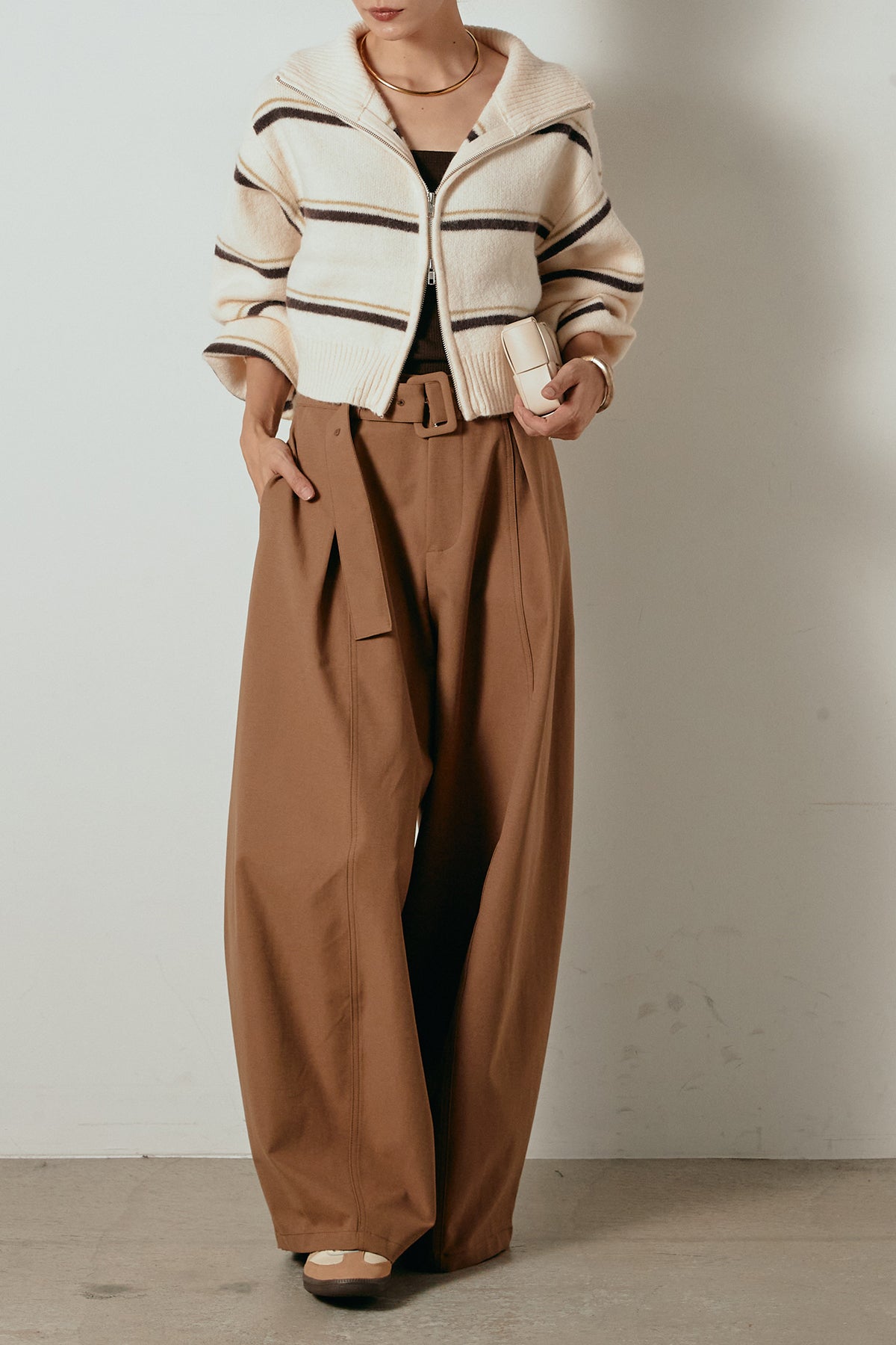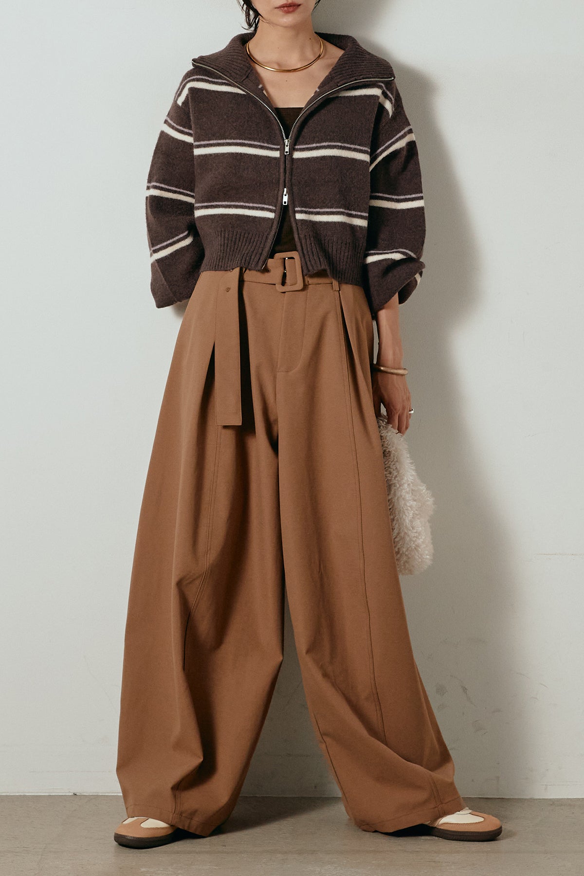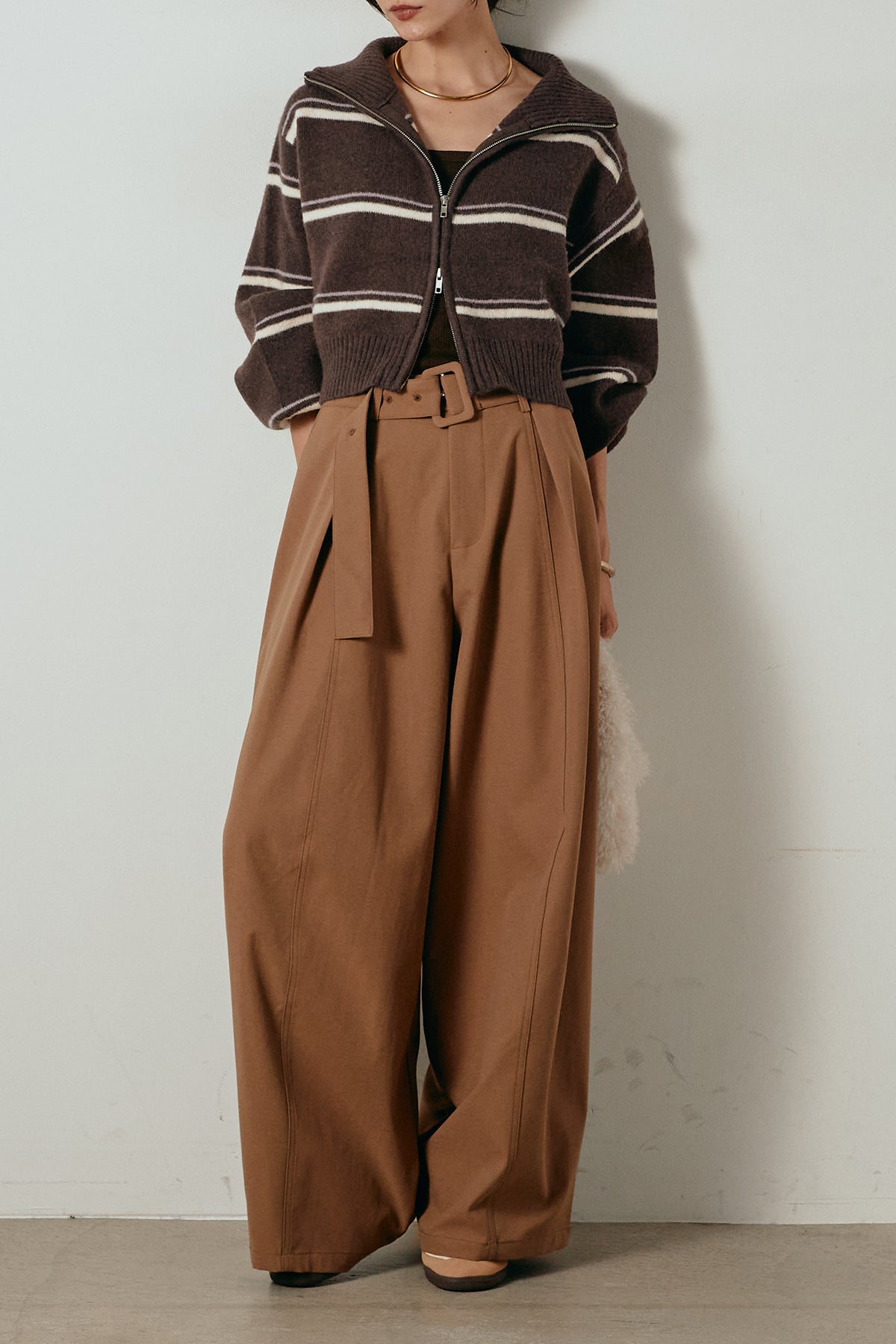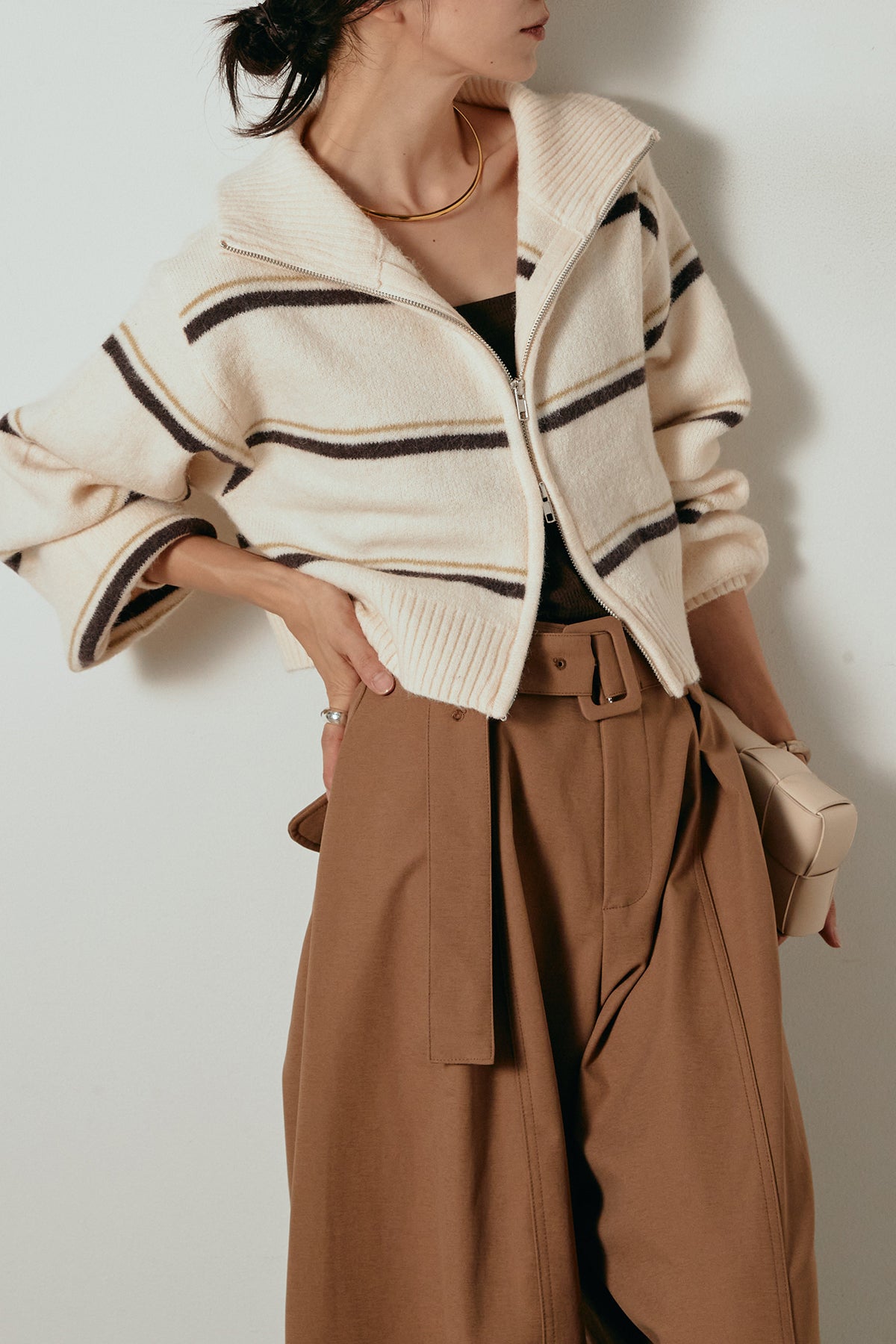 [SET]アルパカタッチボーダーダブルジップブルゾン+太ベルト付きタックワイドパンツ(2set)