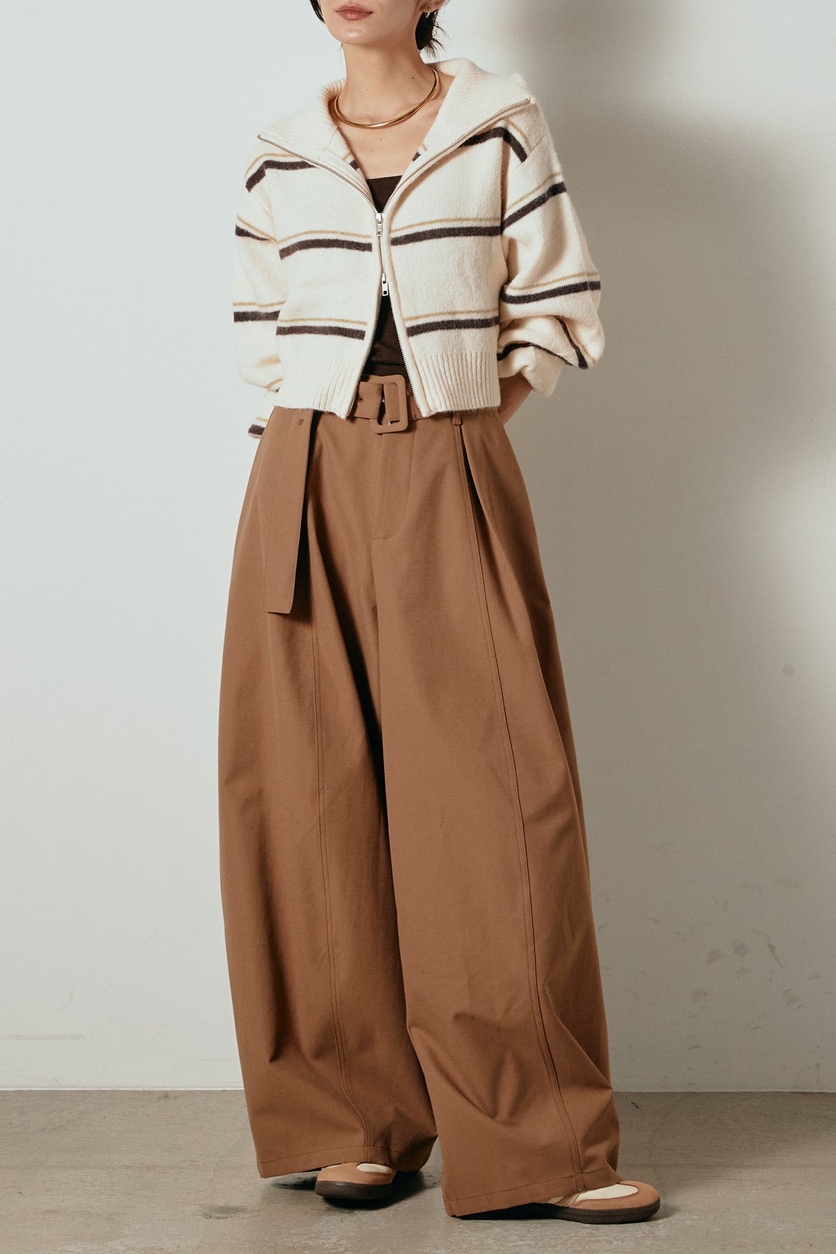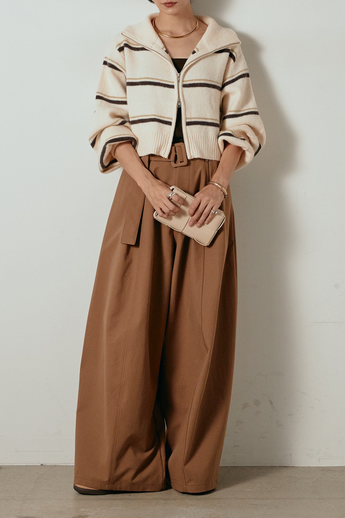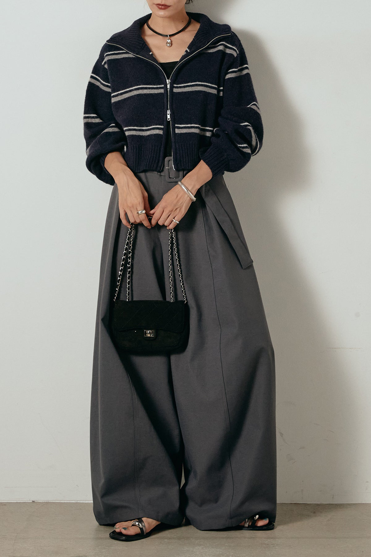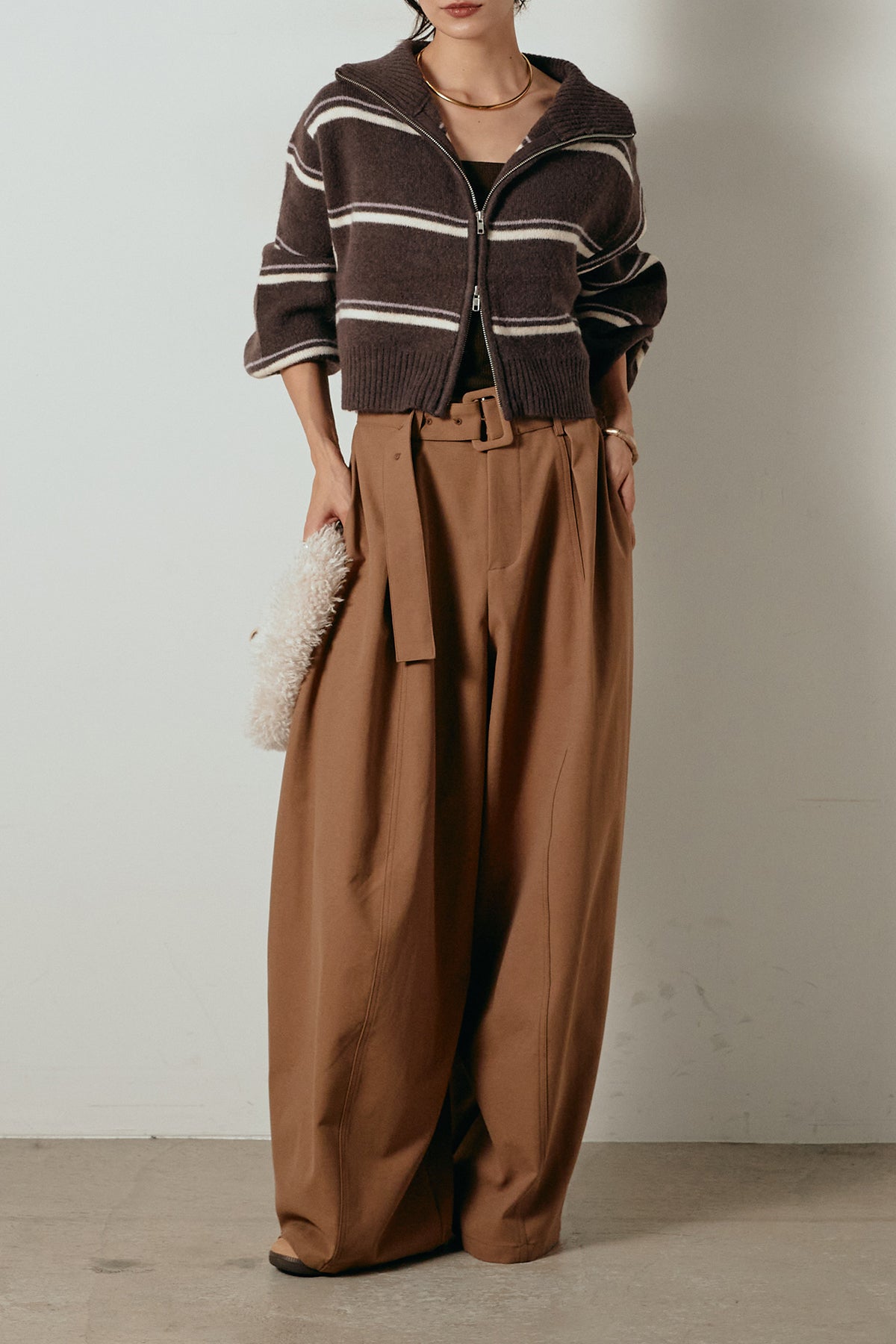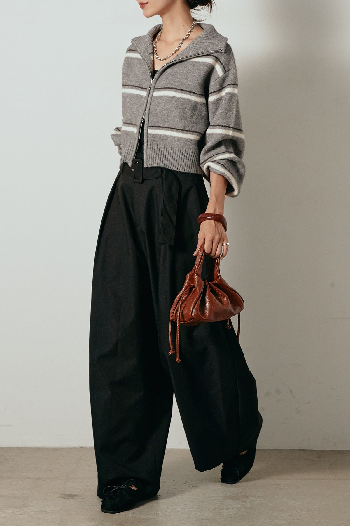 [SET]アルパカタッチボーダーダブルジップブルゾン+太ベルト付きタックワイドパンツ(2set)