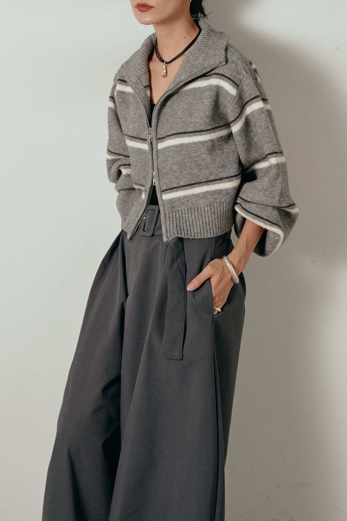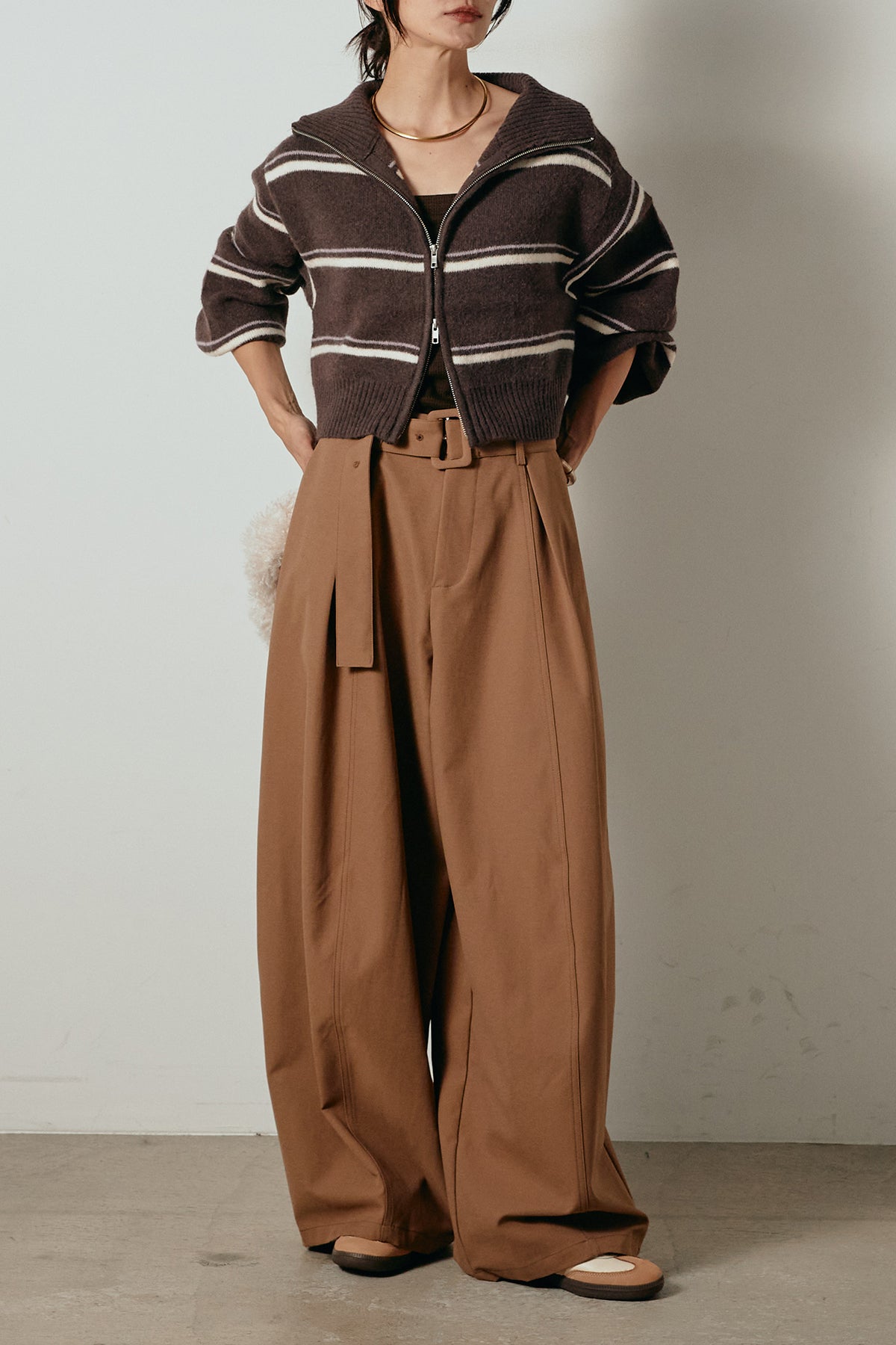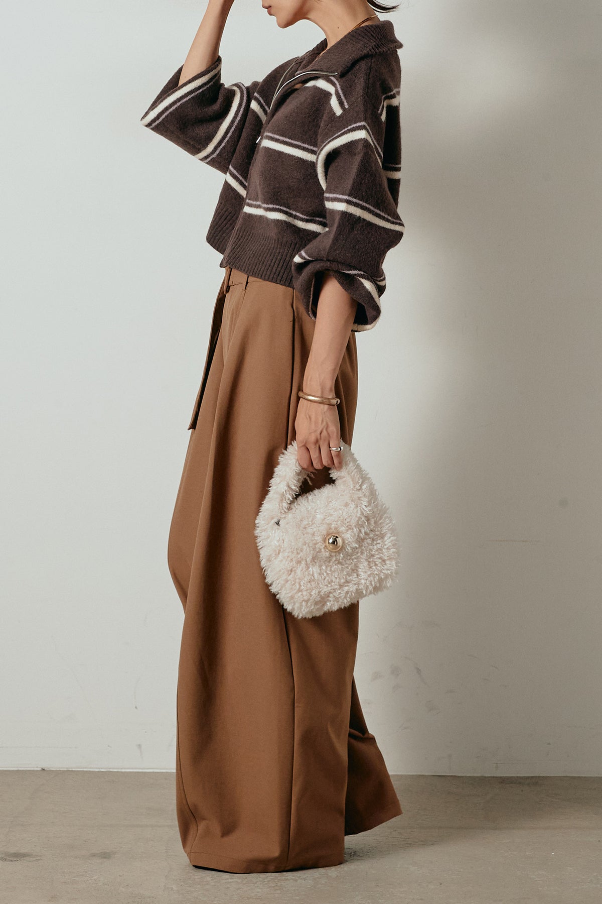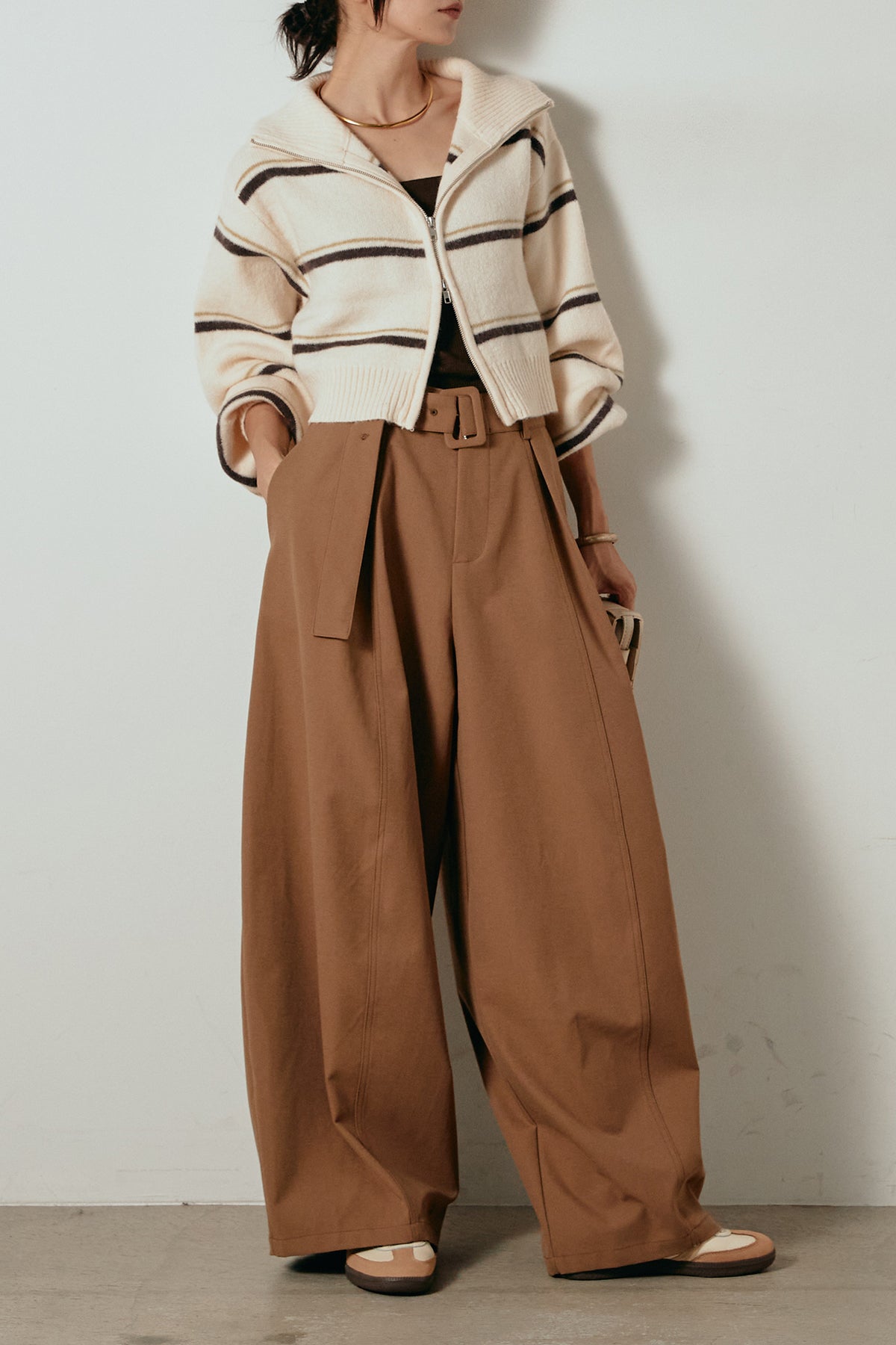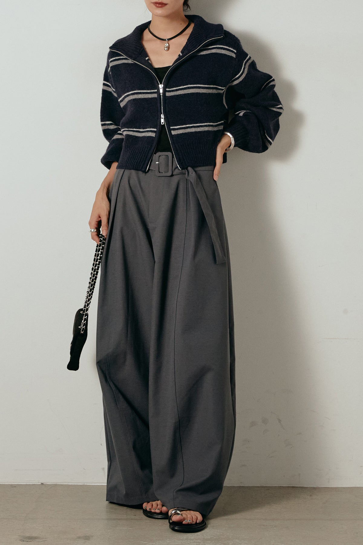 [SET]アルパカタッチボーダーダブルジップブルゾン+太ベルト付きタックワイドパンツ(2set)