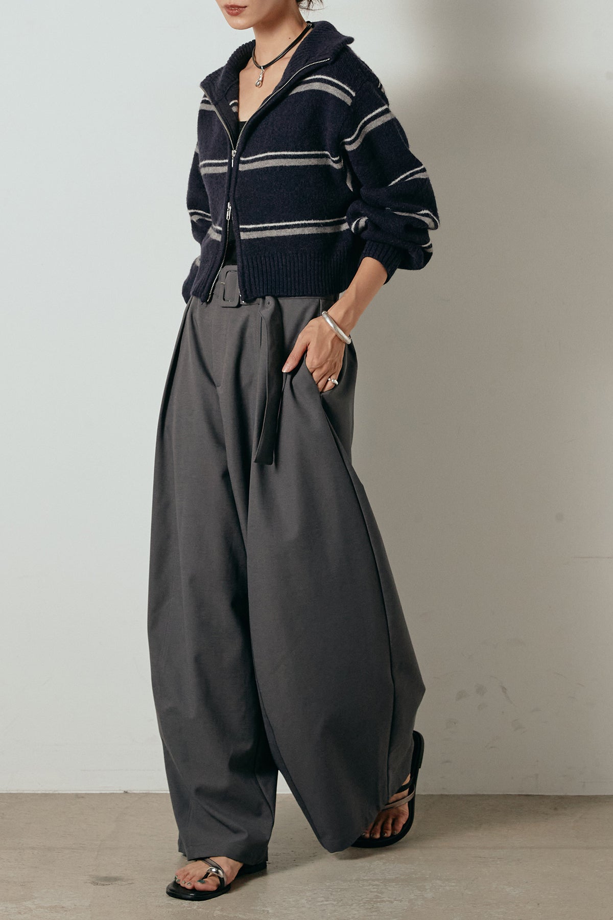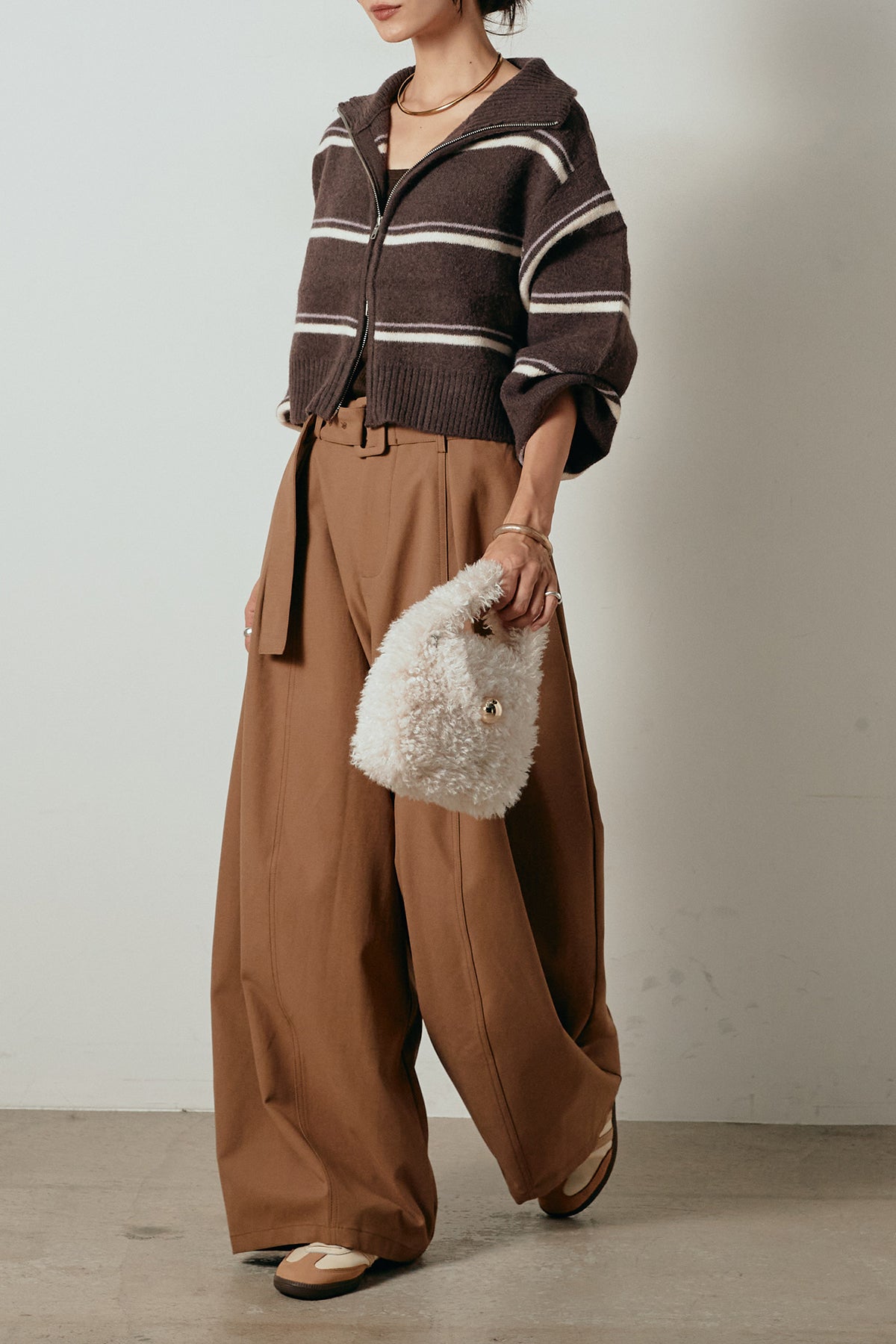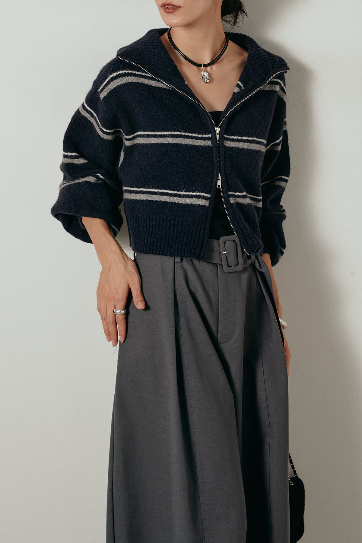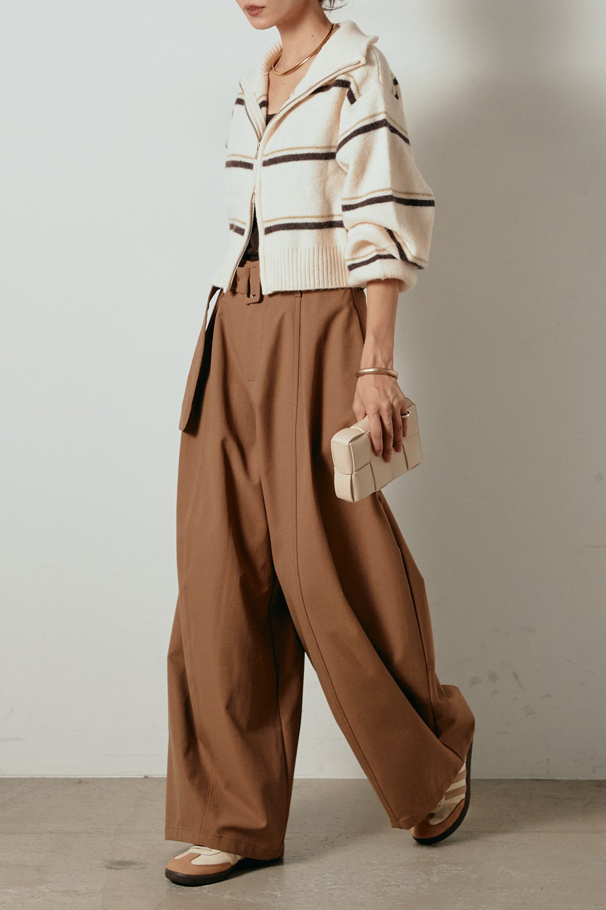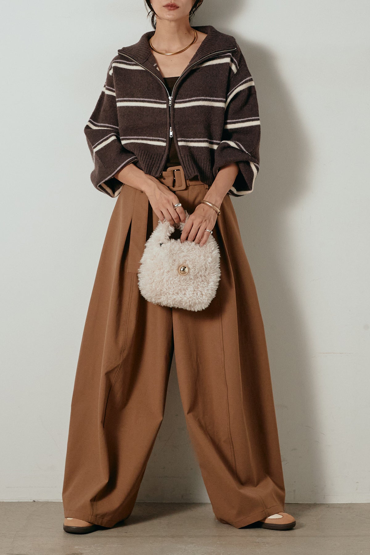 [SET]アルパカタッチボーダーダブルジップブルゾン+太ベルト付きタックワイドパンツ(2set)