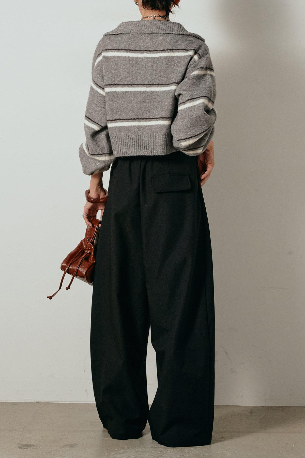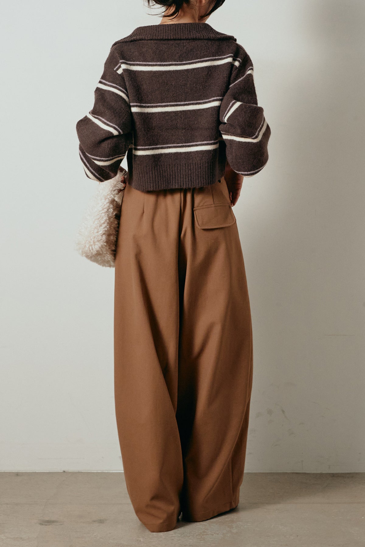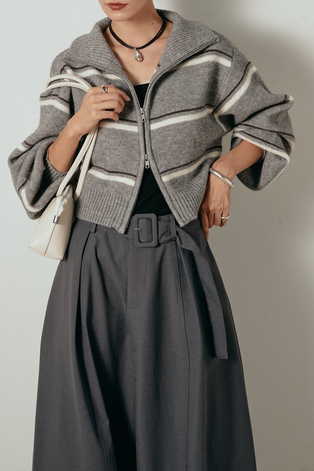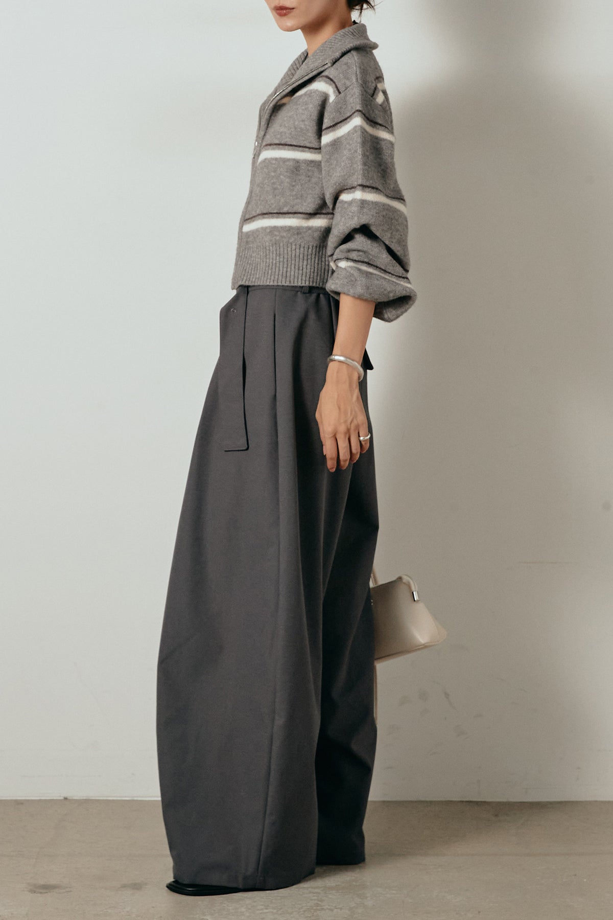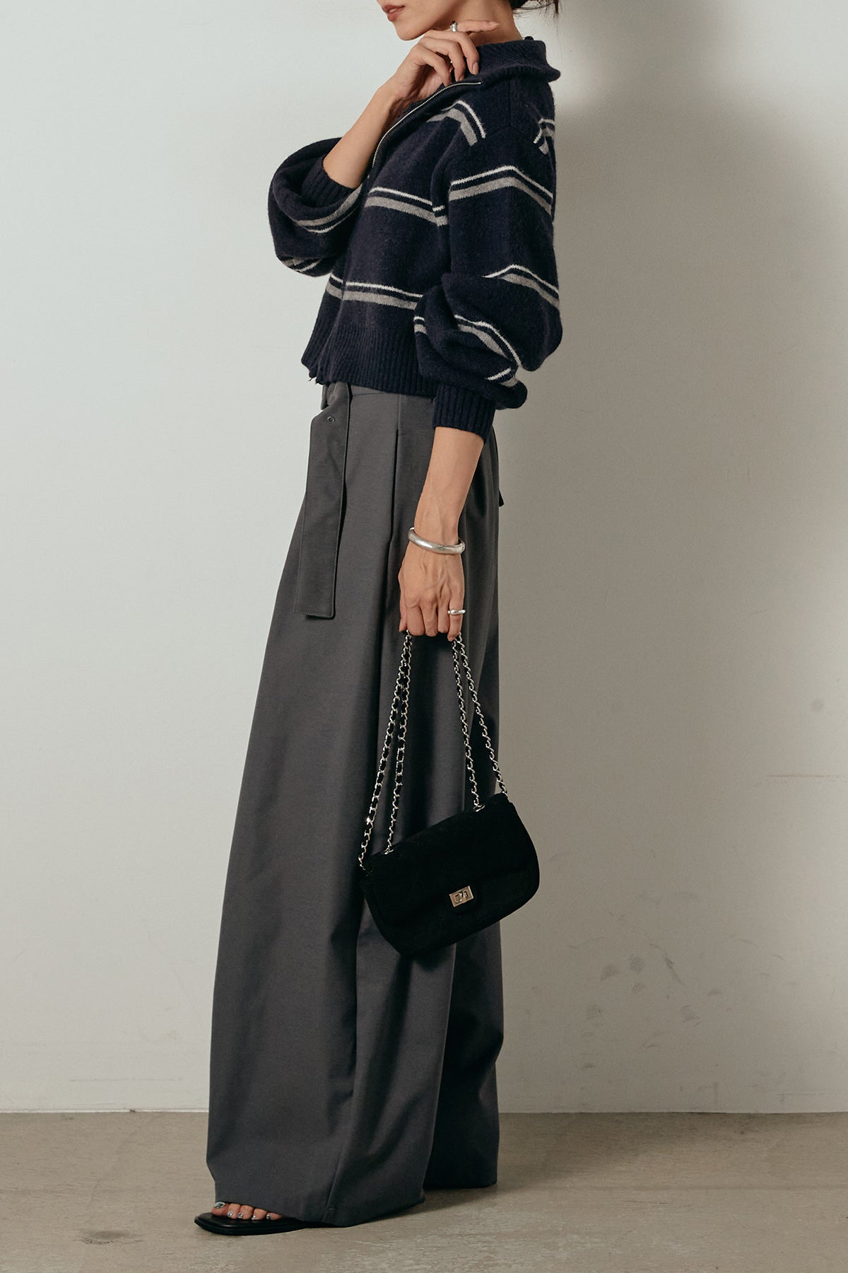 [SET]アルパカタッチボーダーダブルジップブルゾン+太ベルト付きタックワイドパンツ(2set)