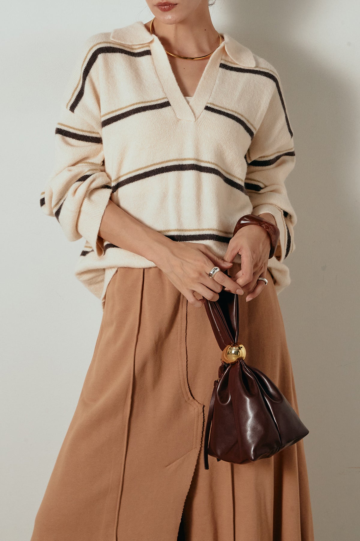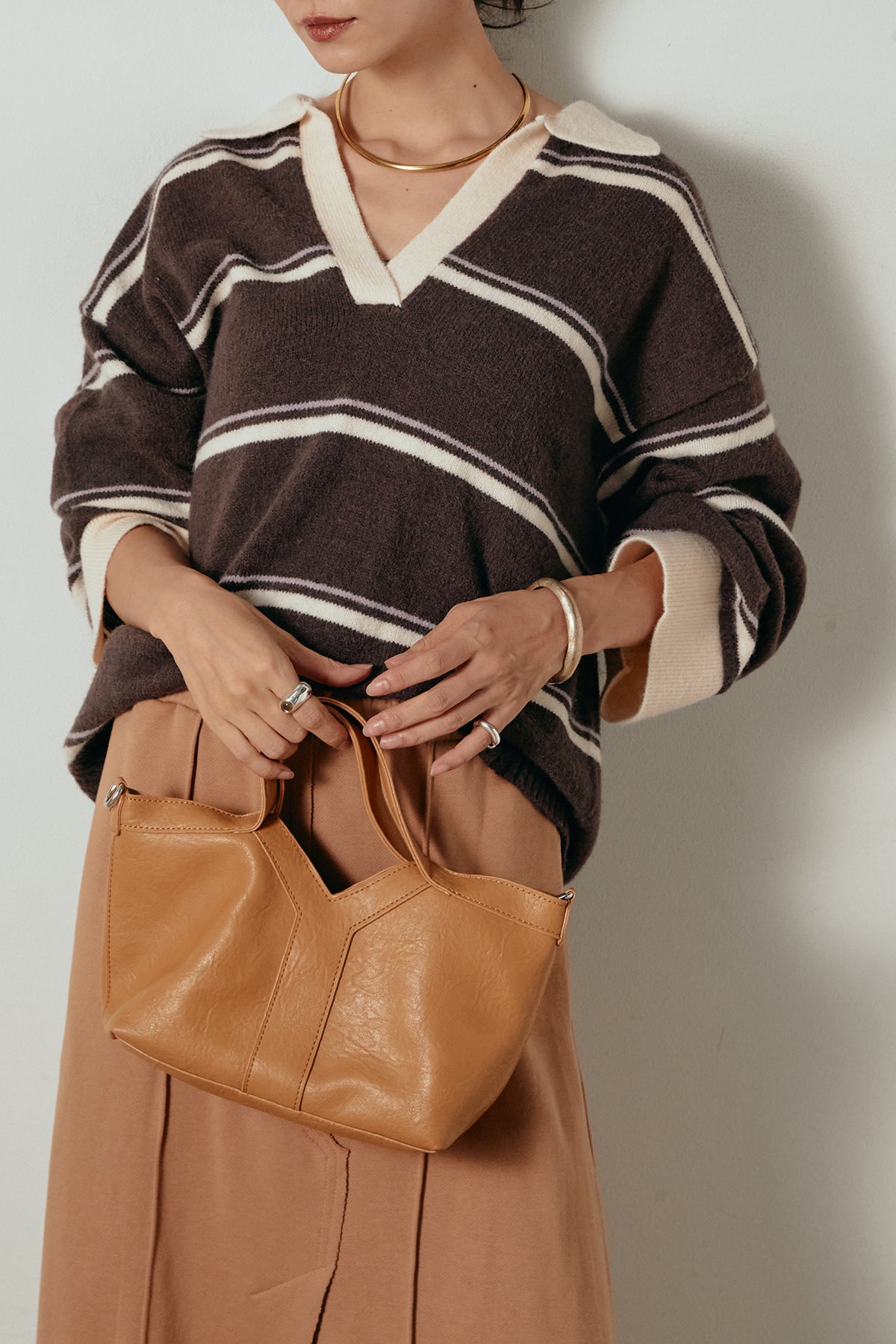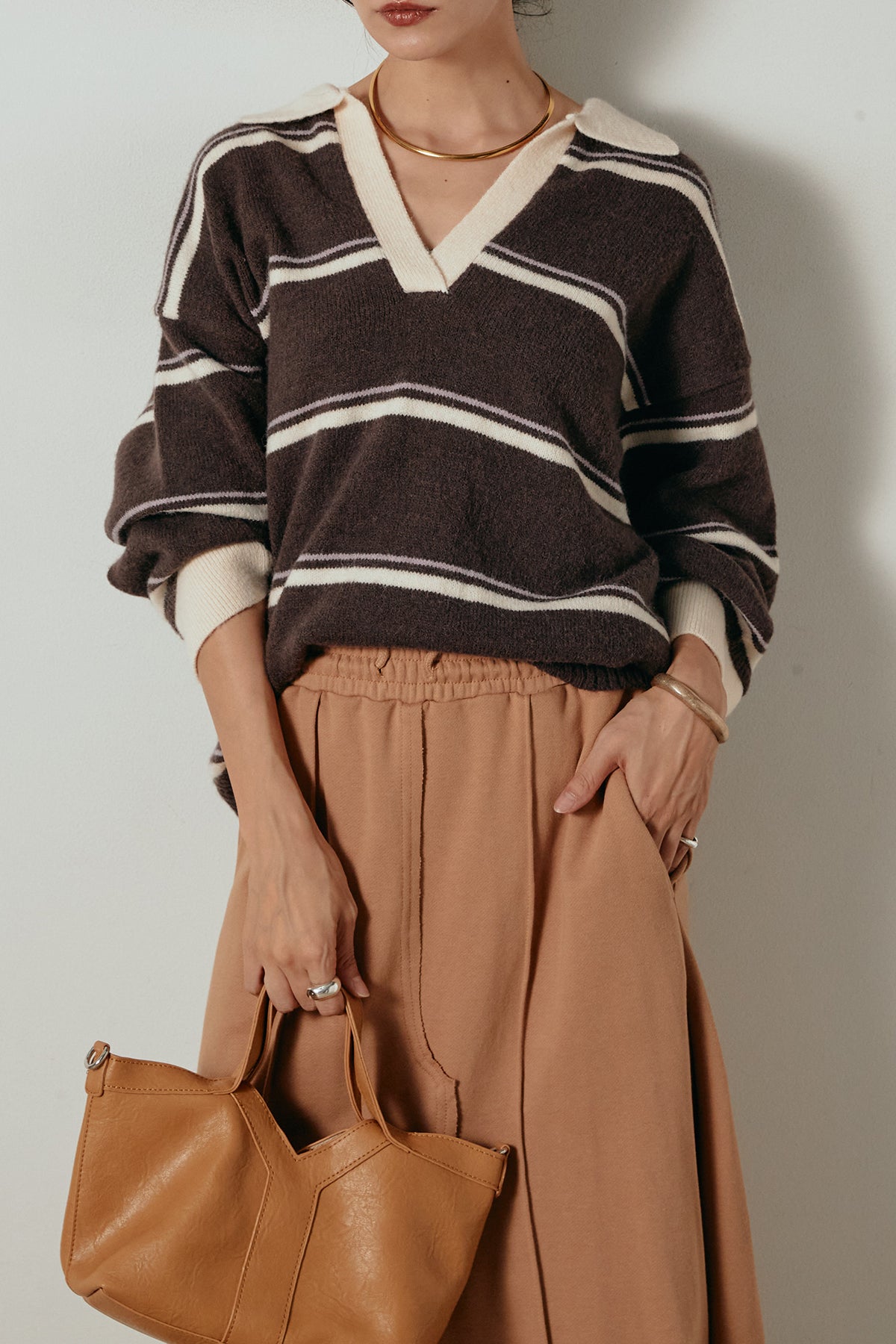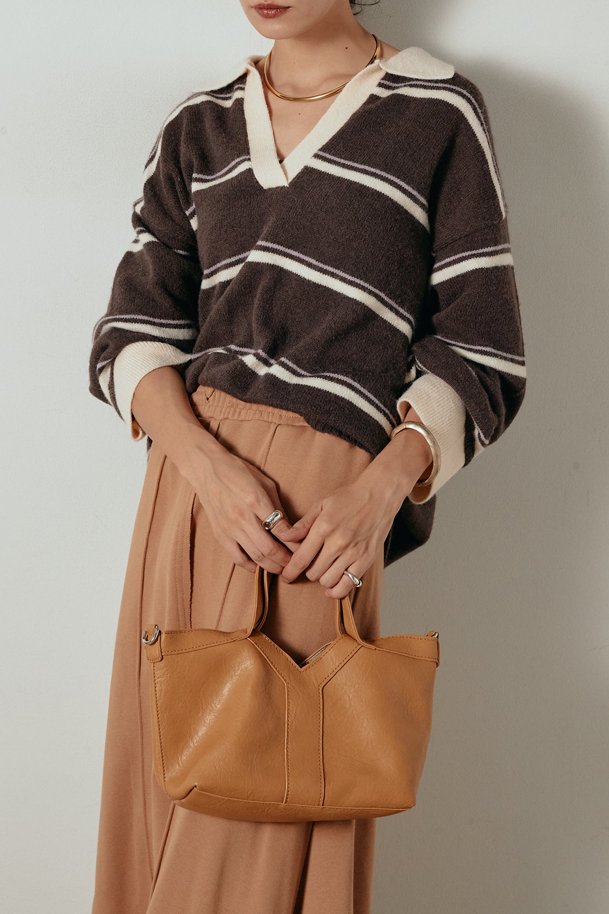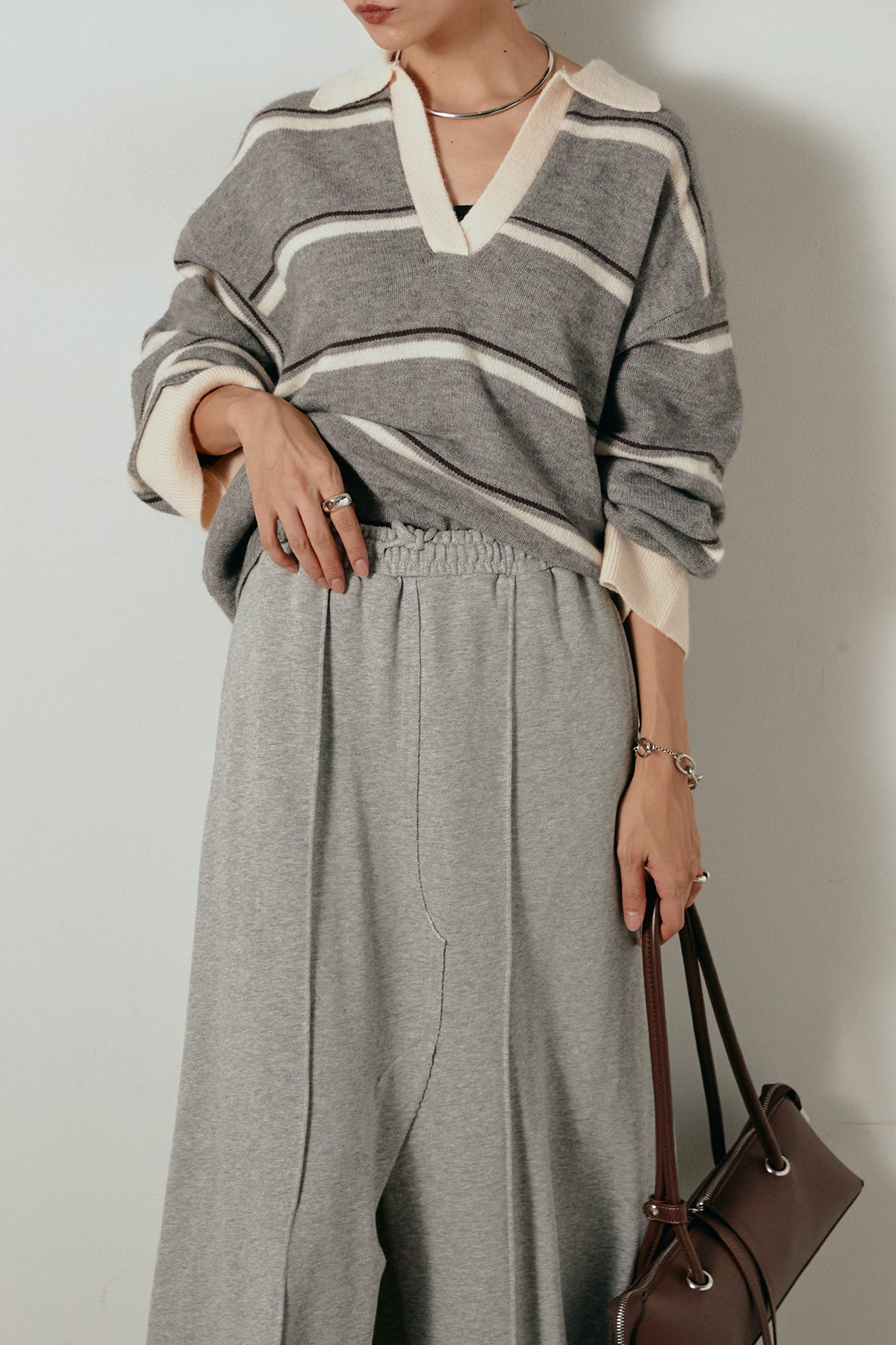 ふんわり柔らかなアルパカタッチ素材を使用した、ボーダー柄のラガーニット。 ほどよい厚みと軽さが魅力で、リラクシーな着心地を叶えつつシーズンムードを高めてくれます。 ラガーシャツ風の襟デザインがカジュアルなアクセントになり、存在感のあるボーダー柄で一枚着としてはもちろん、アウターのインナーにも映える仕上がり。 デニムやチノパンとのスタイリングでラフに、スカート合わせで抜け感のある着こなしにもおすすめです。