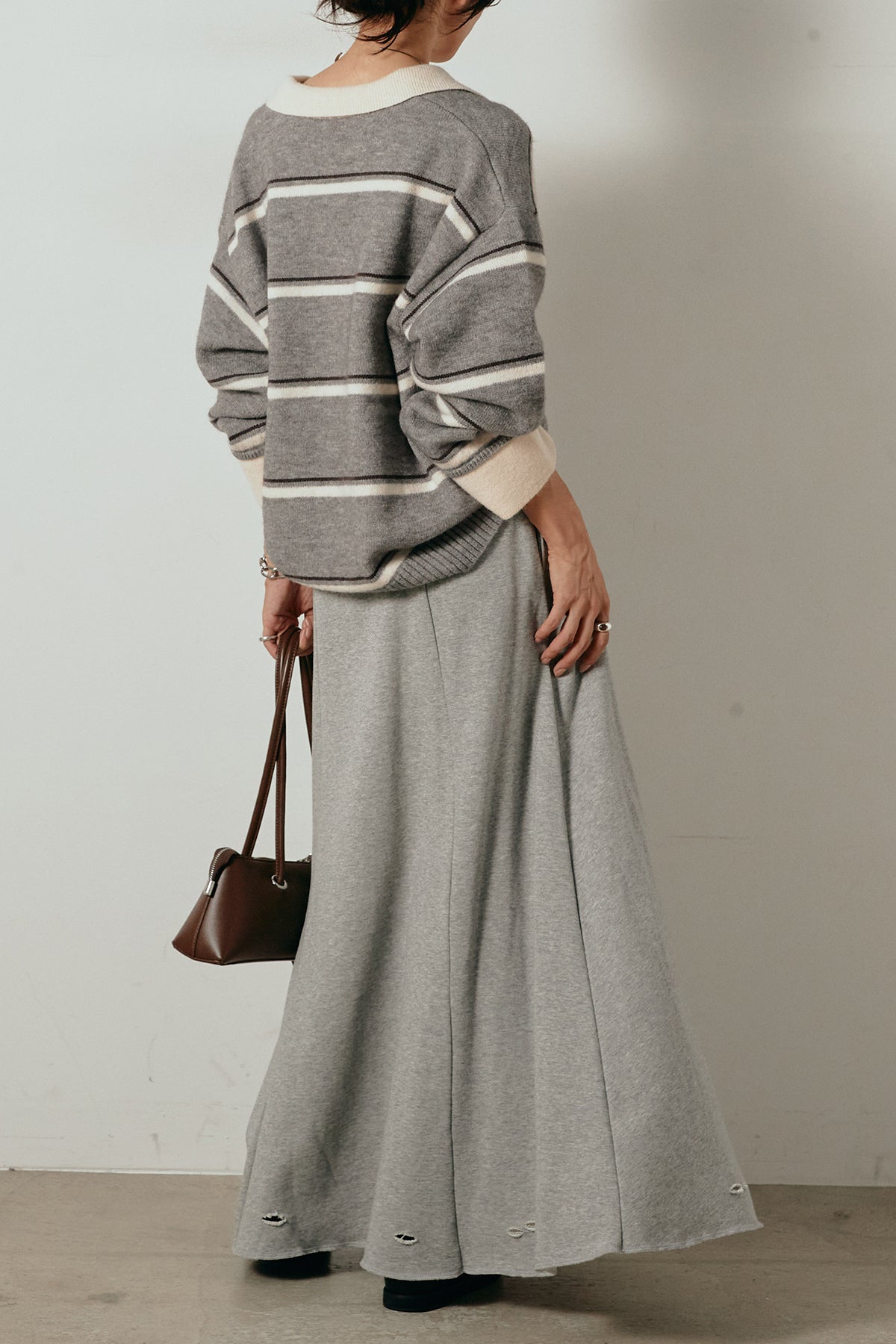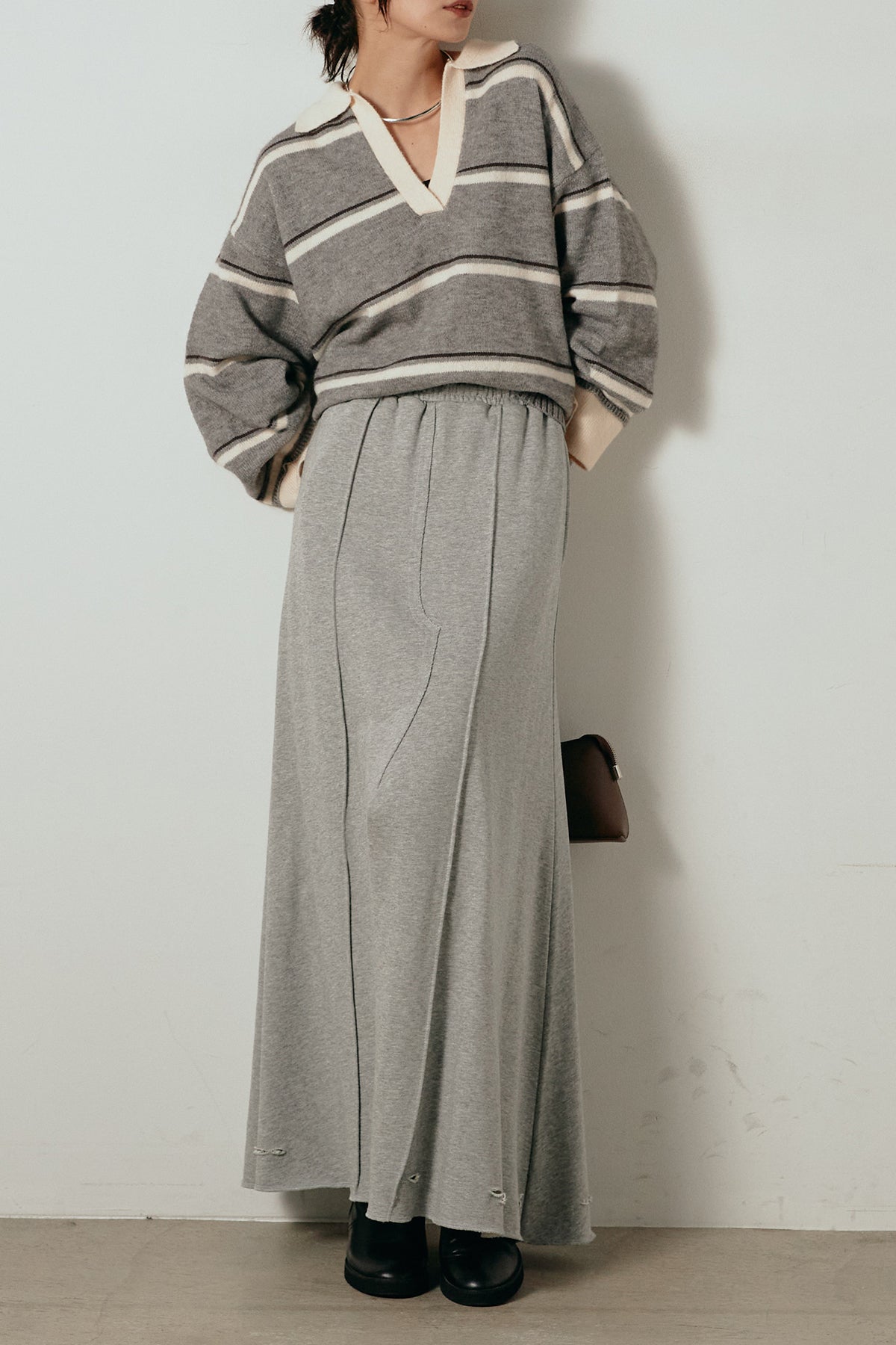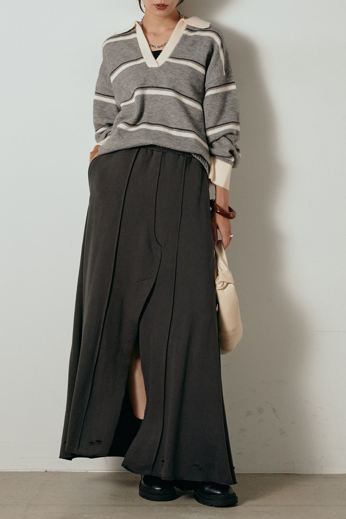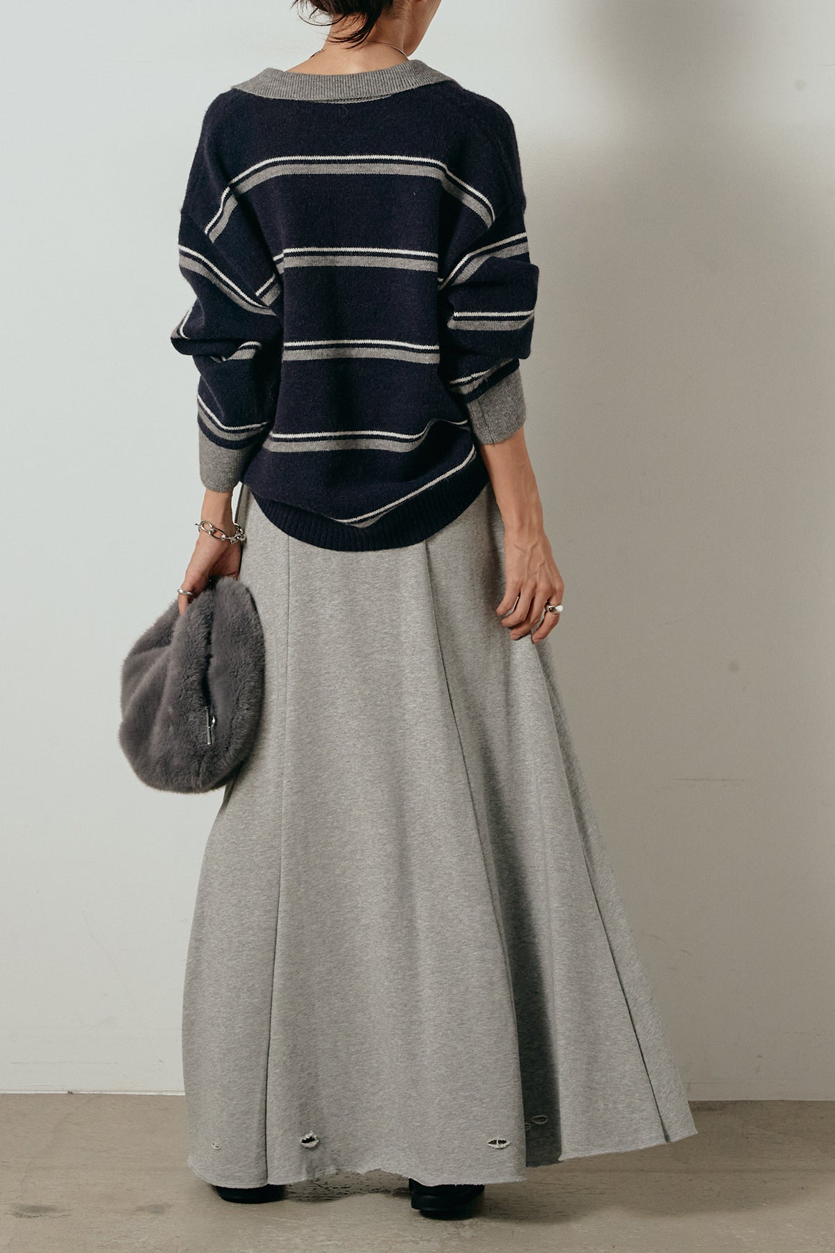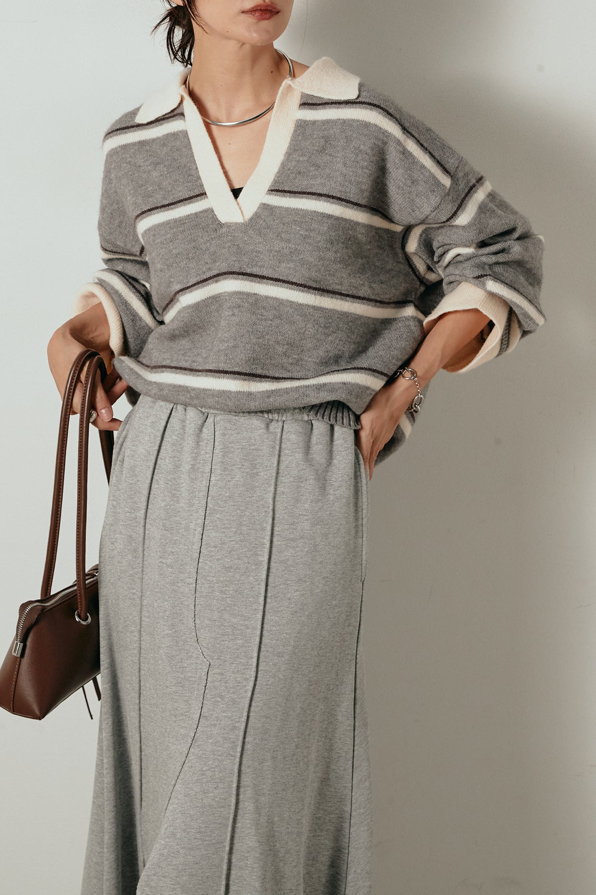 [SET]アルパカタッチボーダーラガーニット+切り替えスウェットフレアスカート(2set)