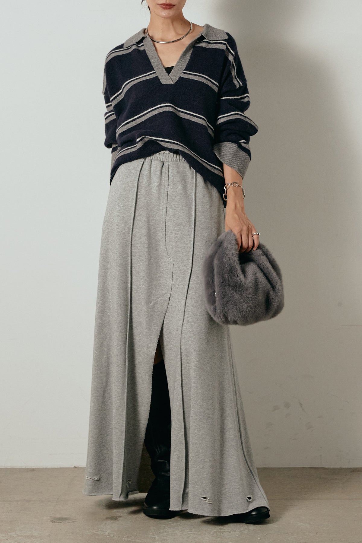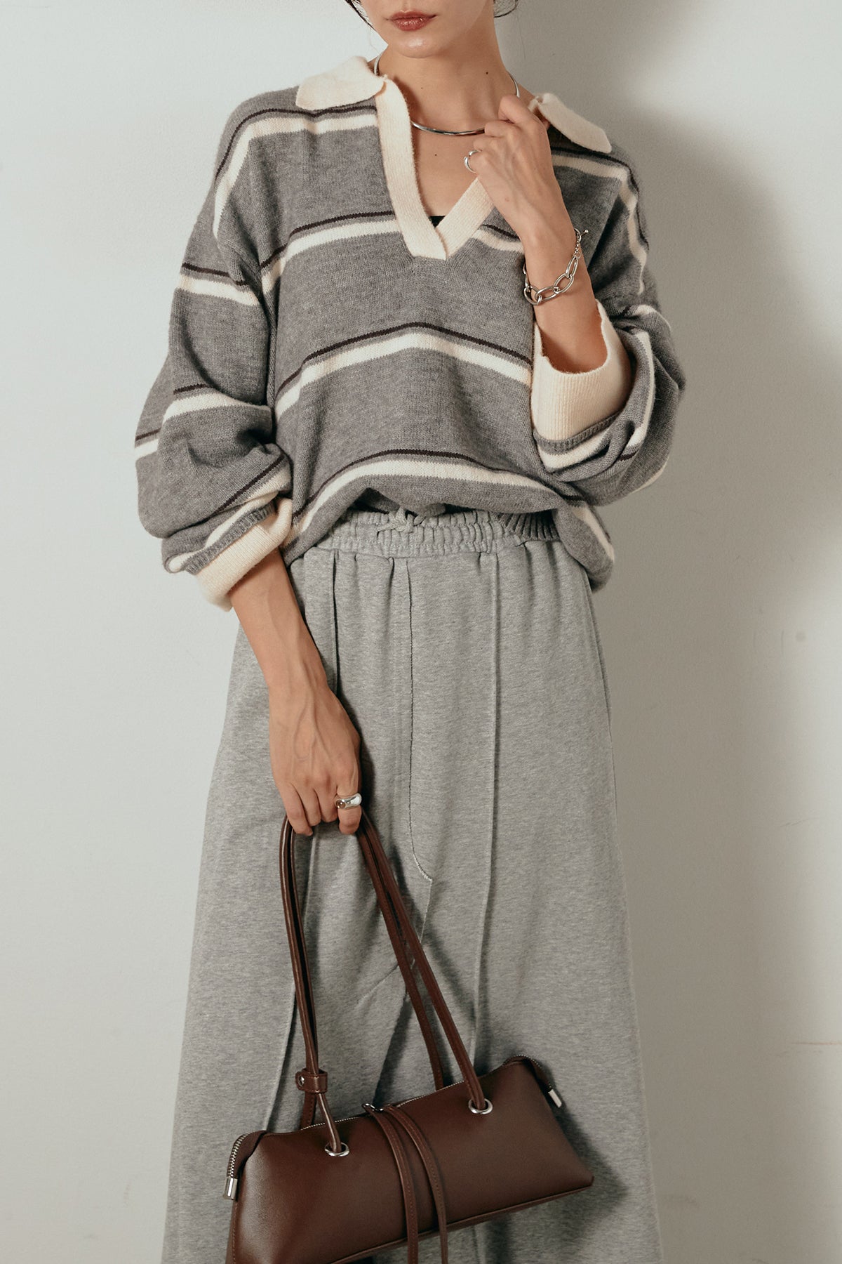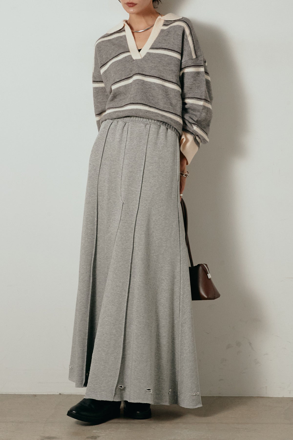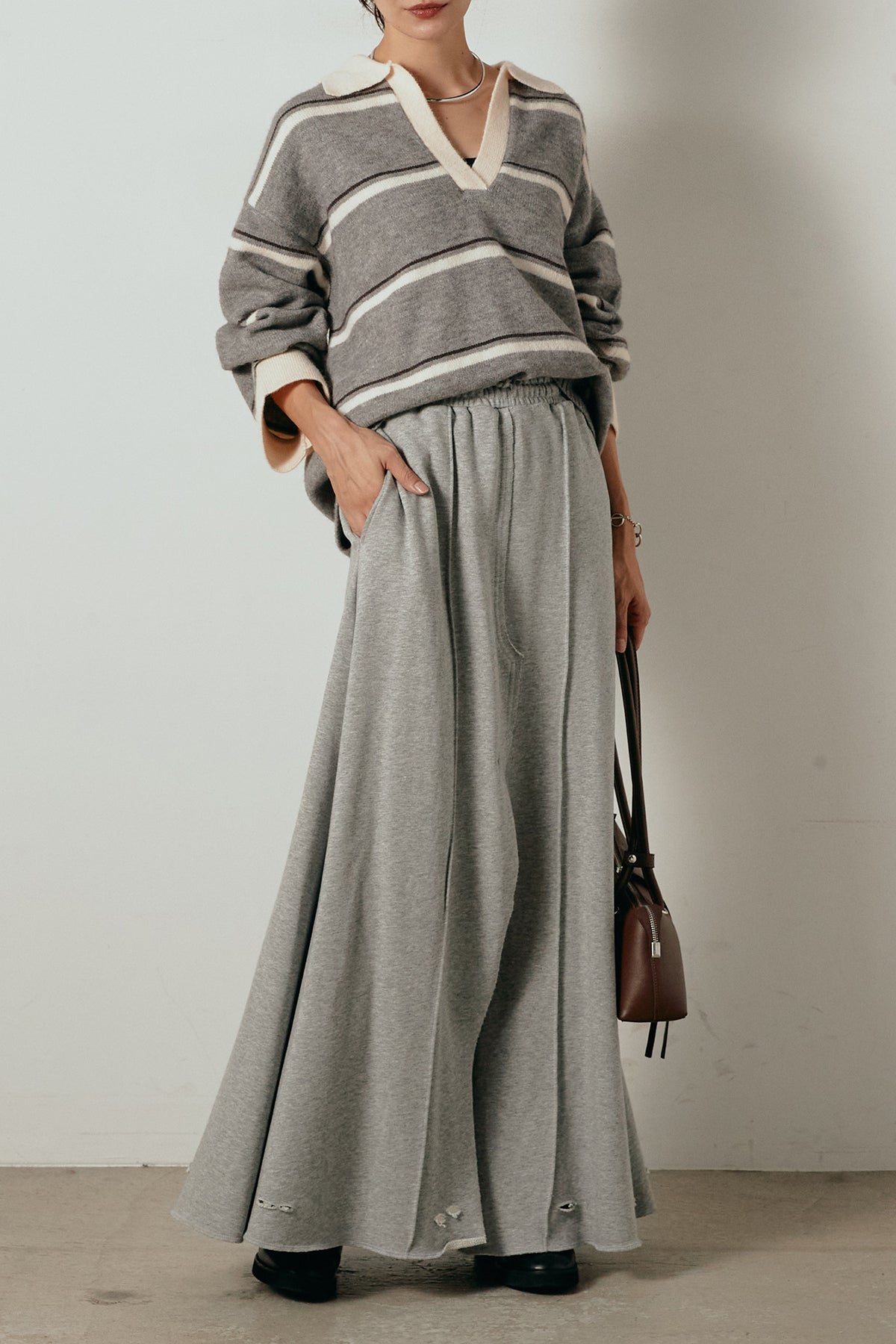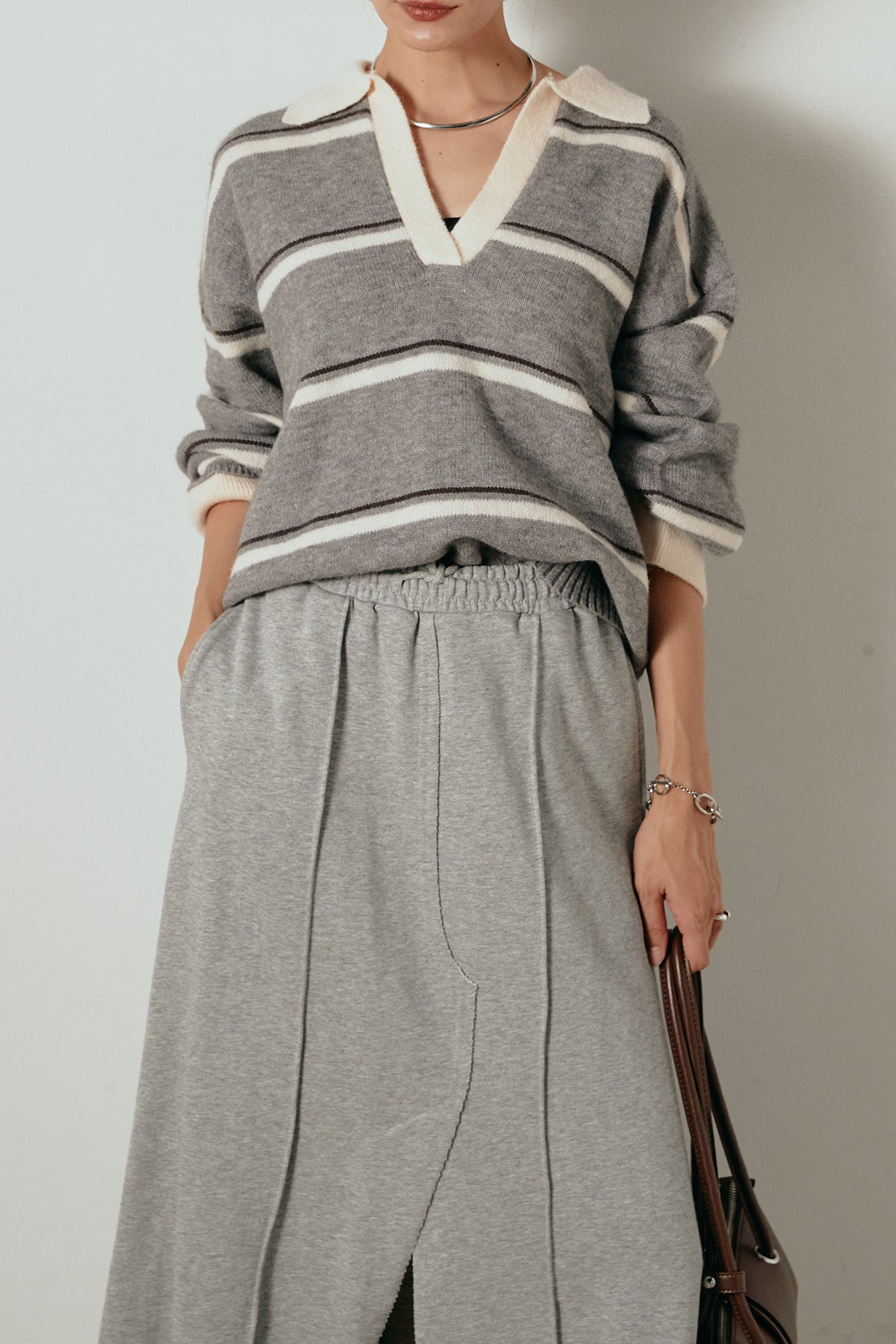 [SET]アルパカタッチボーダーラガーニット+切り替えスウェットフレアスカート(2set)