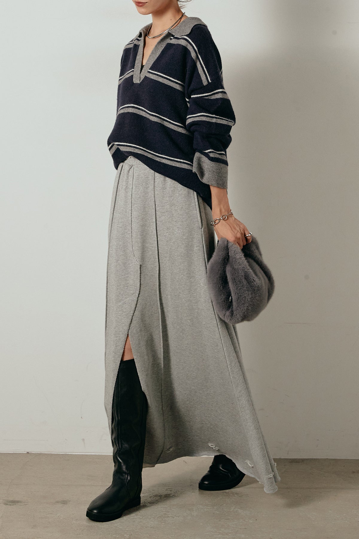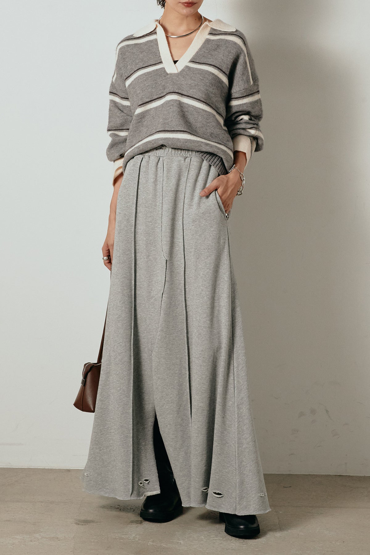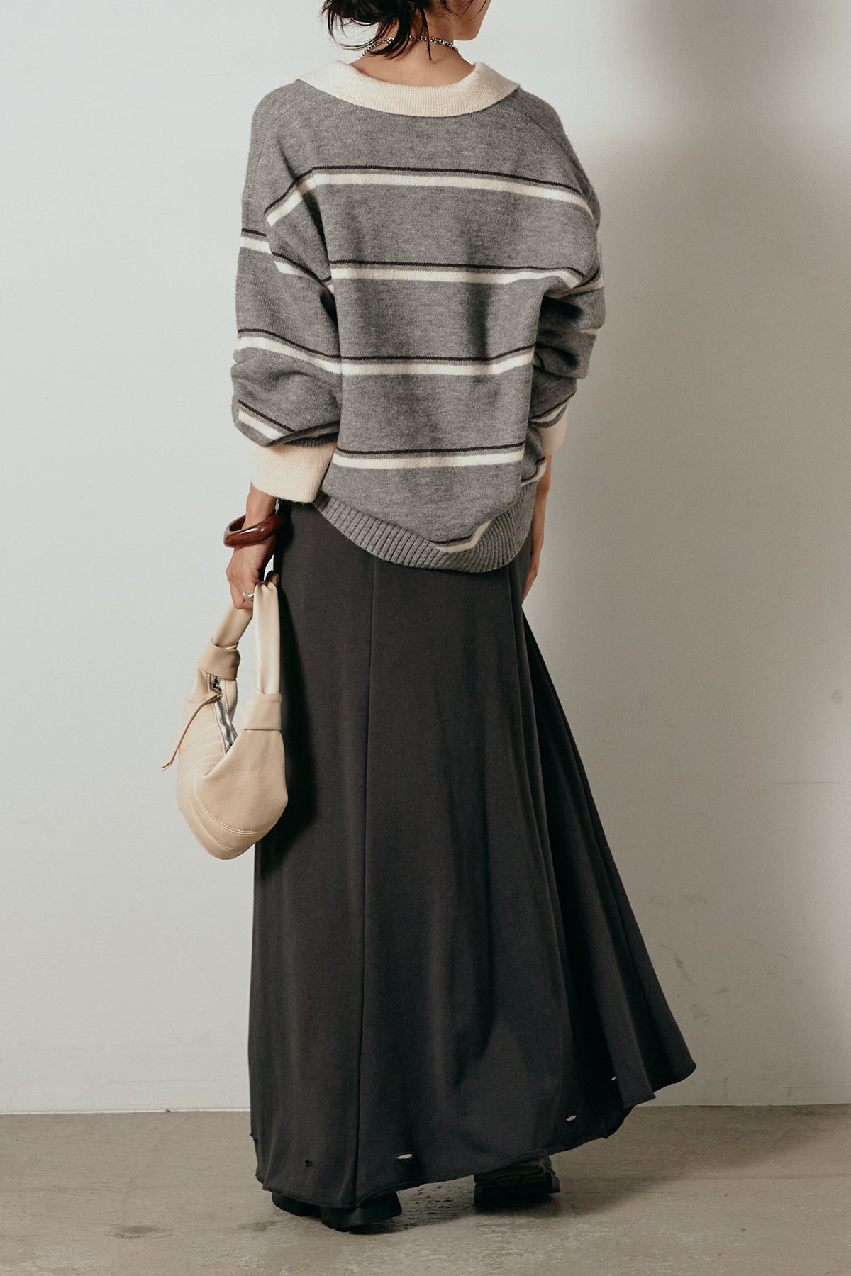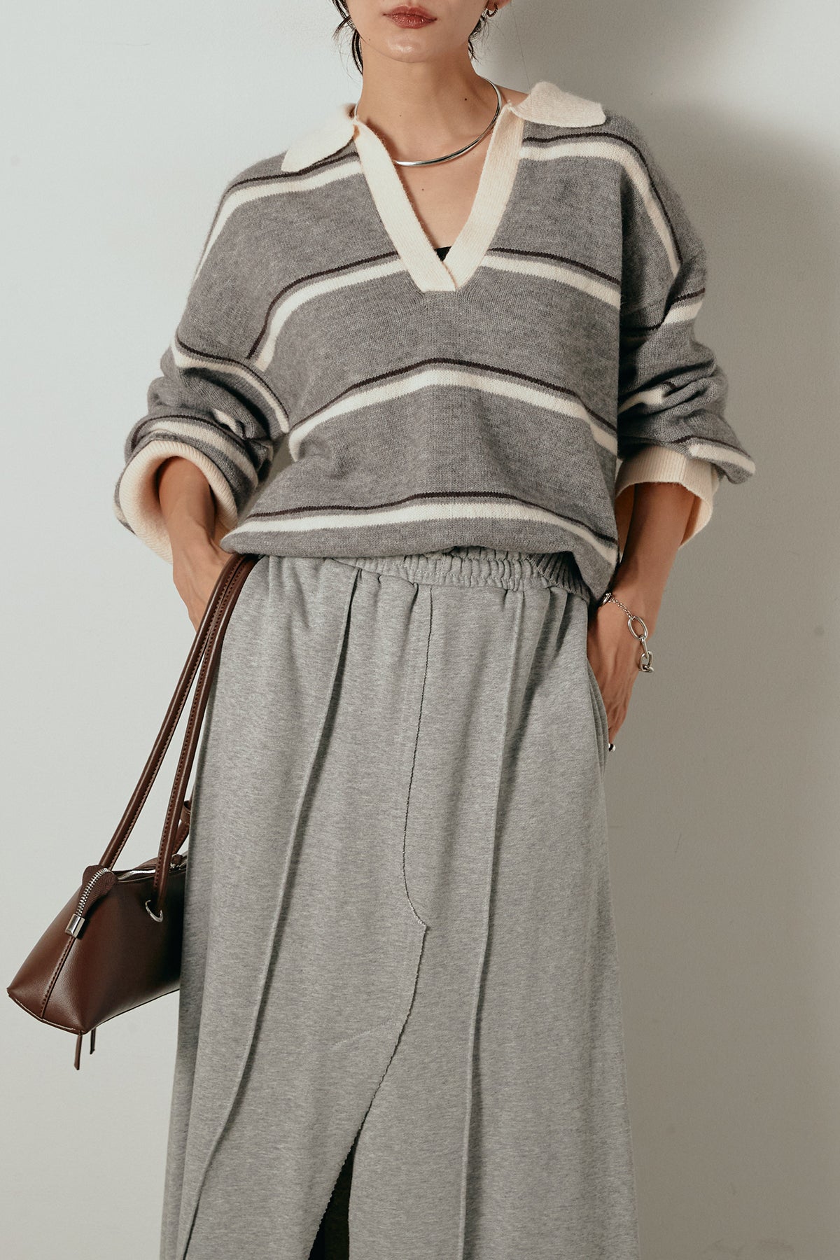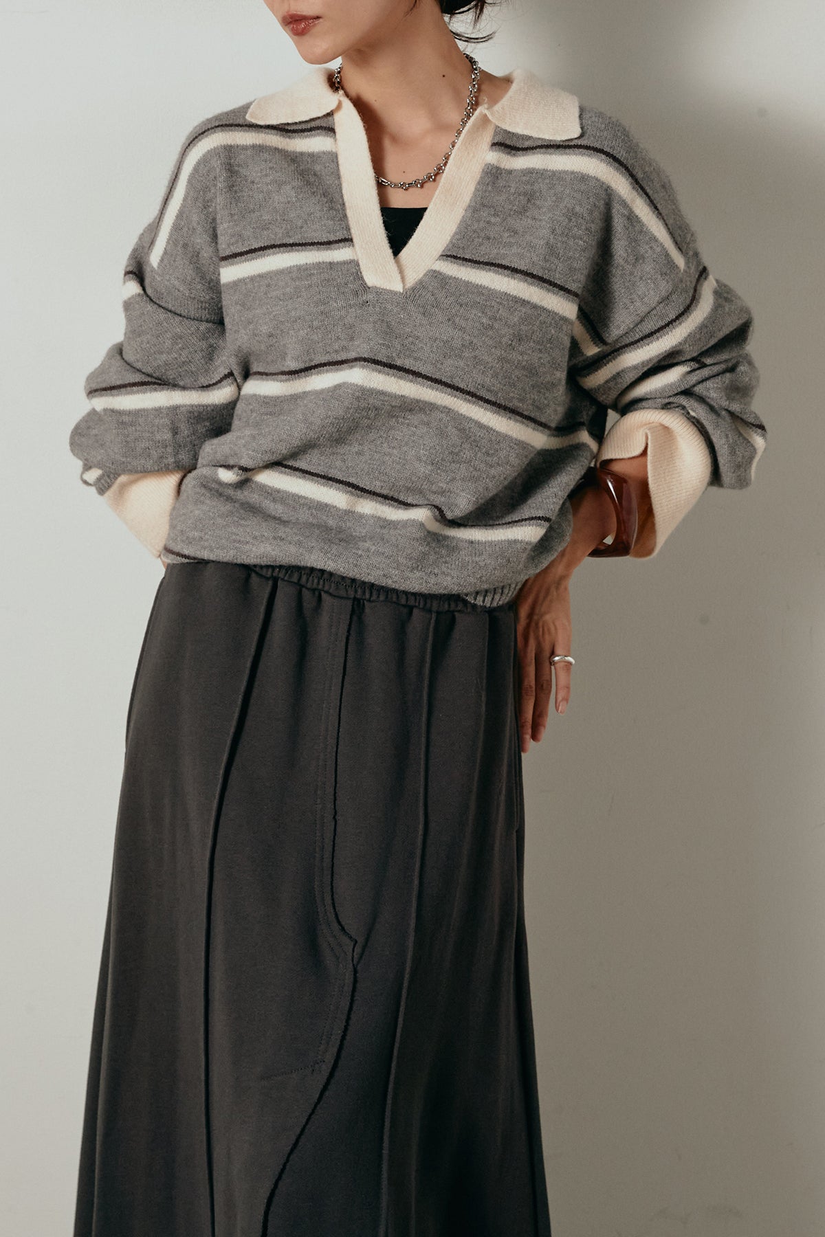 [SET]アルパカタッチボーダーラガーニット+切り替えスウェットフレアスカート(2set)
