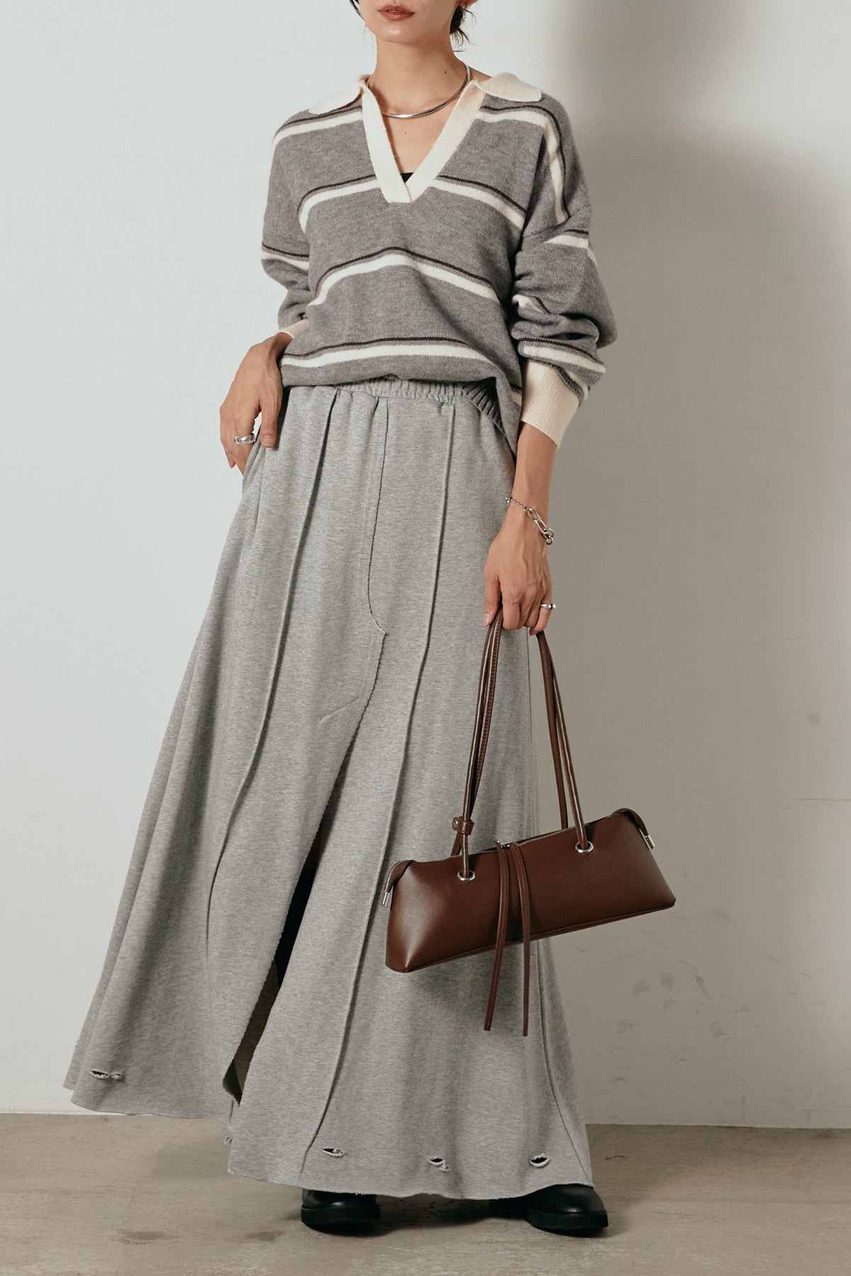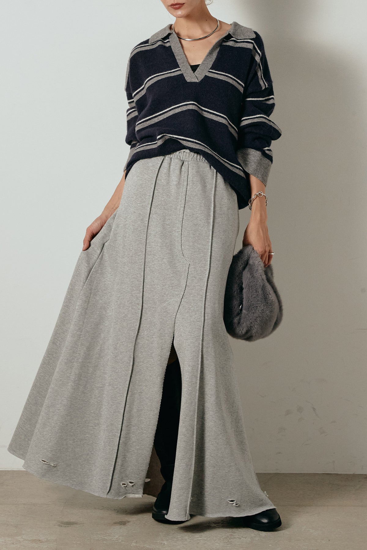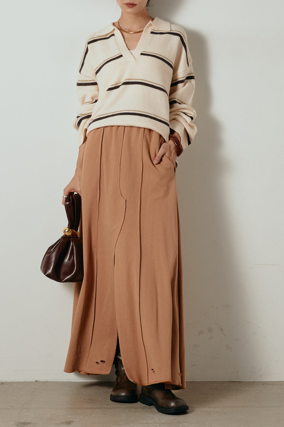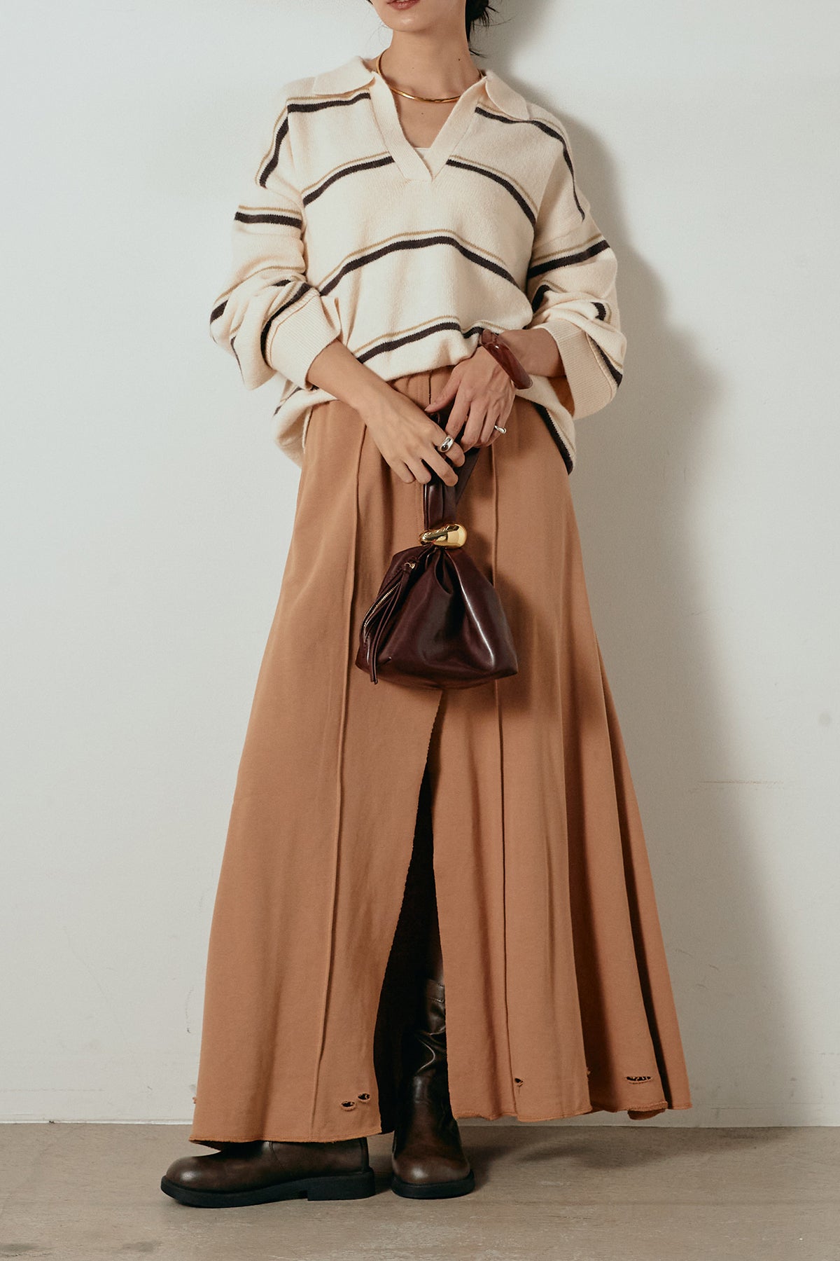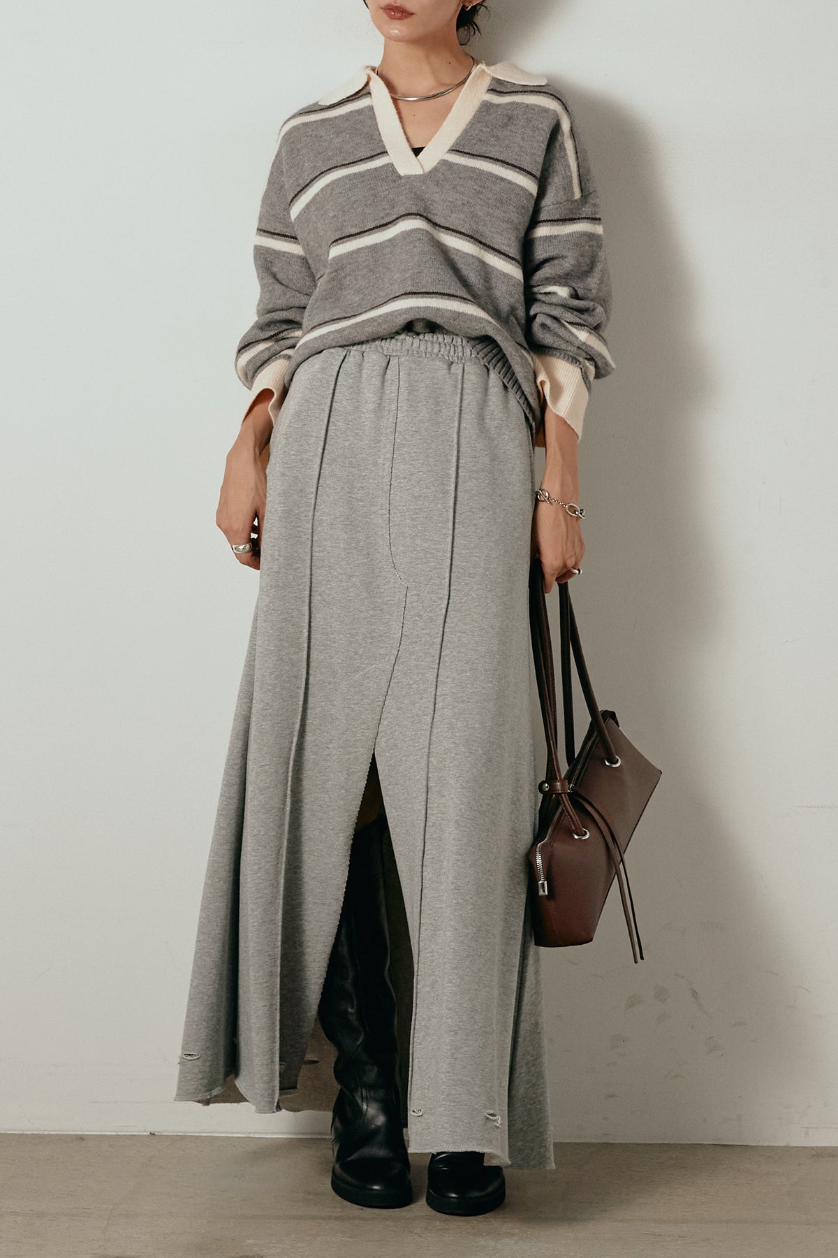 [SET]アルパカタッチボーダーラガーニット+切り替えスウェットフレアスカート(2set)