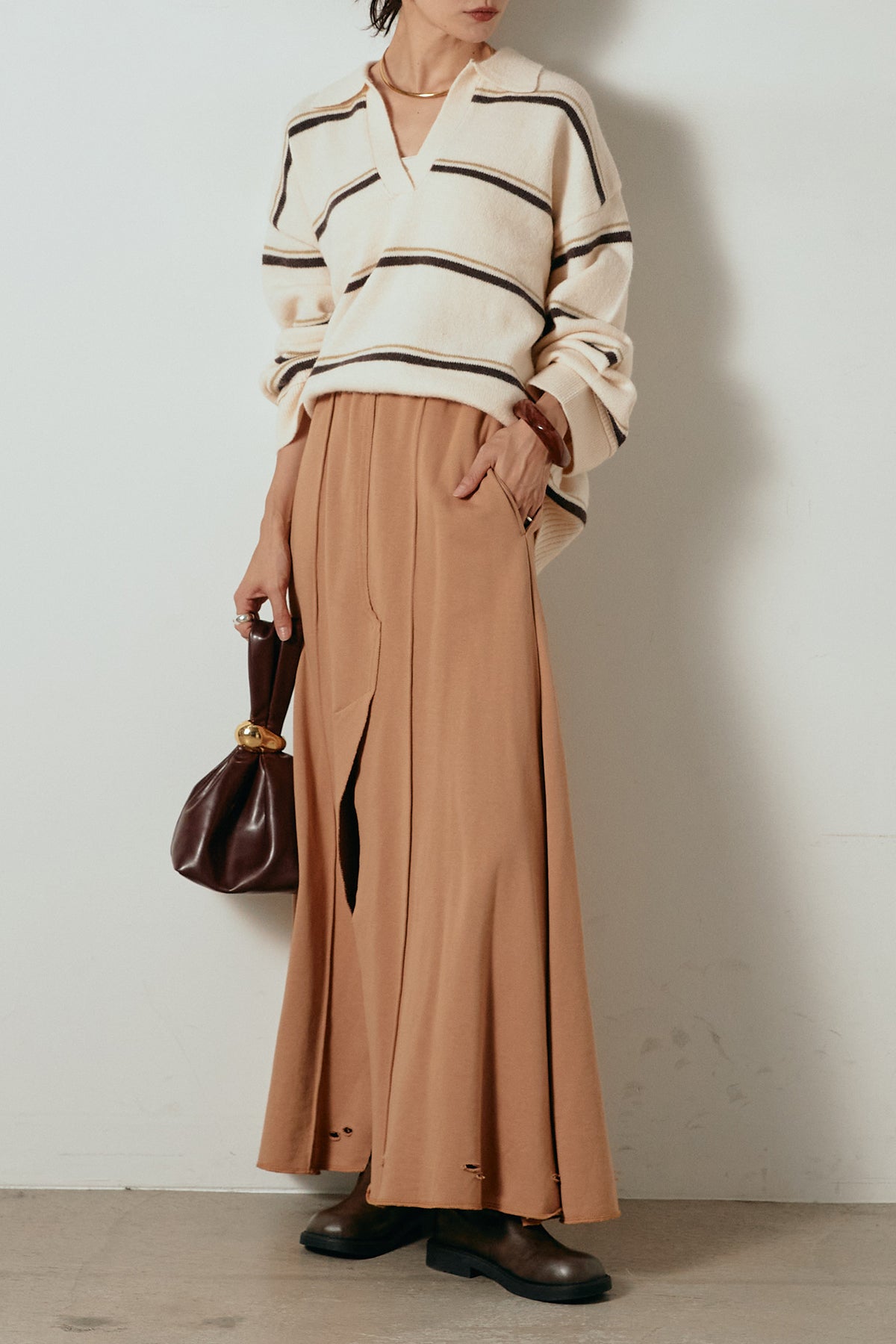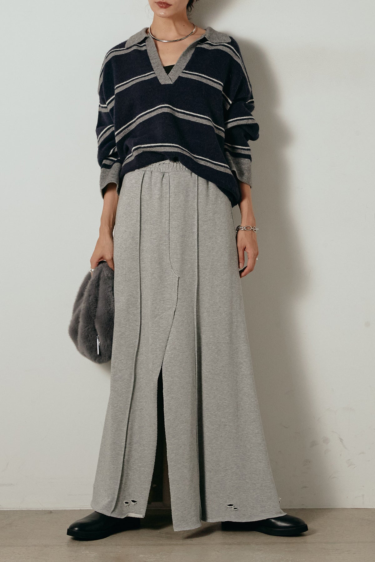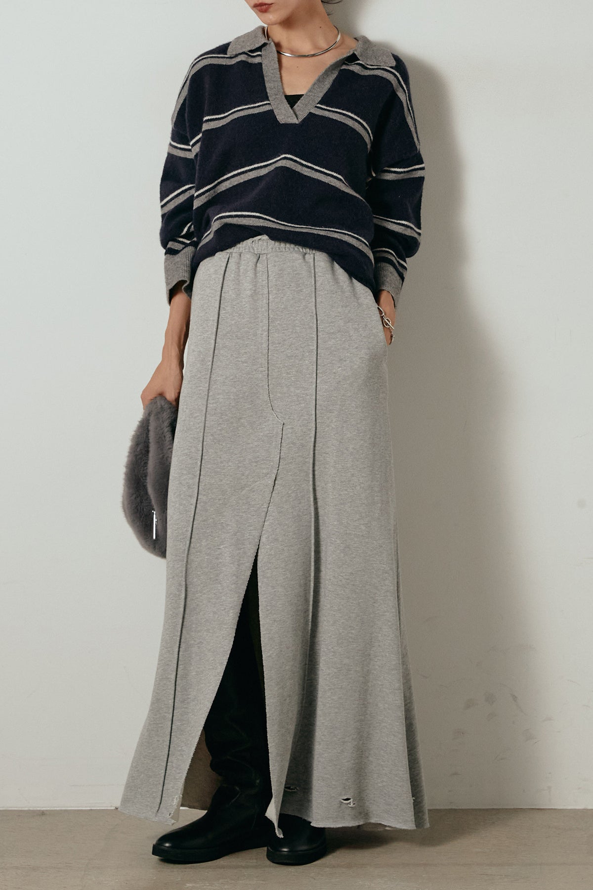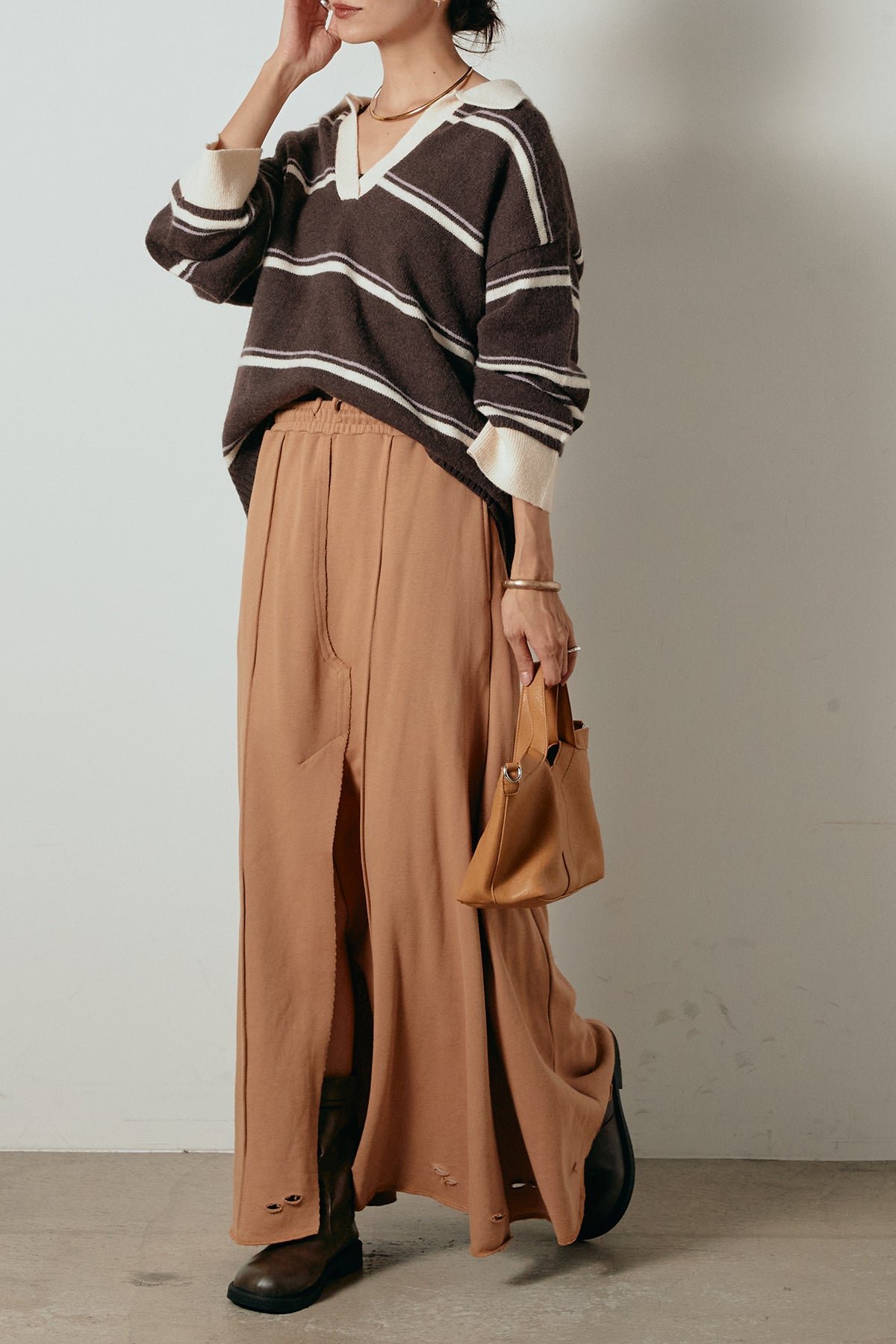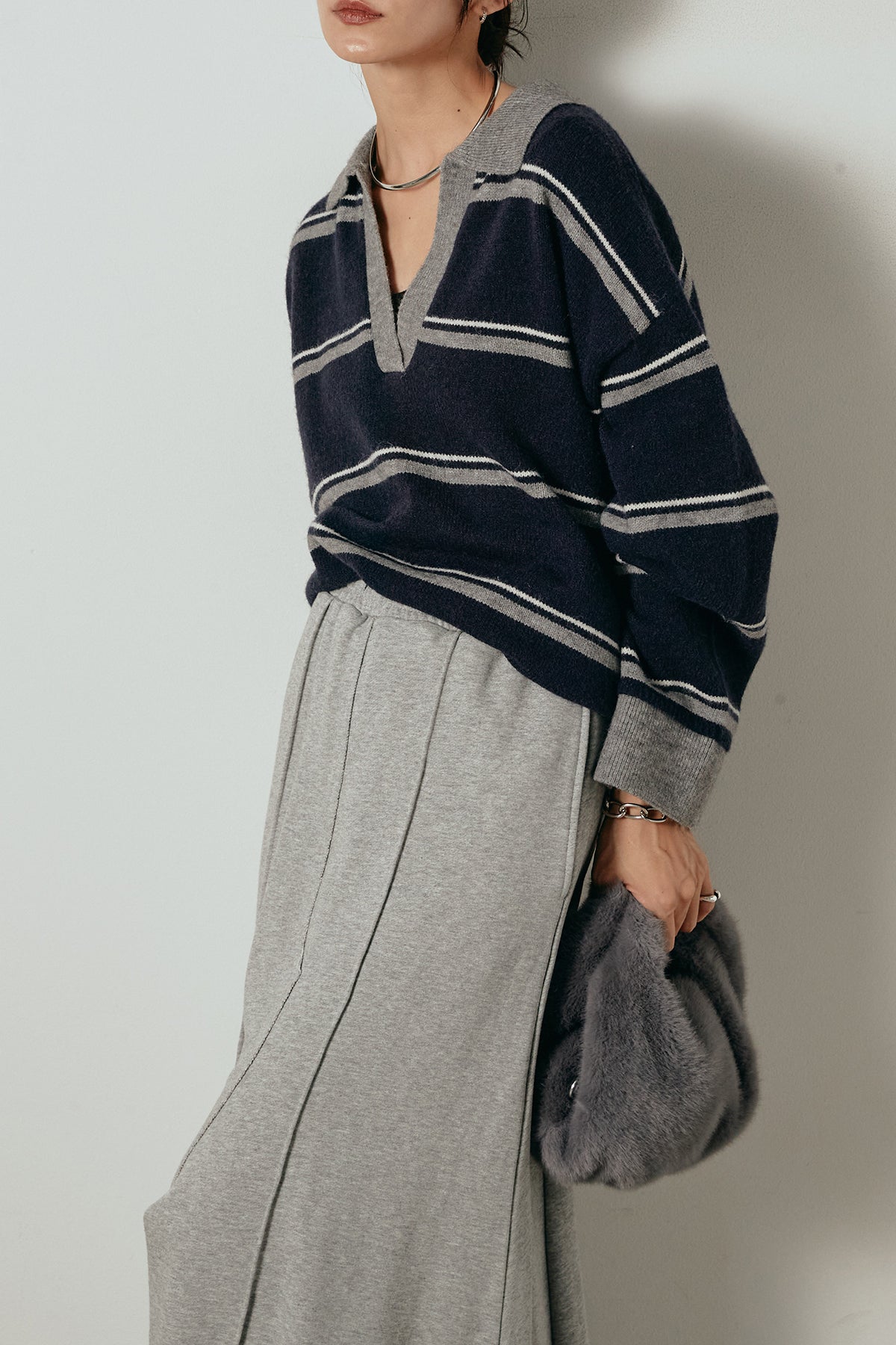 [SET]アルパカタッチボーダーラガーニット+切り替えスウェットフレアスカート(2set)