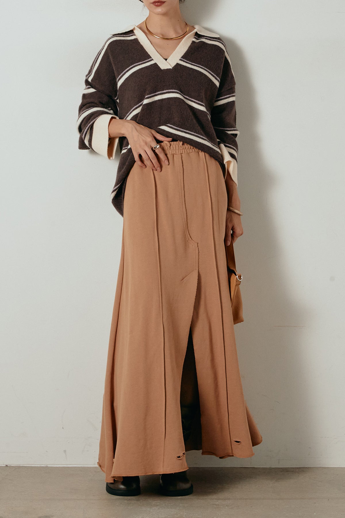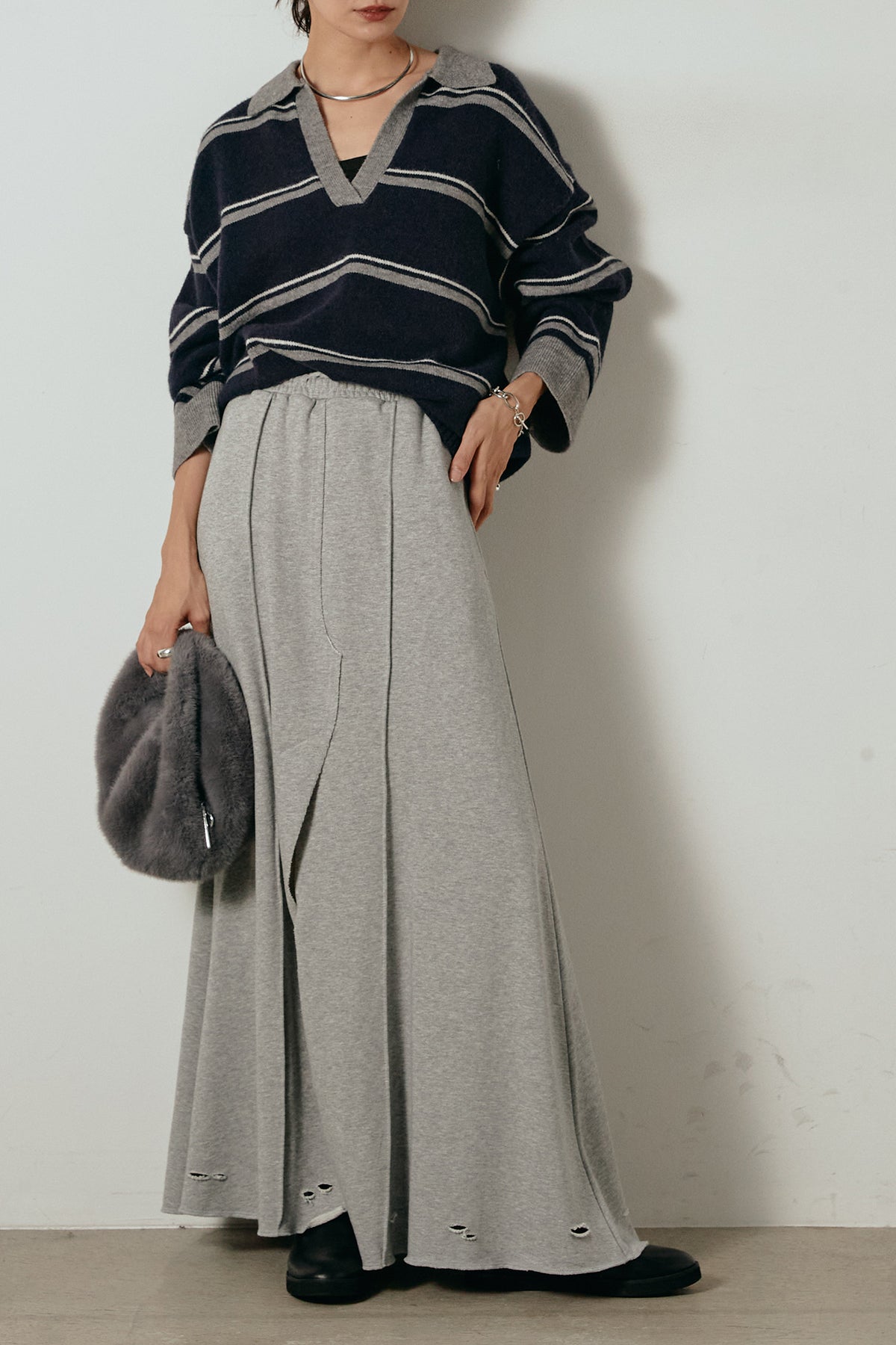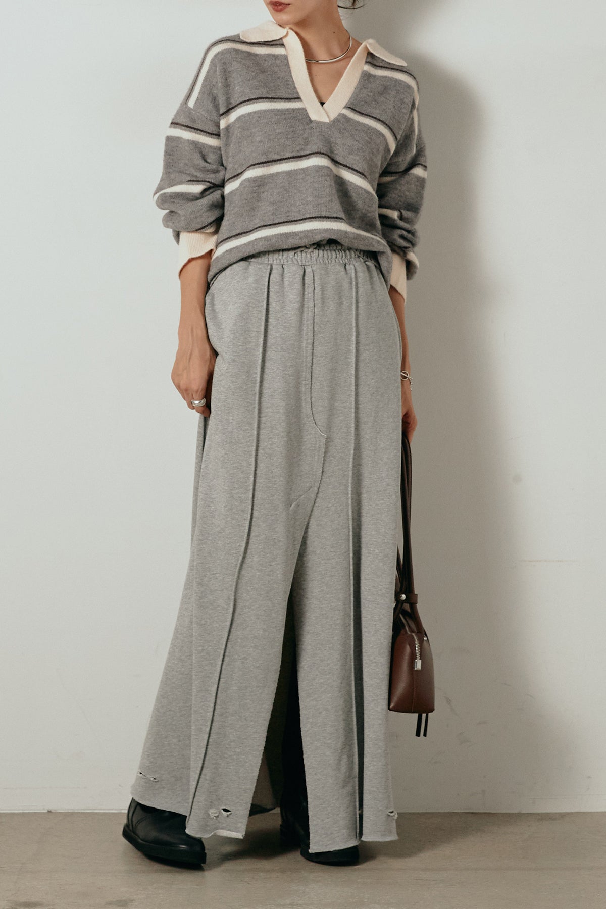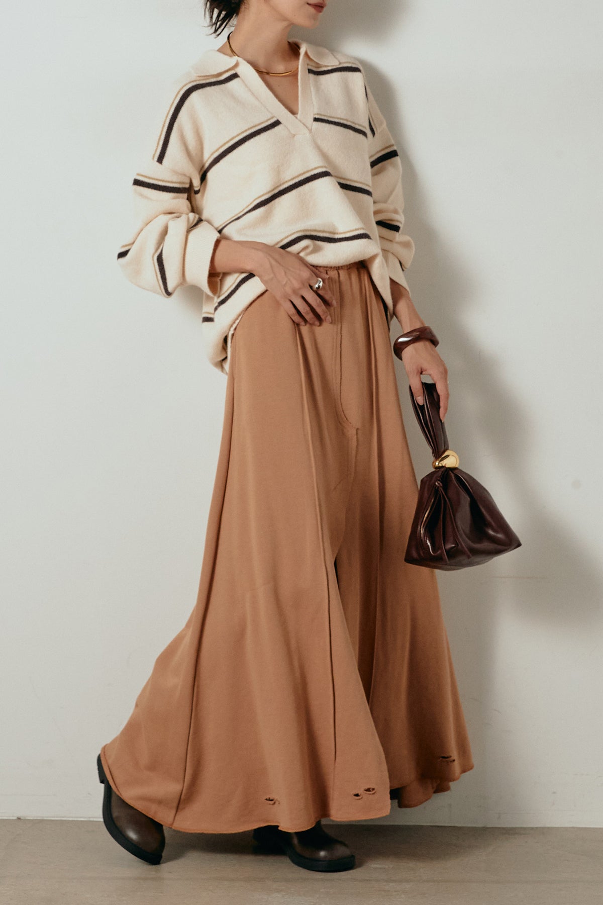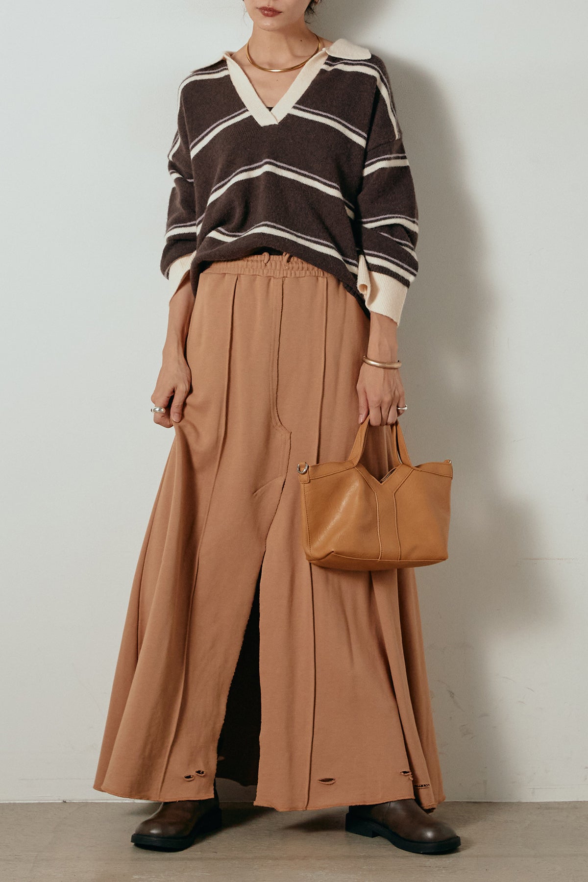 [SET]アルパカタッチボーダーラガーニット+切り替えスウェットフレアスカート(2set)