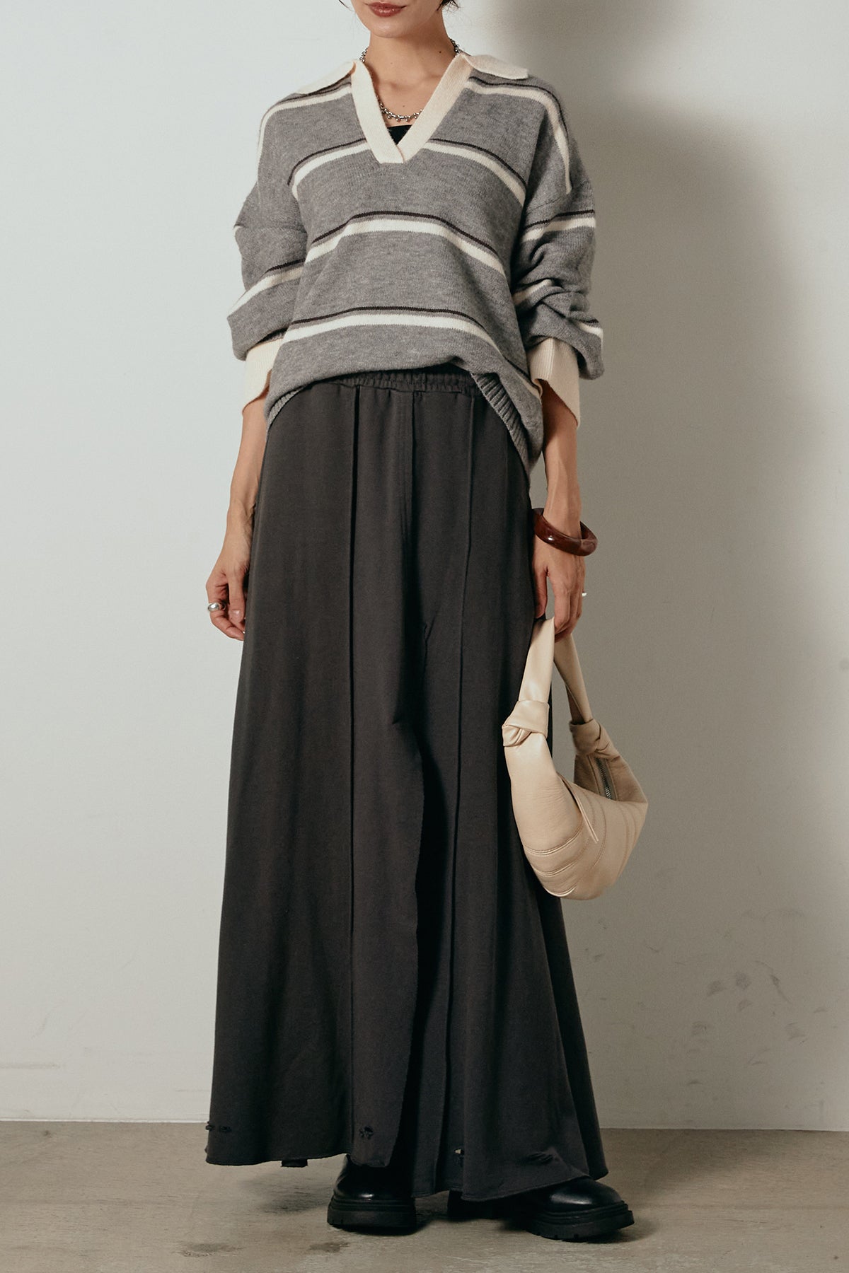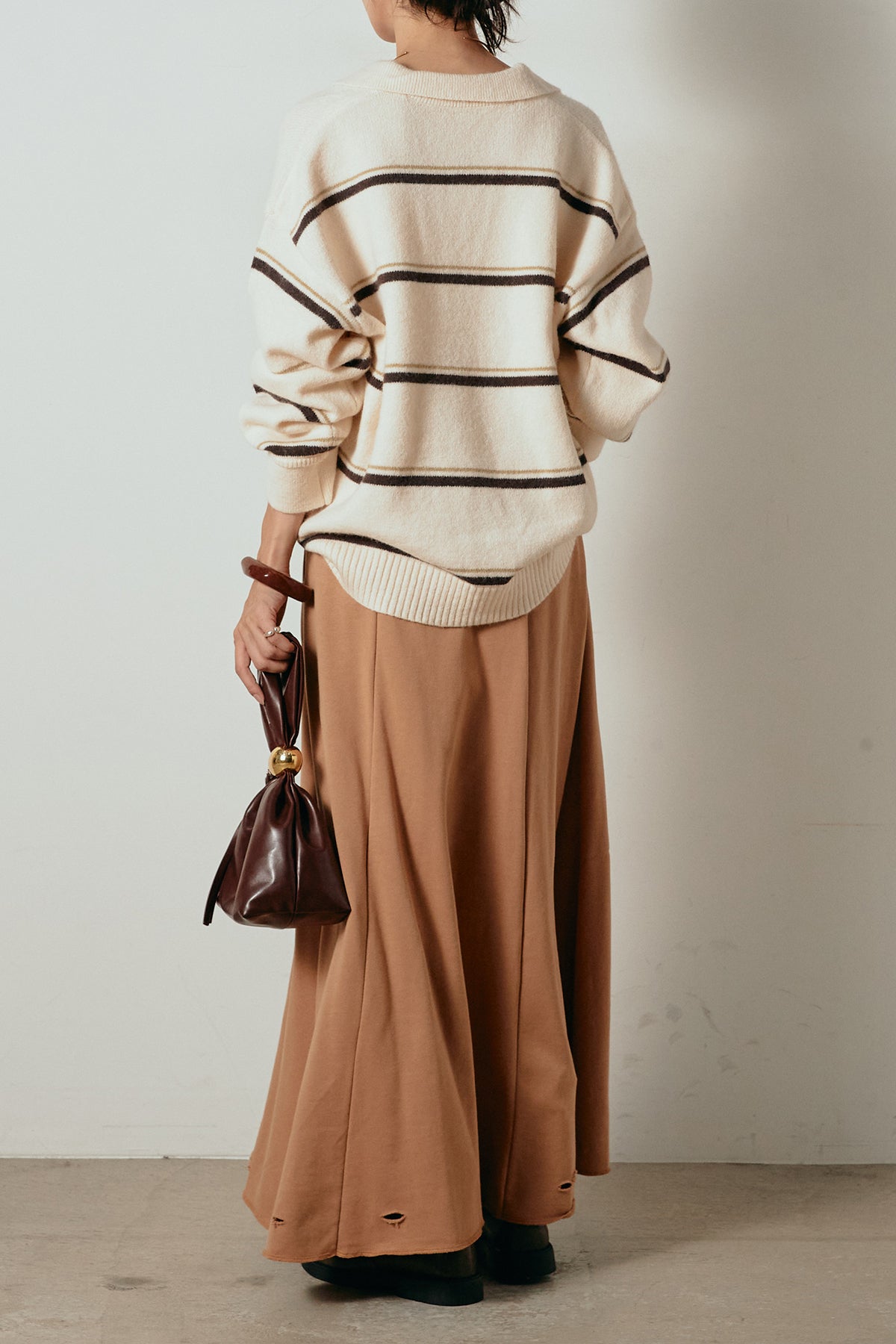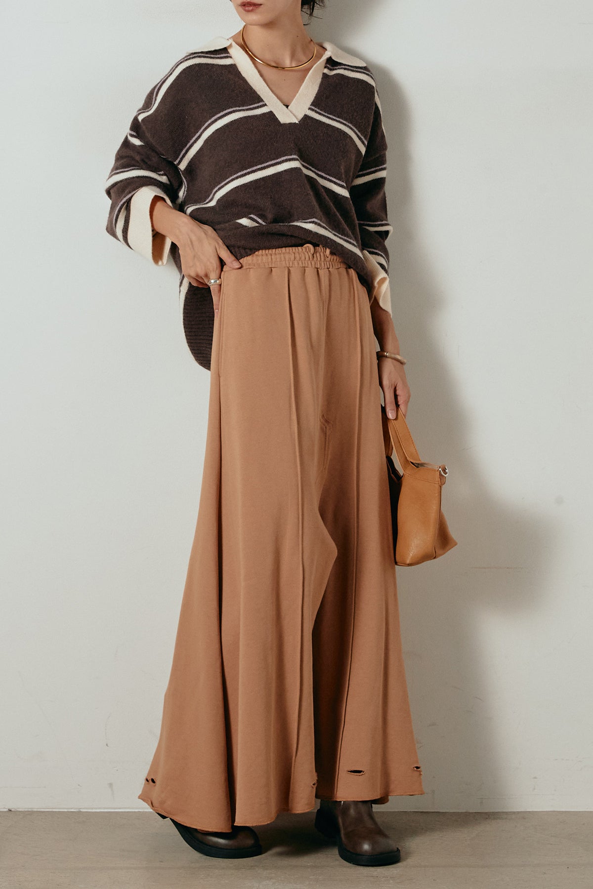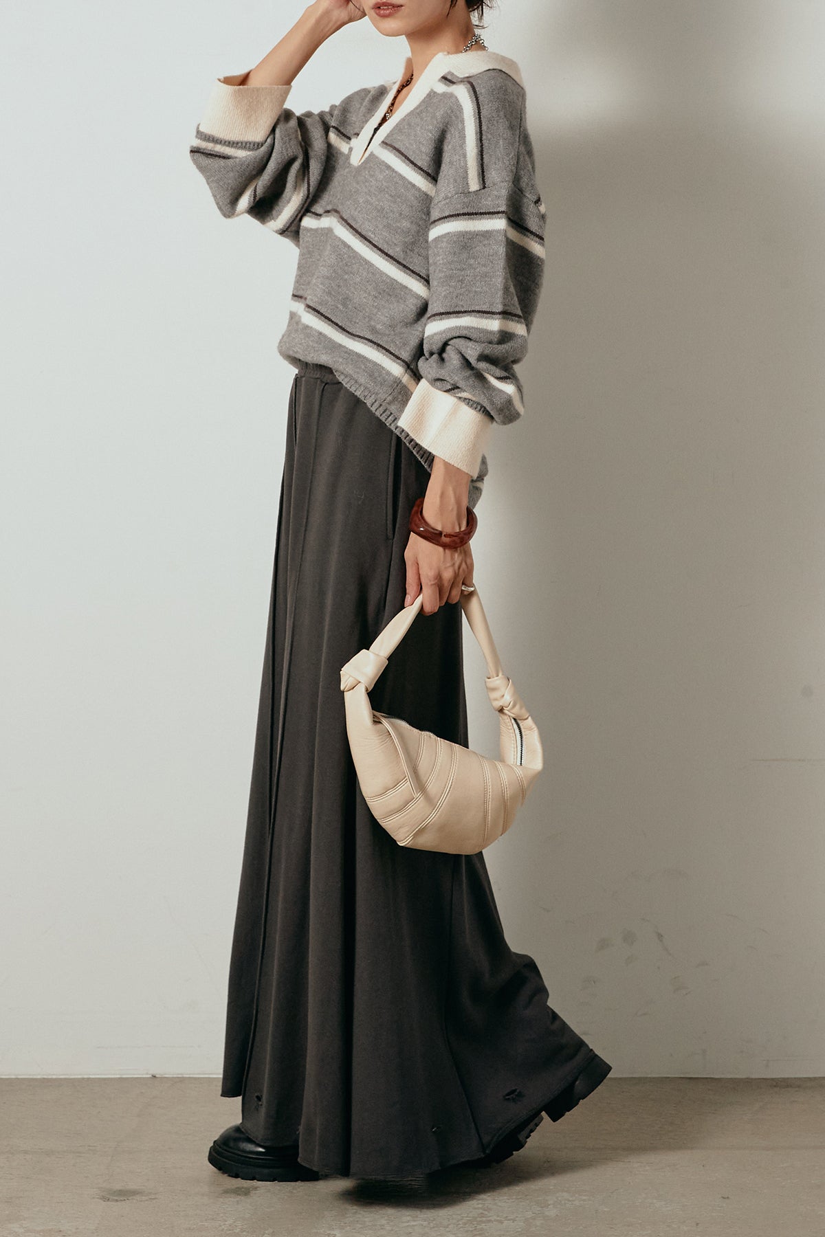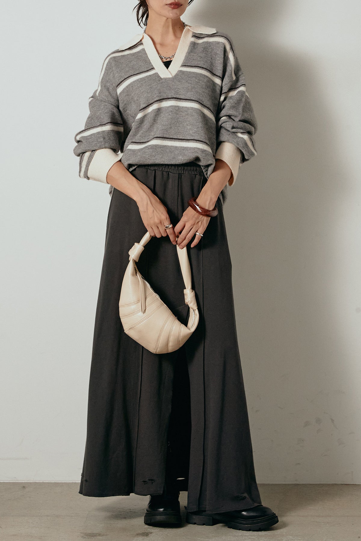 [SET]アルパカタッチボーダーラガーニット+切り替えスウェットフレアスカート(2set)