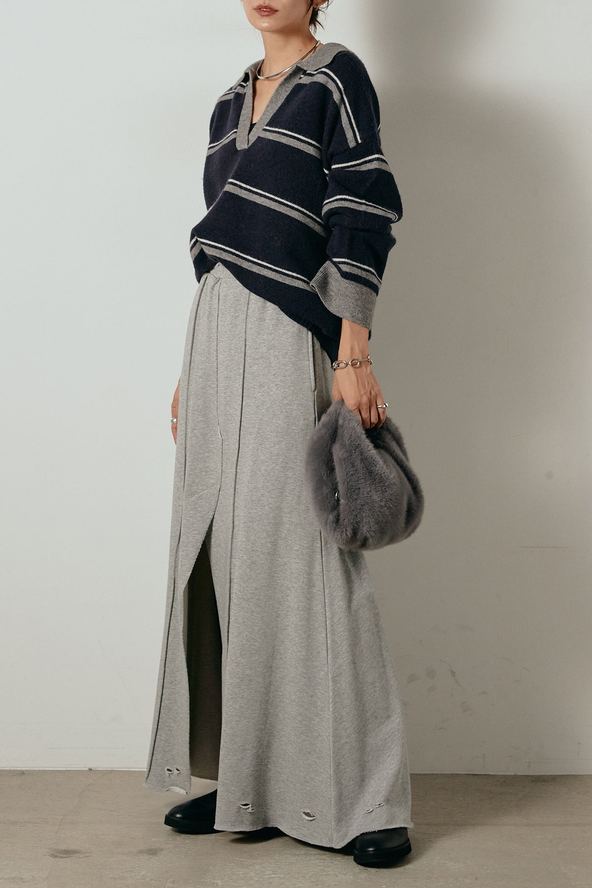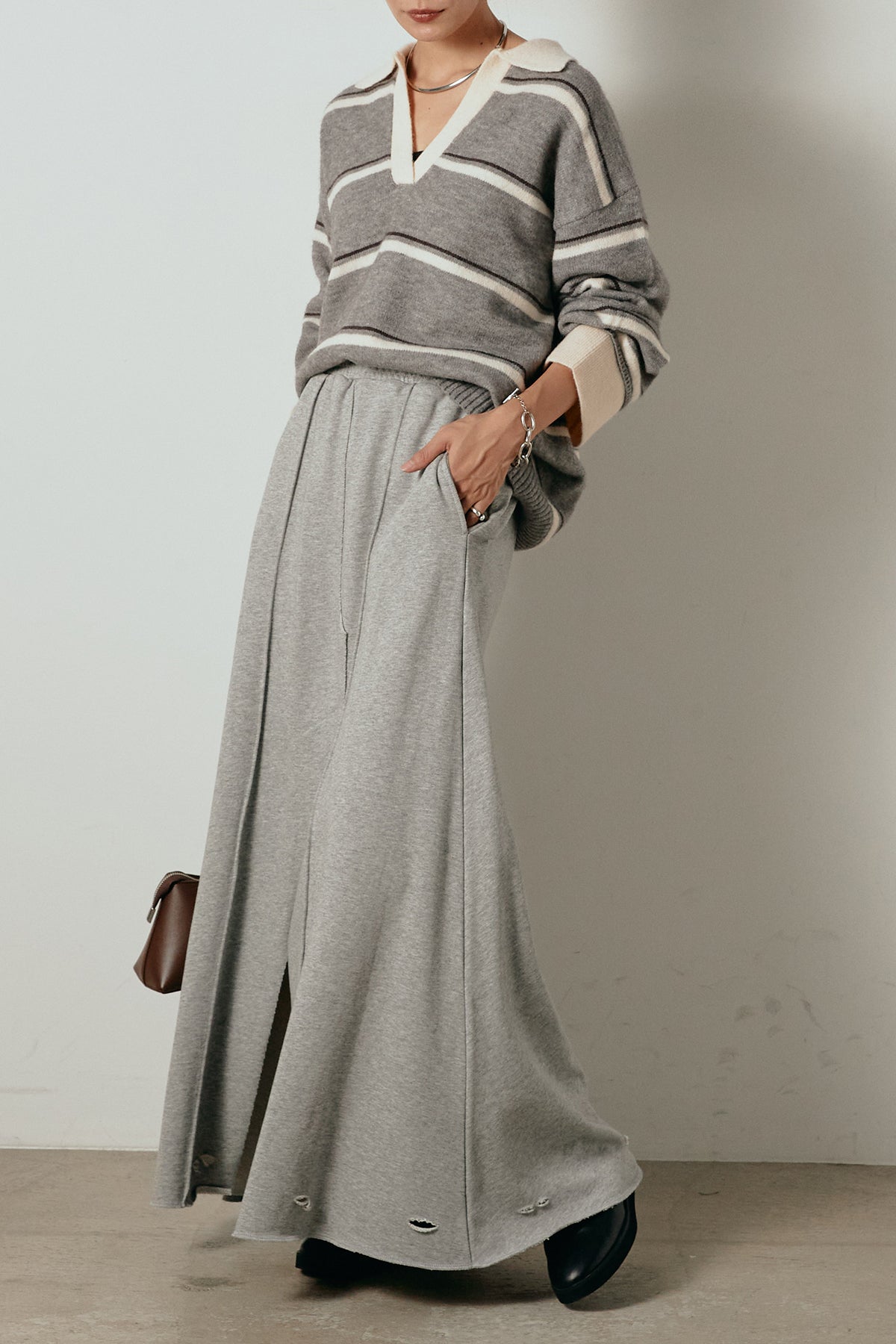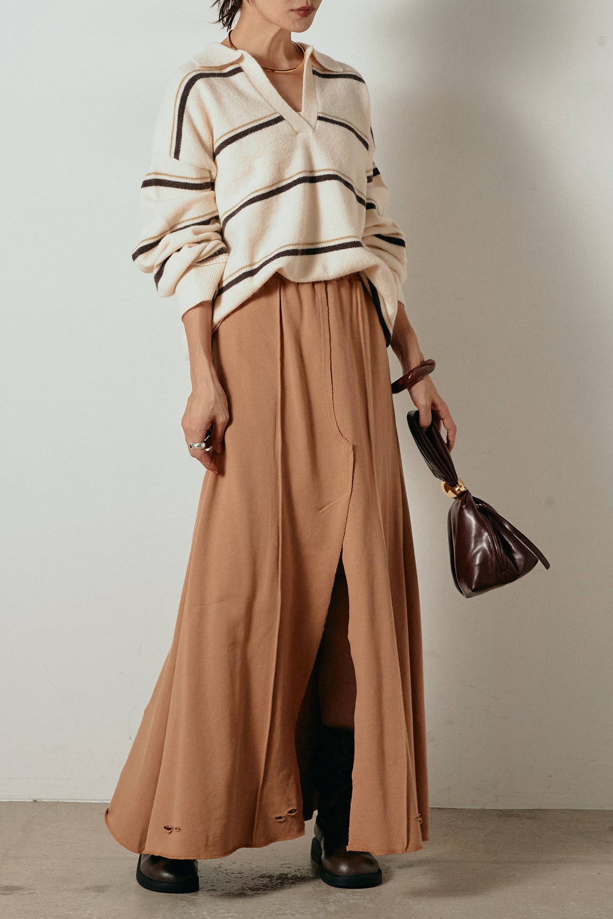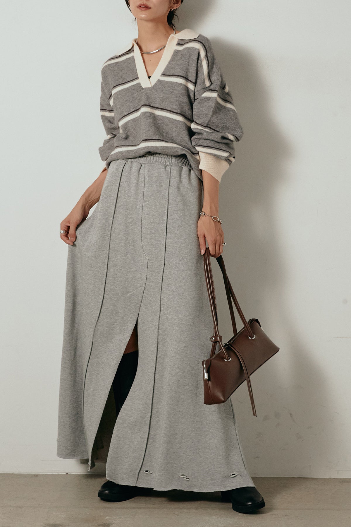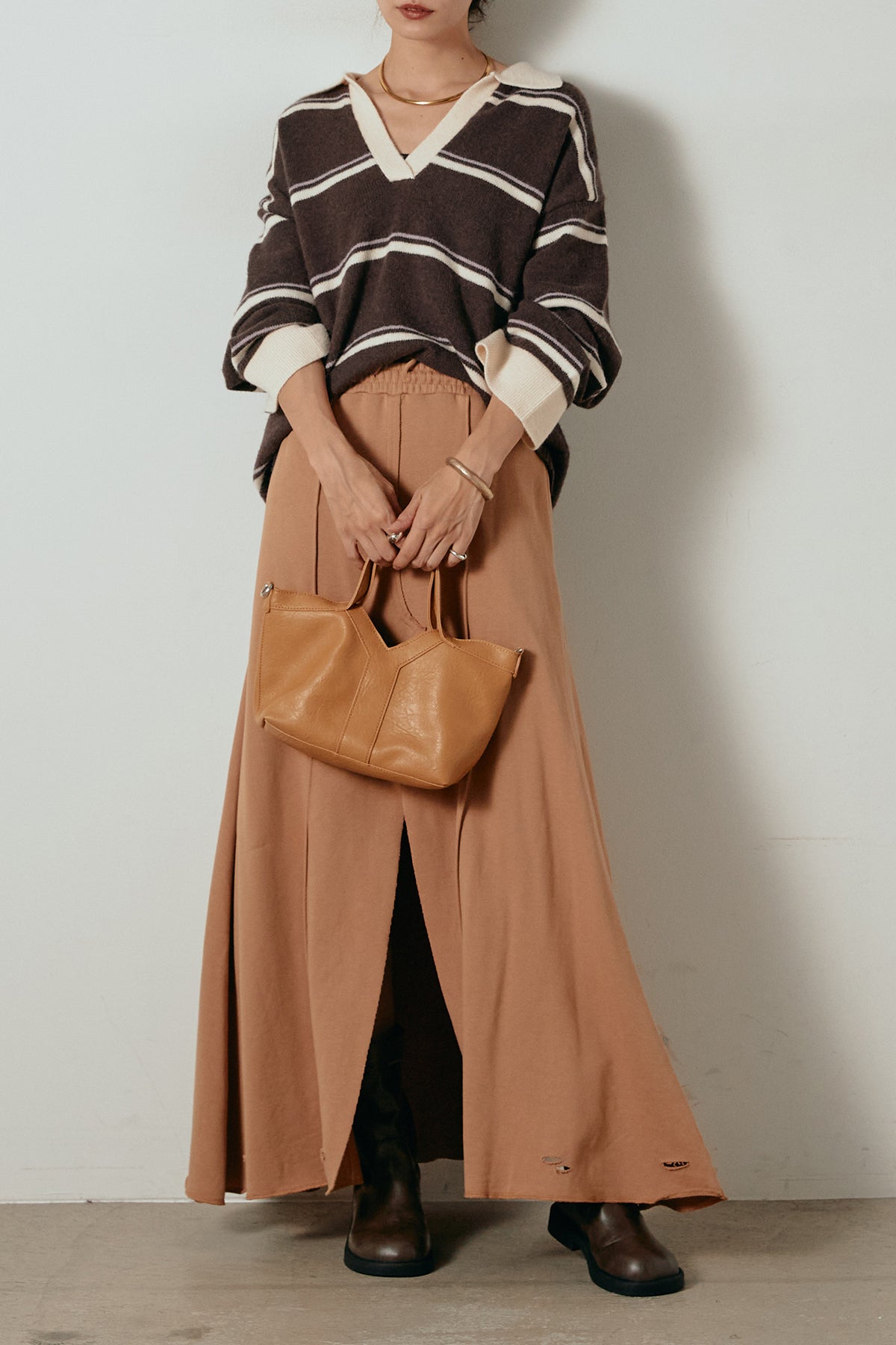 [SET]アルパカタッチボーダーラガーニット+切り替えスウェットフレアスカート(2set)