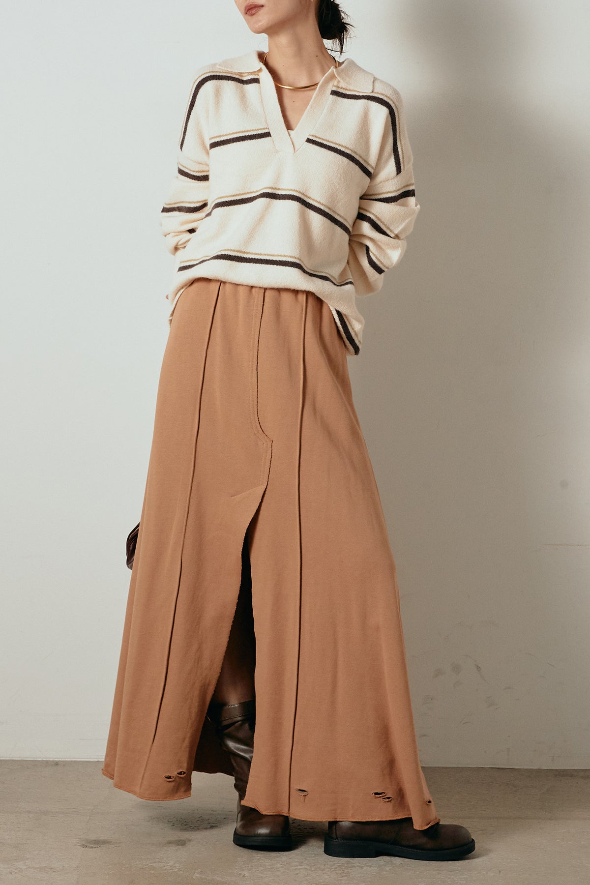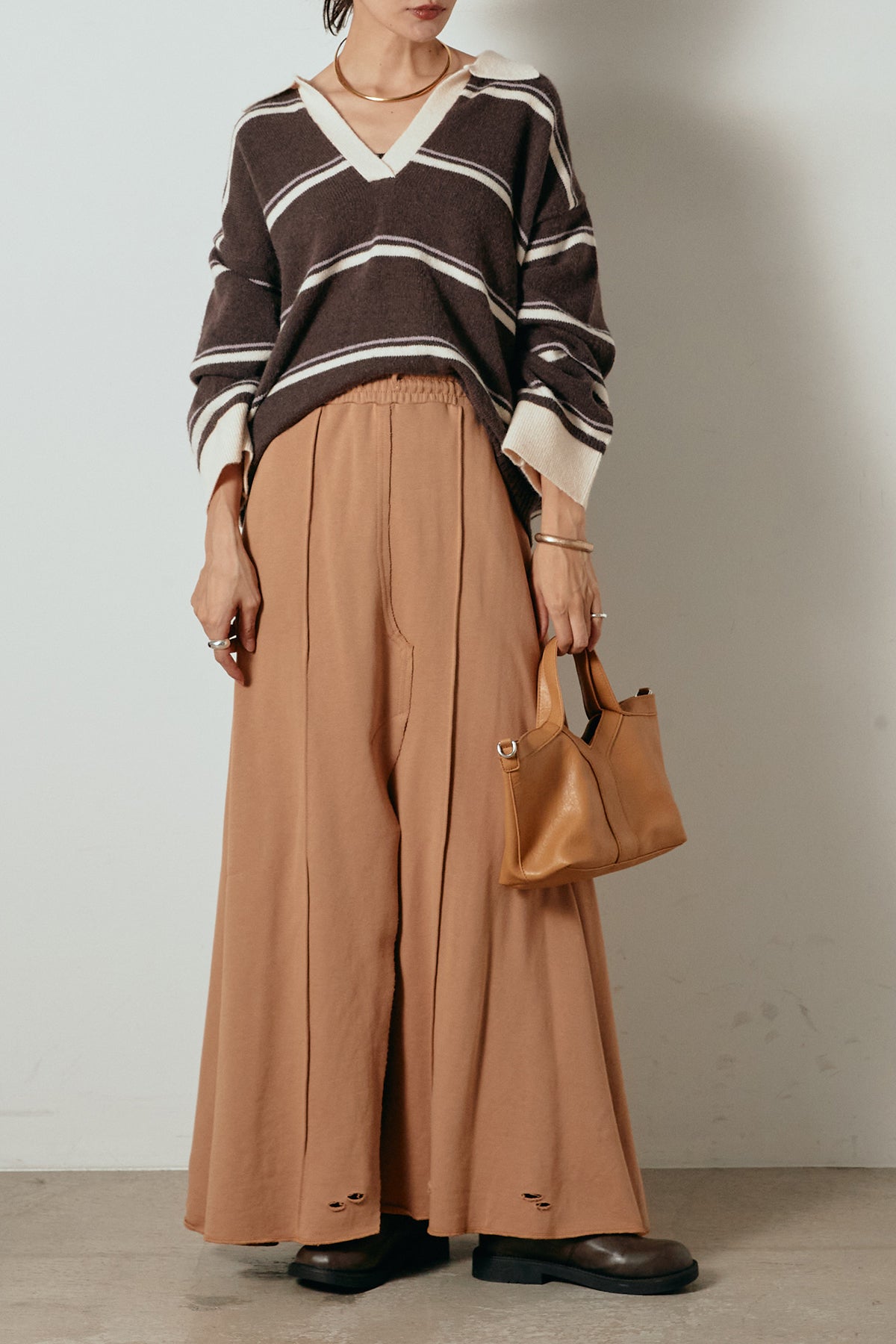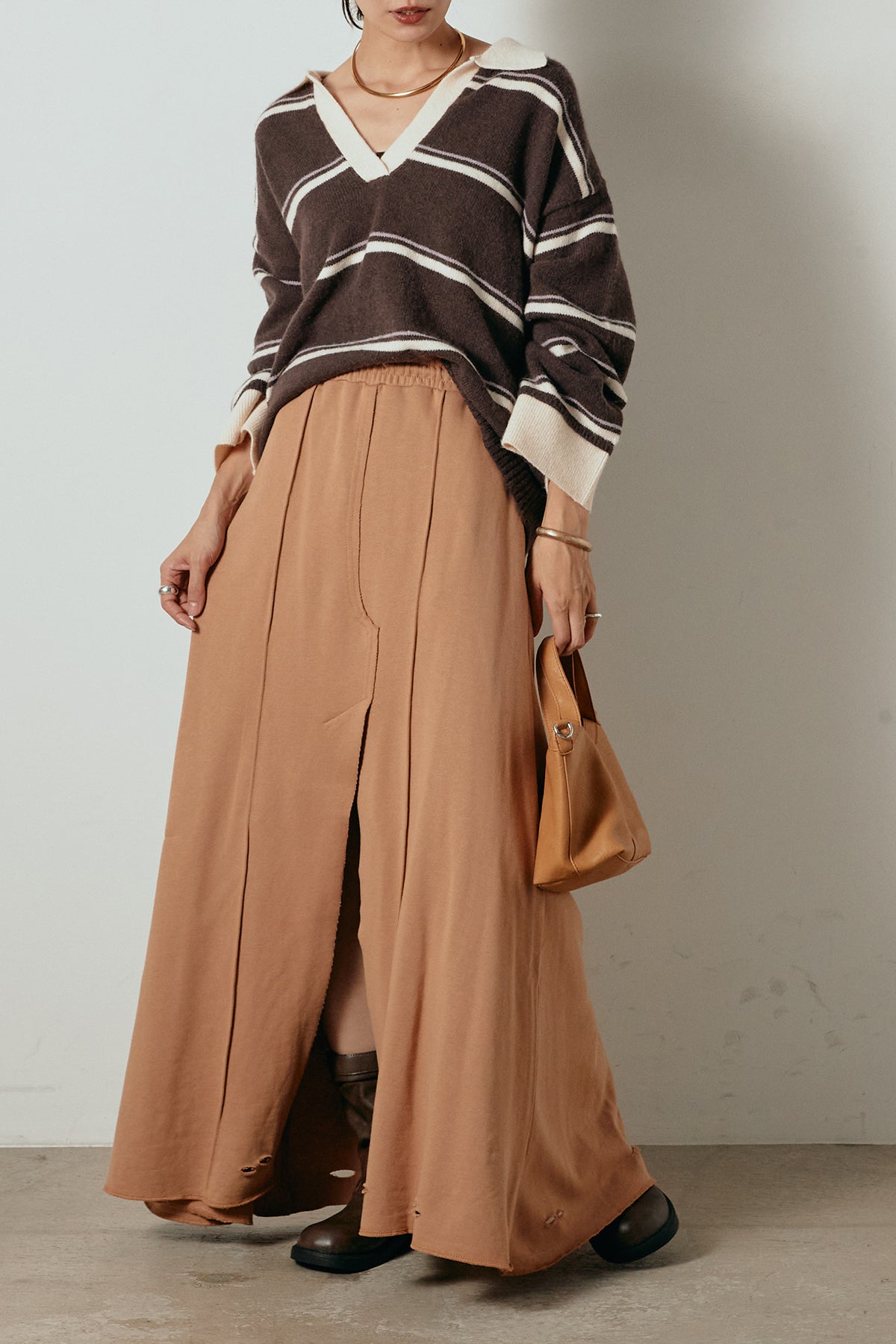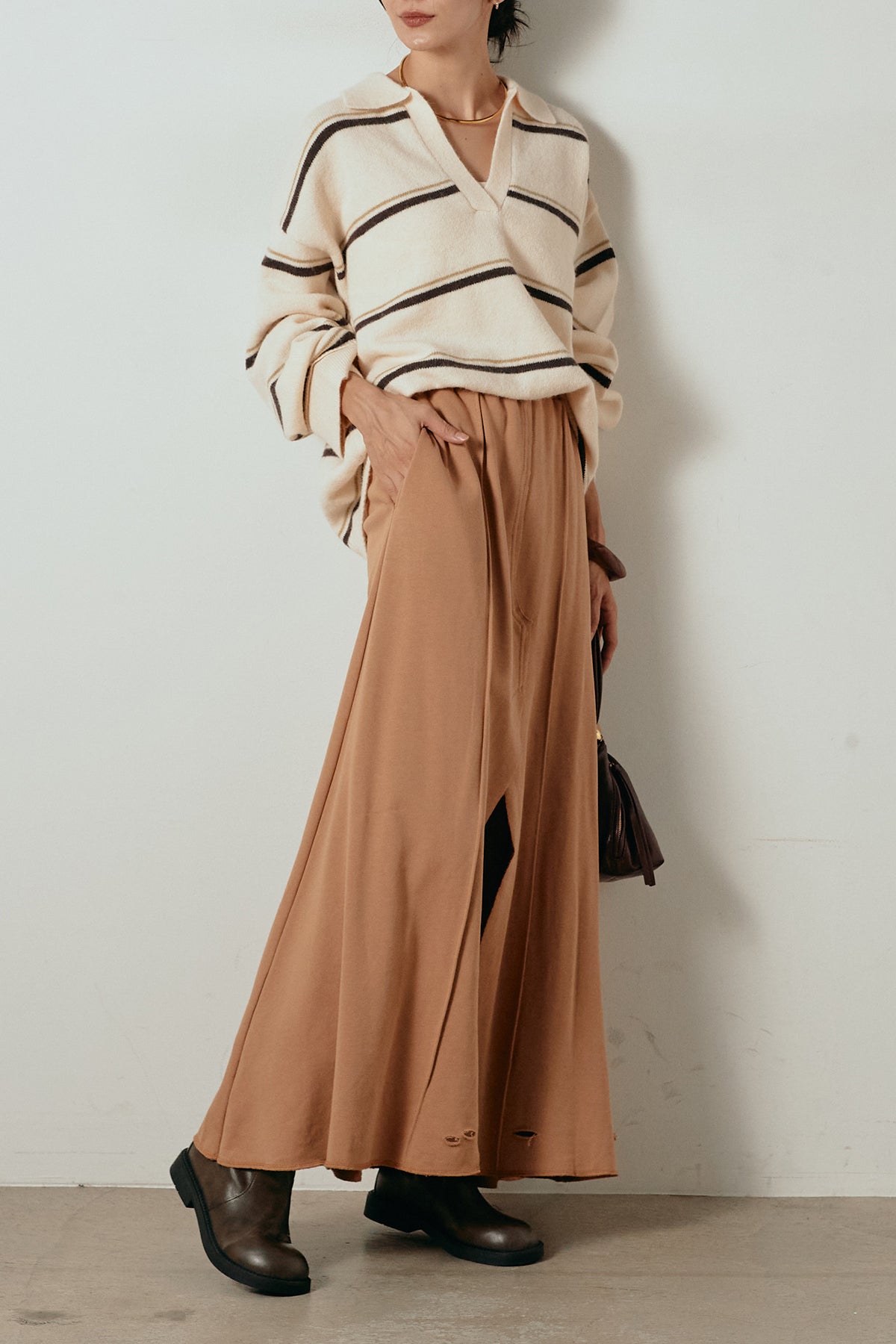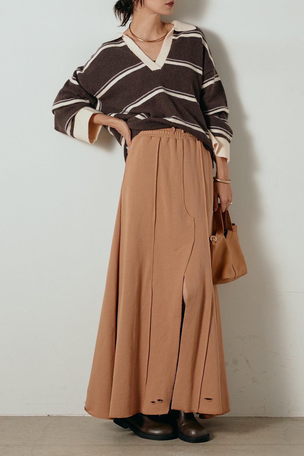 [SET]アルパカタッチボーダーラガーニット+切り替えスウェットフレアスカート(2set)