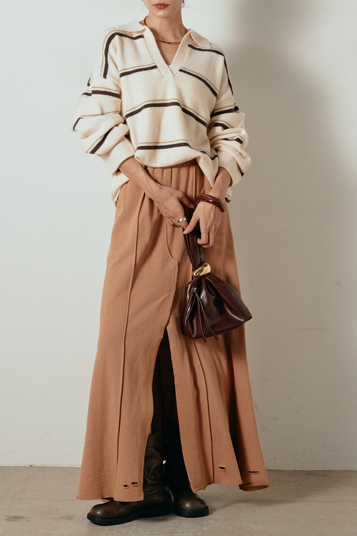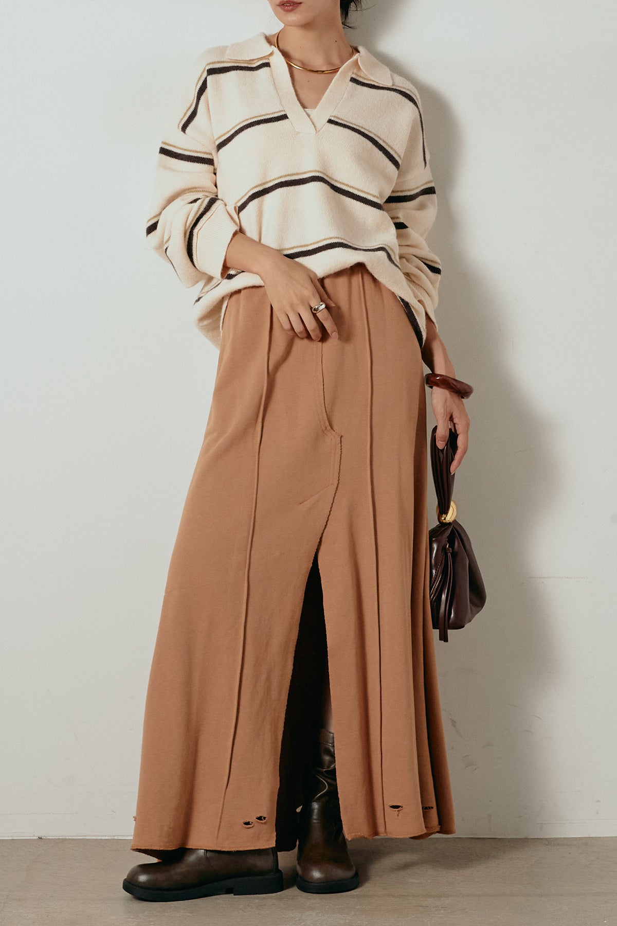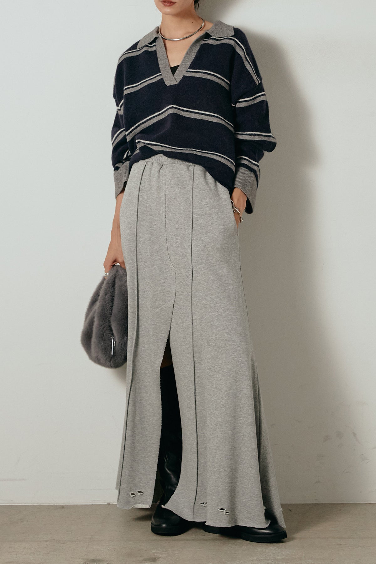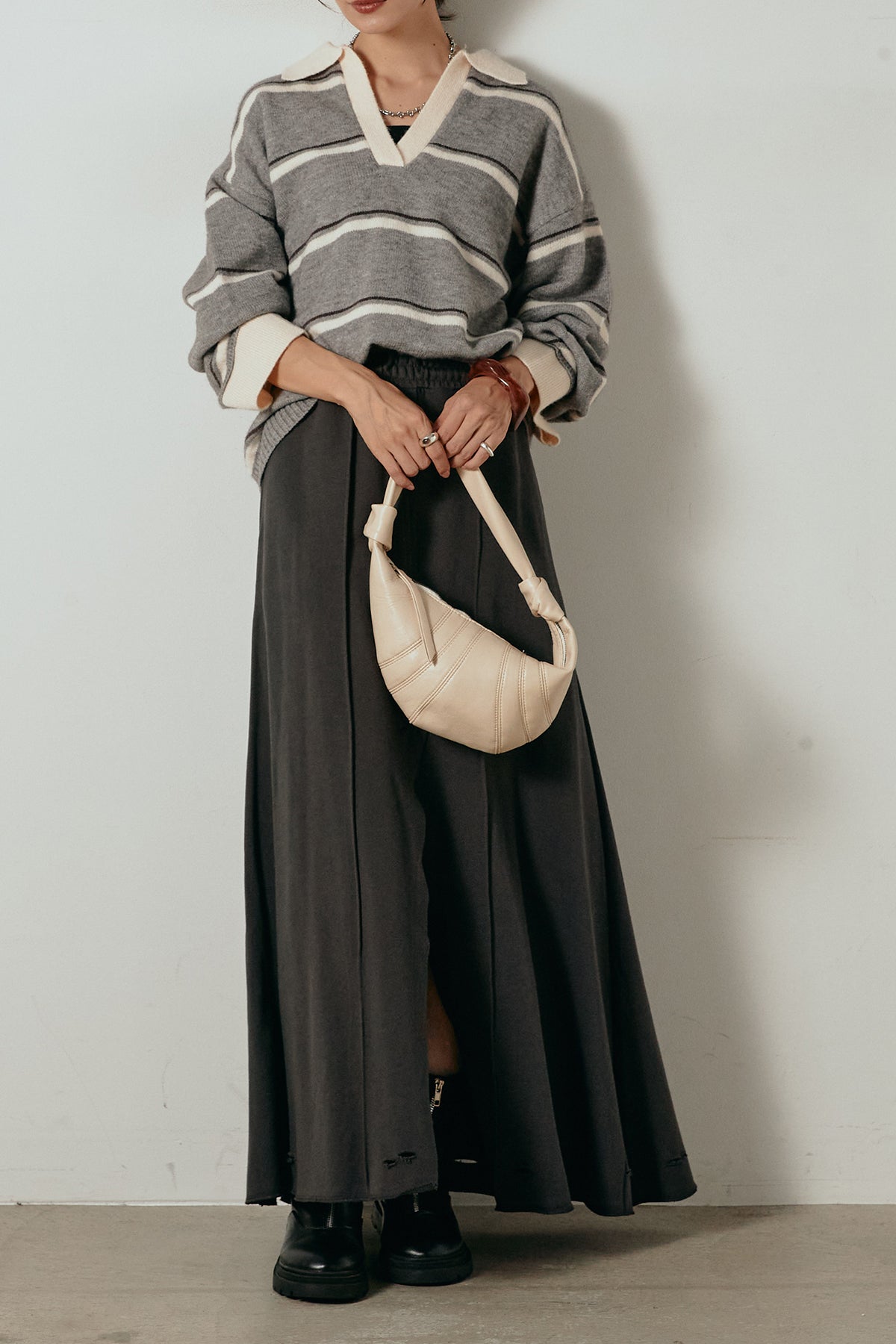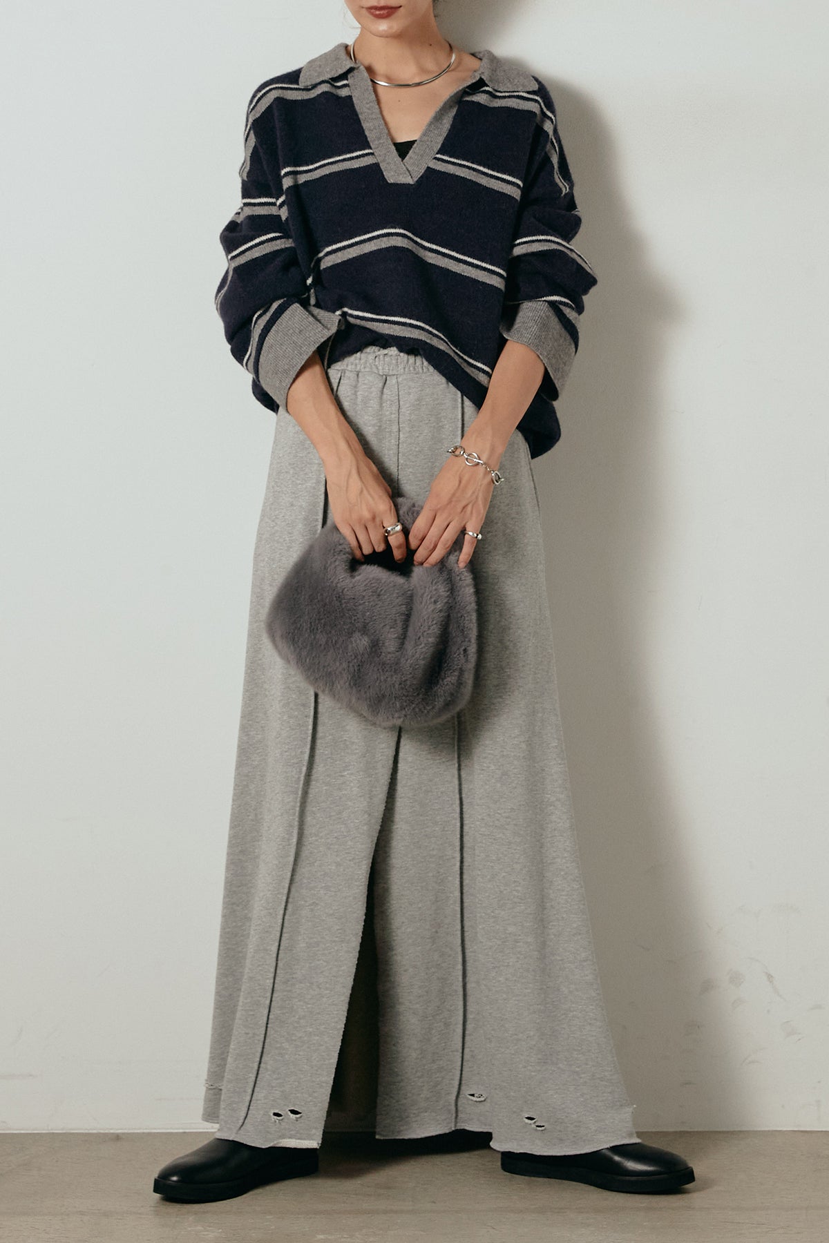 [SET]アルパカタッチボーダーラガーニット+切り替えスウェットフレアスカート(2set)