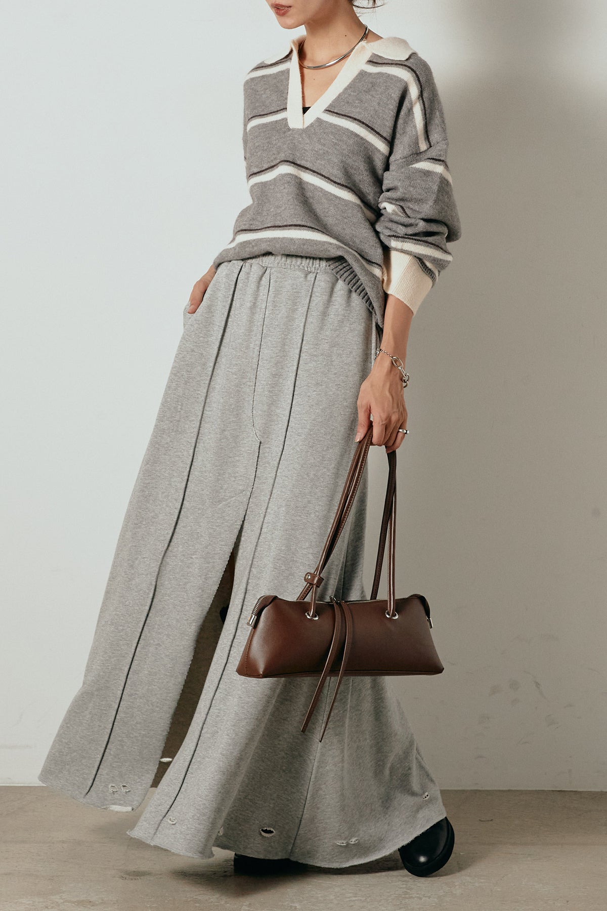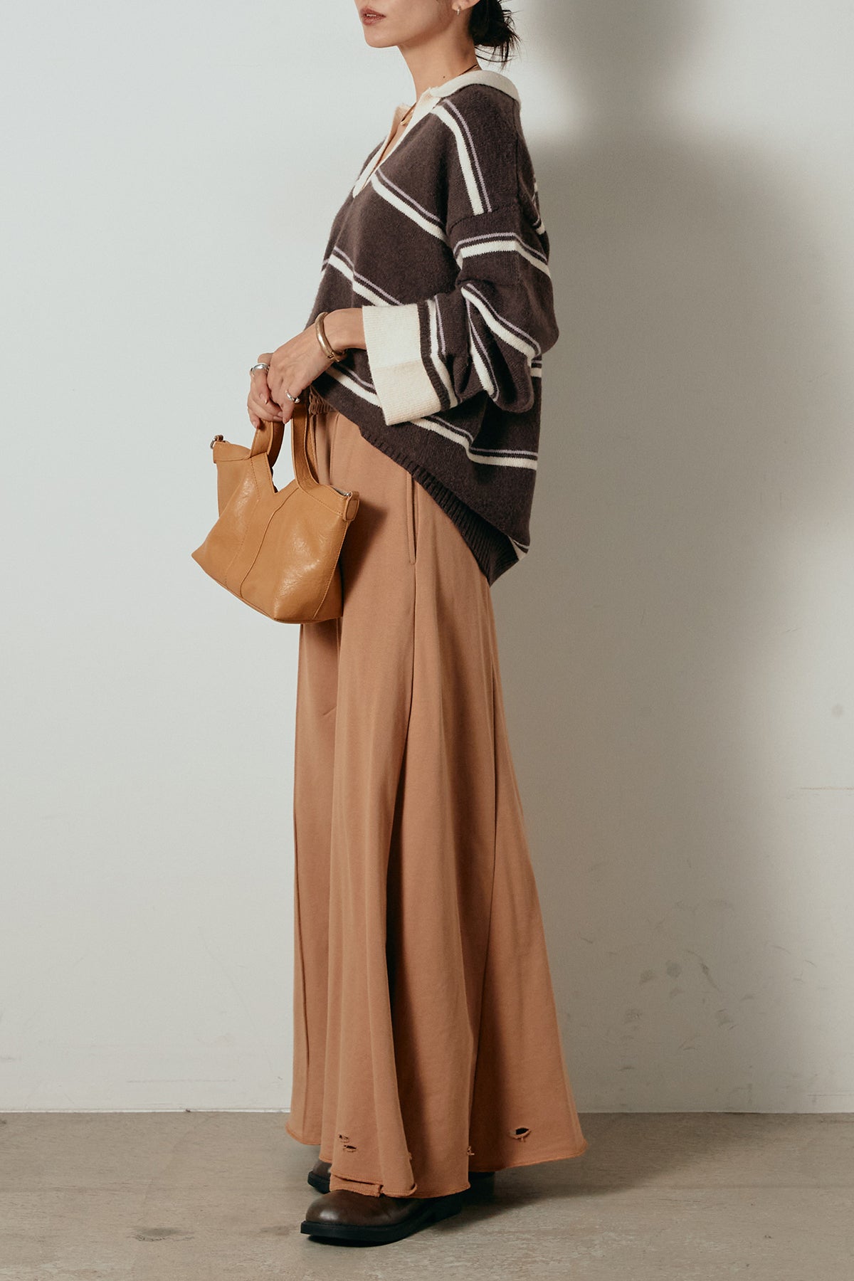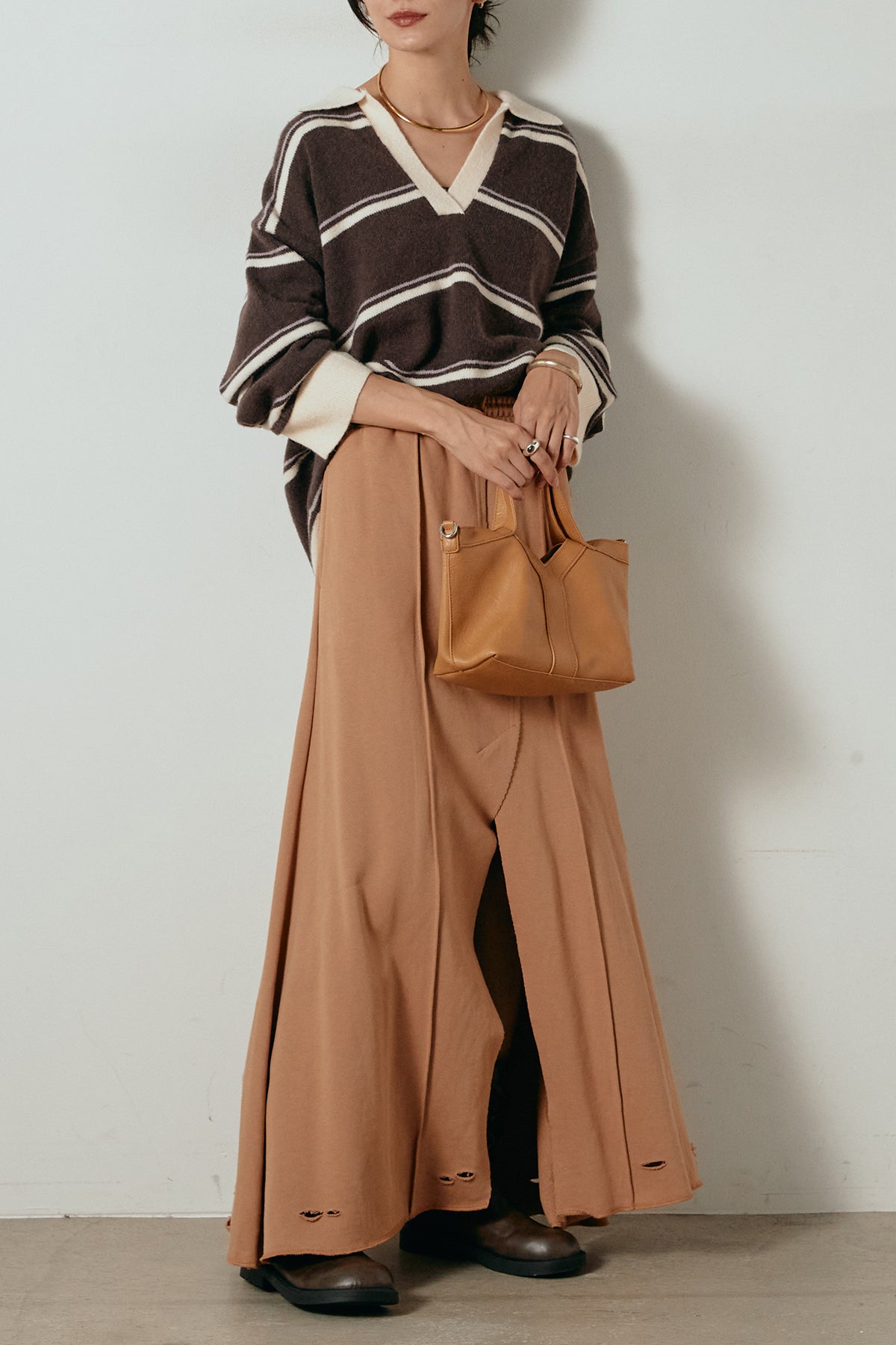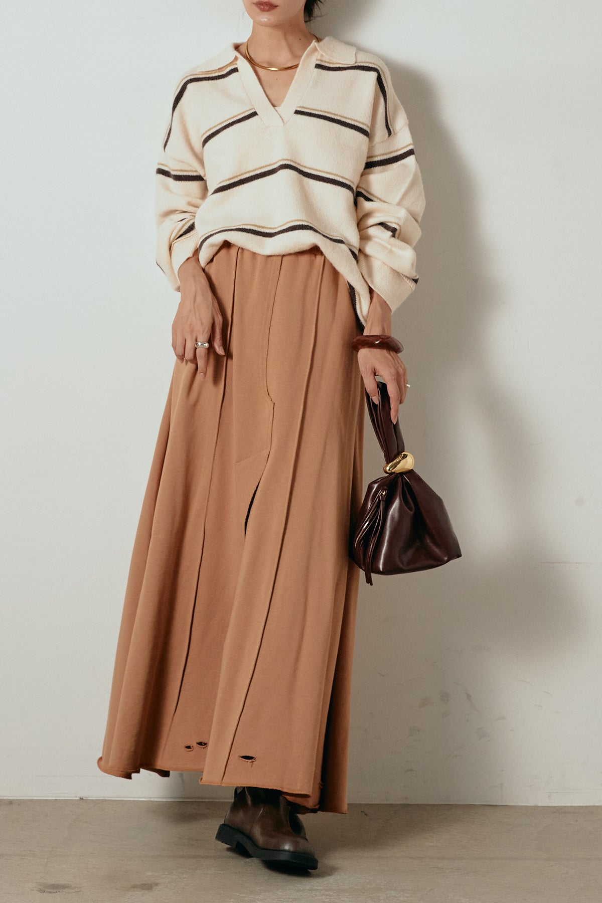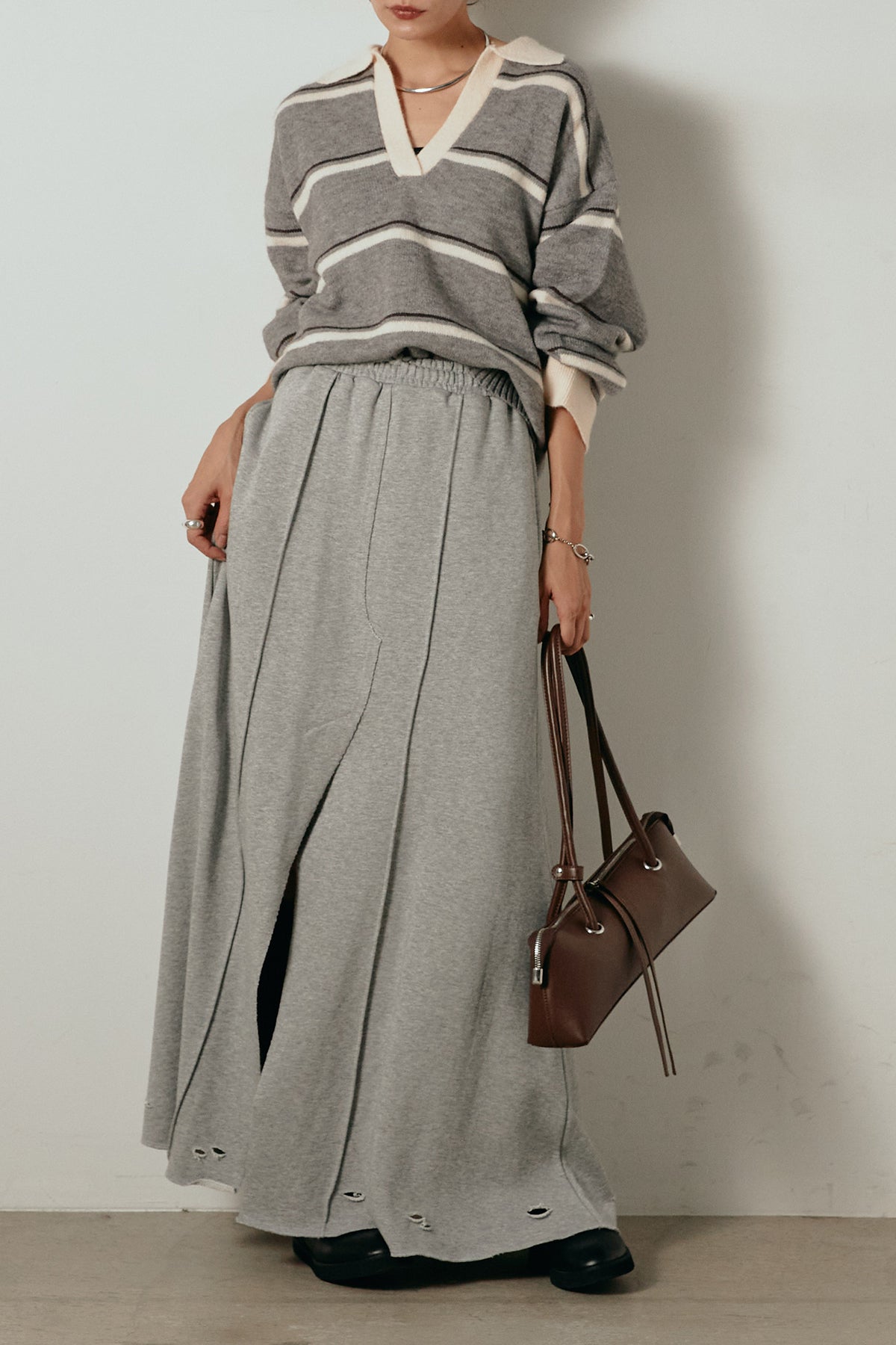 [SET]アルパカタッチボーダーラガーニット+切り替えスウェットフレアスカート(2set)