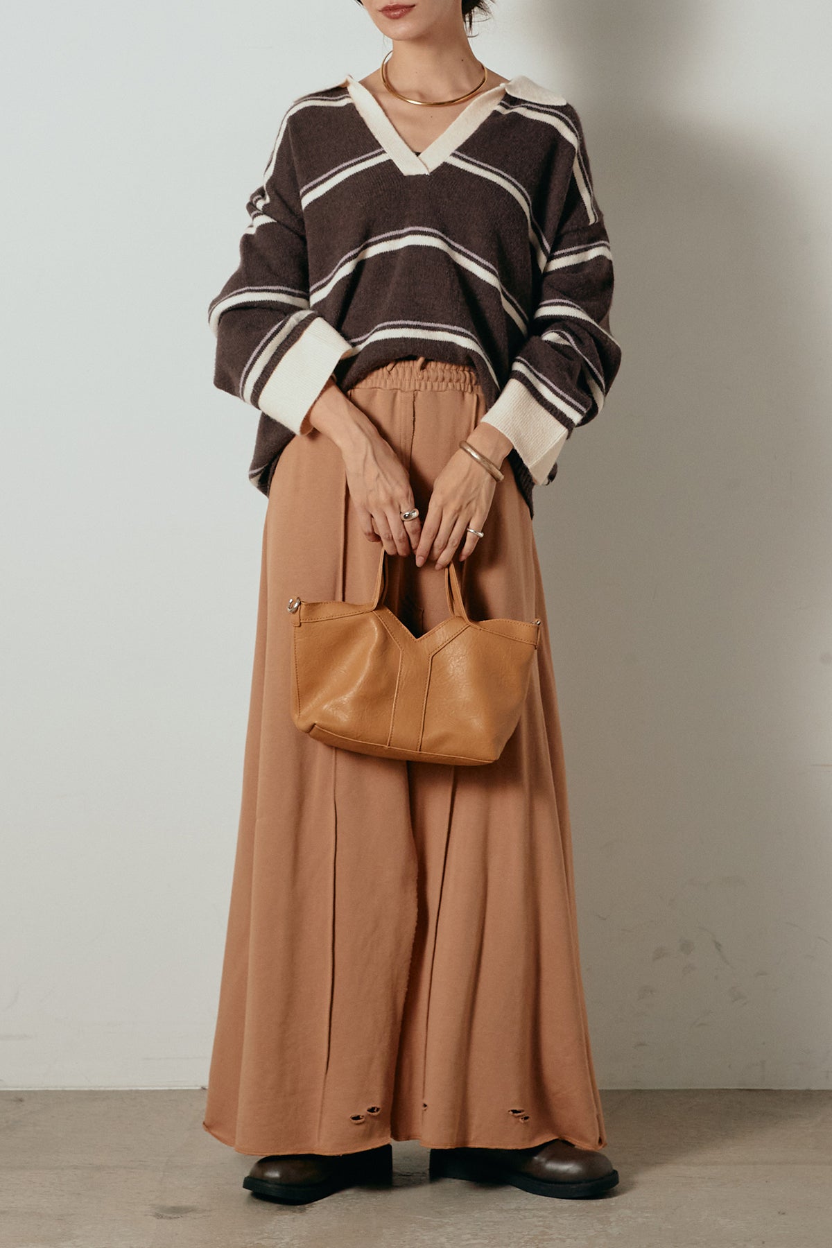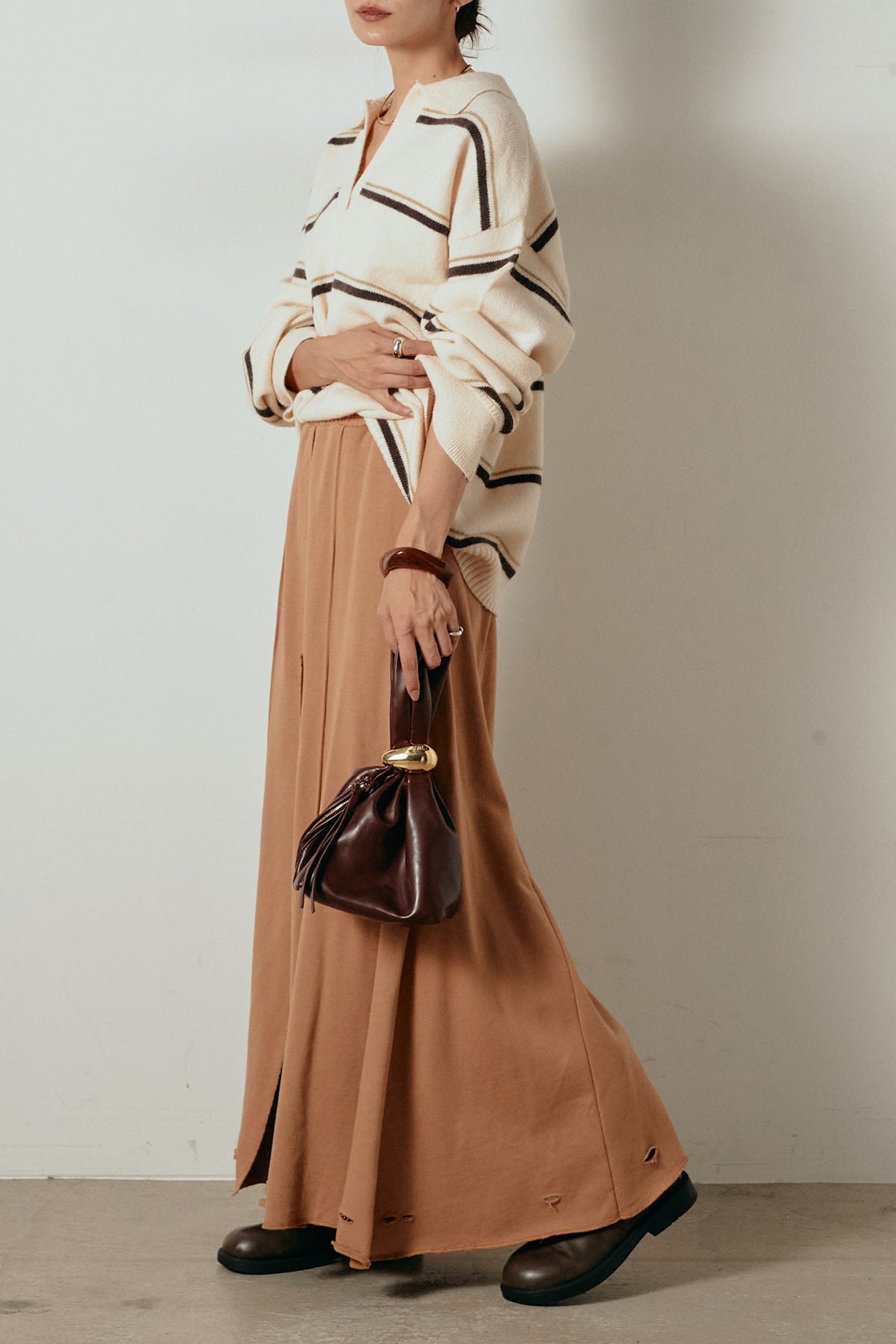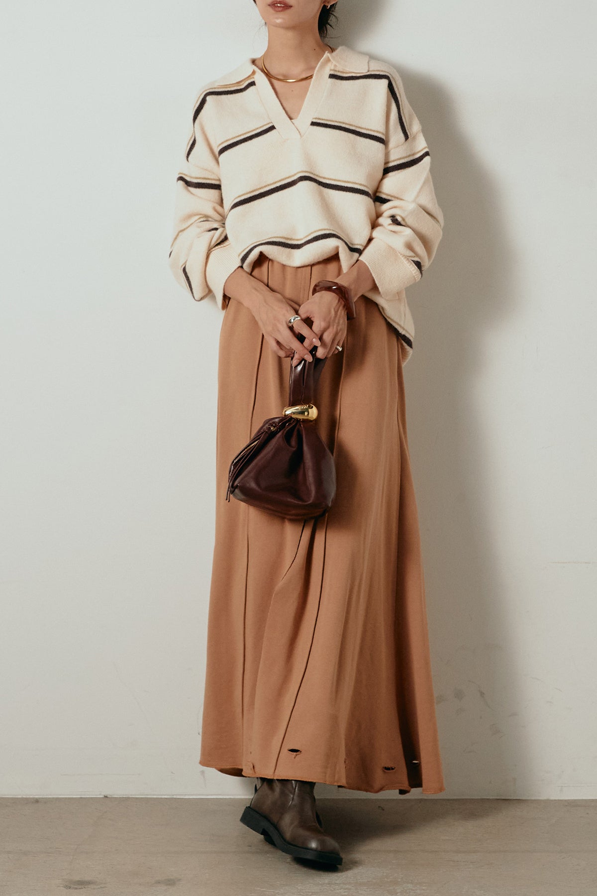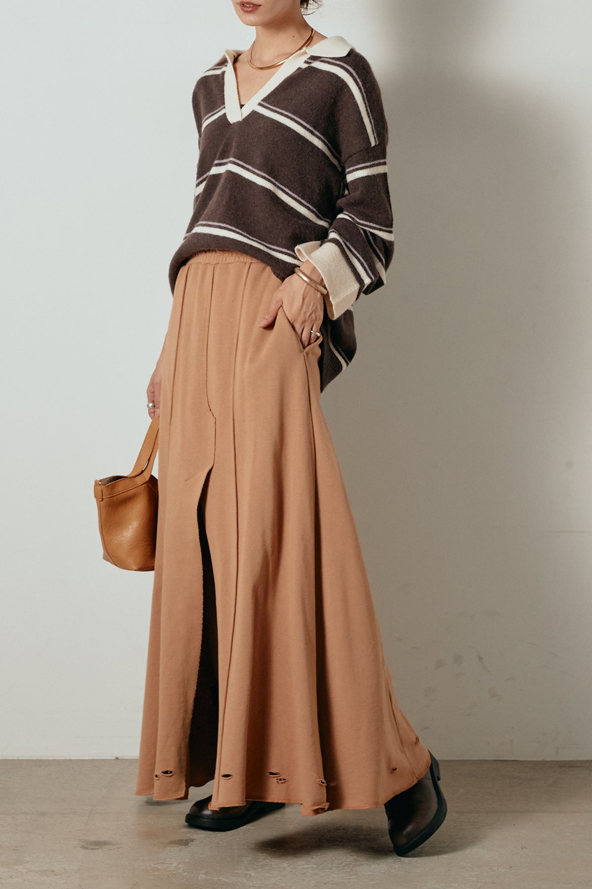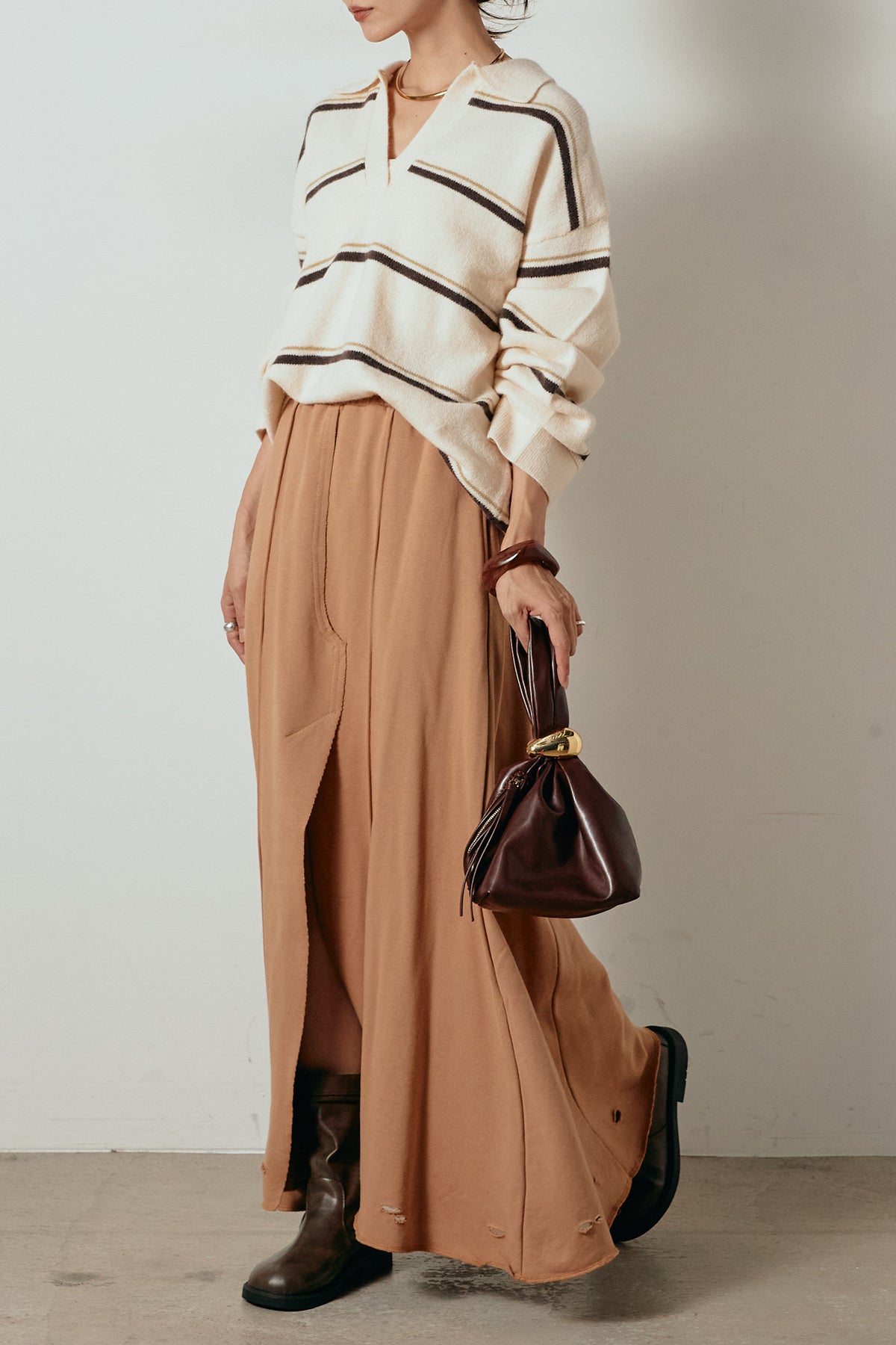 [SET]アルパカタッチボーダーラガーニット+切り替えスウェットフレアスカート(2set)