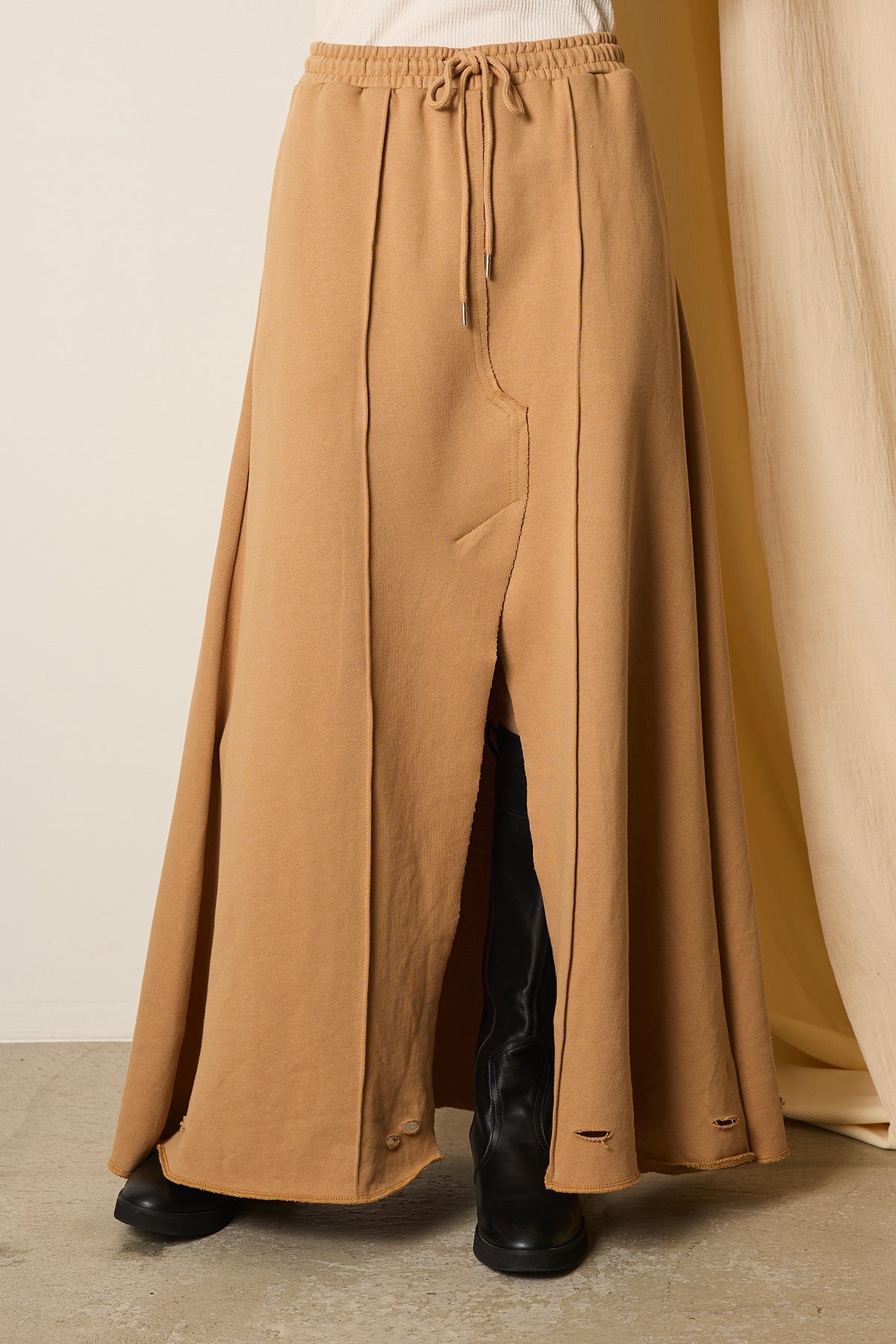 異素材の切り替えデザインがポイントのスウェットフレアスカート。 カジュアルな素材感ながらも、動くたびに広がるフレアシルエットが女性らしさをプラス。 スニーカーでラフに、ブーツで大人っぽくと幅広いスタイリングを楽しめます。