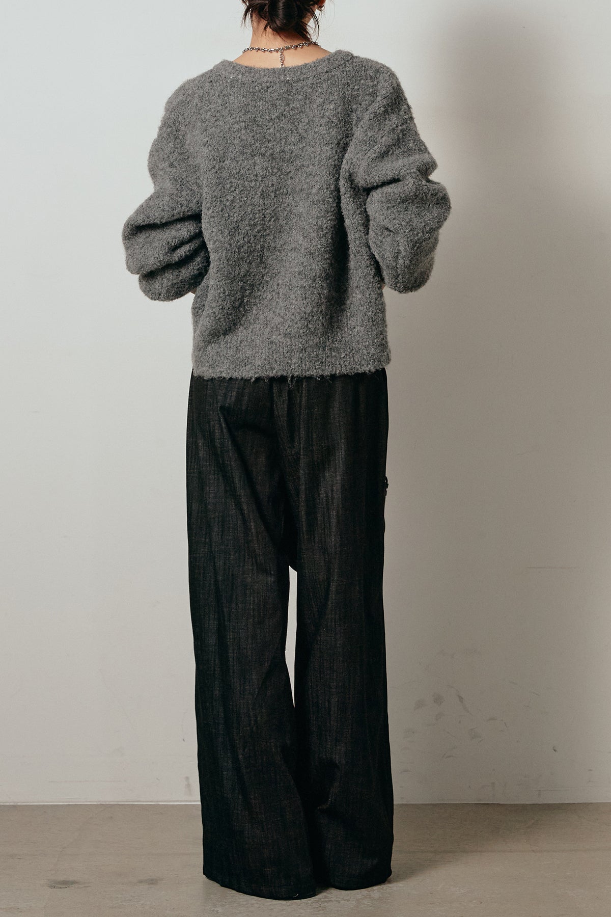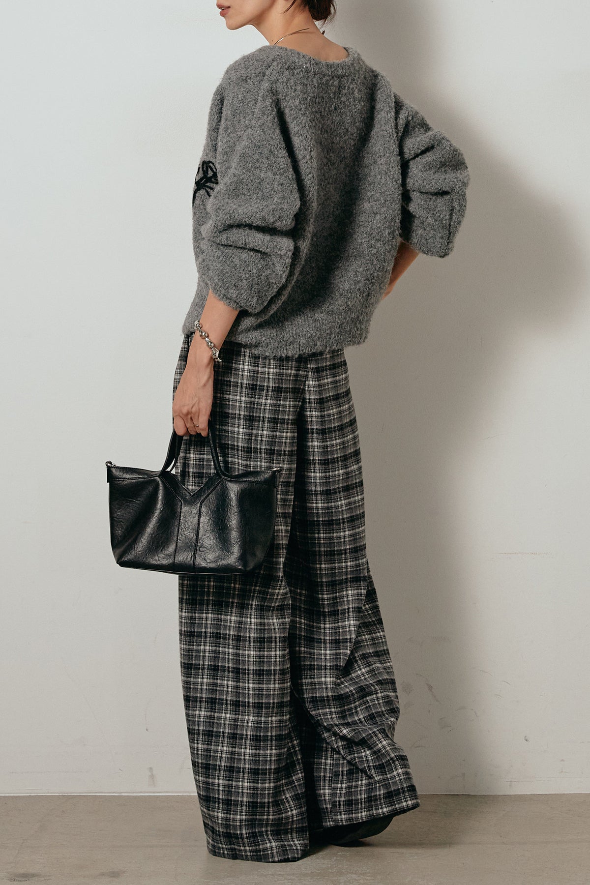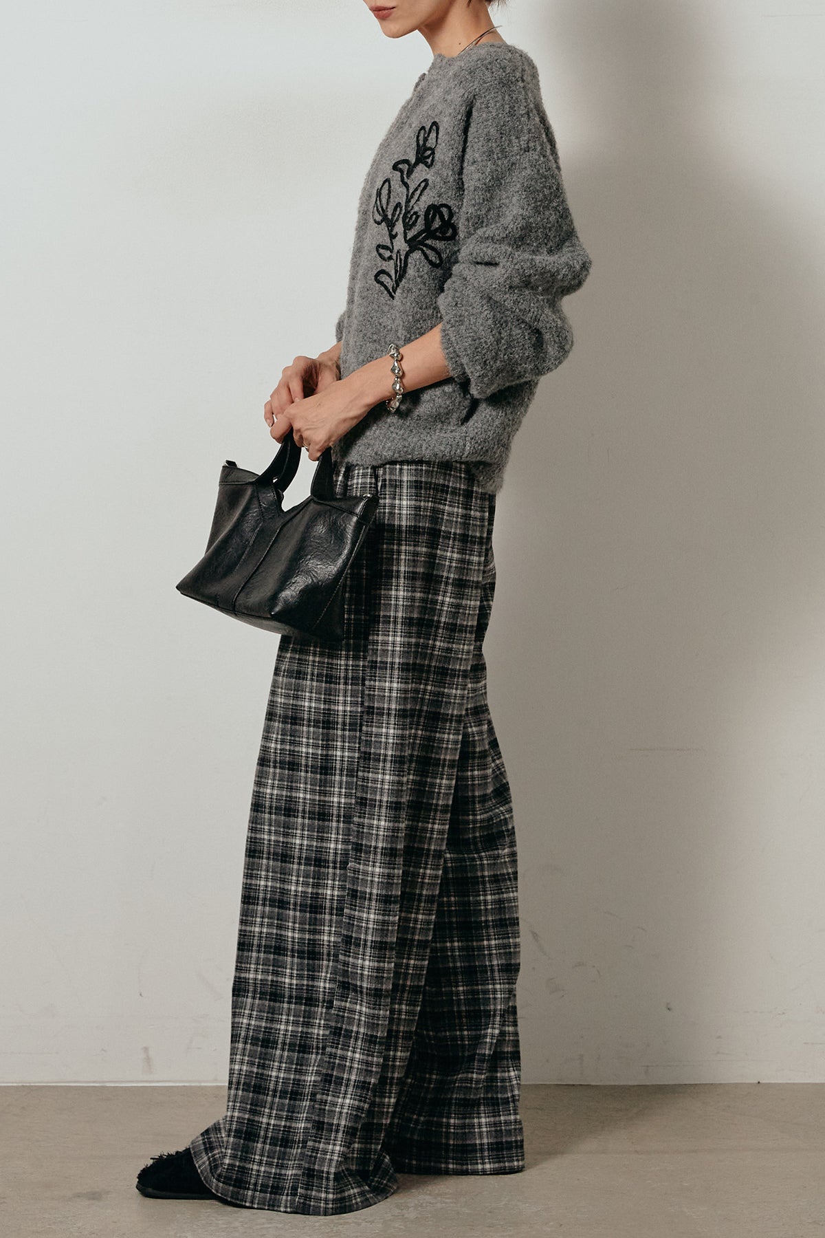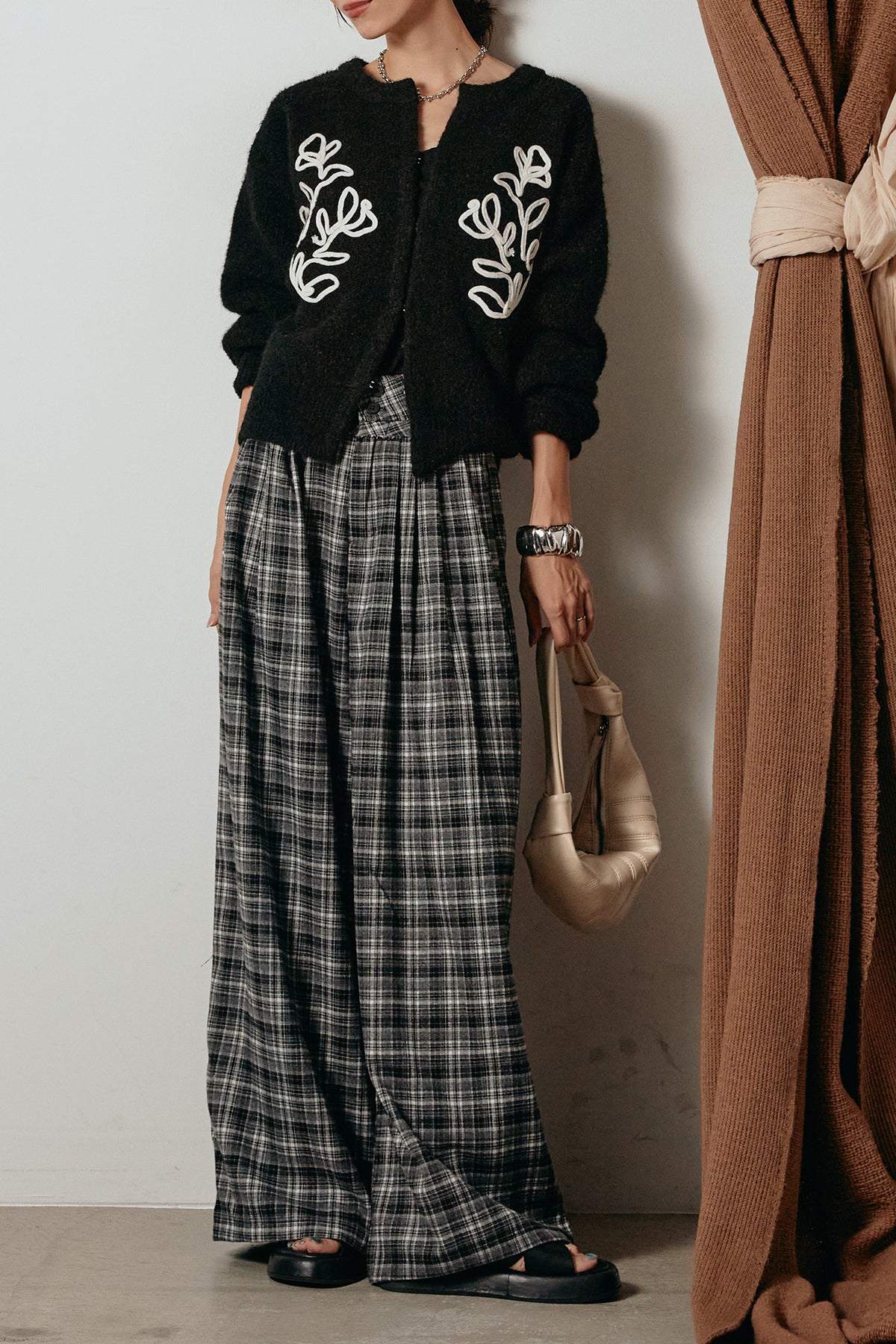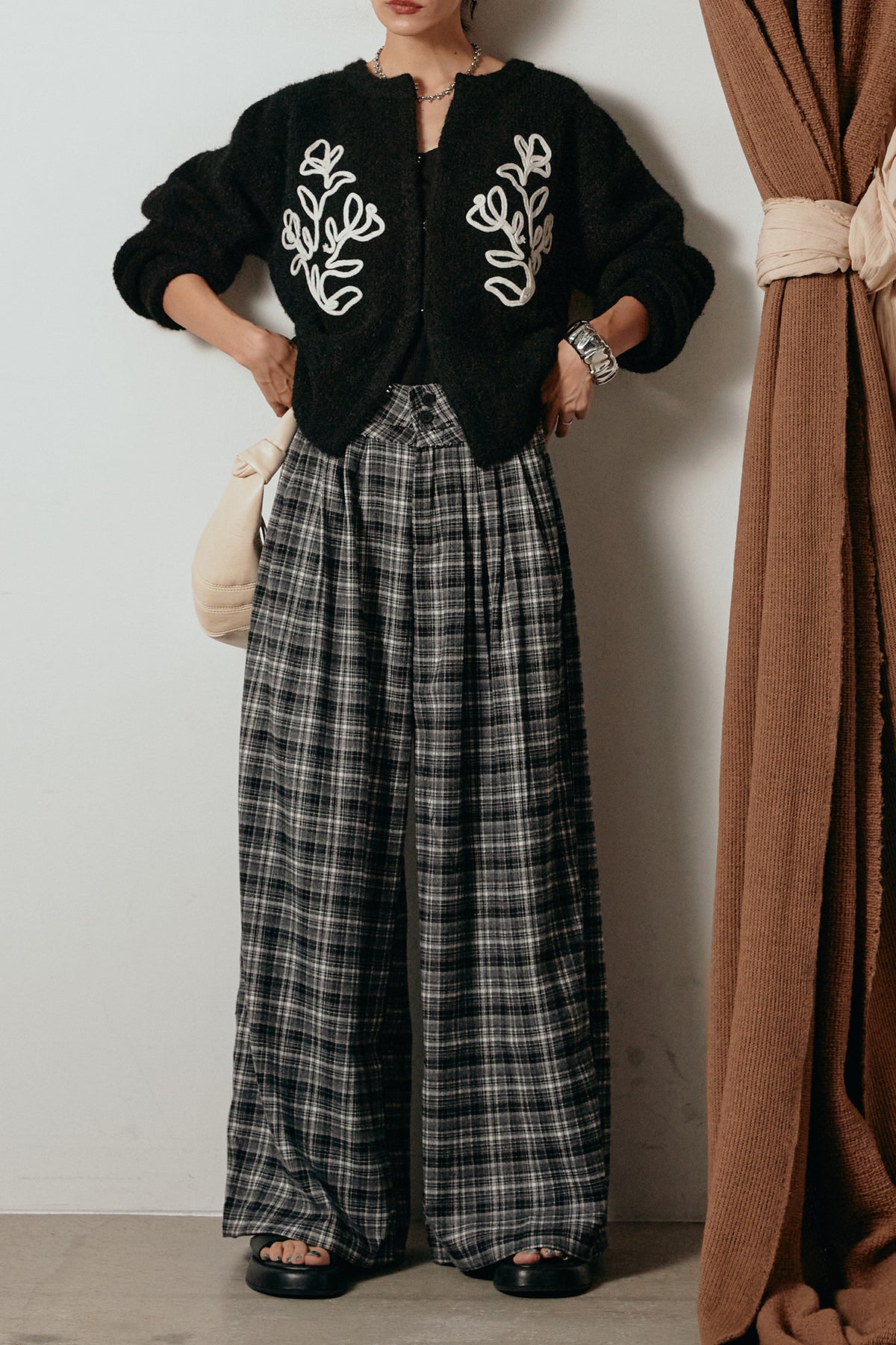 [SET]テープ刺繍ニットカーディガン+ウエスト切りっぱなしタックワイドパンツ(2set)