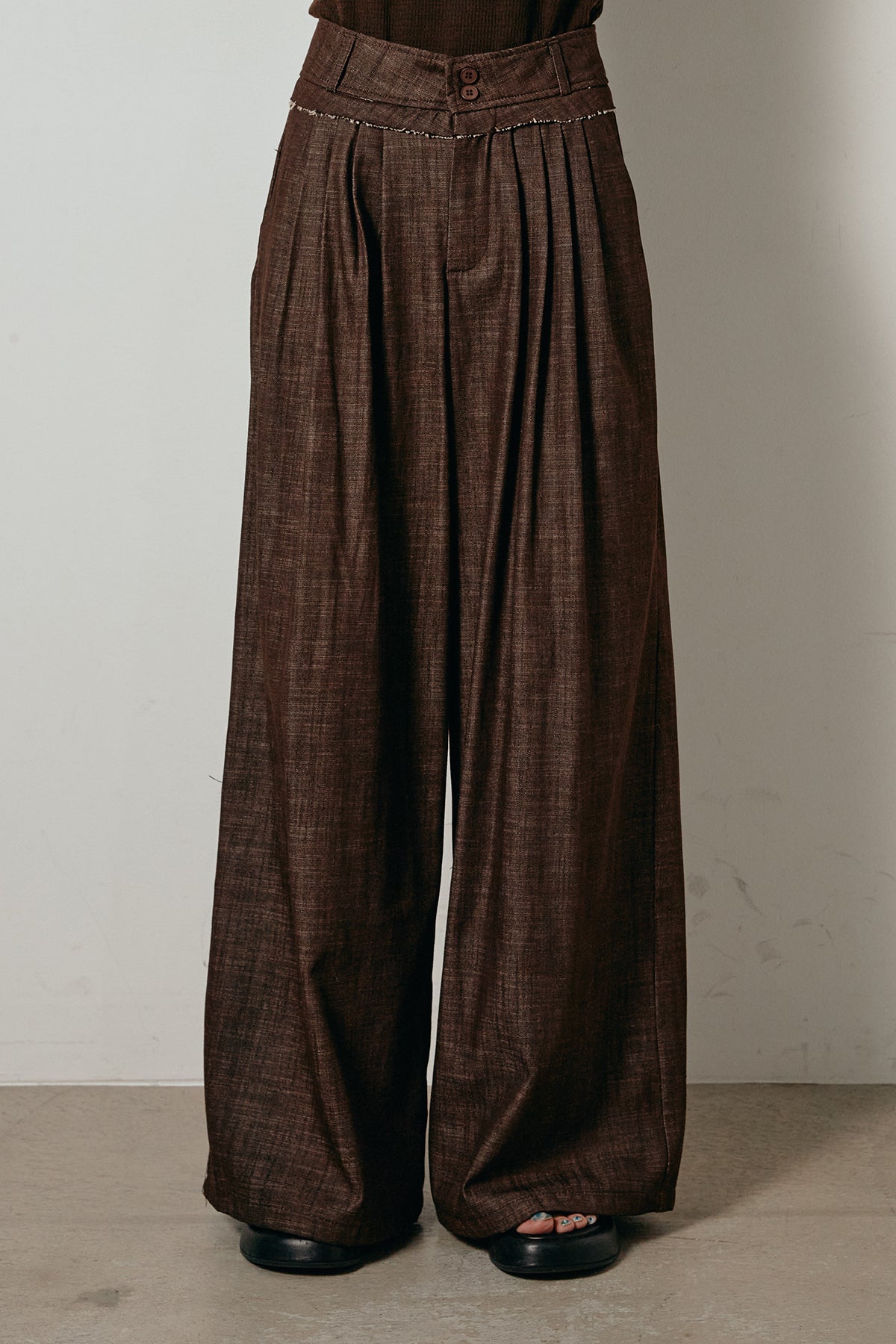 ◆ ウエスト切りっぱなしタックワイドパンツ