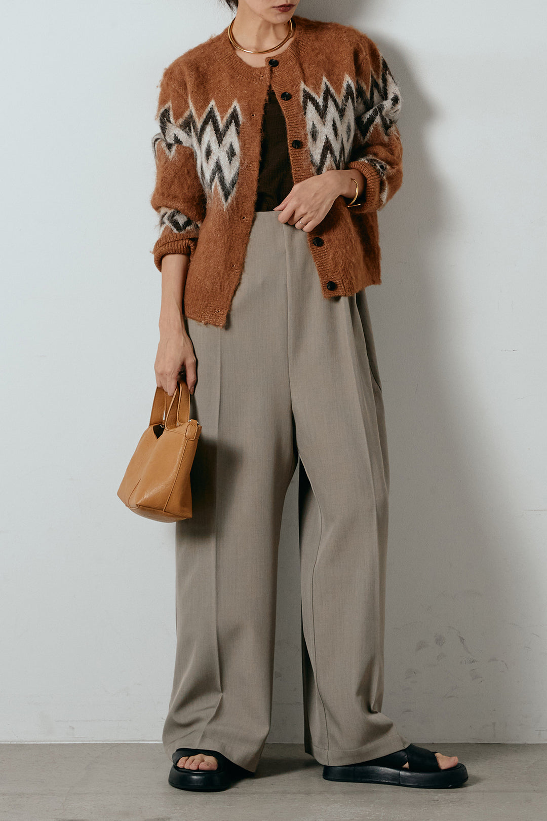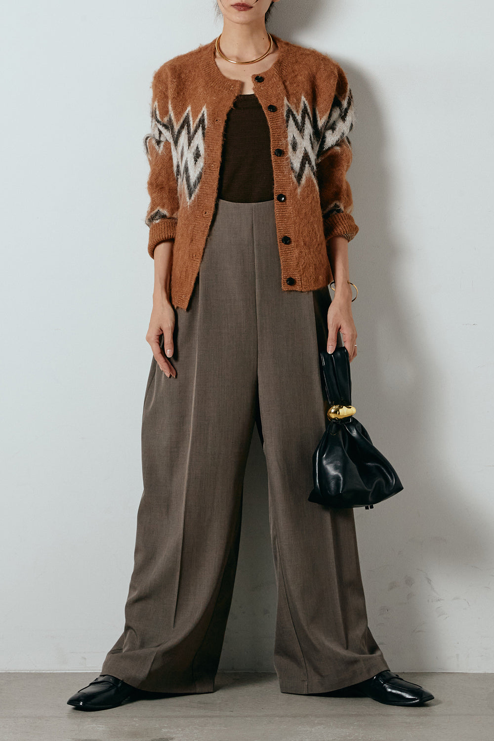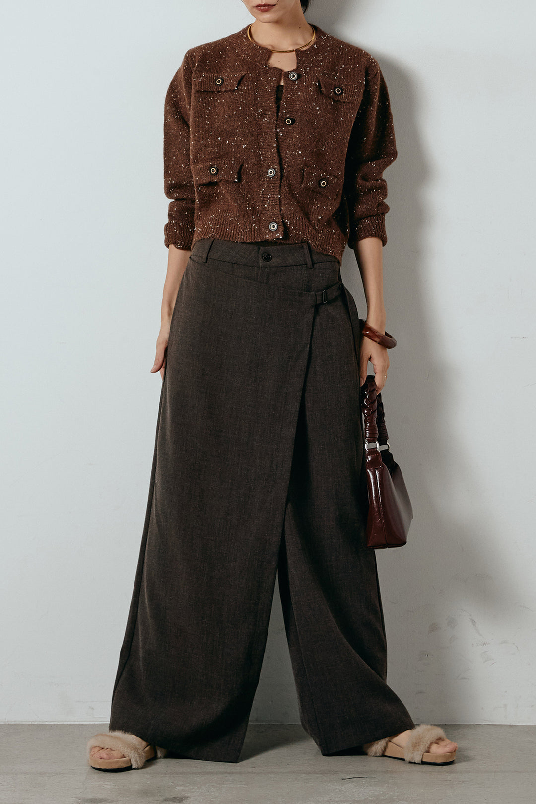 [SET]ネップニットカーディガン+ラップ巻きワイドスラックス(2set)
