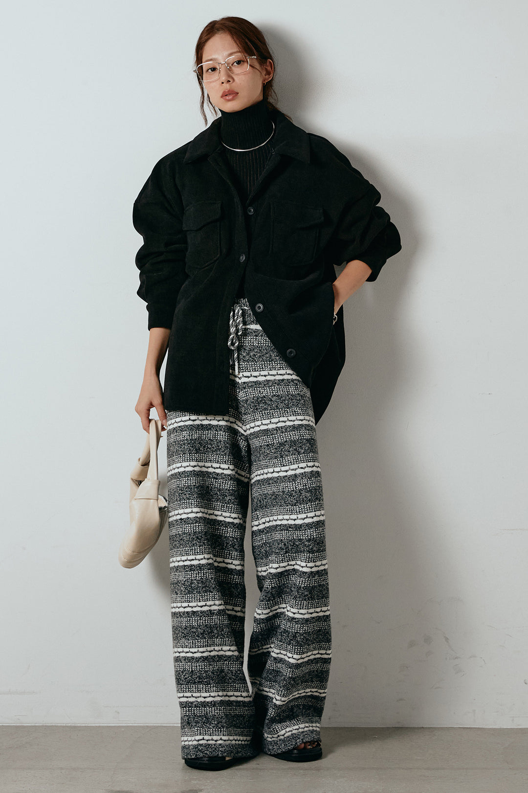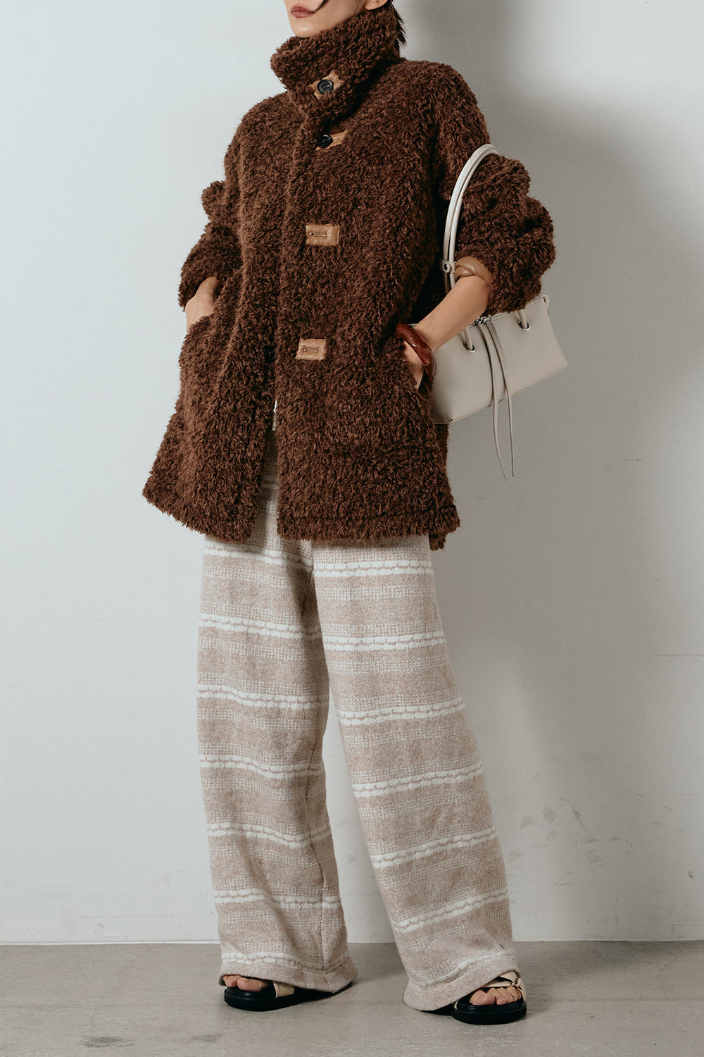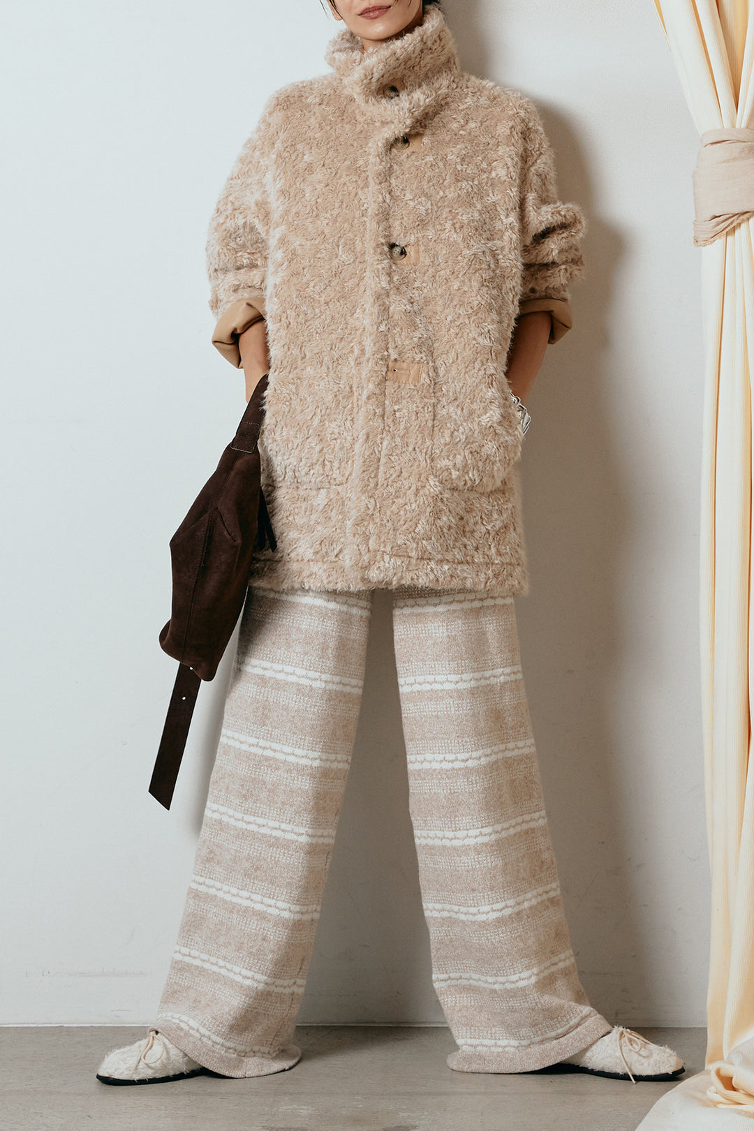 [SET]リバーシブルボアアウター+マルチライン柄リラックスニットパンツ(2set)