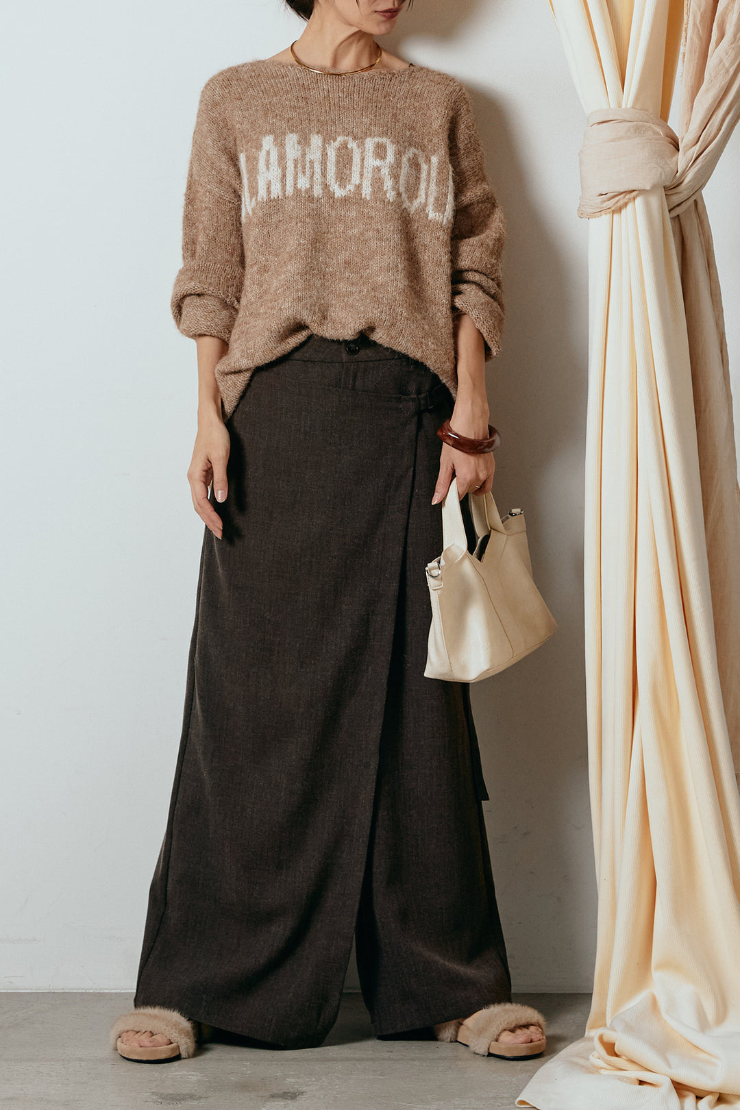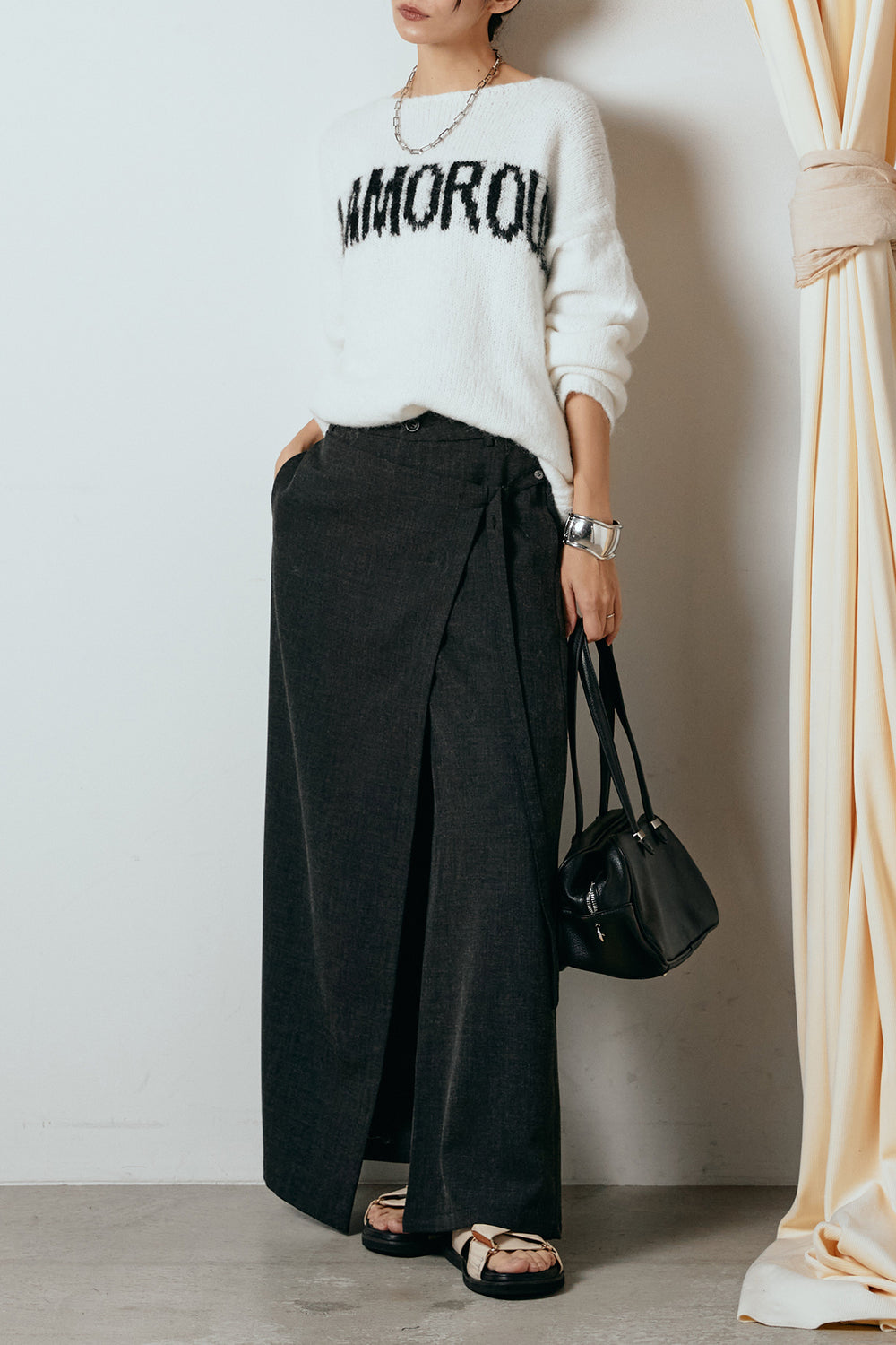 [SET]フロントロゴデザインニットトップス+ラップ巻きワイドスラックス(2set)