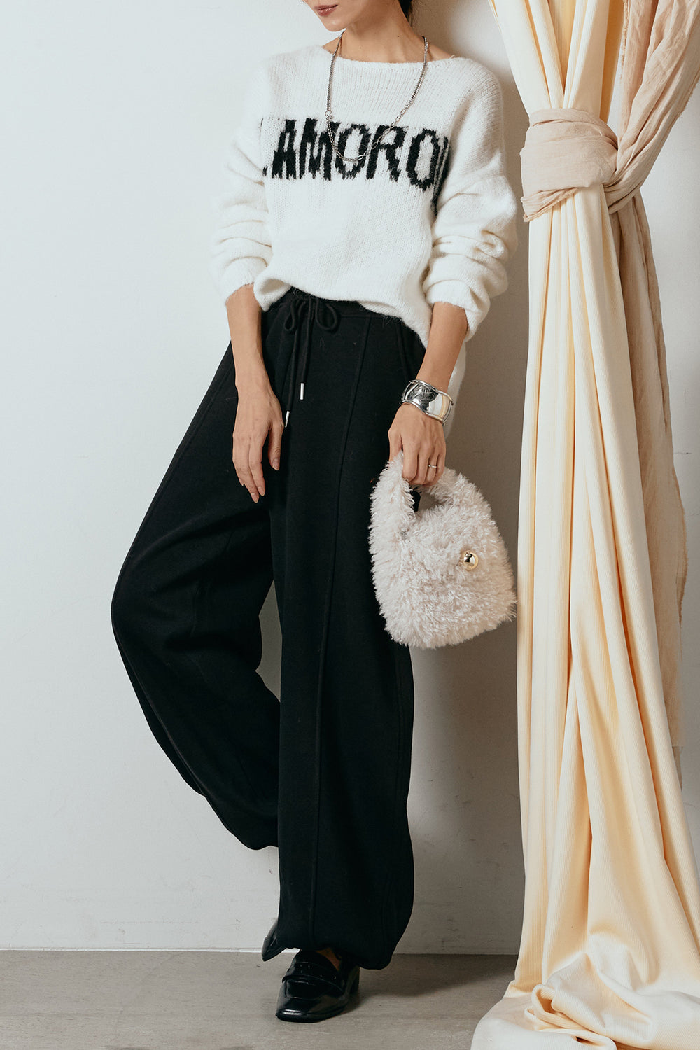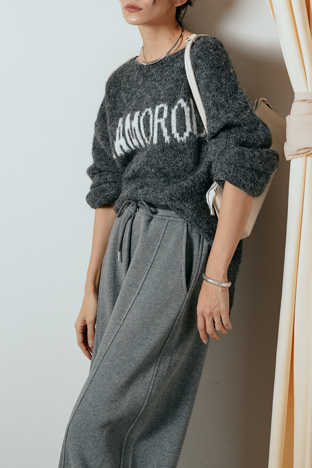[SET]フロントロゴデザインニットトップス+スウェットワイドカーブパンツ(2set)