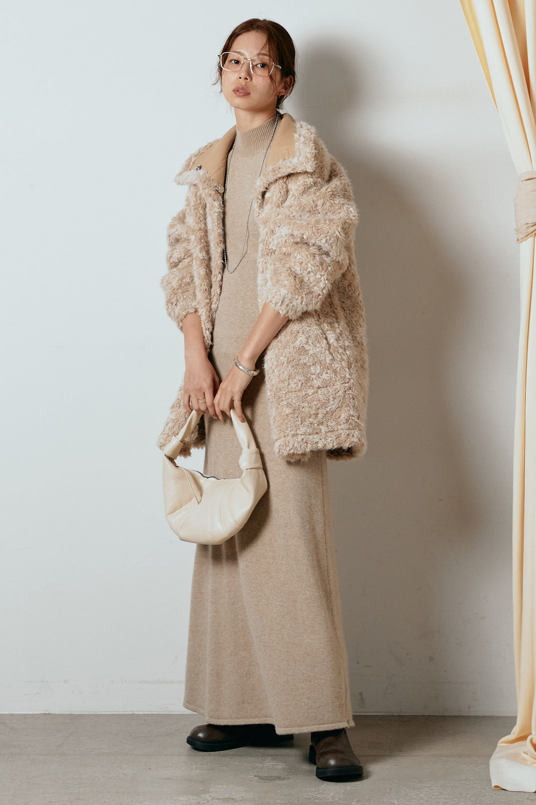 [SET]リバーシブルボアアウター+ノースリーブニットロングワンピース(2set)