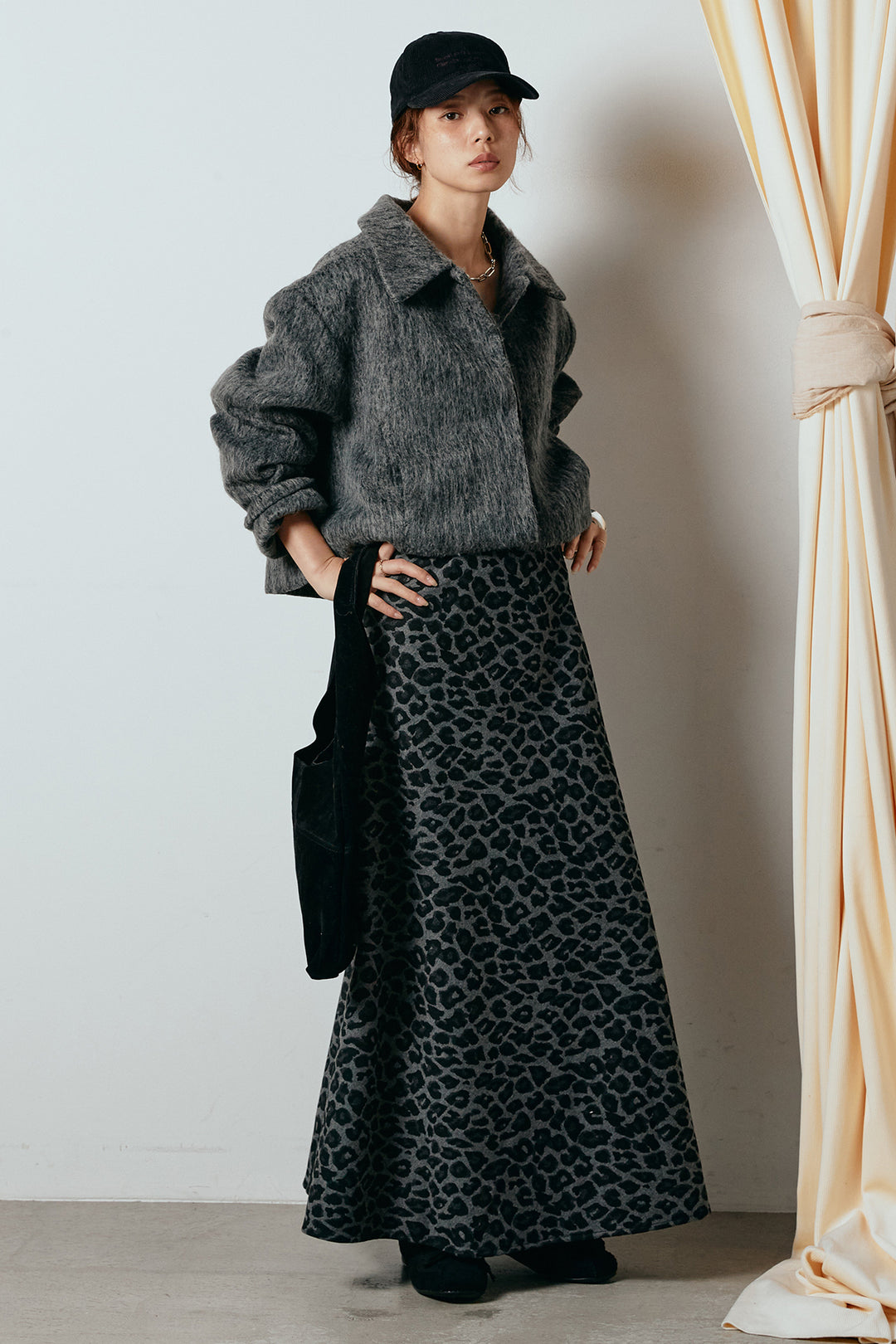 [SET]シャギーショートジャケット+レオパードロングスカート(2set)