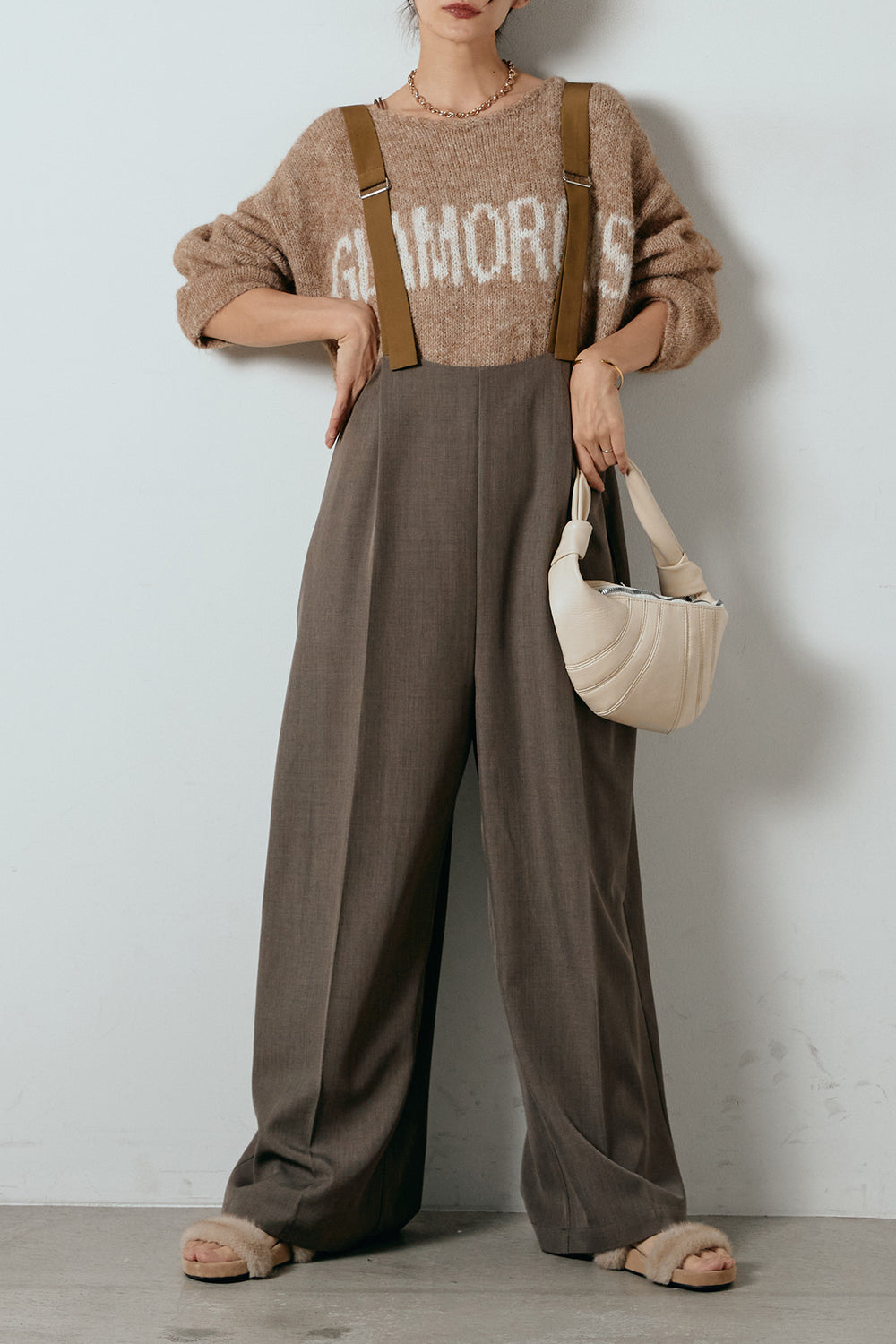 [SET]フロントロゴデザインニットトップス+ワイドツイルサロペット(2set)