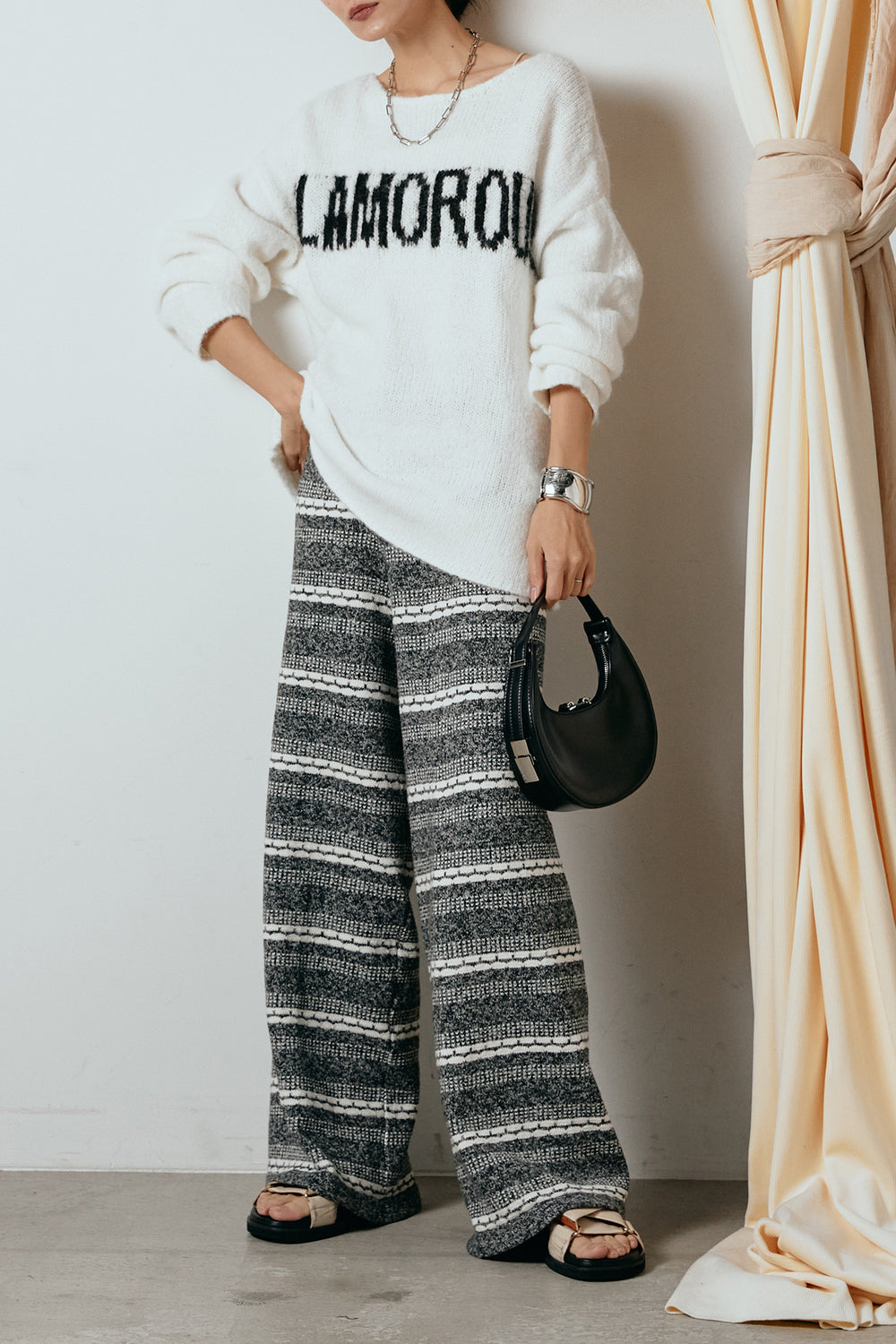 [SET]フロントロゴデザインニットトップス+マルチライン柄リラックスニットパンツ(2set)