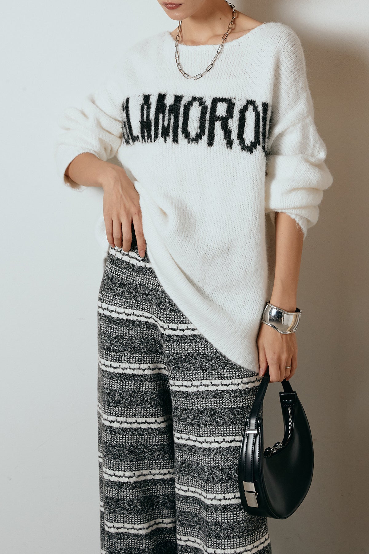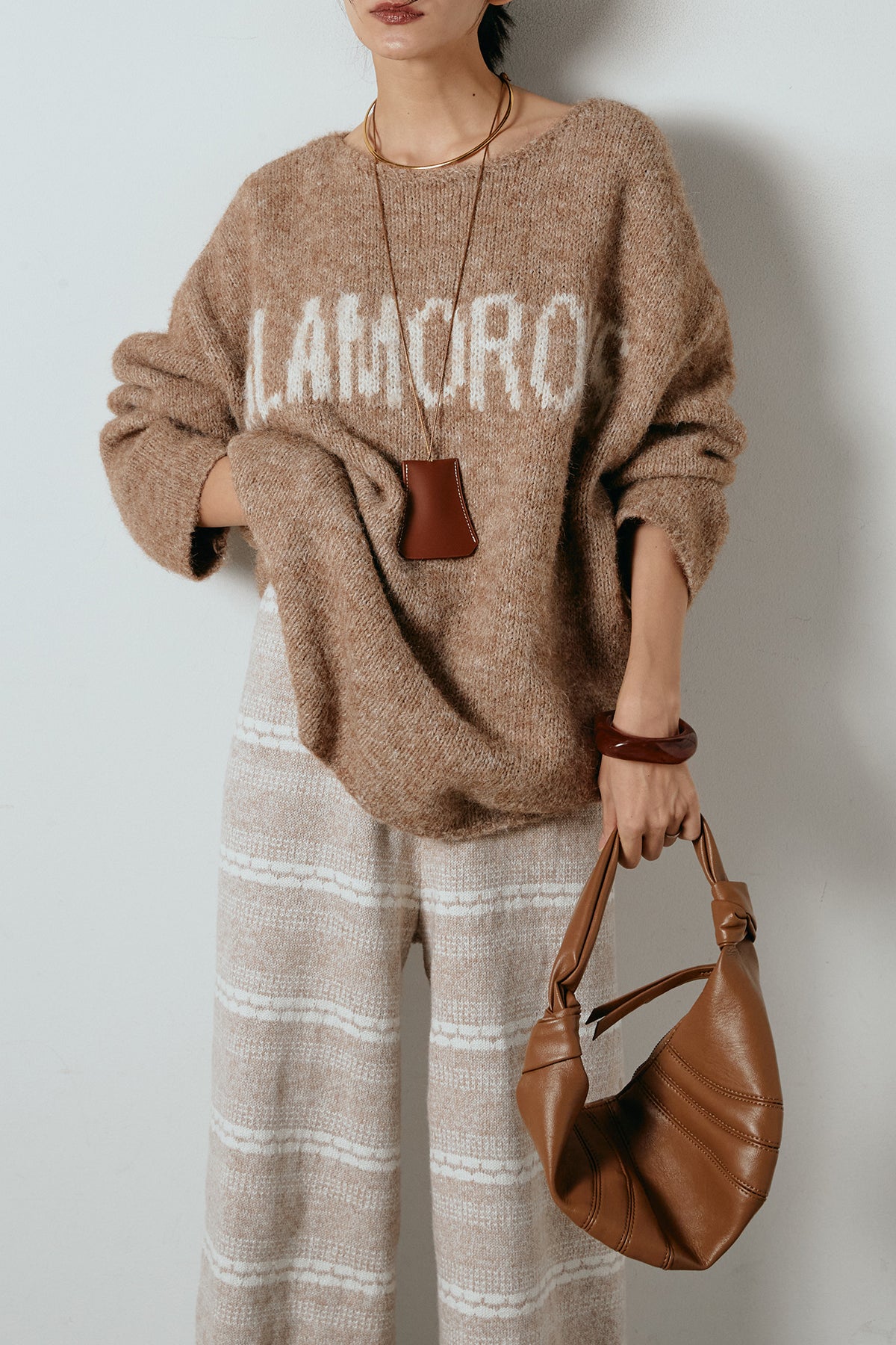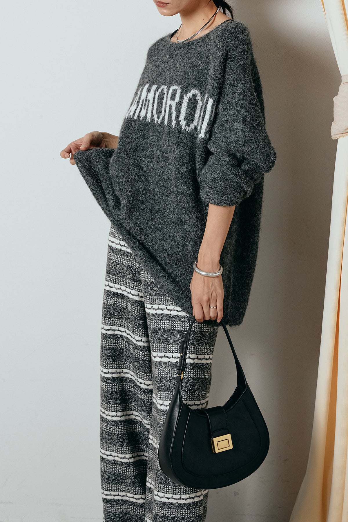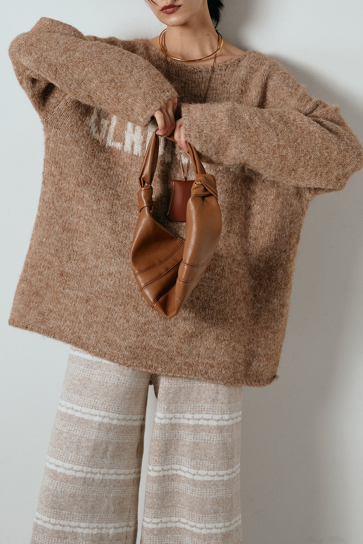 フロントのロゴが印象的なニットトップス。 毛足のある柔らかな糸を使用し、ふんわりとした質感で季節感を引き立てます。 ゆったりとしたシルエットで、リラクシーな着心地ながら抜け感のあるスタイルに。 シンプルなボトムを合わせるだけでバランスよく仕上がり、デイリー使いにぴったりの一枚です。
