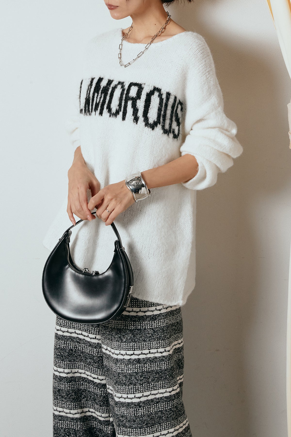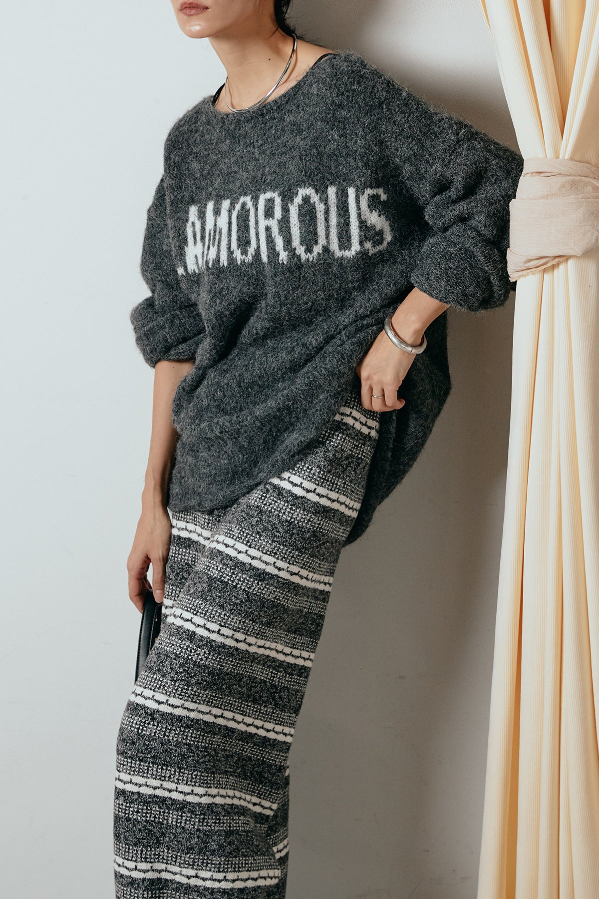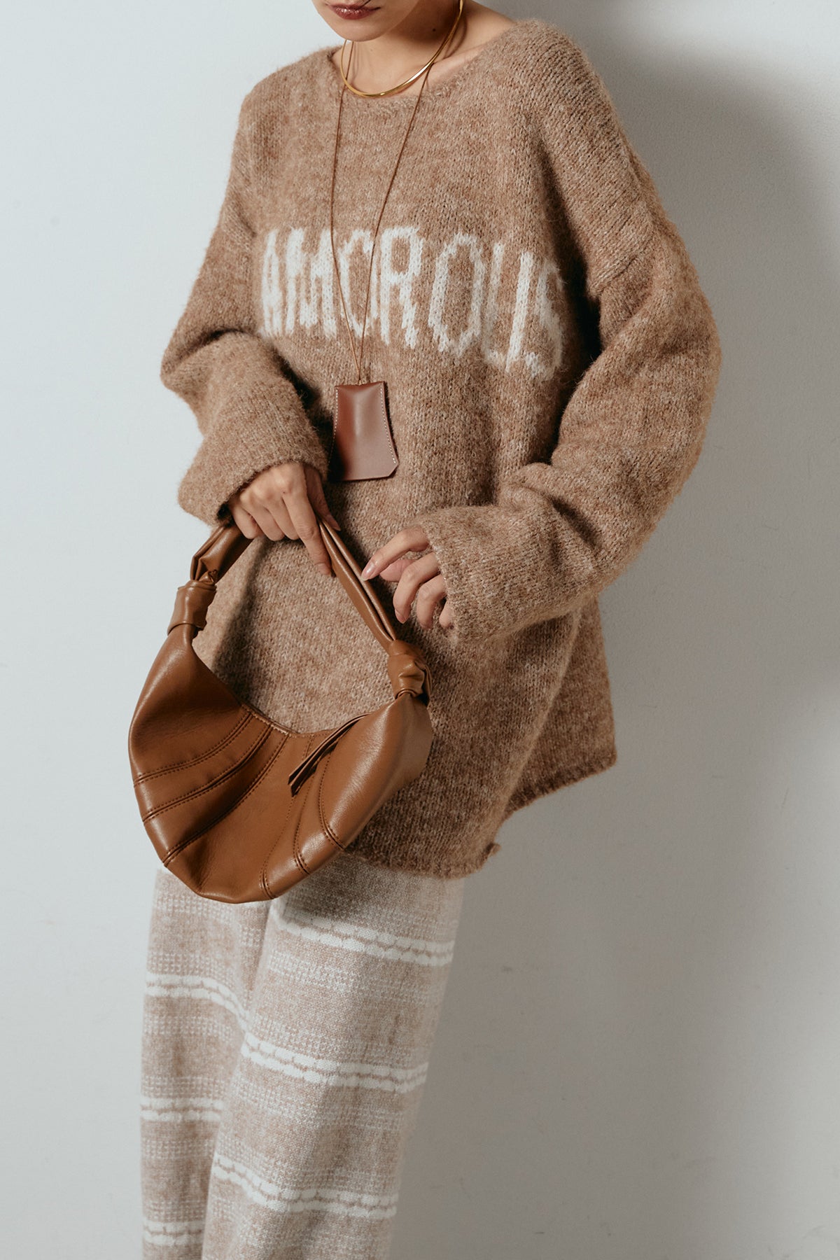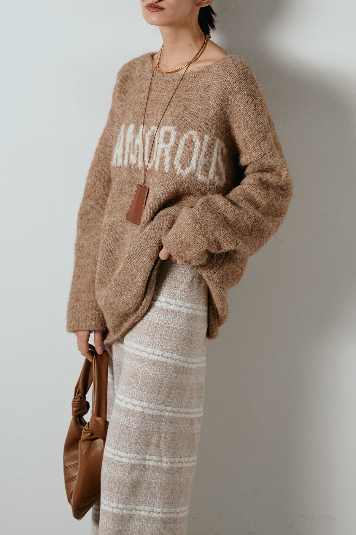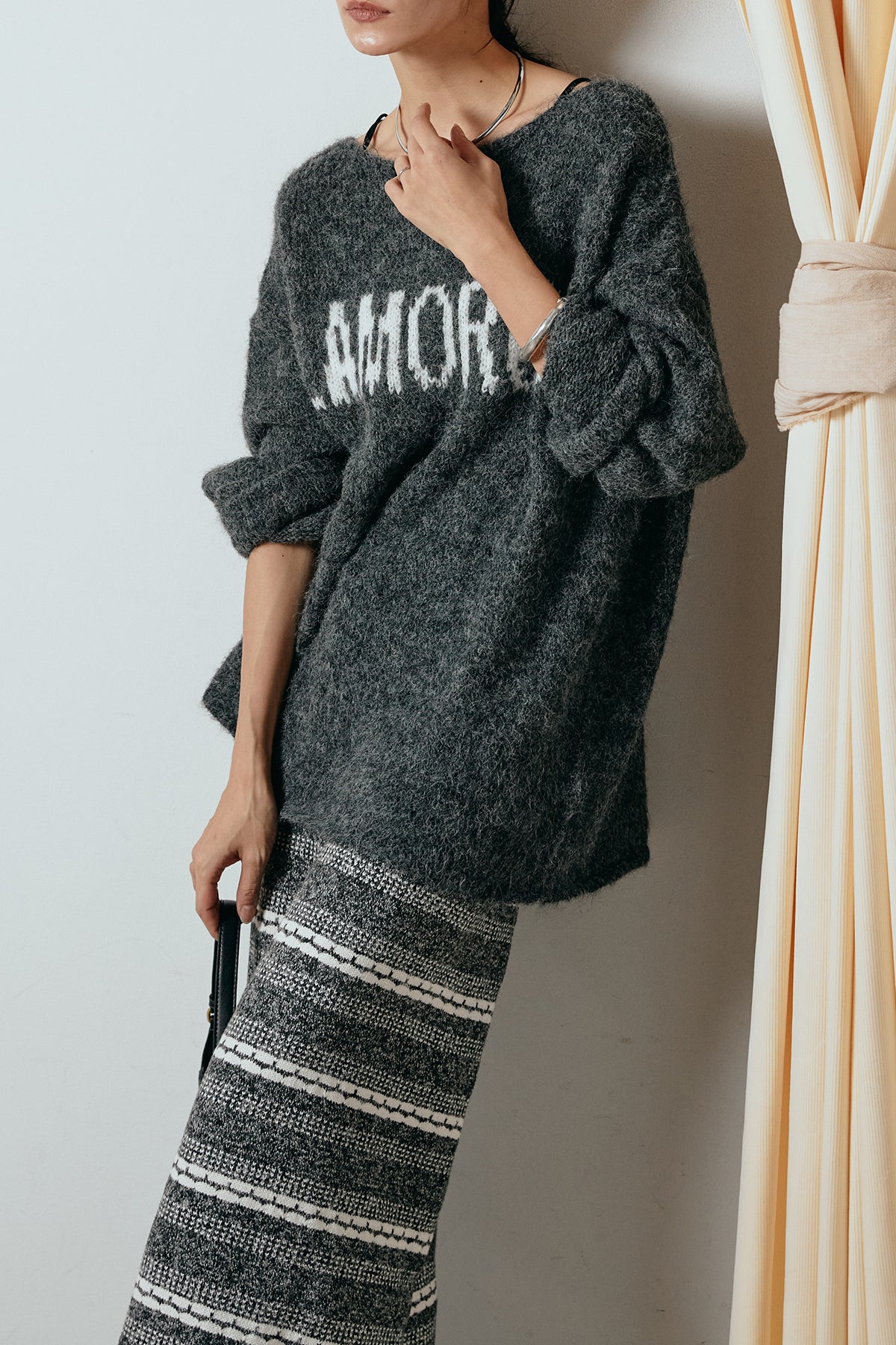 フロントのロゴが印象的なニットトップス。 毛足のある柔らかな糸を使用し、ふんわりとした質感で季節感を引き立てます。 ゆったりとしたシルエットで、リラクシーな着心地ながら抜け感のあるスタイルに。 シンプルなボトムを合わせるだけでバランスよく仕上がり、デイリー使いにぴったりの一枚です。