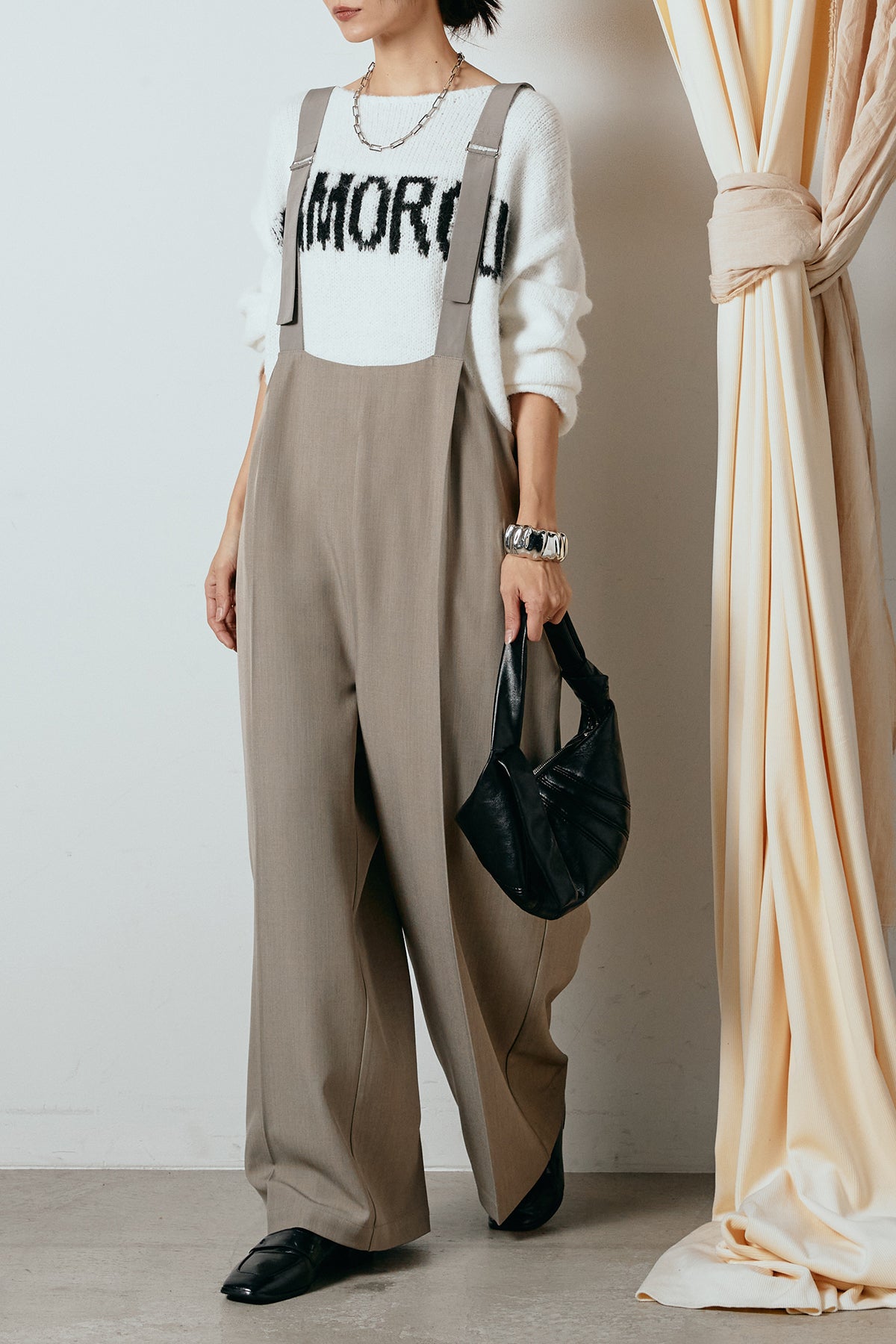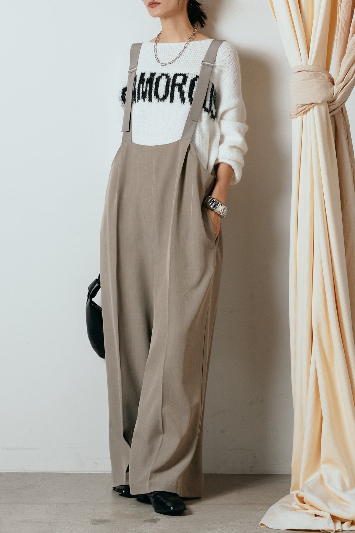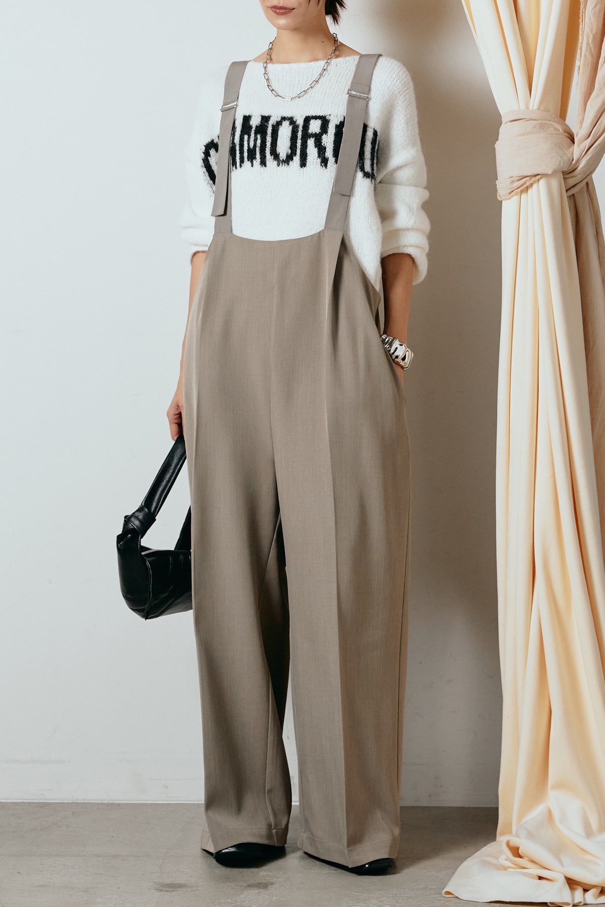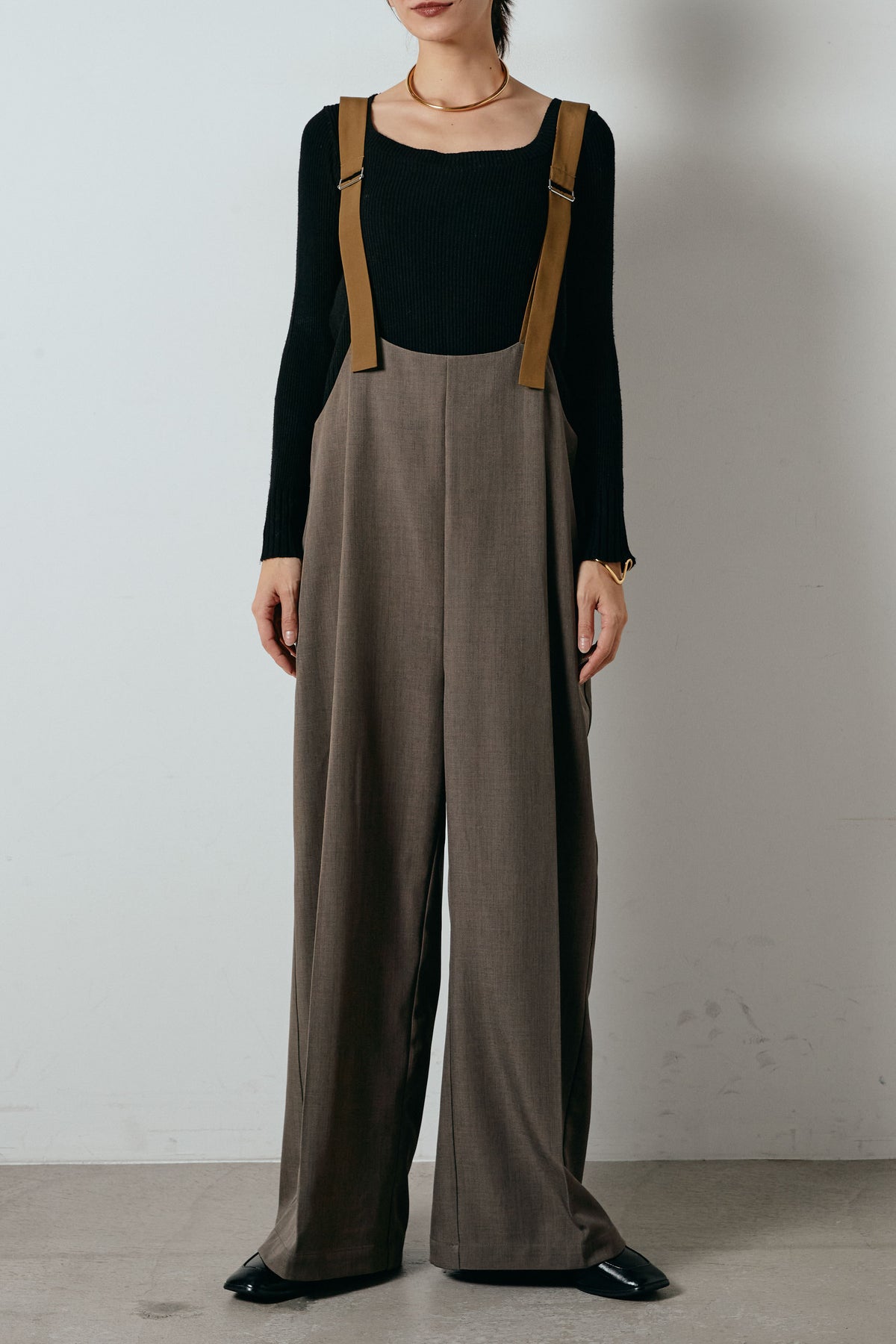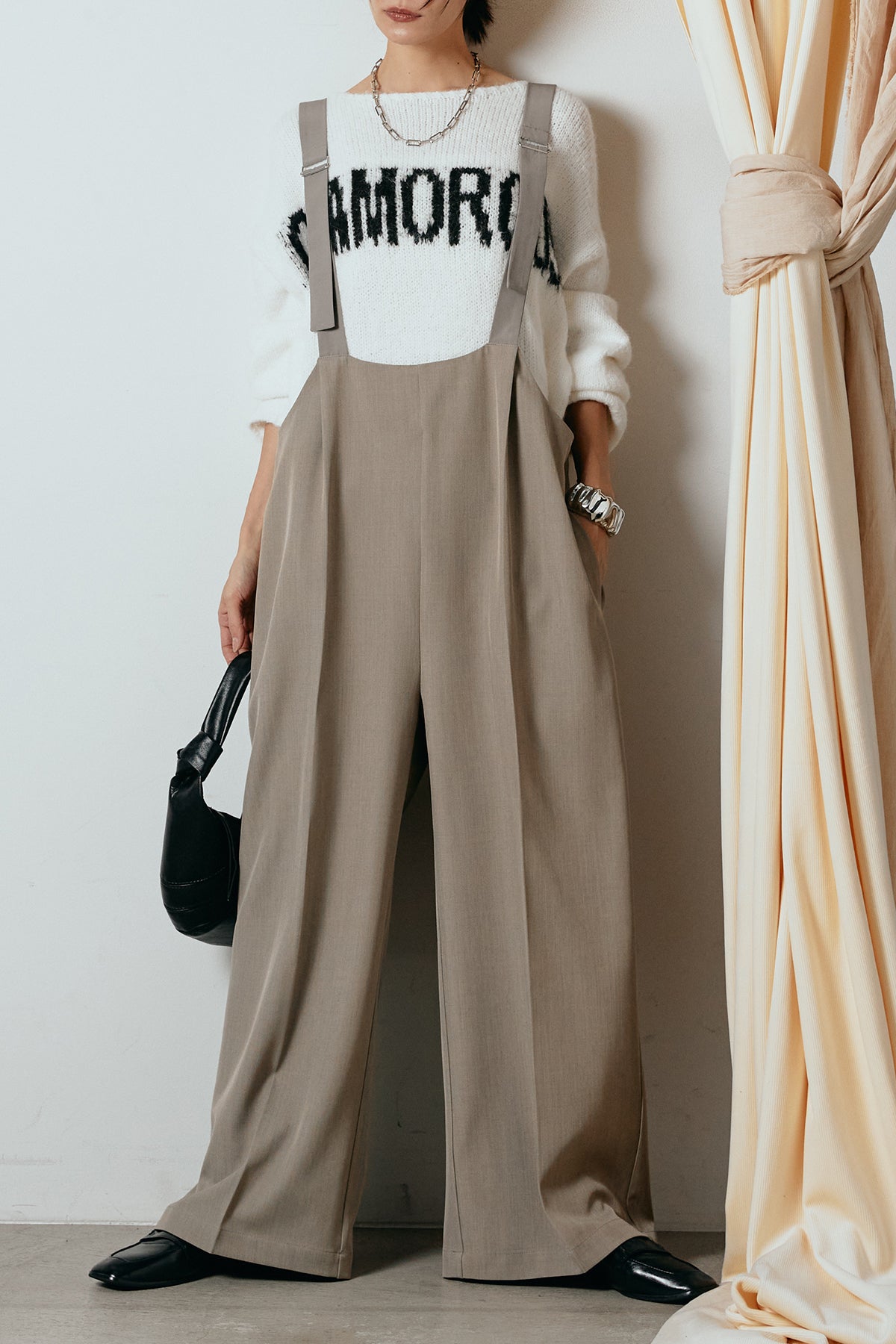 柔らかく落ち感のあるツイル素材を使用したワイドサロペット。