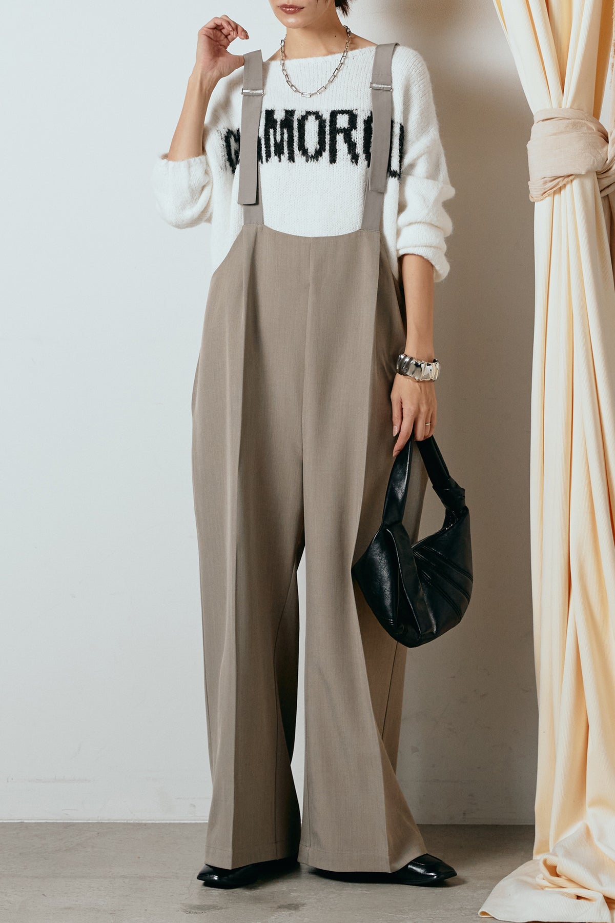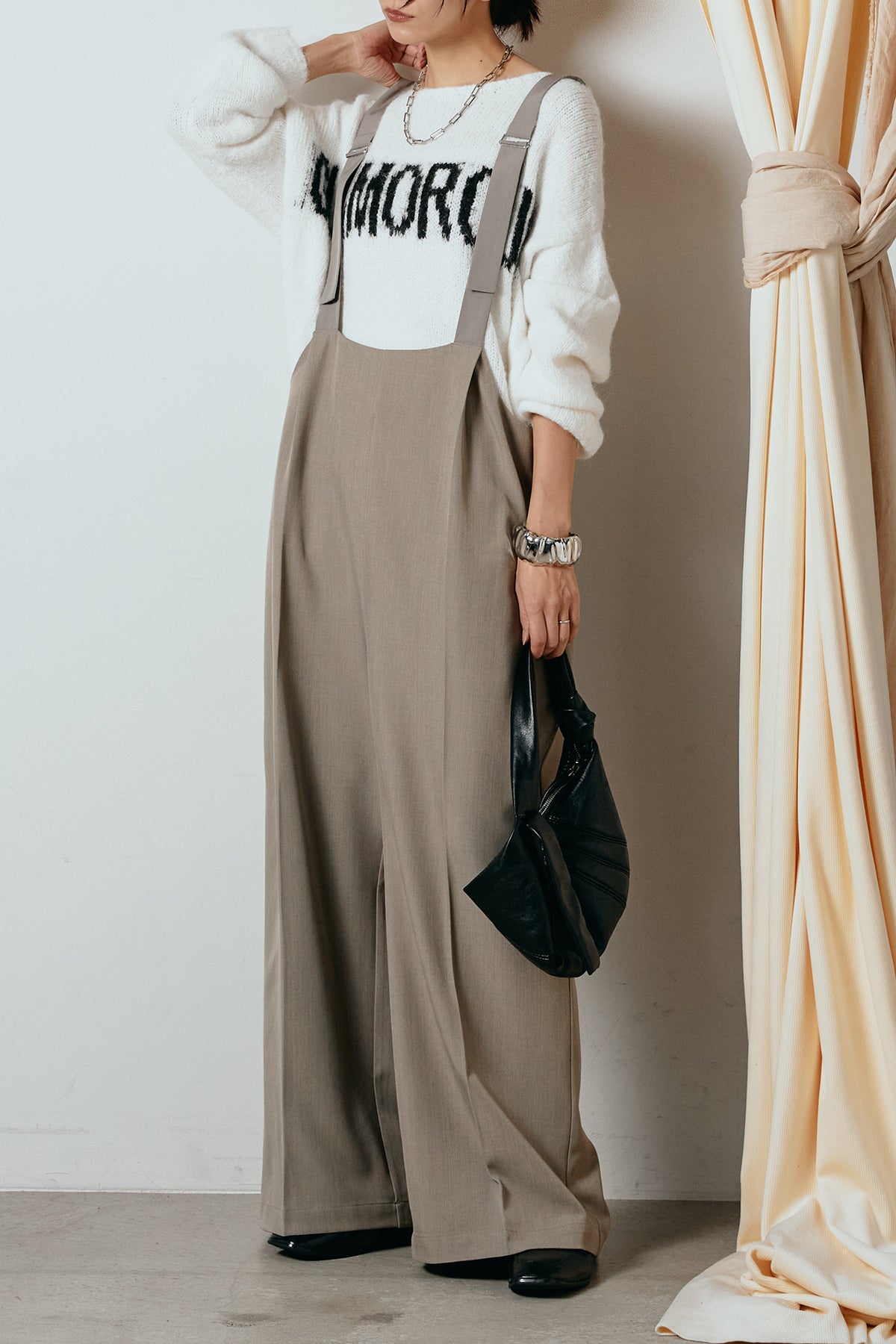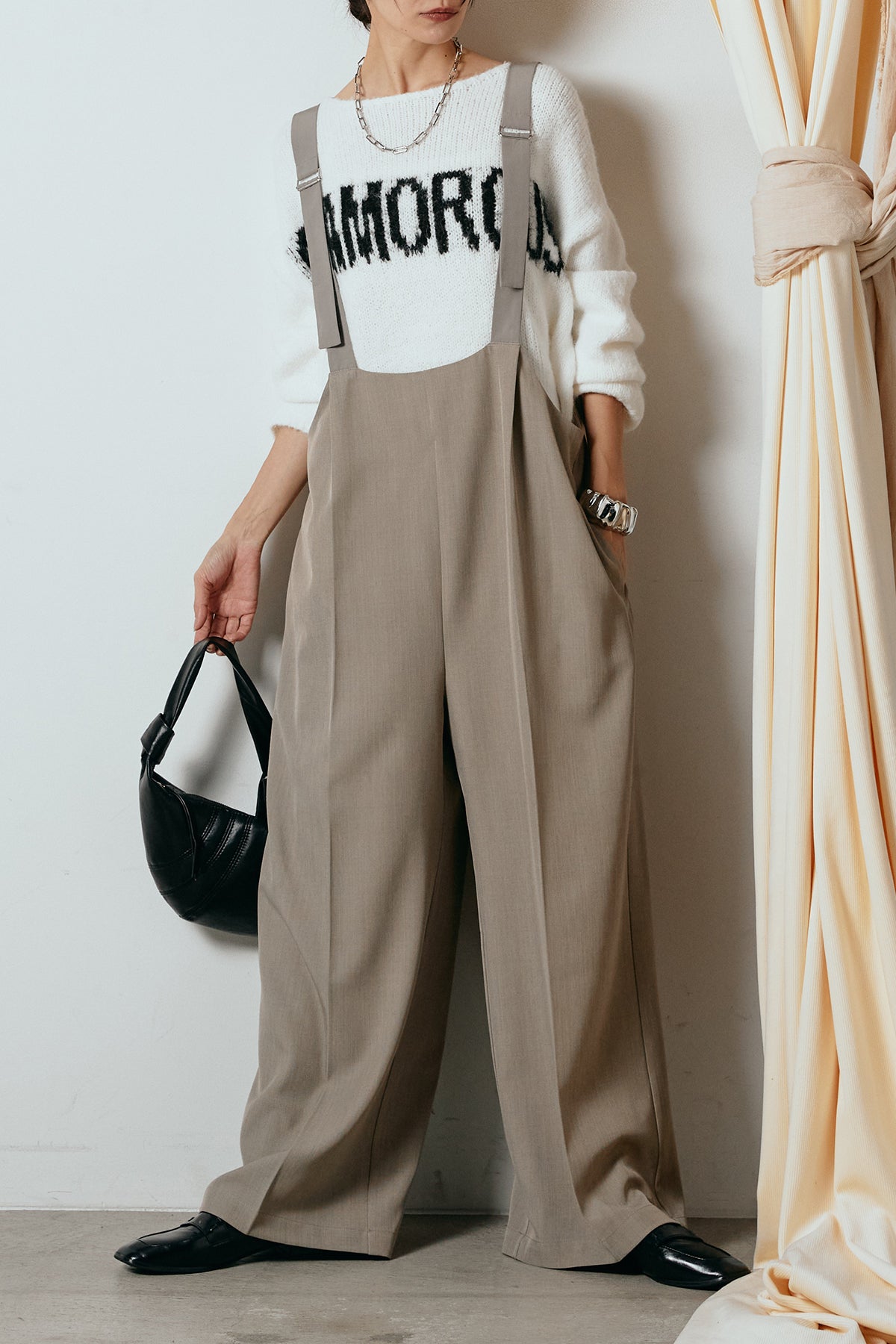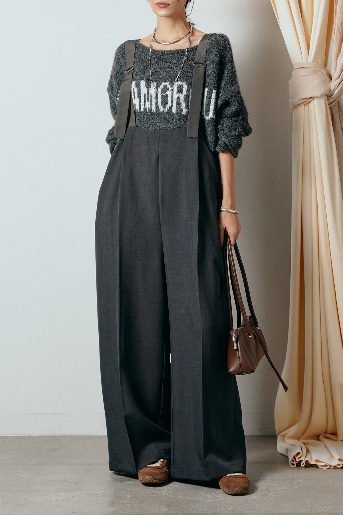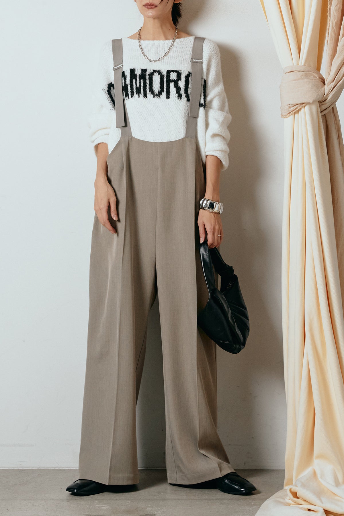 柔らかく落ち感のあるツイル素材を使用したワイドサロペット。