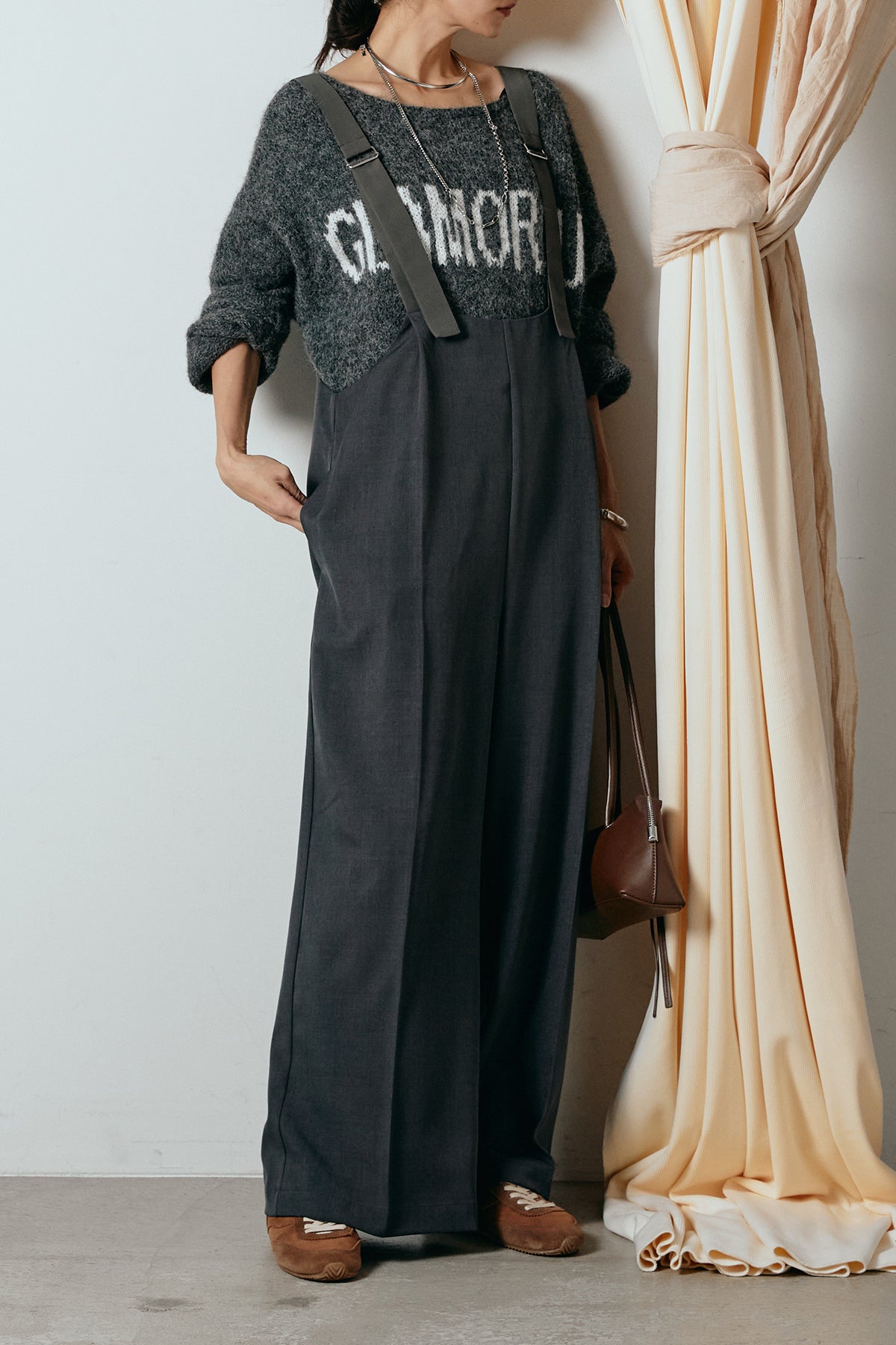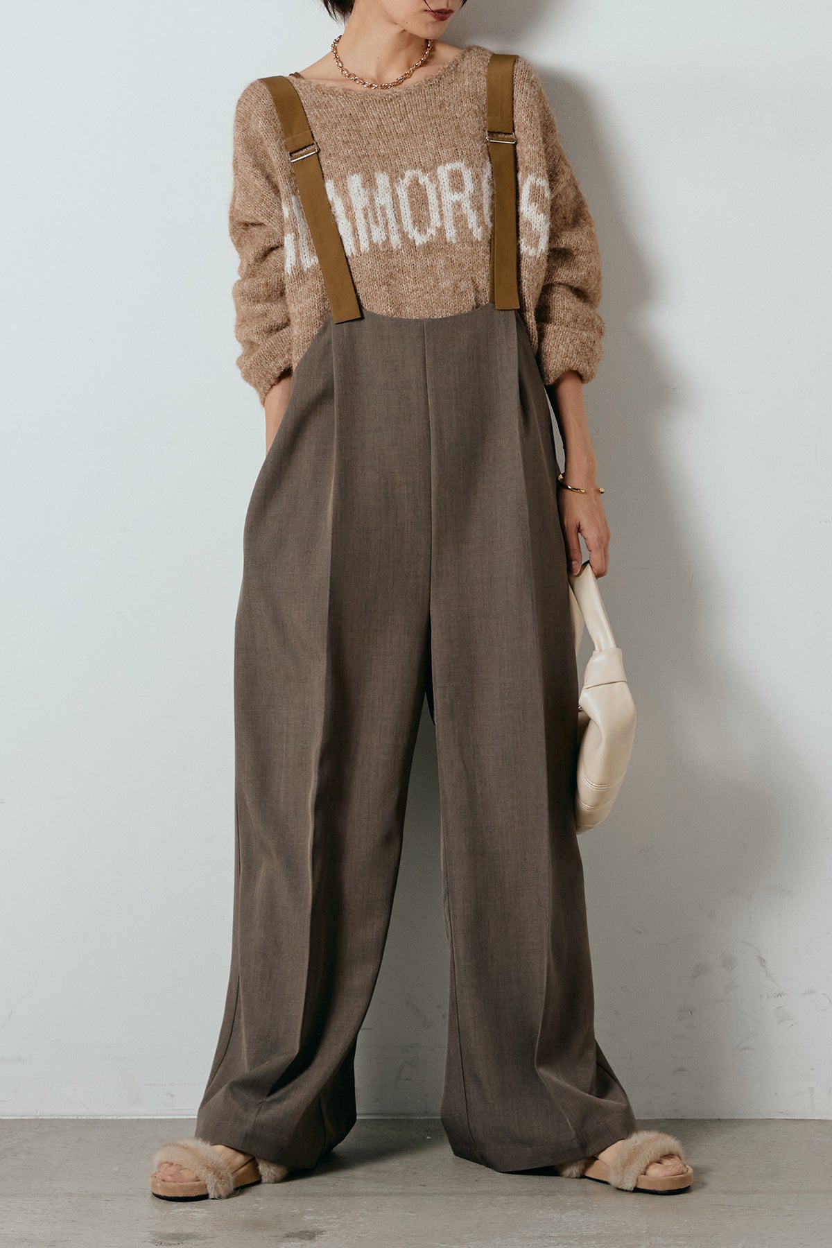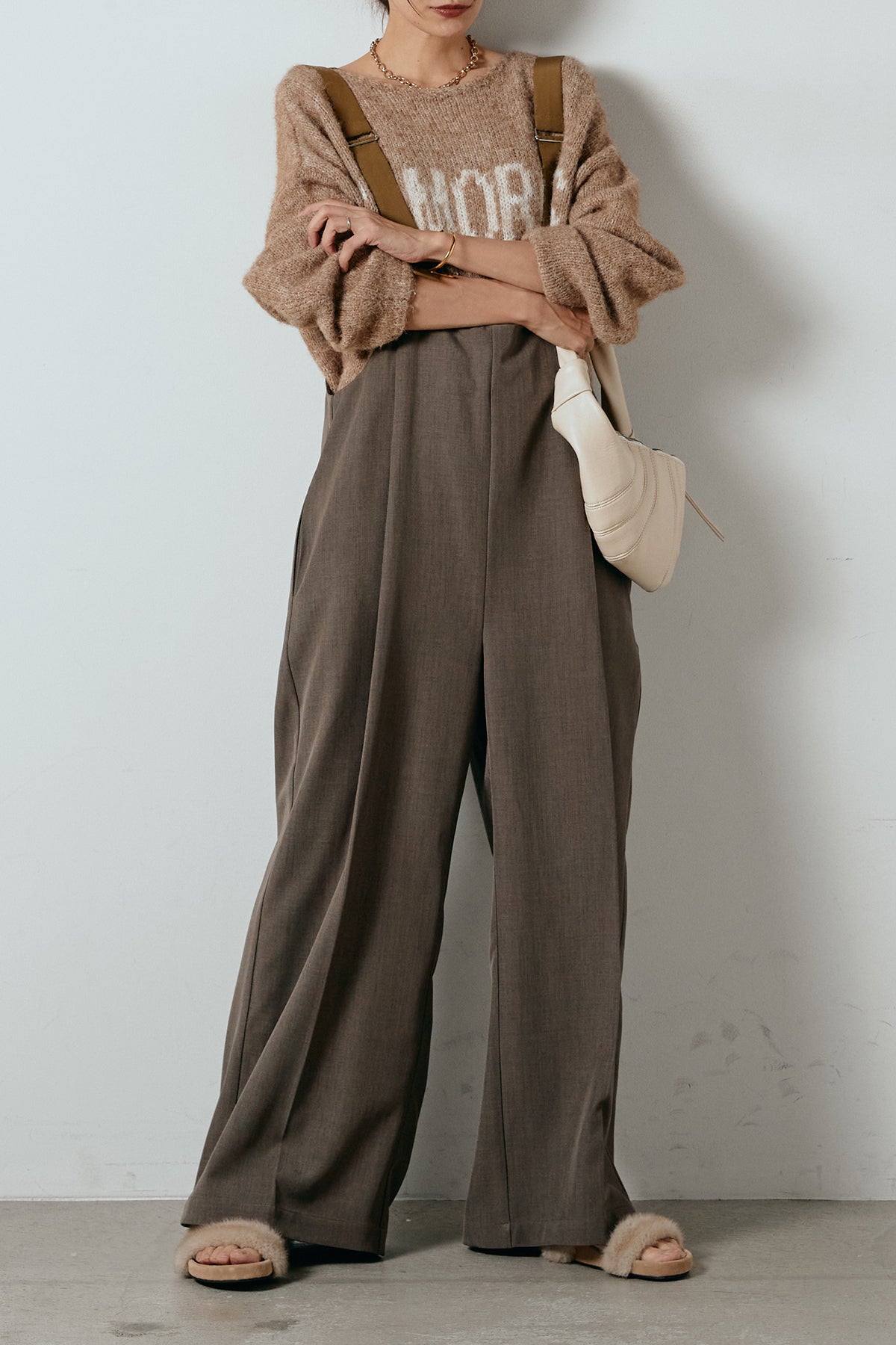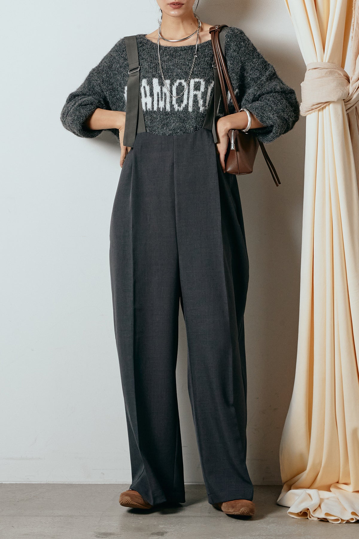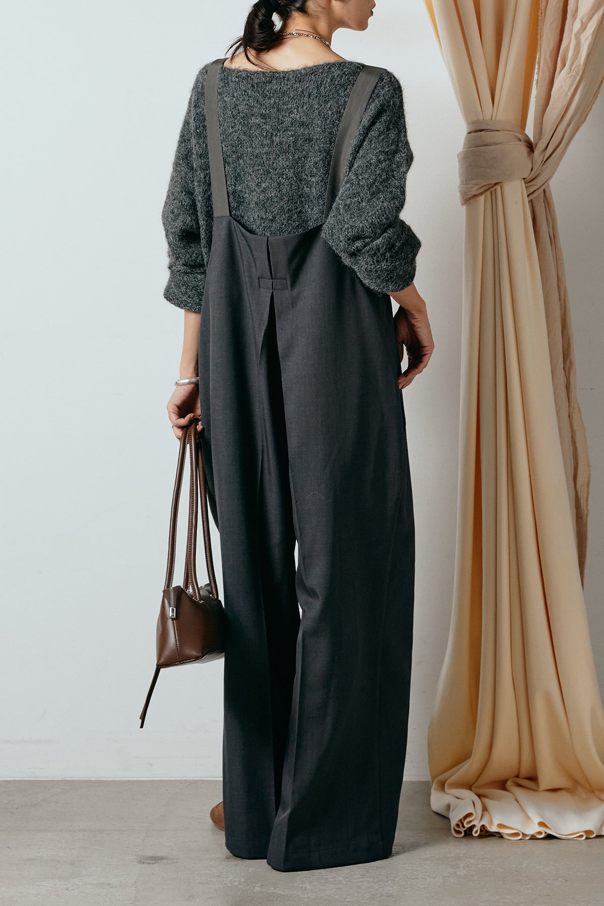 柔らかく落ち感のあるツイル素材を使用したワイドサロペット。