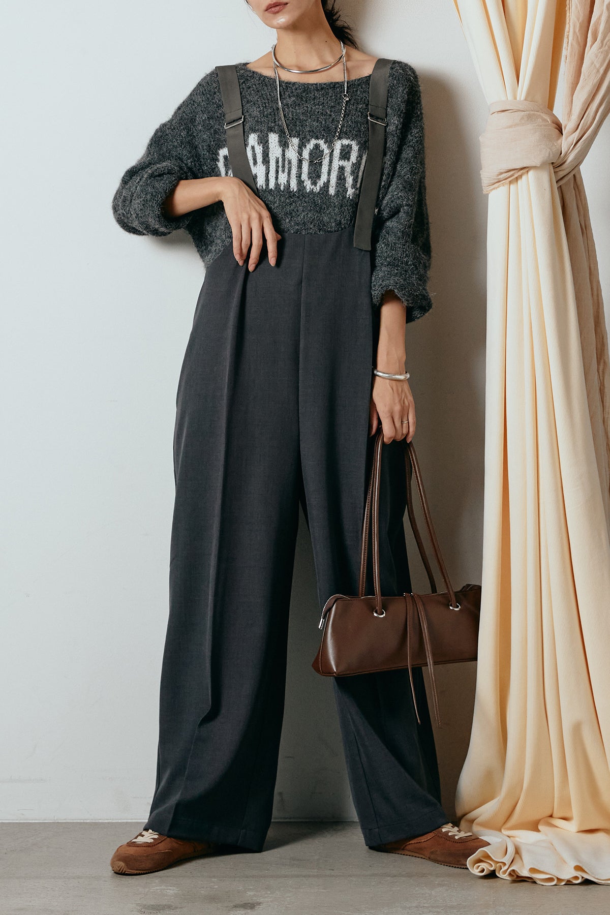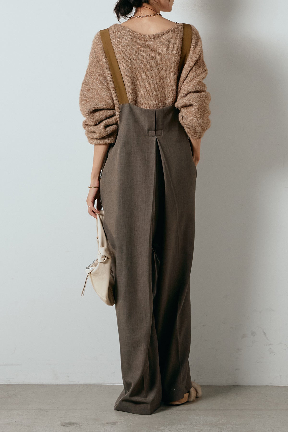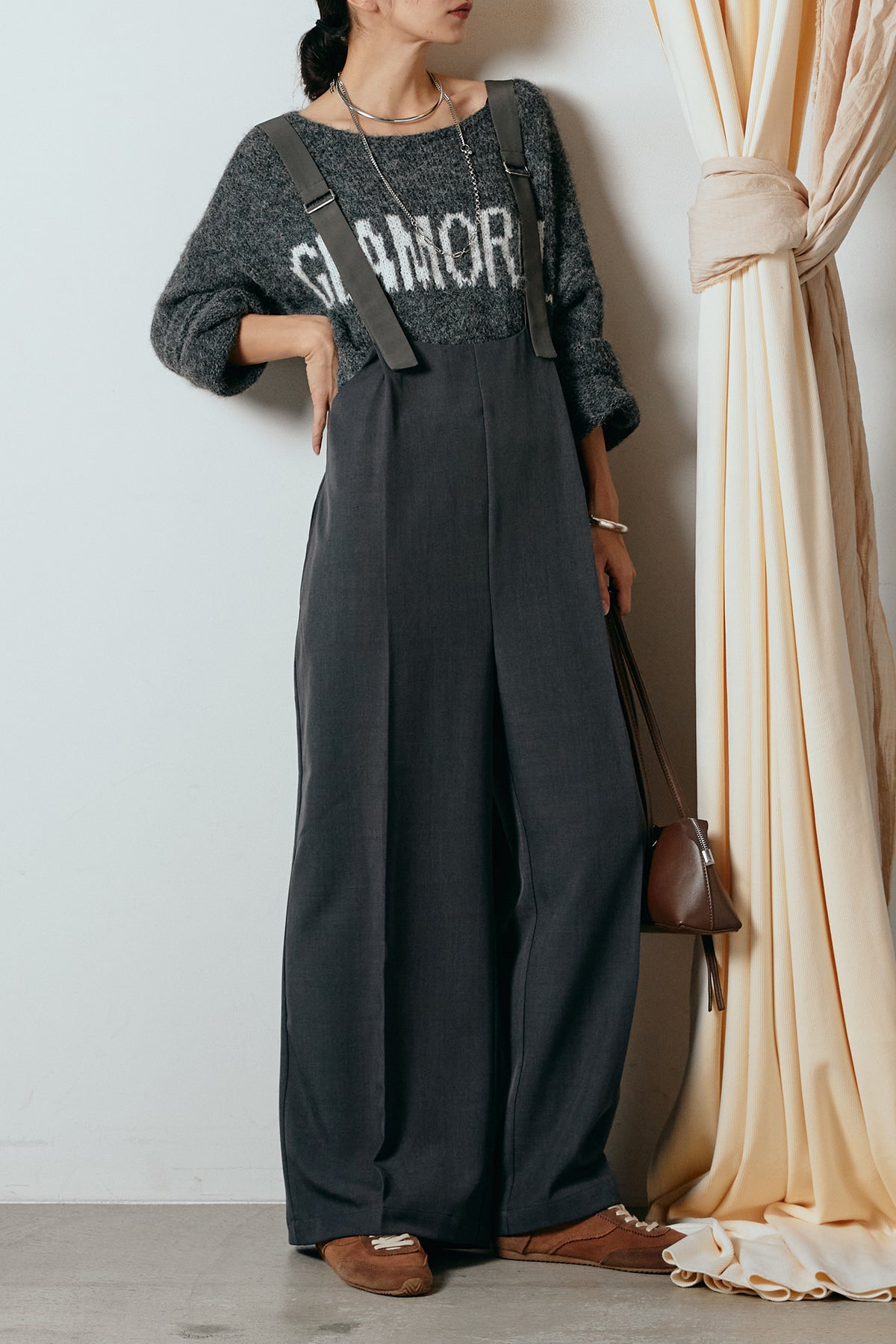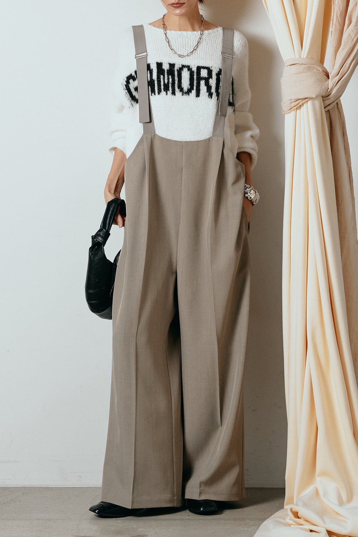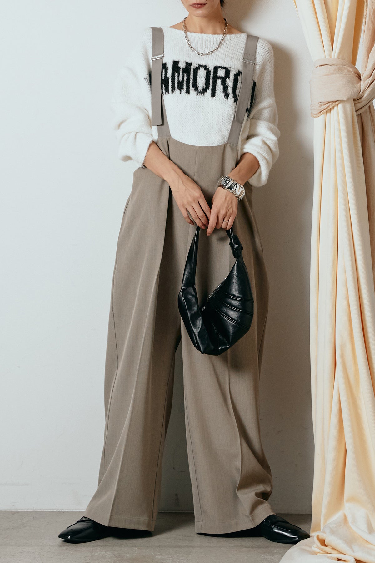 柔らかく落ち感のあるツイル素材を使用したワイドサロペット。