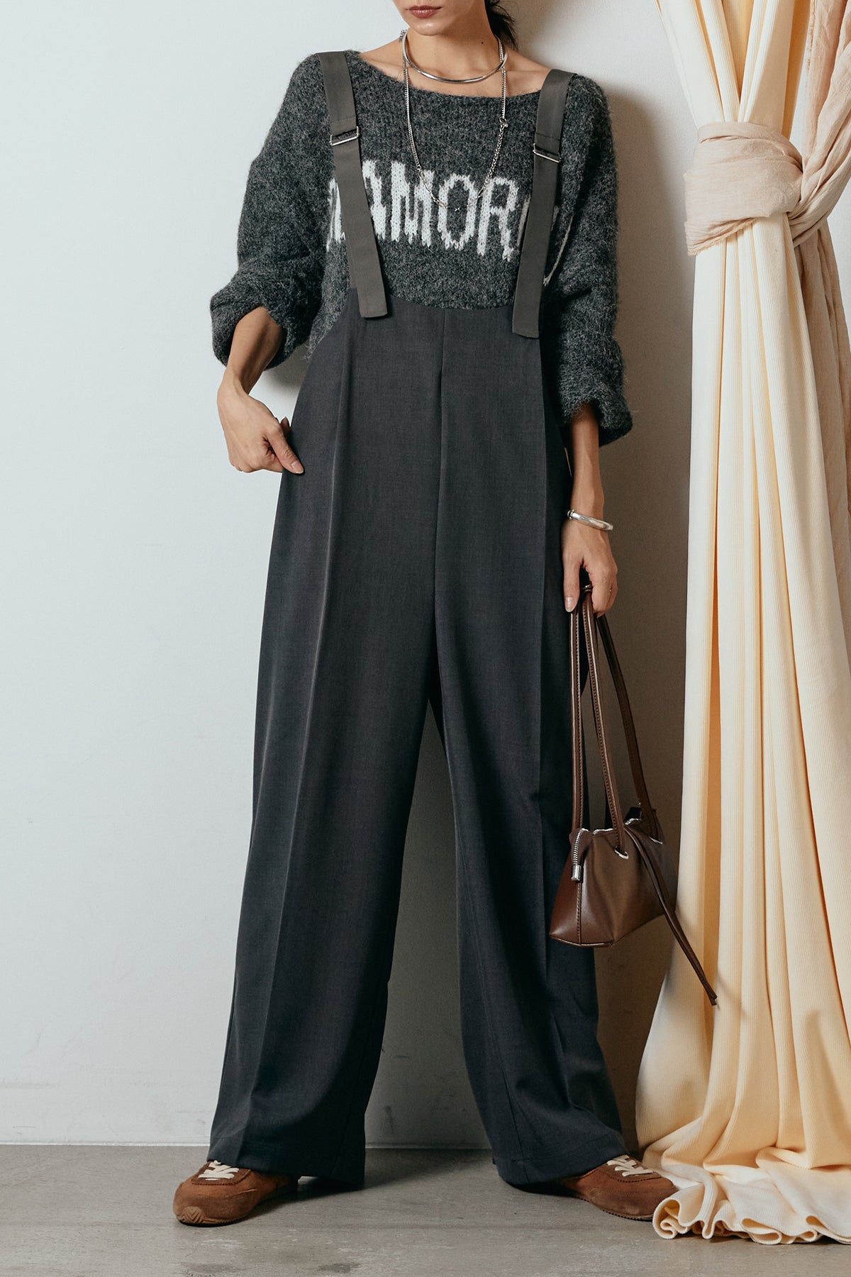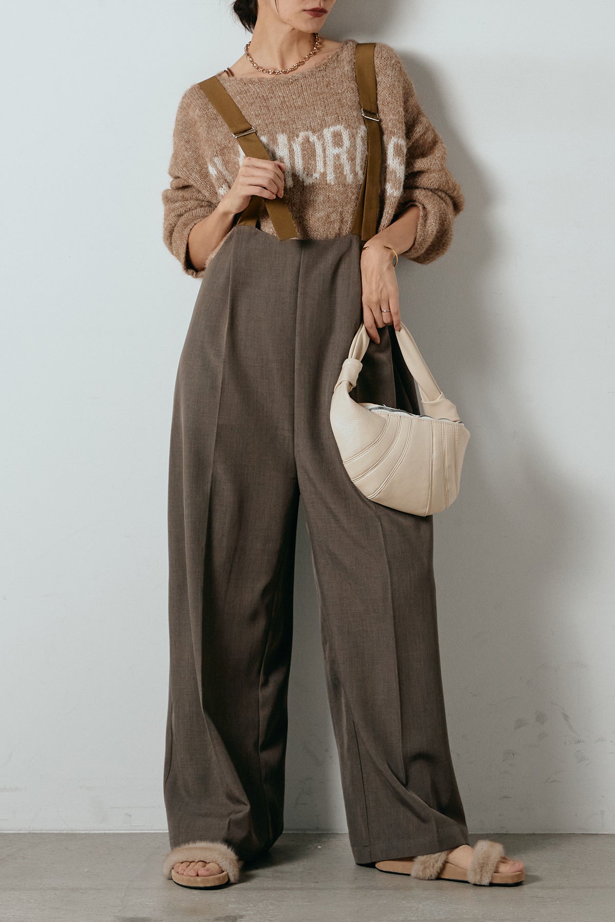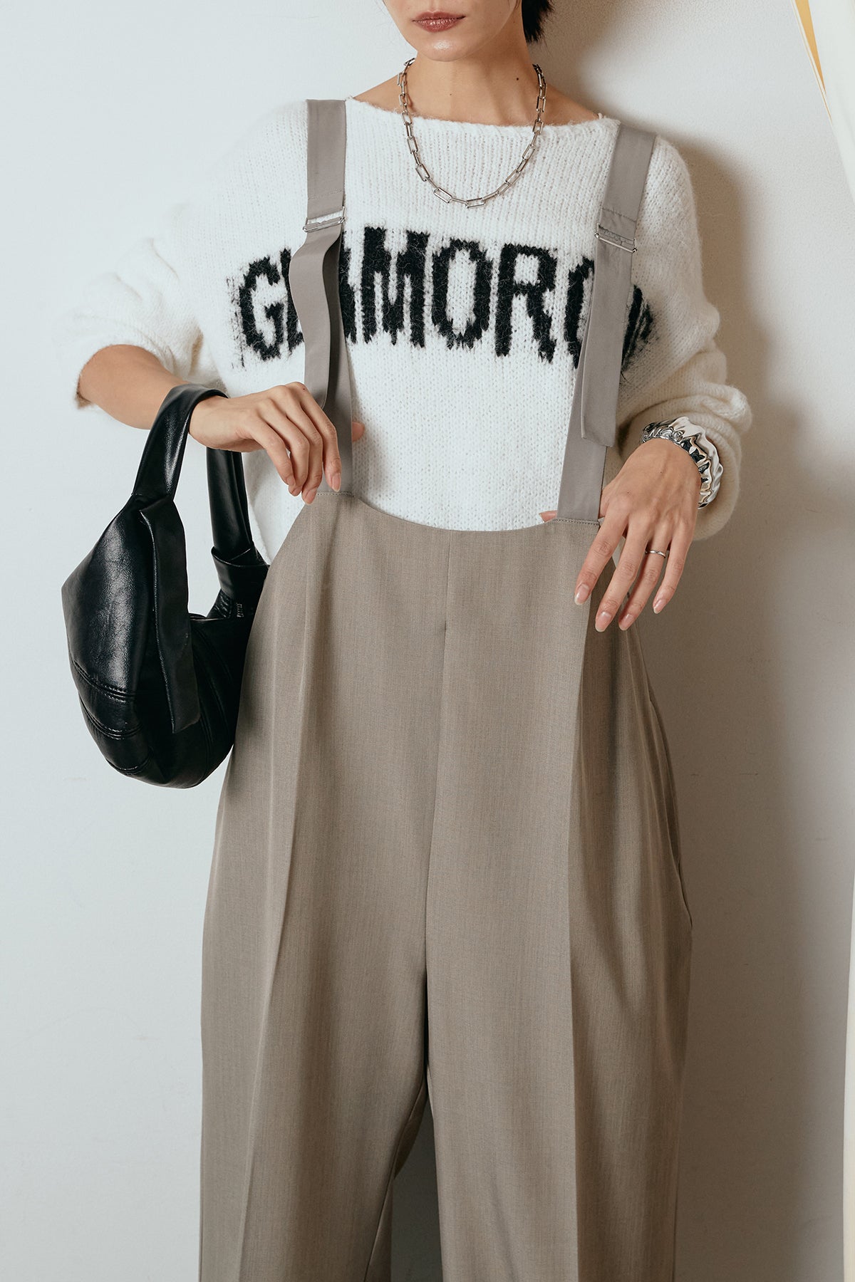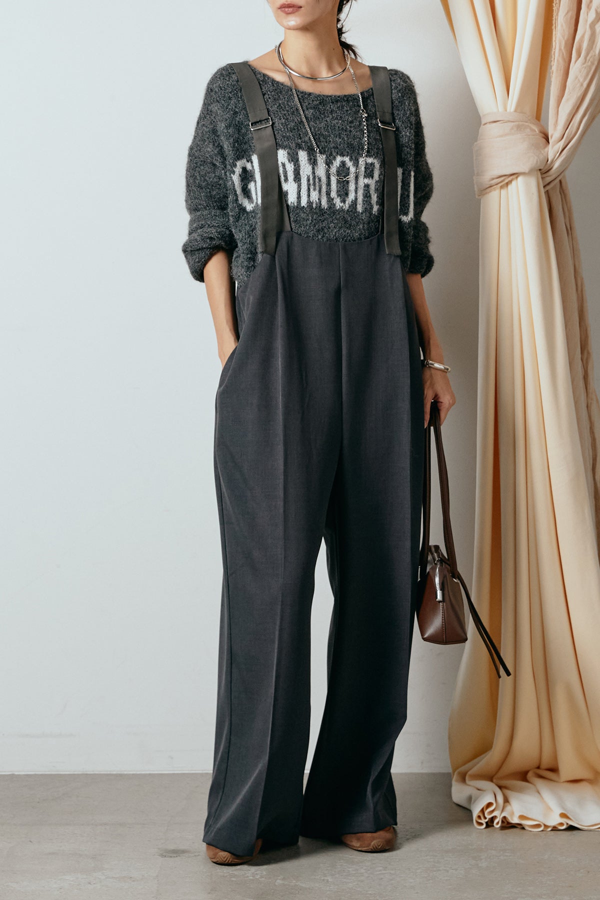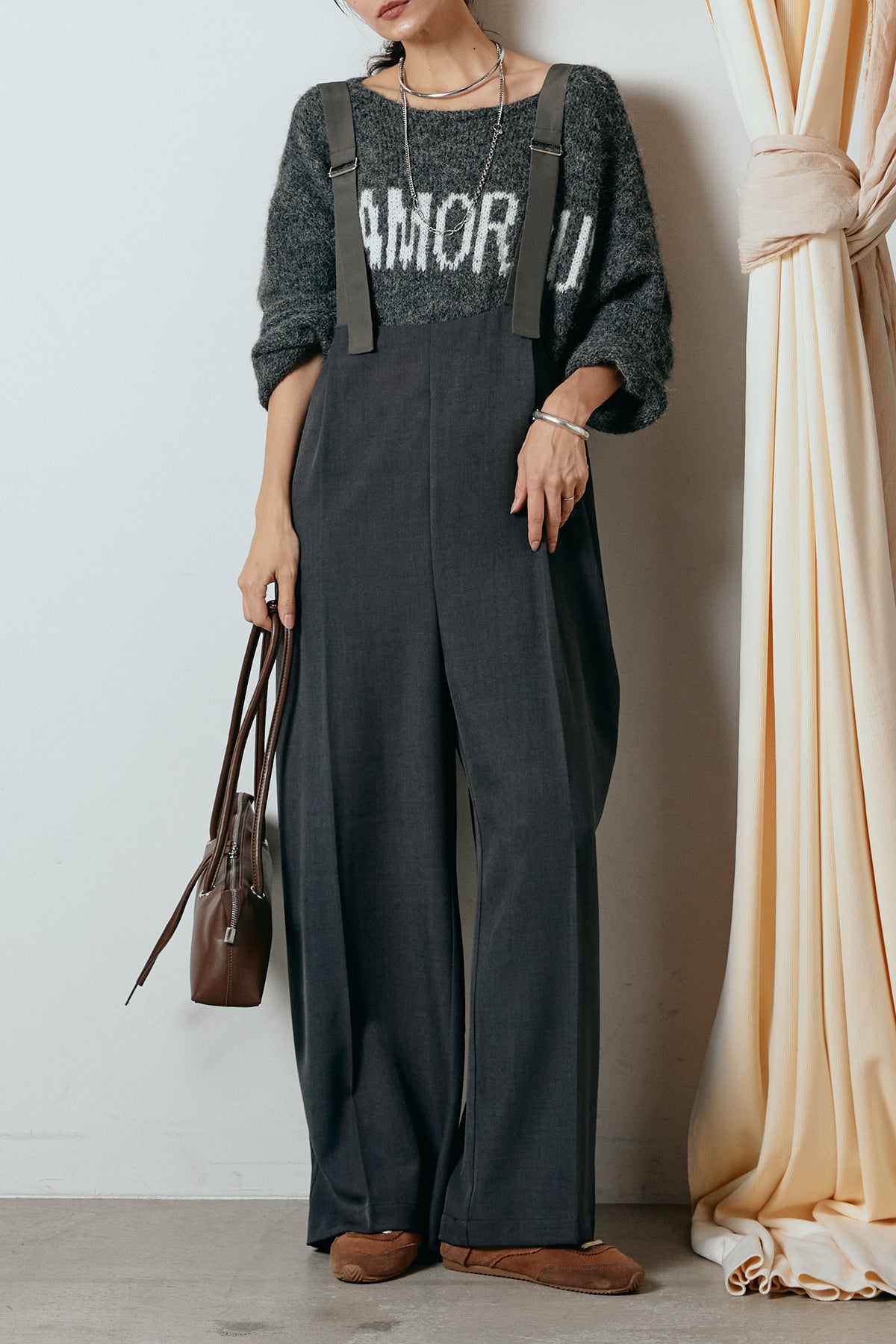 柔らかく落ち感のあるツイル素材を使用したワイドサロペット。
