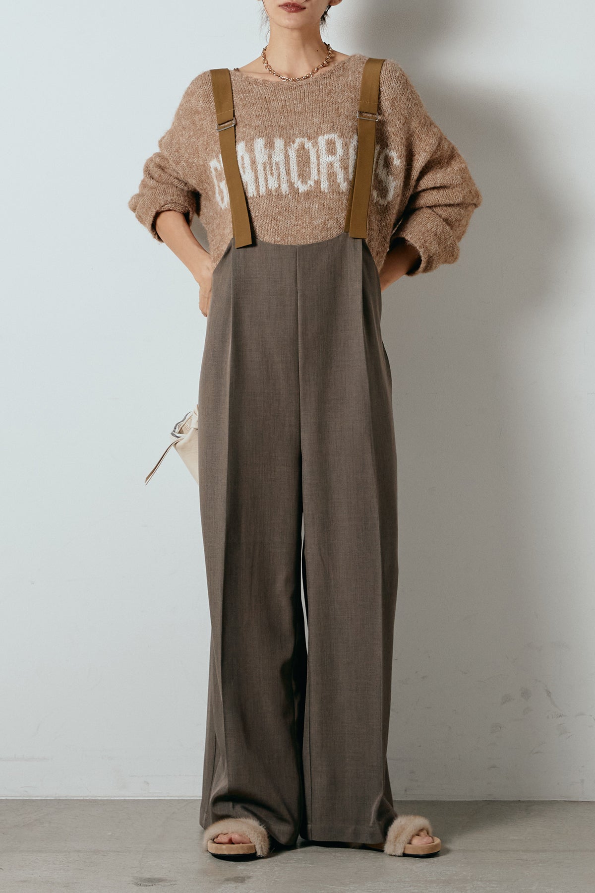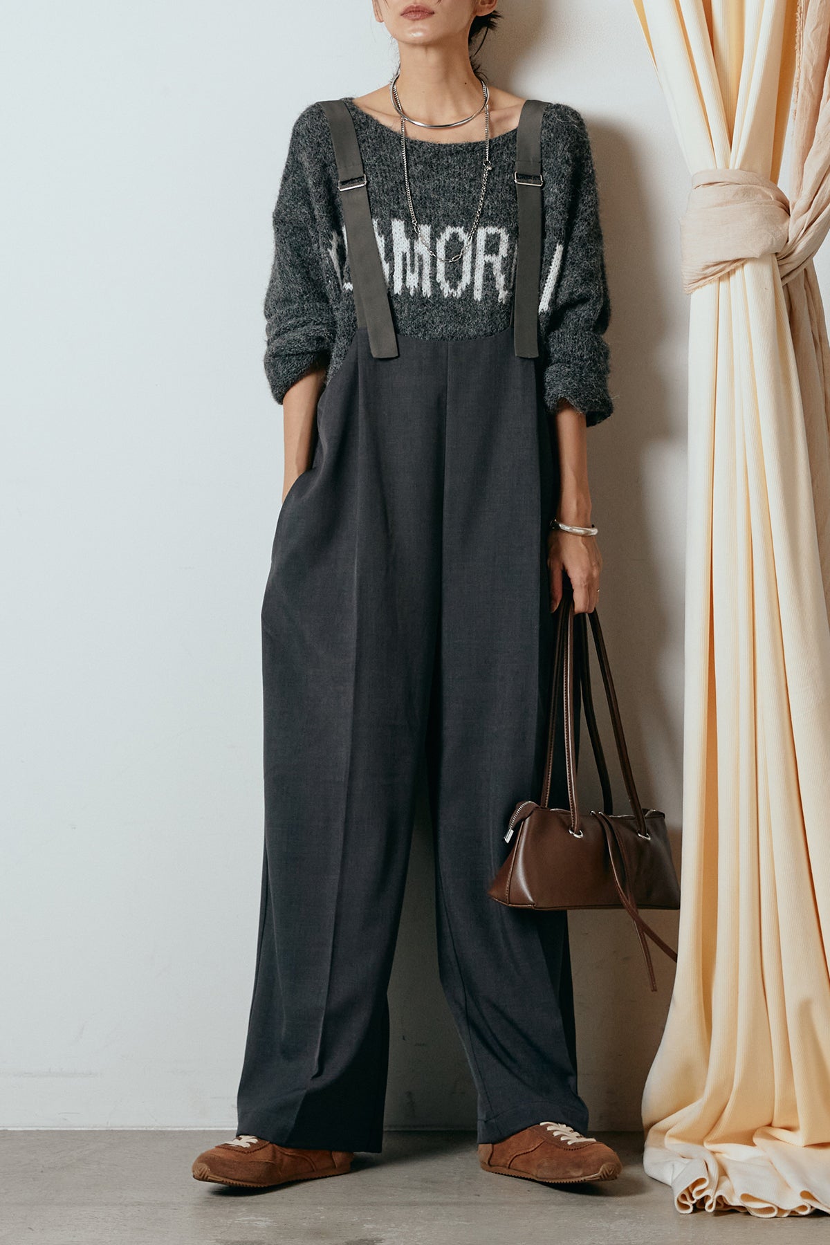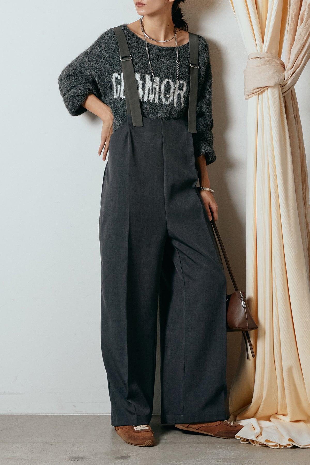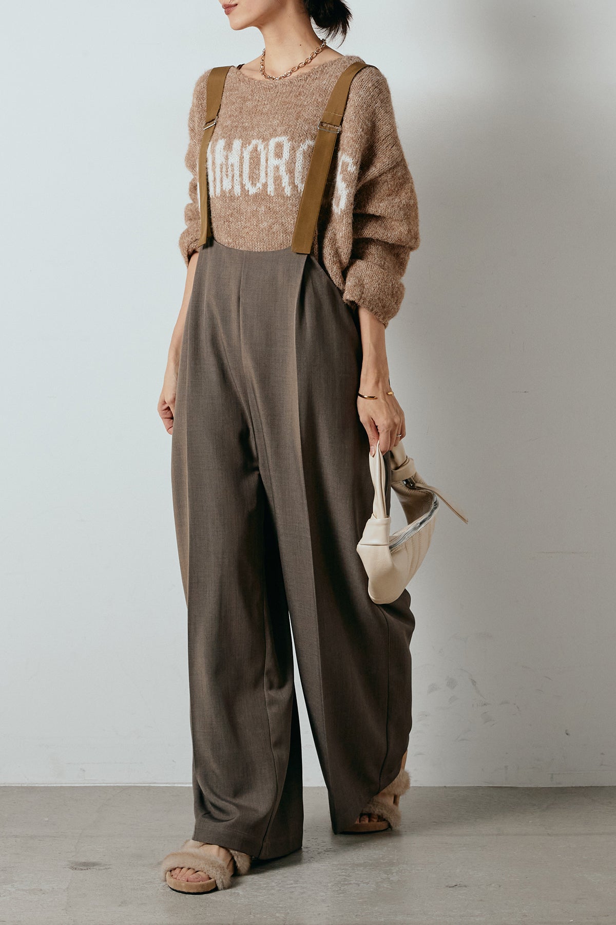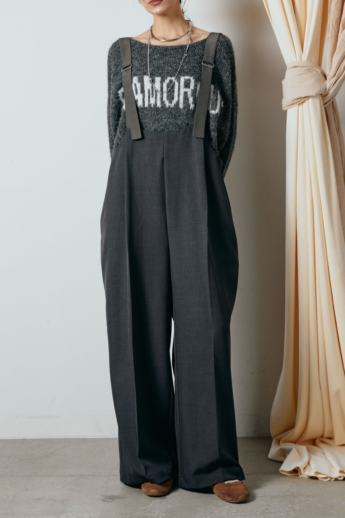 柔らかく落ち感のあるツイル素材を使用したワイドサロペット。